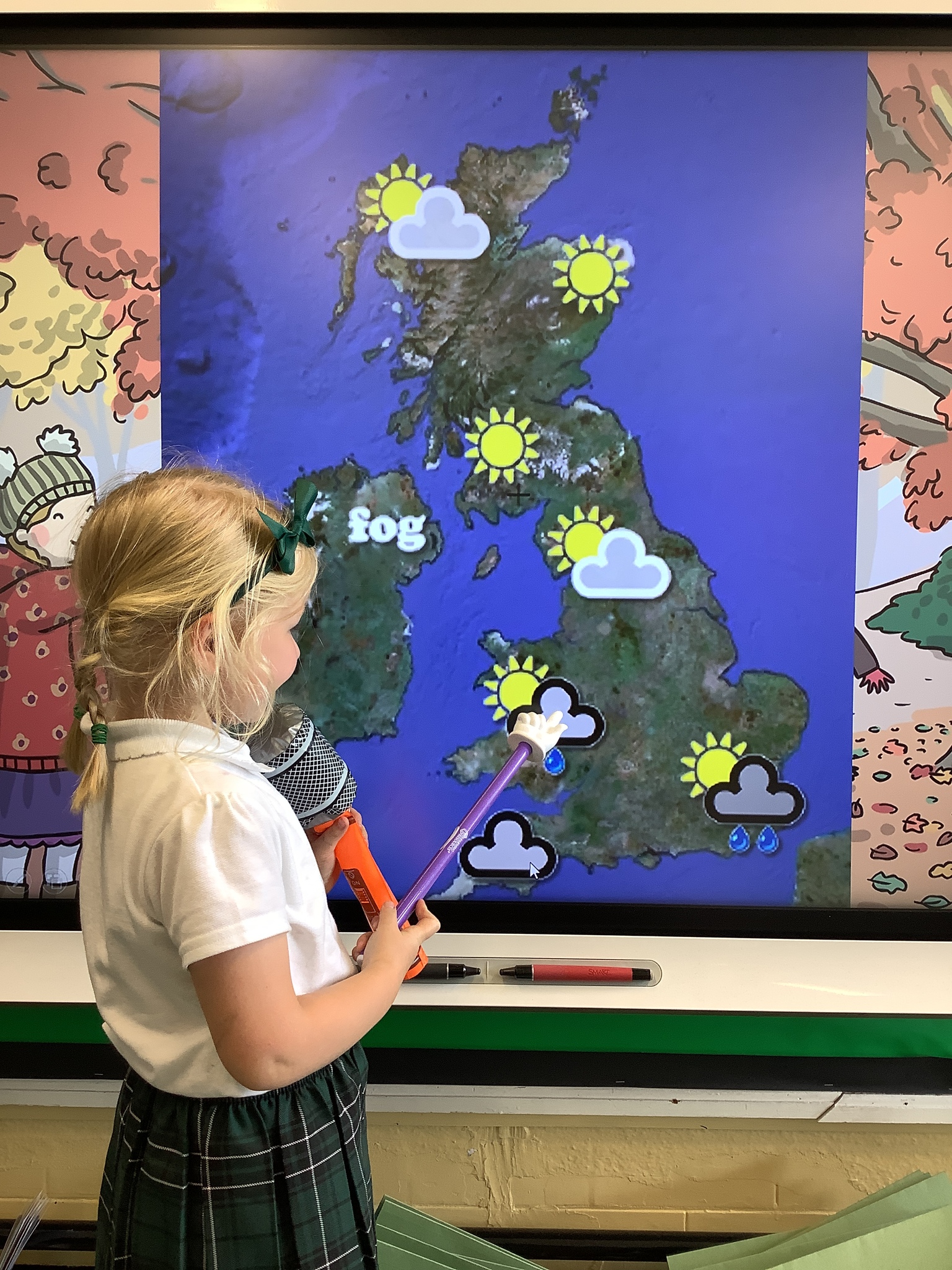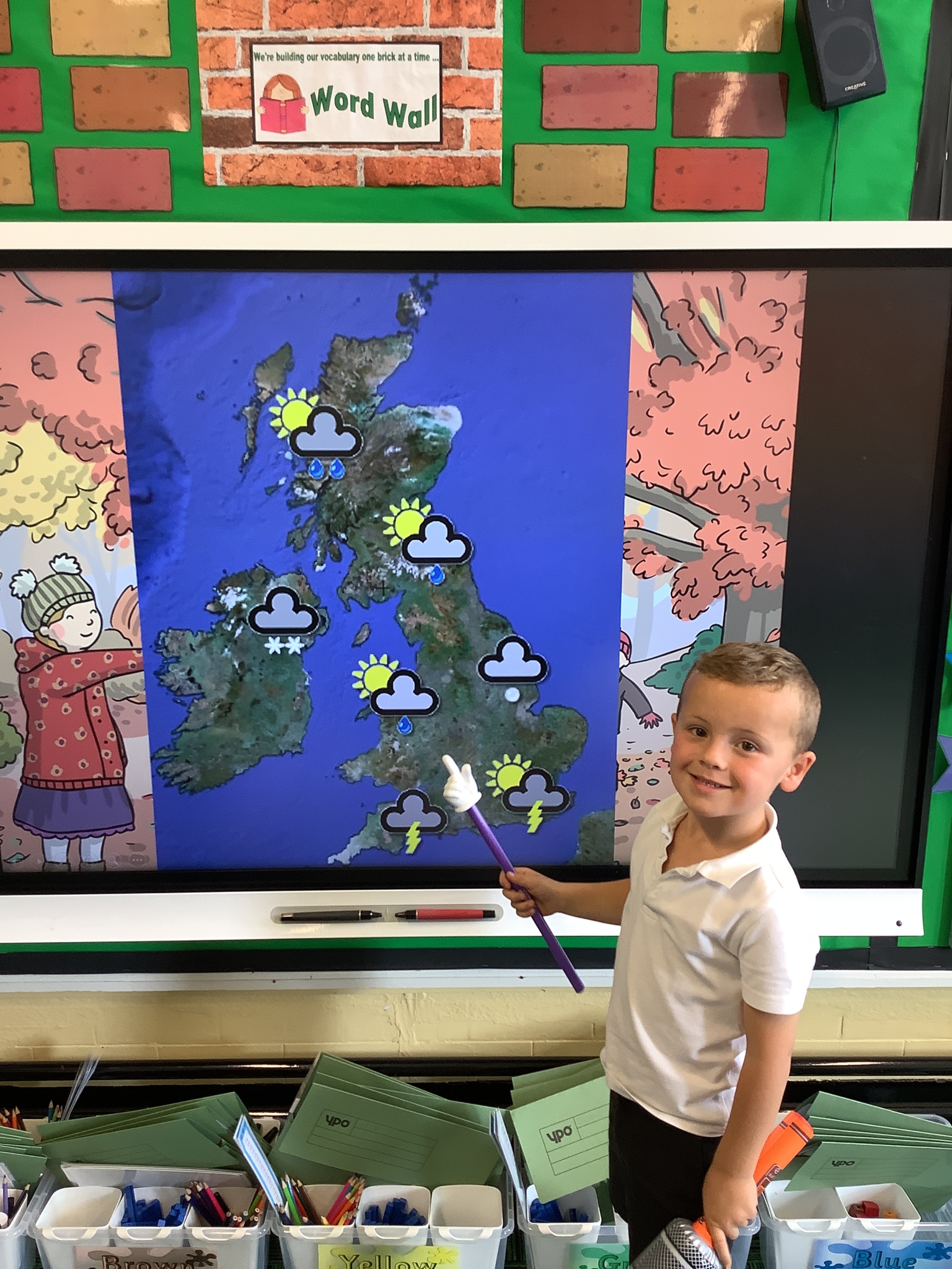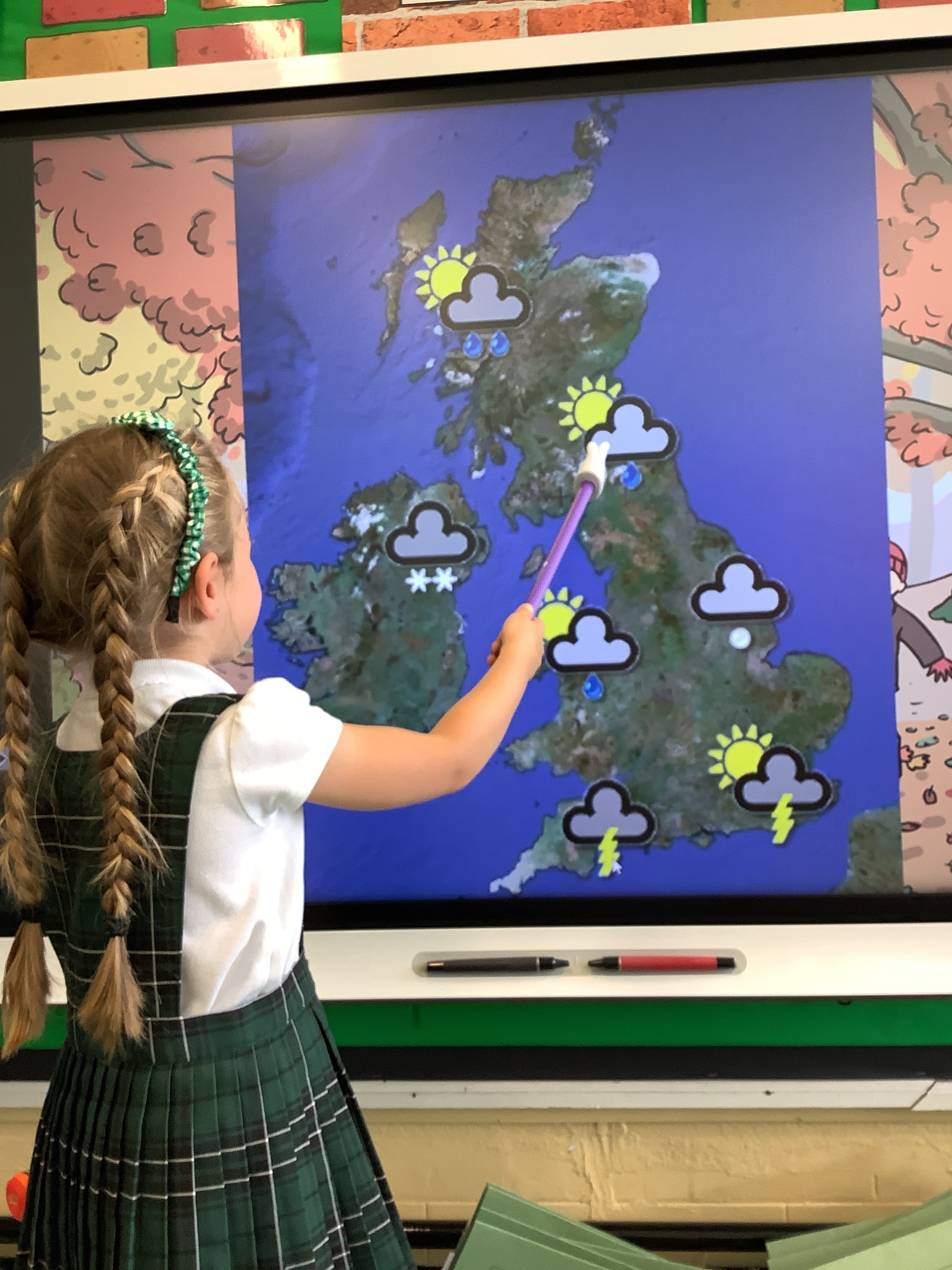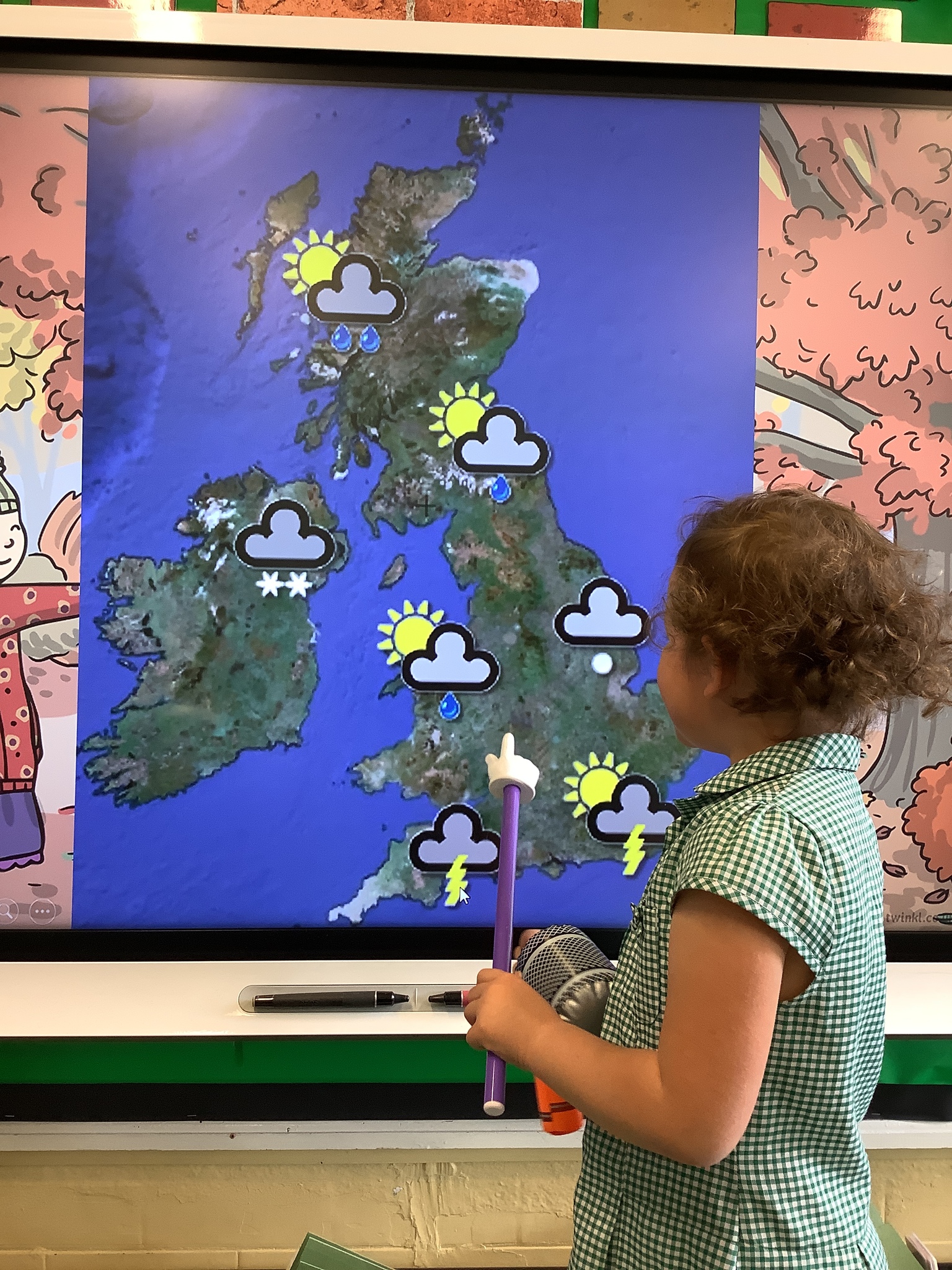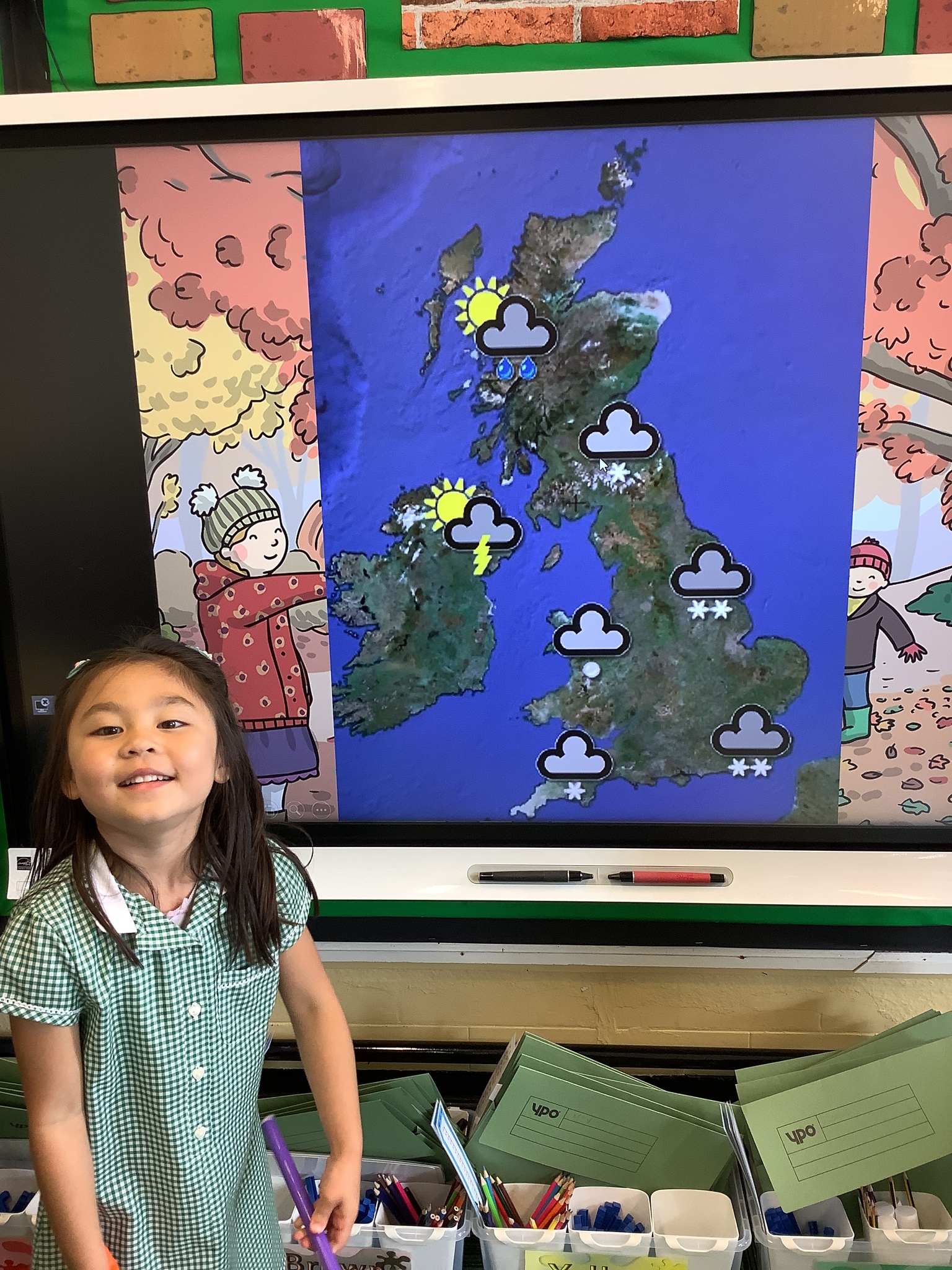 Year 1 have had a fantastic afternoon pretending to be weather reporters. We have started our Seasonal Change Science topic and have spent today's session using the vocabulary that we learnt to discuss and describe what the weather is like.