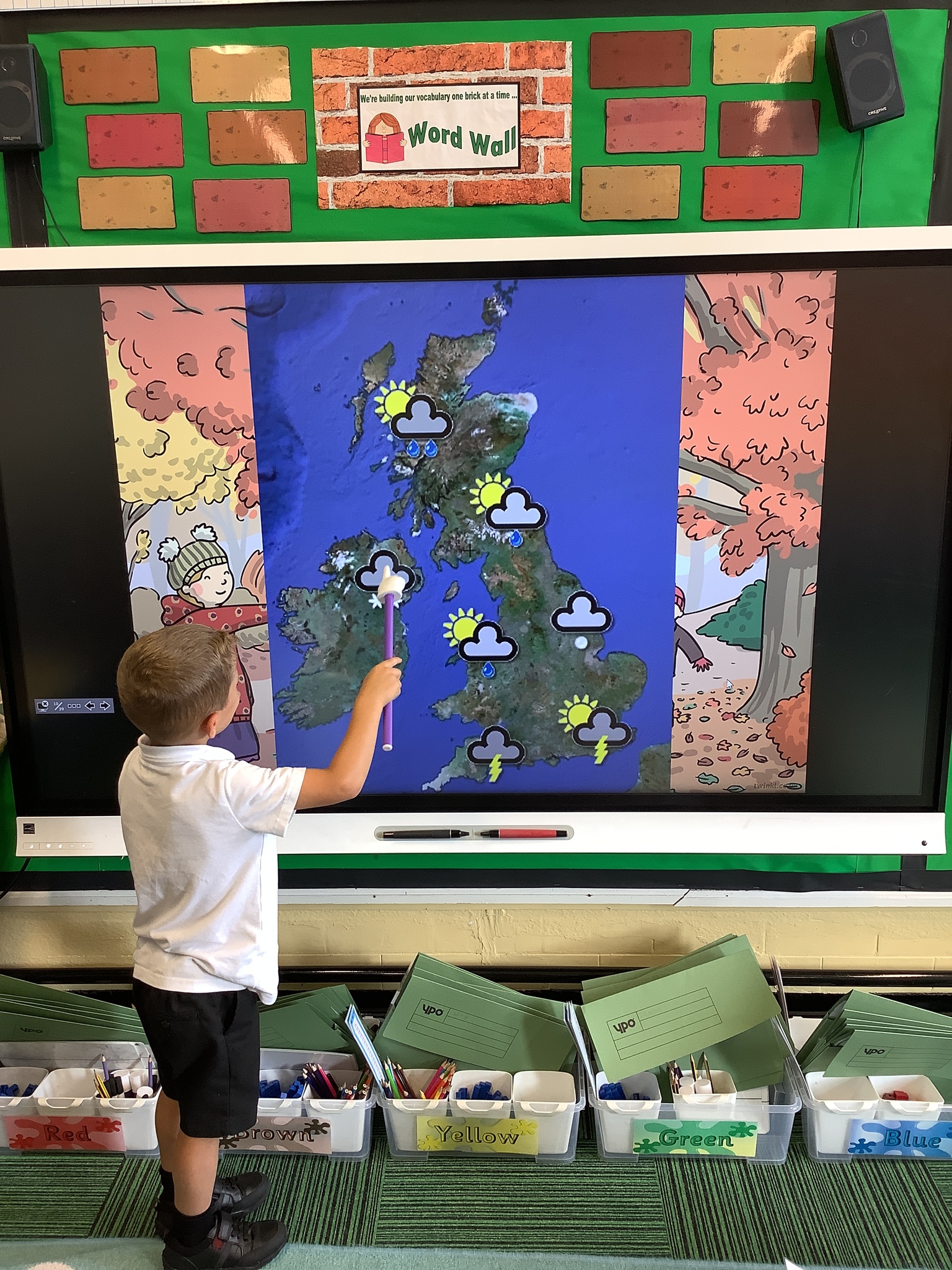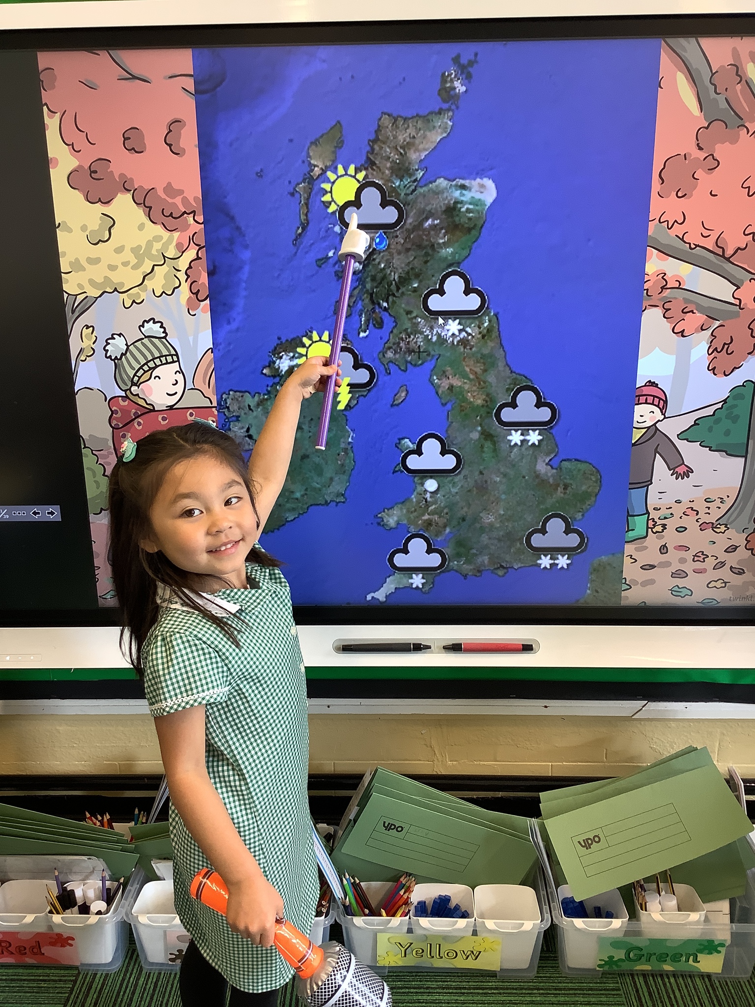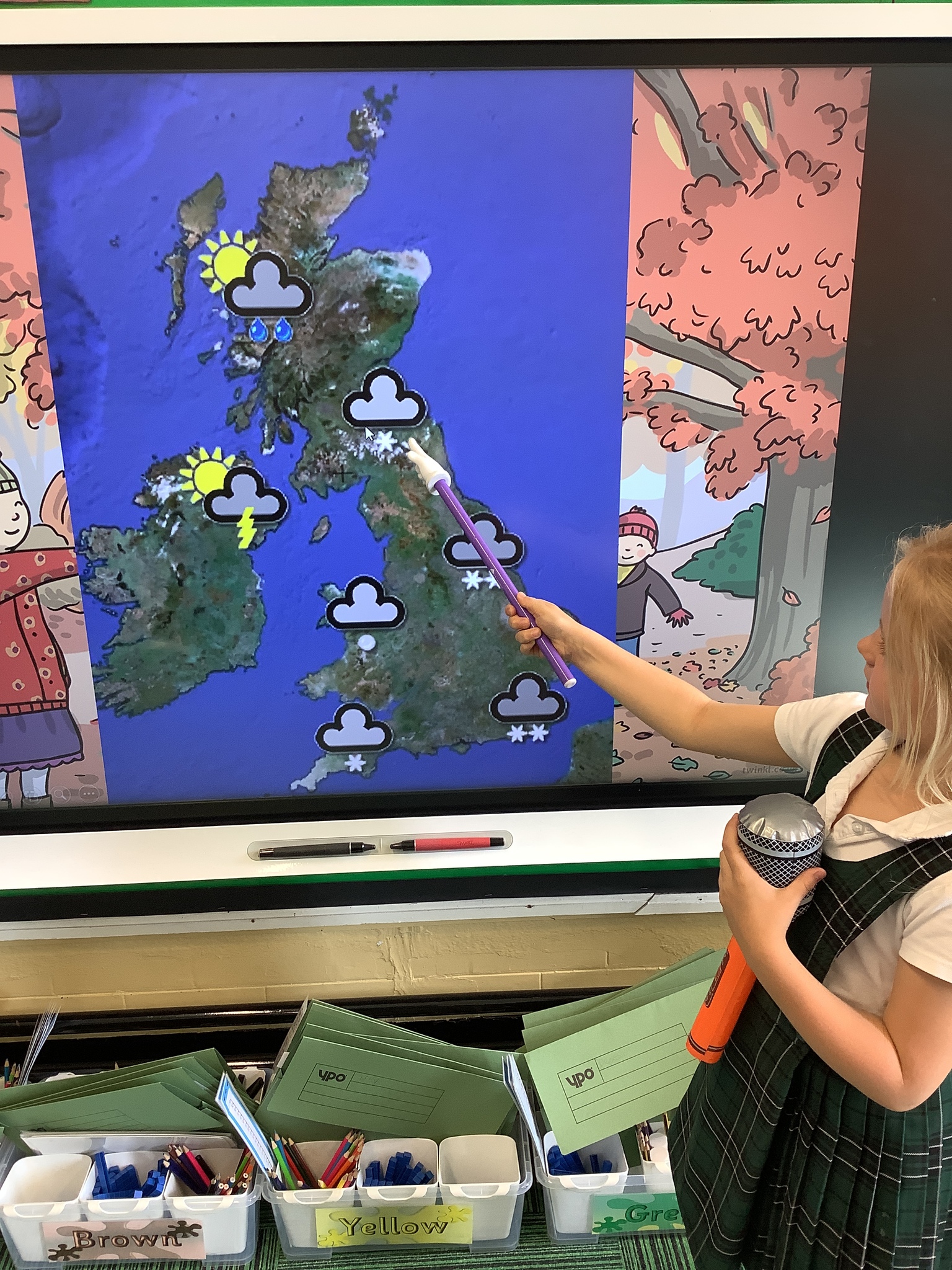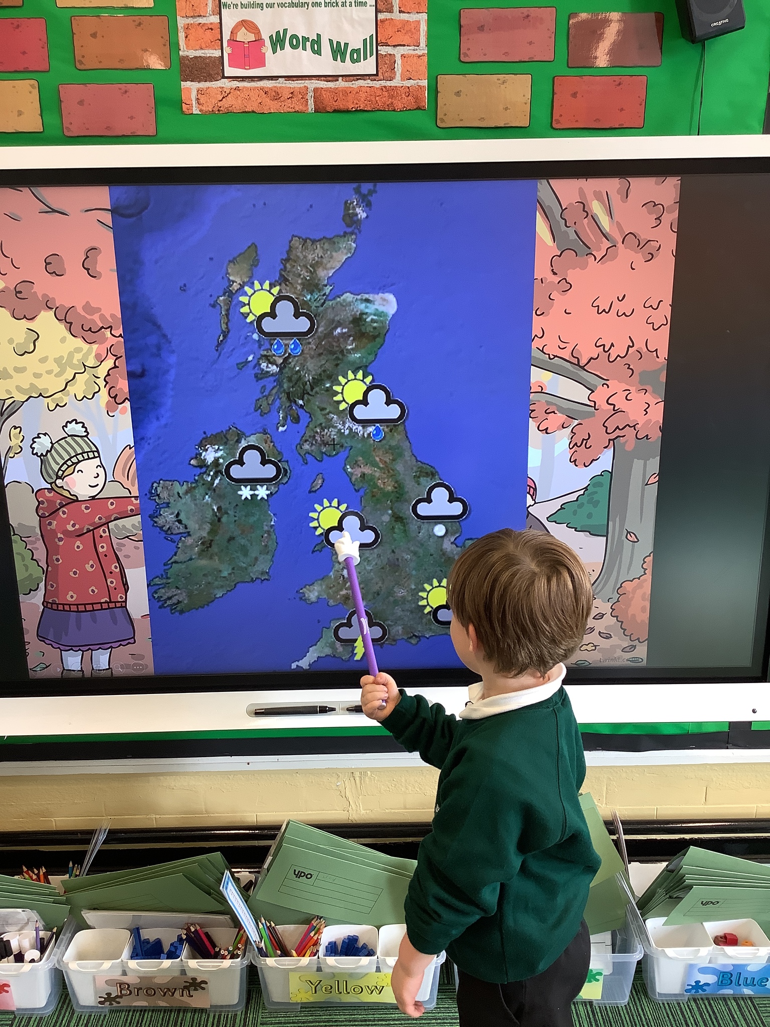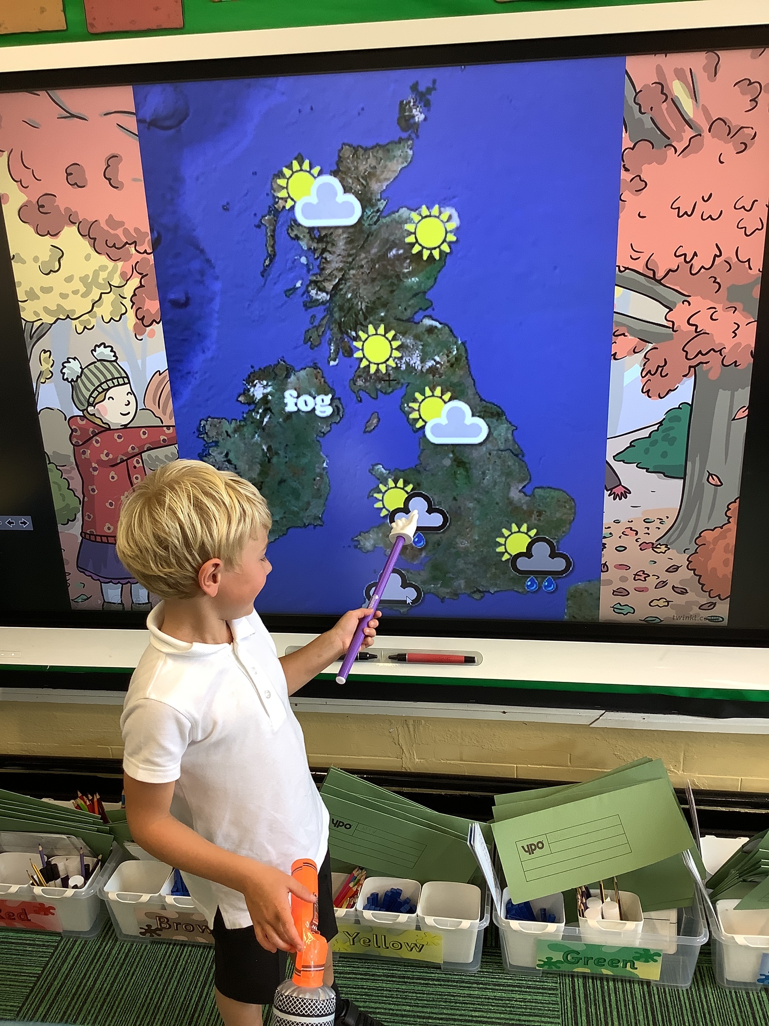 Year 1 have had a fantastic afternoon pretending to be weather reporters. We have started our Seasonal Change Science topic and have spent today's session using the vocabulary that we learnt to discuss and describe what the weather is like.