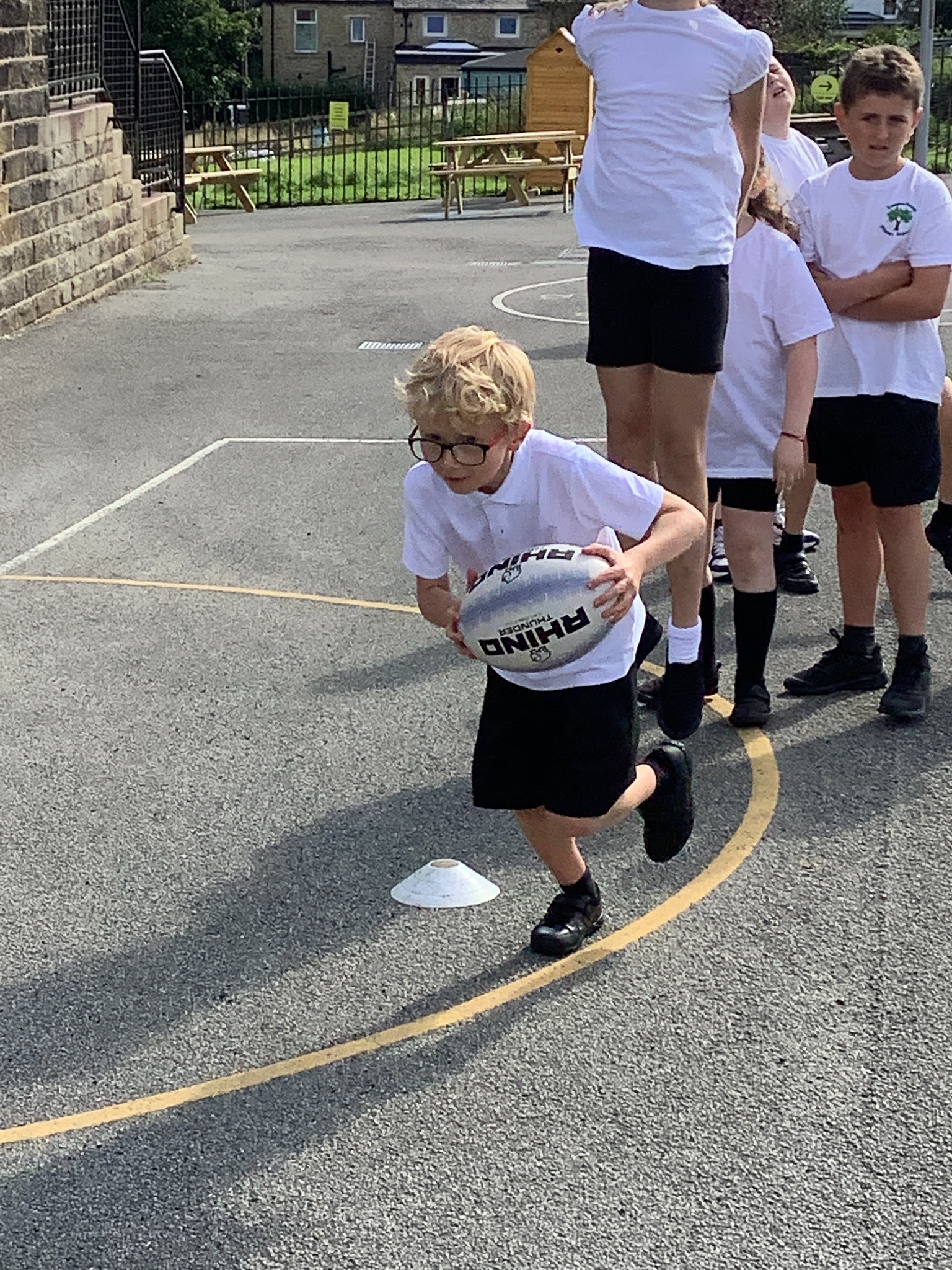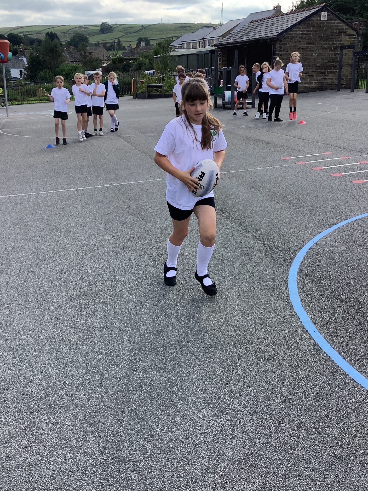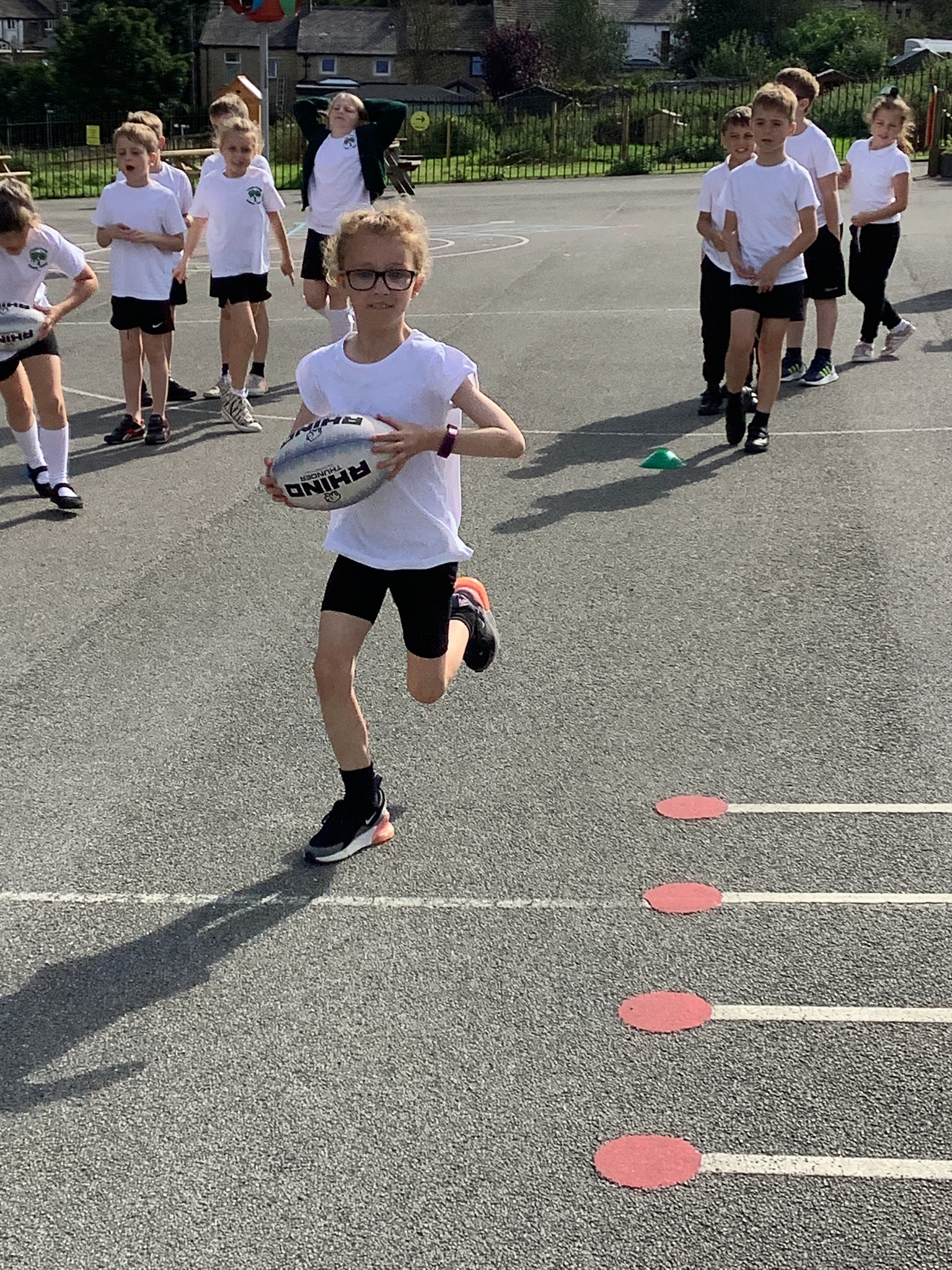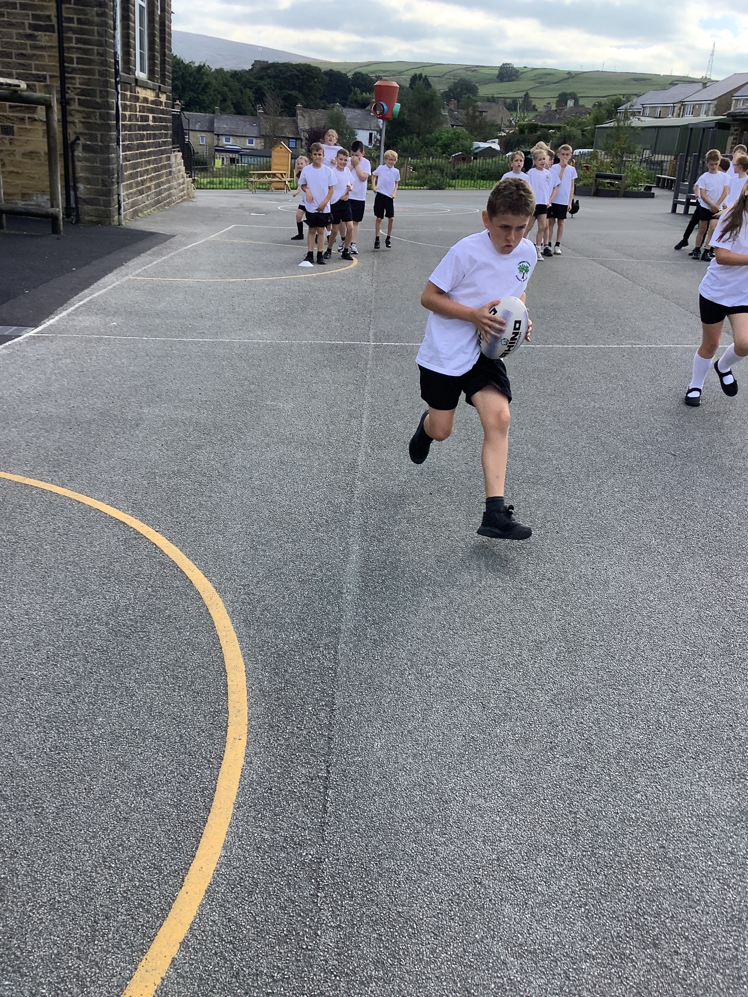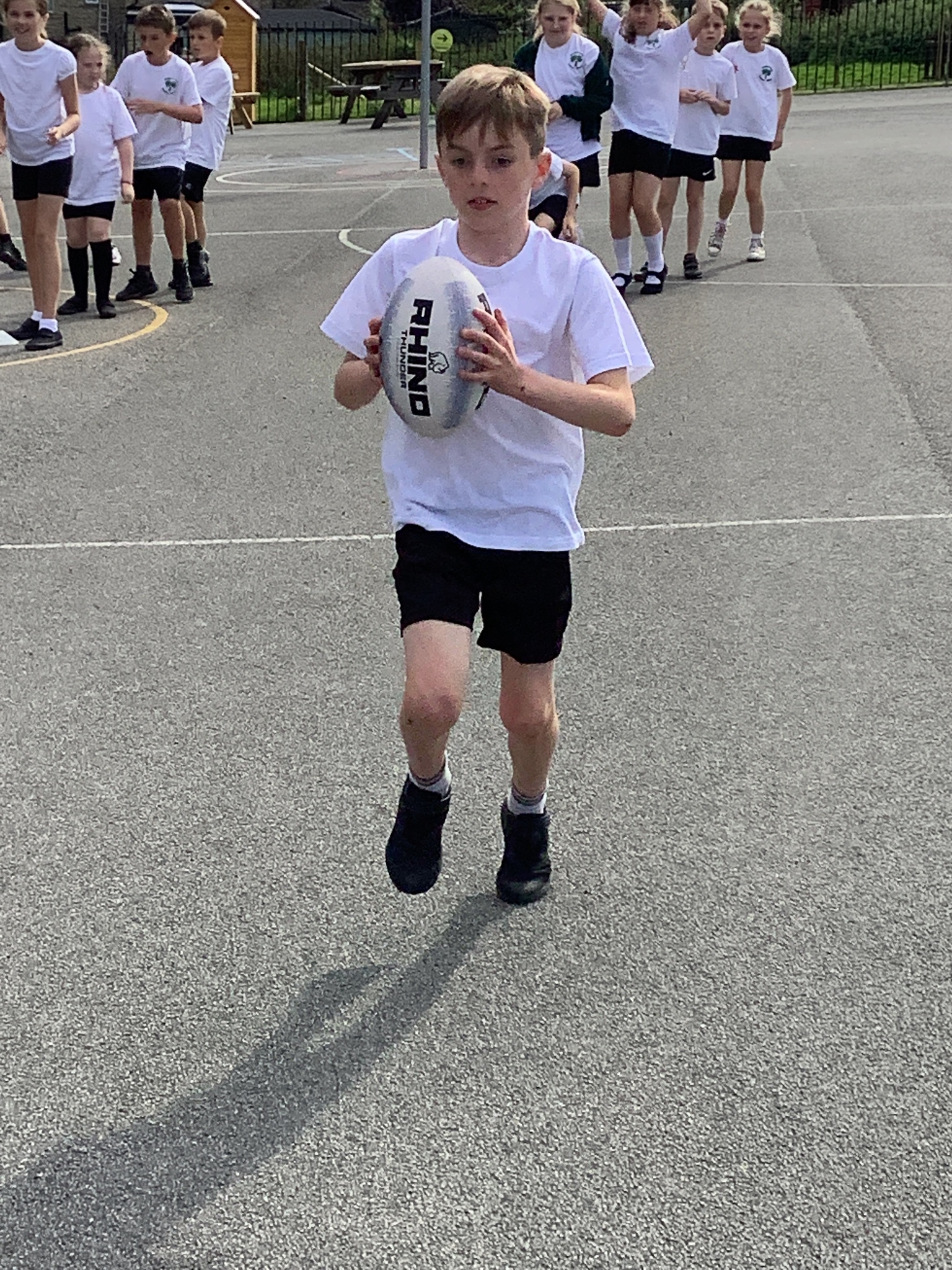 Year 4 are very privileged as they are receiving rugby training from the Under 9s rugby coach at Nelson & Colne Rugby Club over the next four weeks in preparation for a tournament. Today they began by having fun with ball handling skills. Did you know that a rugby ball has a belly and ears?