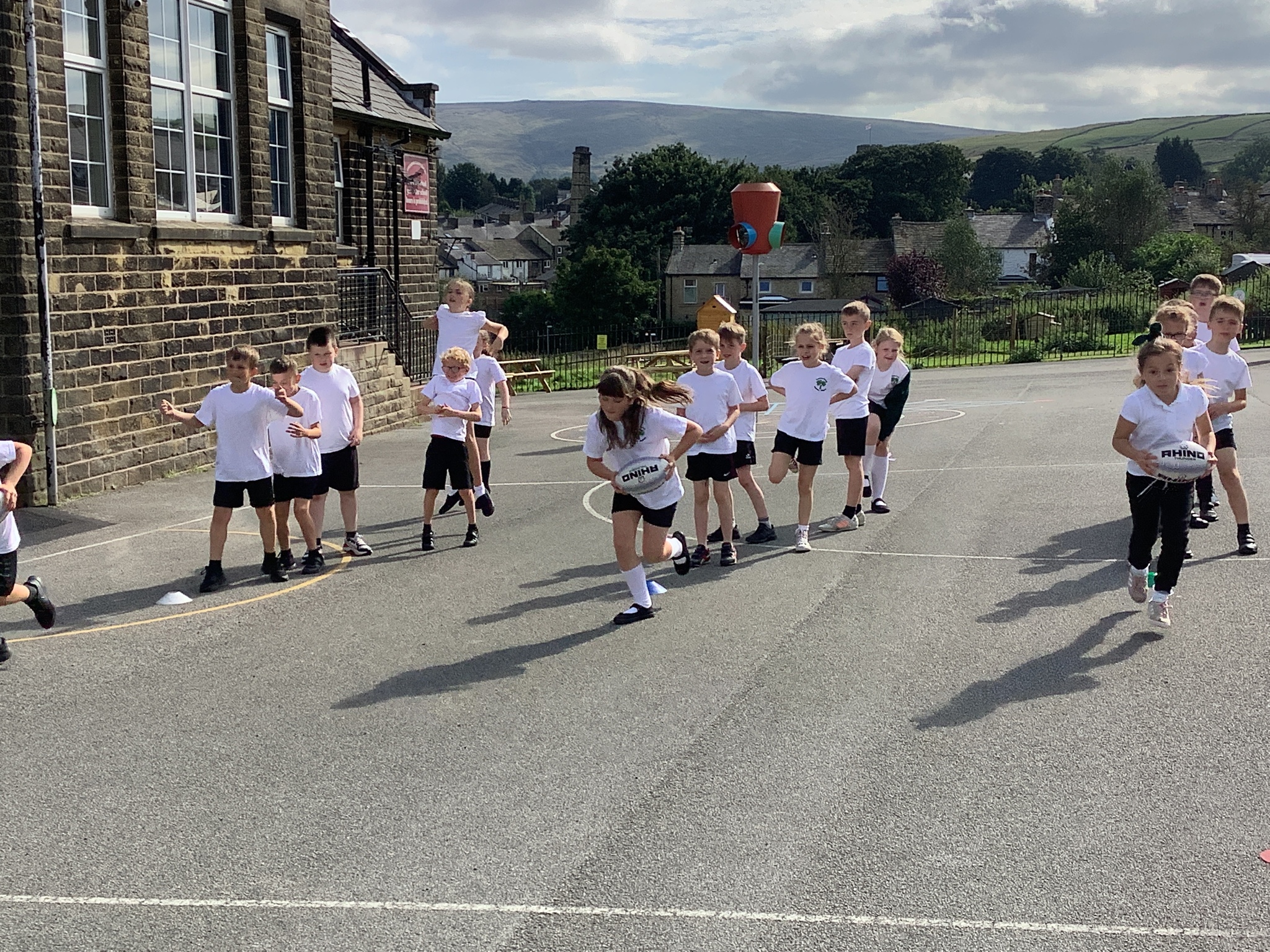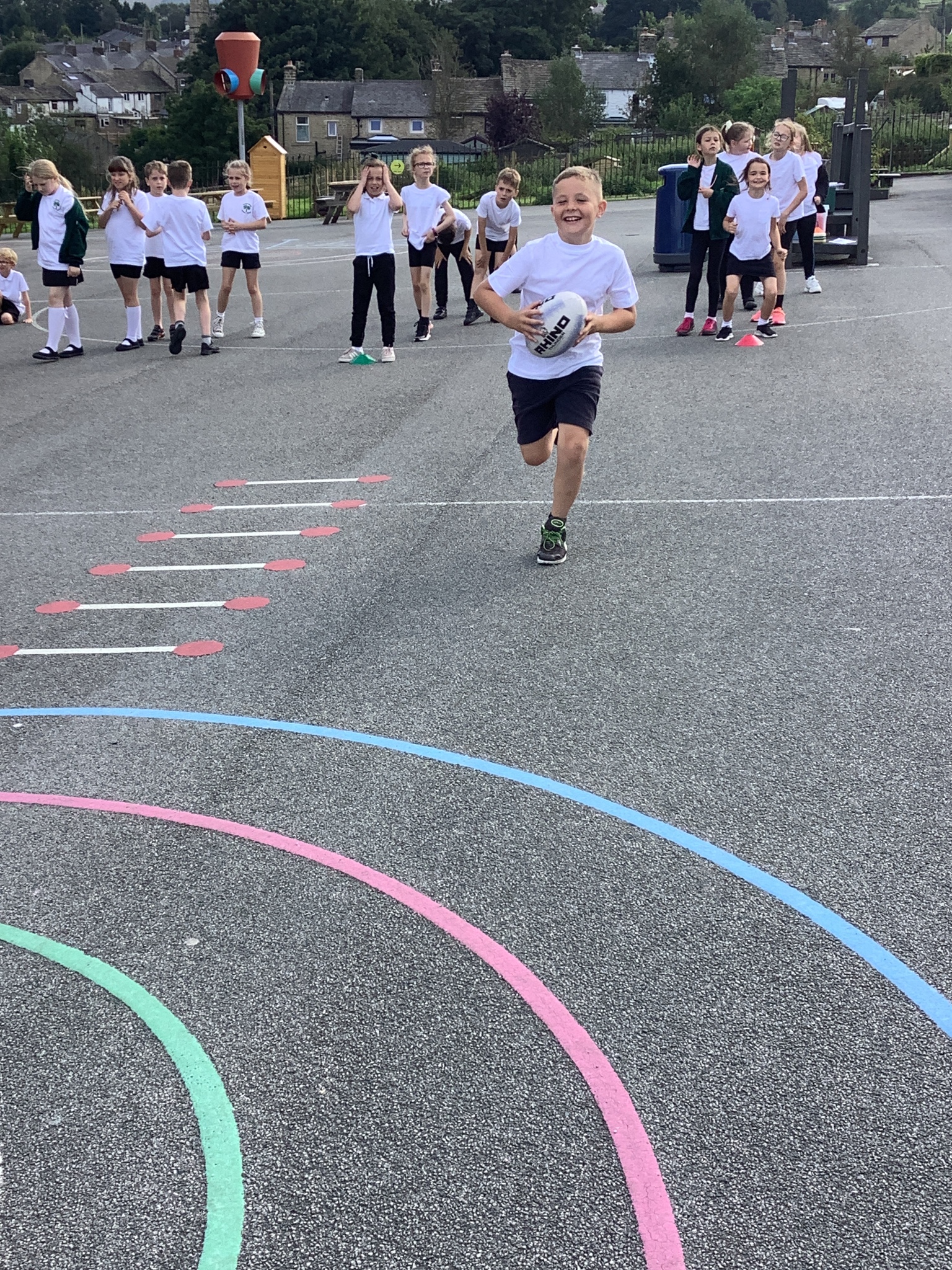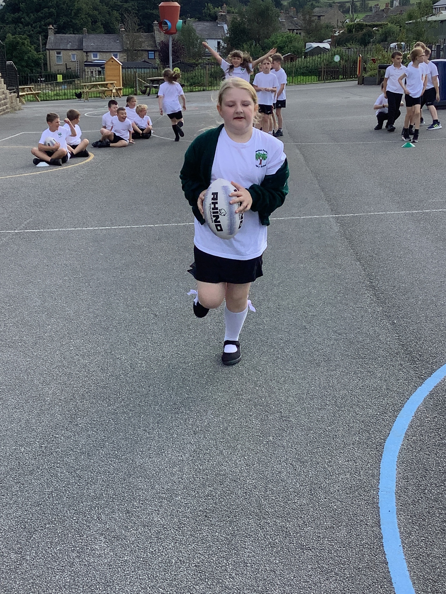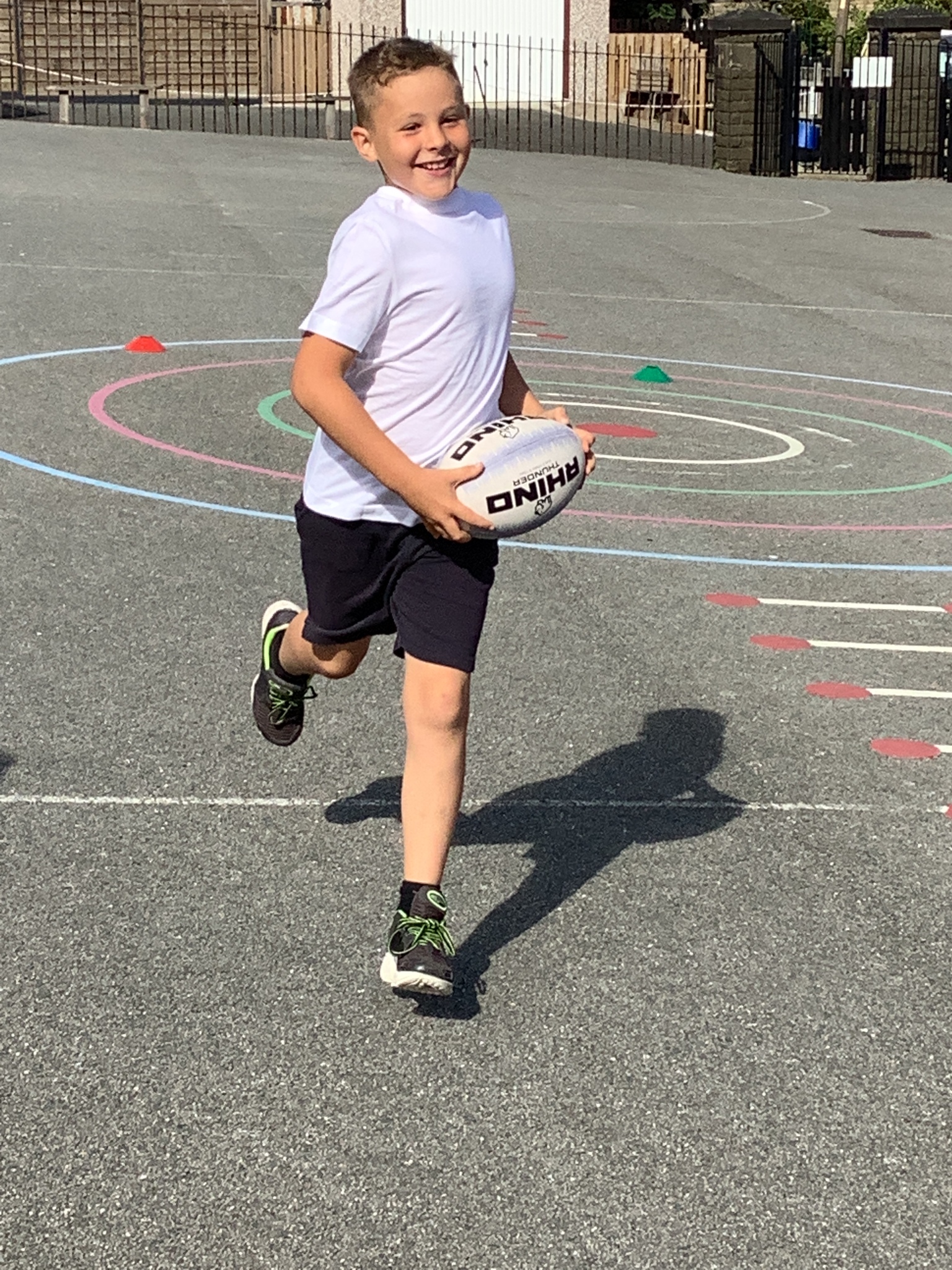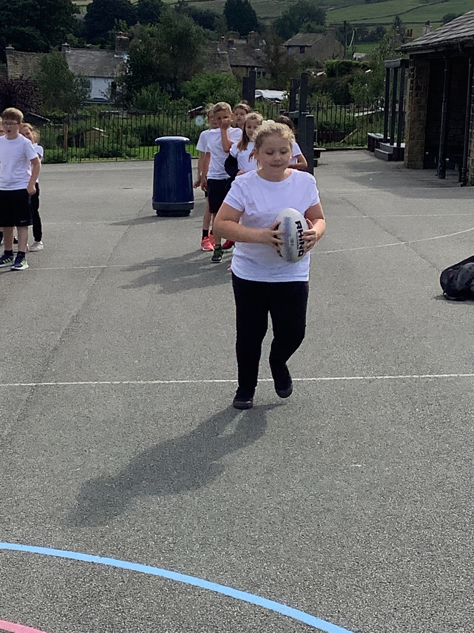 Year 4 are very privileged as they are receiving rugby training from the Under 9s rugby coach at Nelson & Colne Rugby Club over the next four weeks in preparation for a tournament. Today they began by having fun with ball handling skills. Did you know that a rugby ball has a belly and ears?