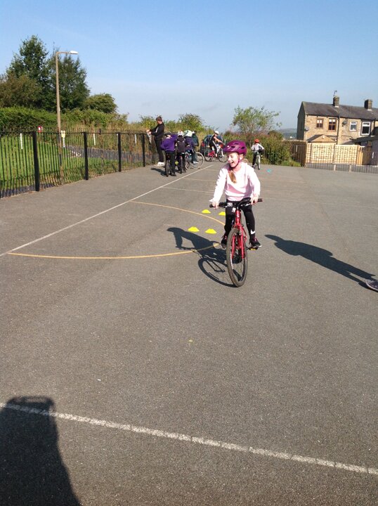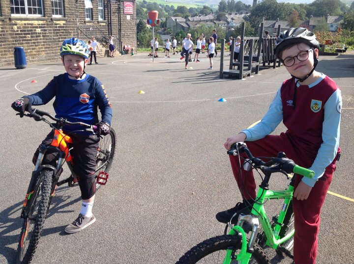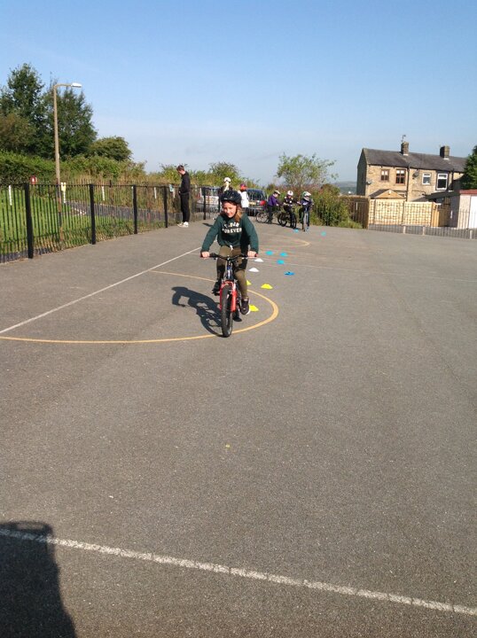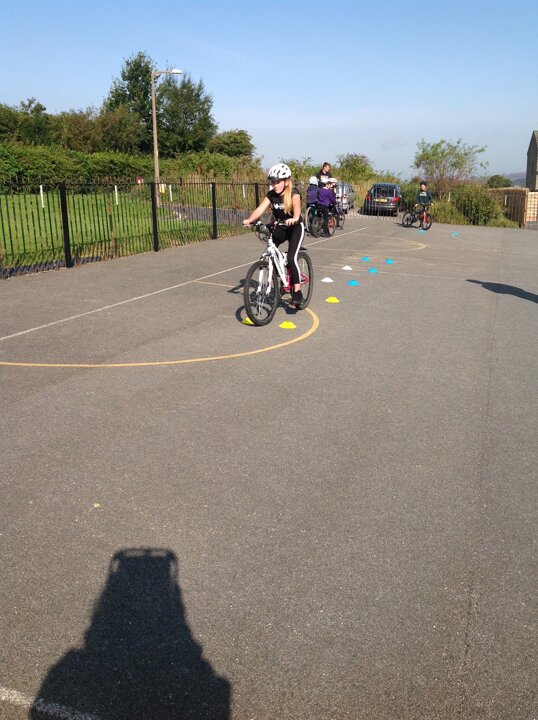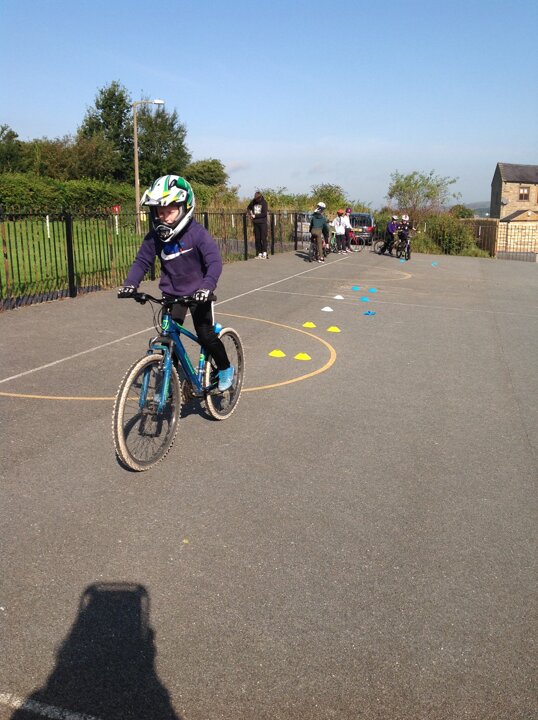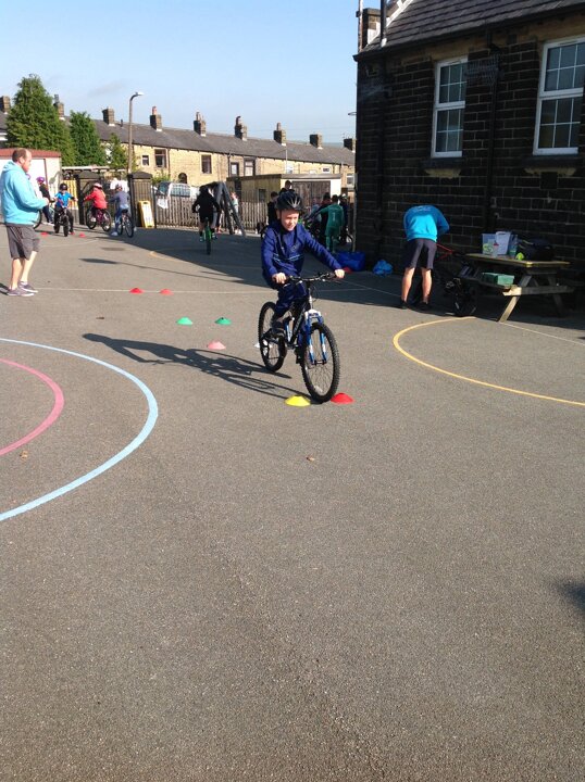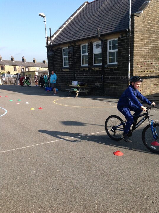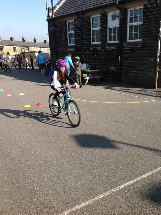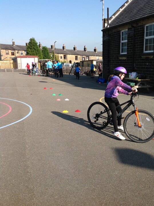 Year 6 have had a wonderful day today doing Bikeability. During the first session they had to ride around the playground through cones - ensuring they could stop quickly as well as indicate. Following this, the confident riders rode in primary (over taking) and secondary (next to the curb) positions through Trawden and into Colne, where the children also indicated and cycled round a roundabout!