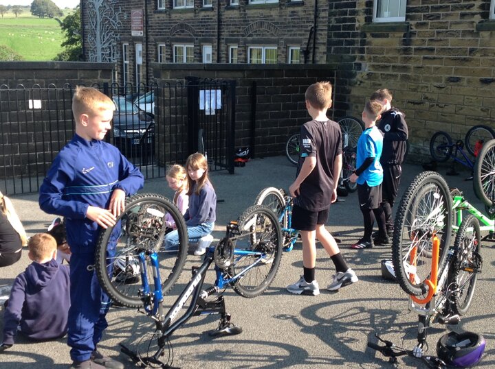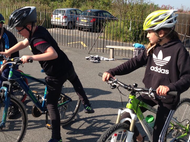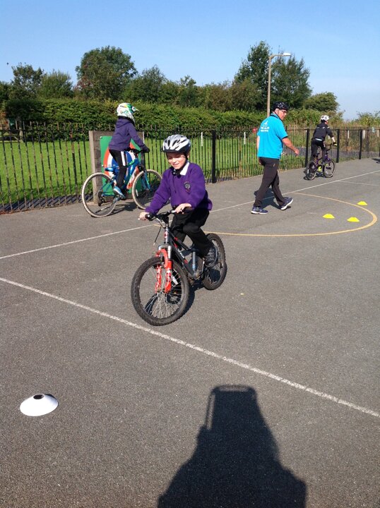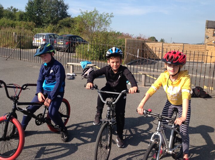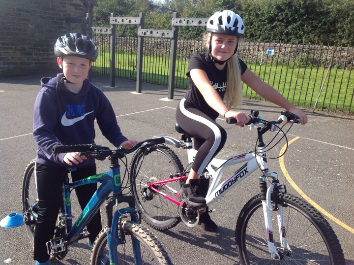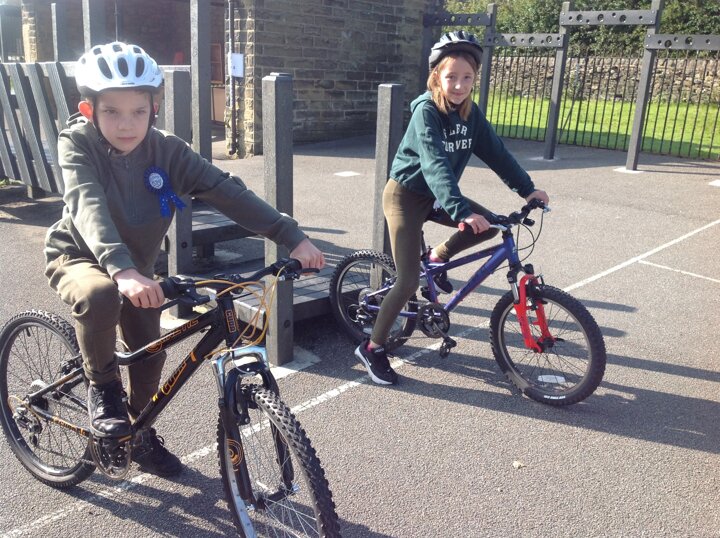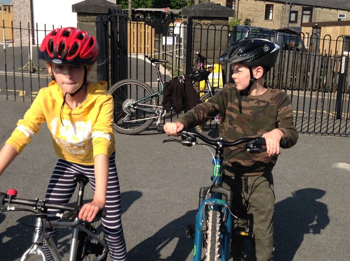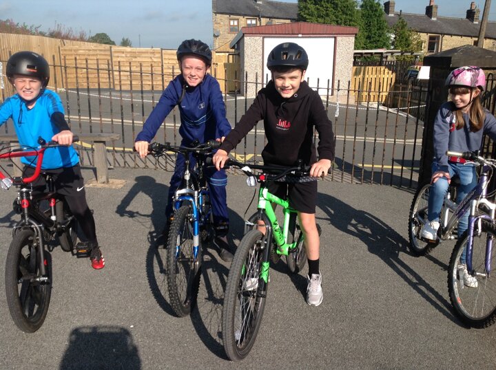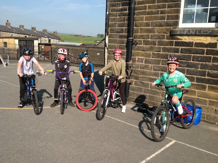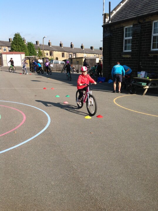 Year 6 have had a wonderful day today doing Bikeability. During the first session they had to ride around the playground through cones - ensuring they could stop quickly as well as indicate. Following this, the confident riders rode in primary (over taking) and secondary (next to the curb) positions through Trawden and into Colne, where the children also indicated and cycled round a roundabout!