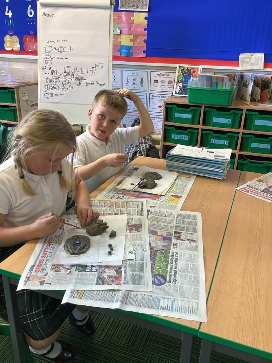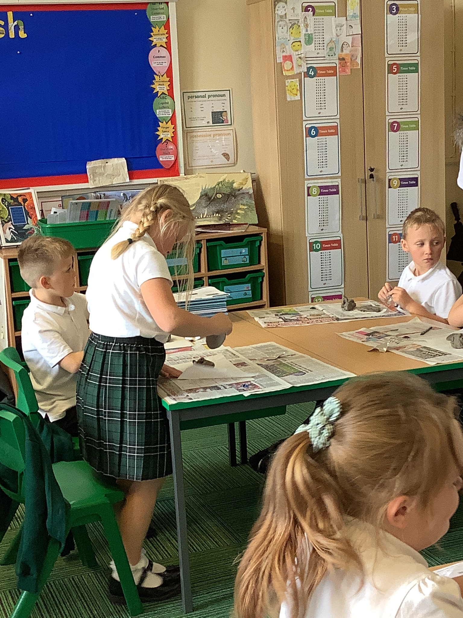 Year Three have worked incredibly hard this afternoon using clay to create their clay dragon eyes. They have used layering to create depth and have used the clay tools to add detail. We just need to wait for the clay to dry now ready for painting next week.