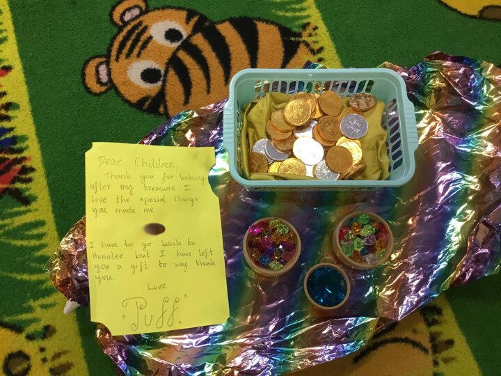 When we arrived at school today, the children discovered something new in the dragon nest. The pegs, sticks and treasures the children had made were gone, and had been replaced by a letter ..