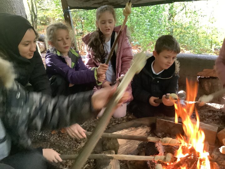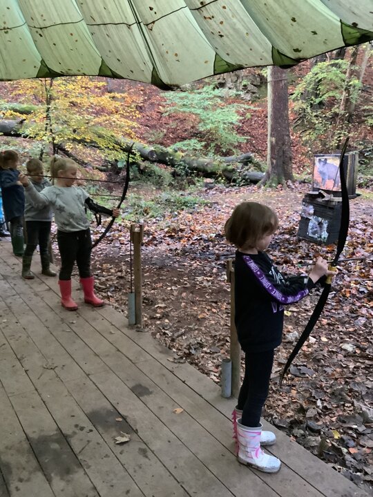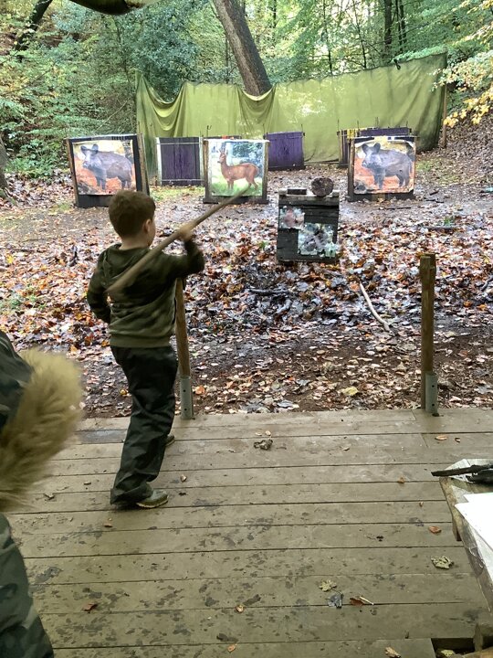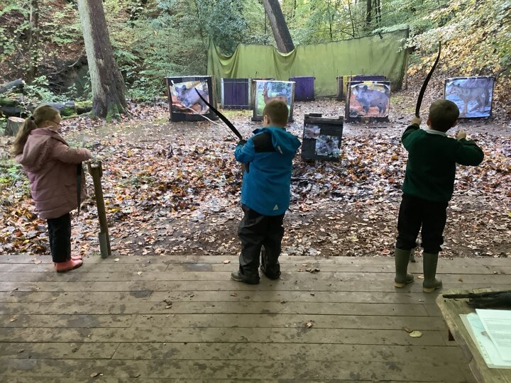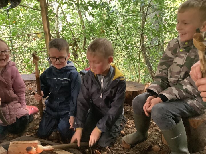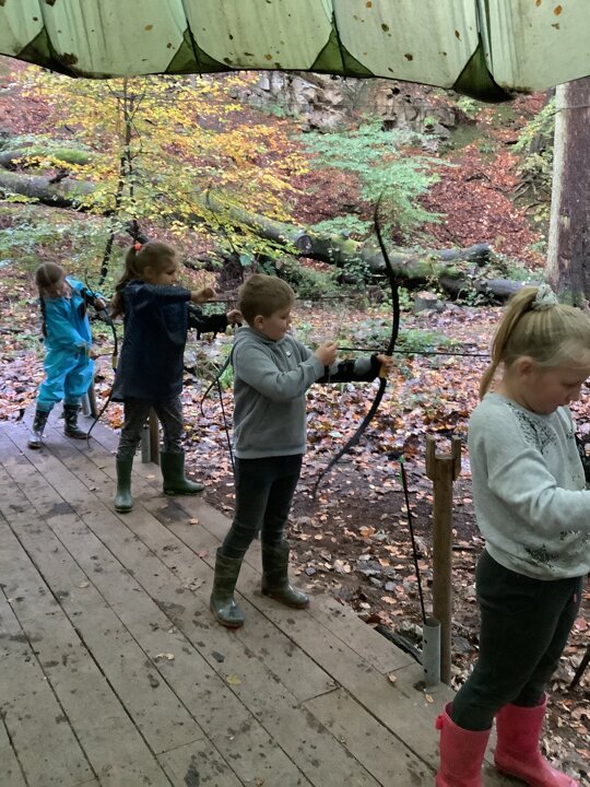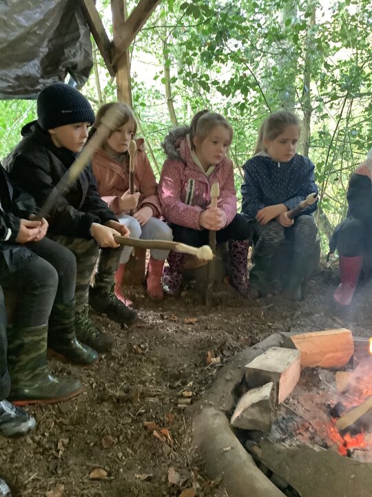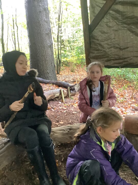 Year Three had an absolutely fantastic time on Tuesday when they travelled back in time and became cave people for the day! They made dens out of natural materials, went foraging for food, used flint and steel to make a fire and cooked bread over it. They enjoyed being hunters in the afternoon where they practised their archery skills on pictures of wild boar, deer and wolves. The children learnt a great deal about the Stone age and they are now excited to start their history topic.