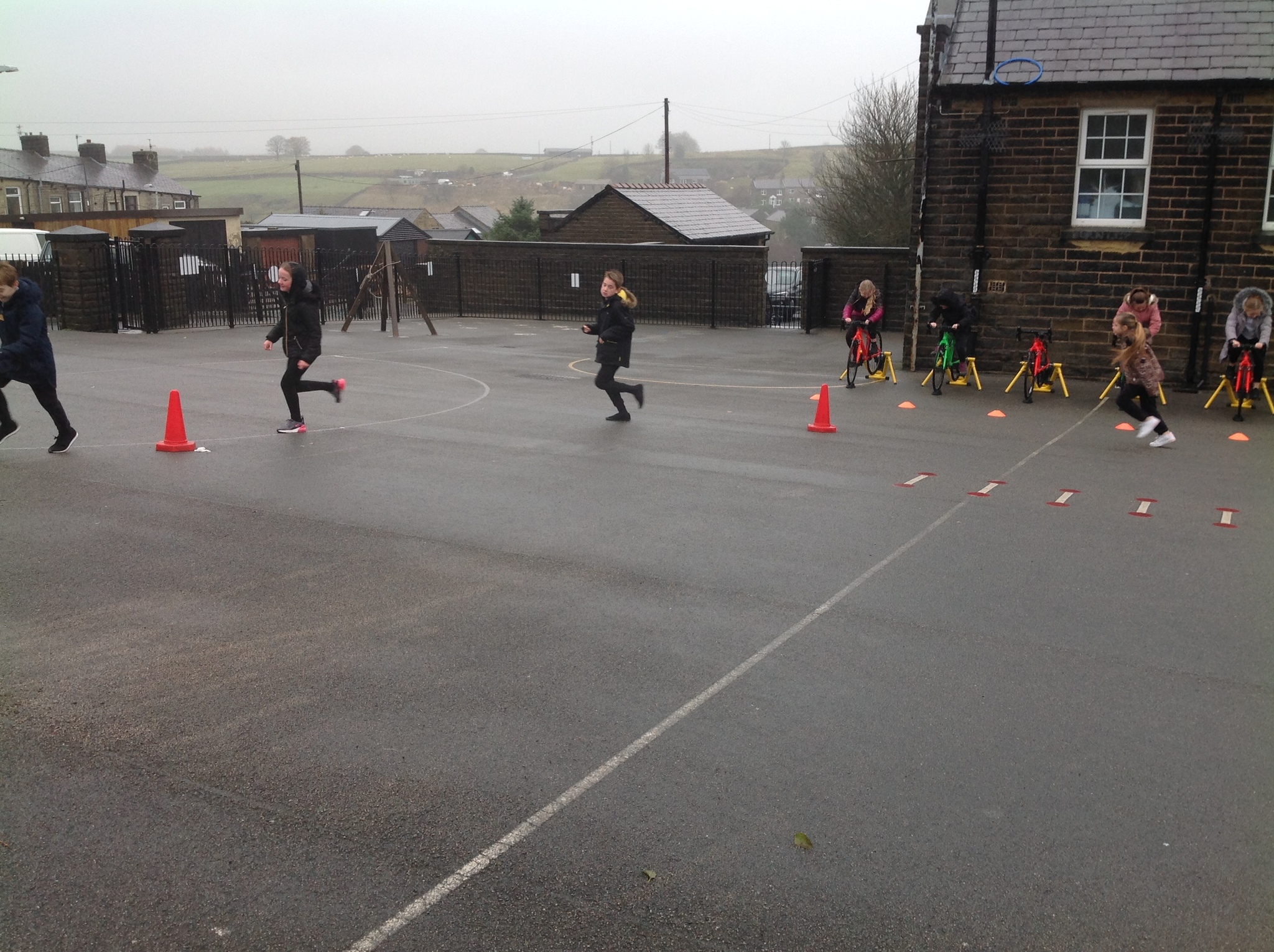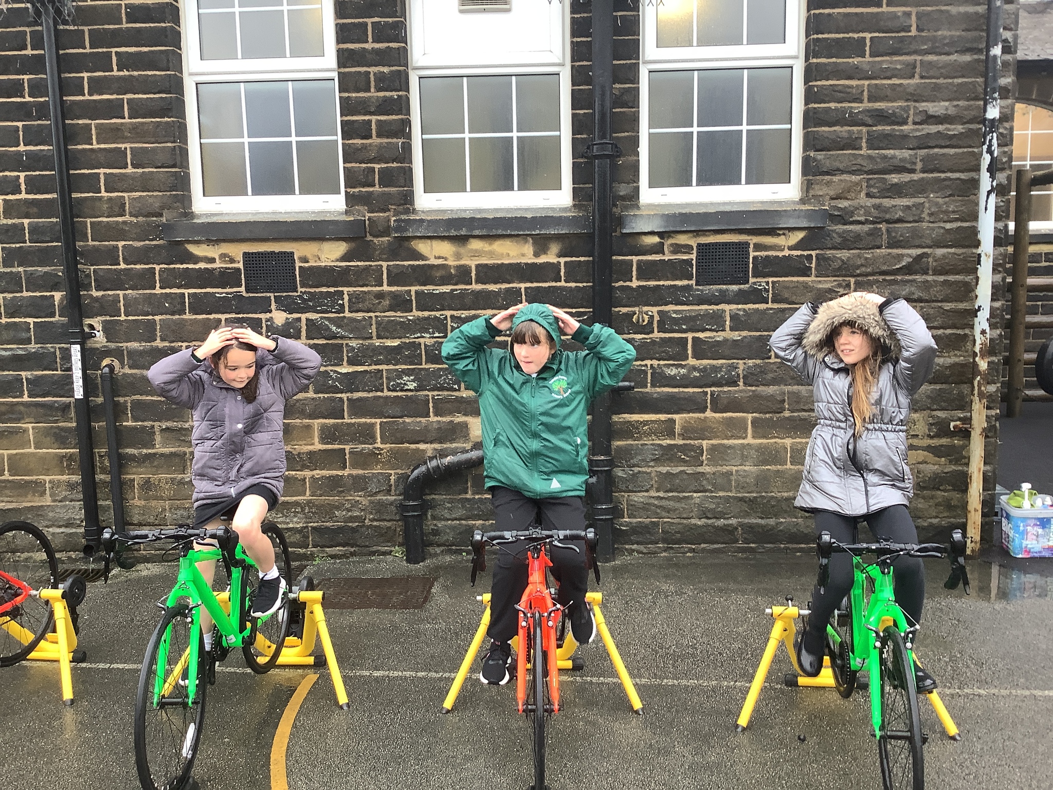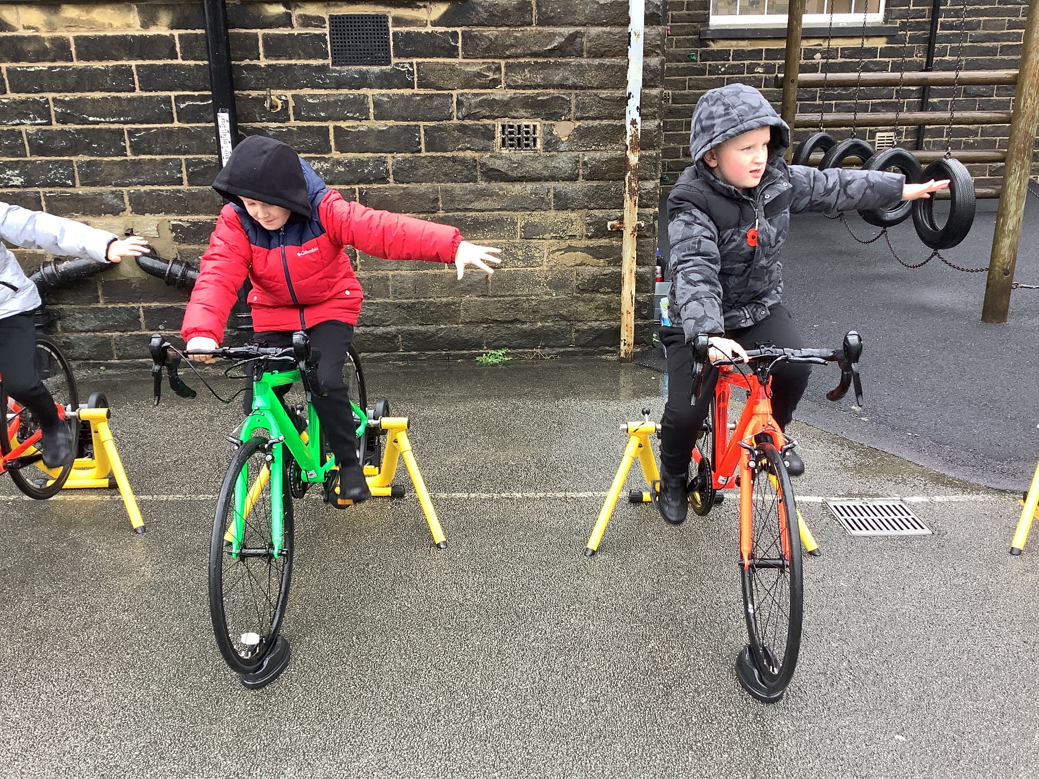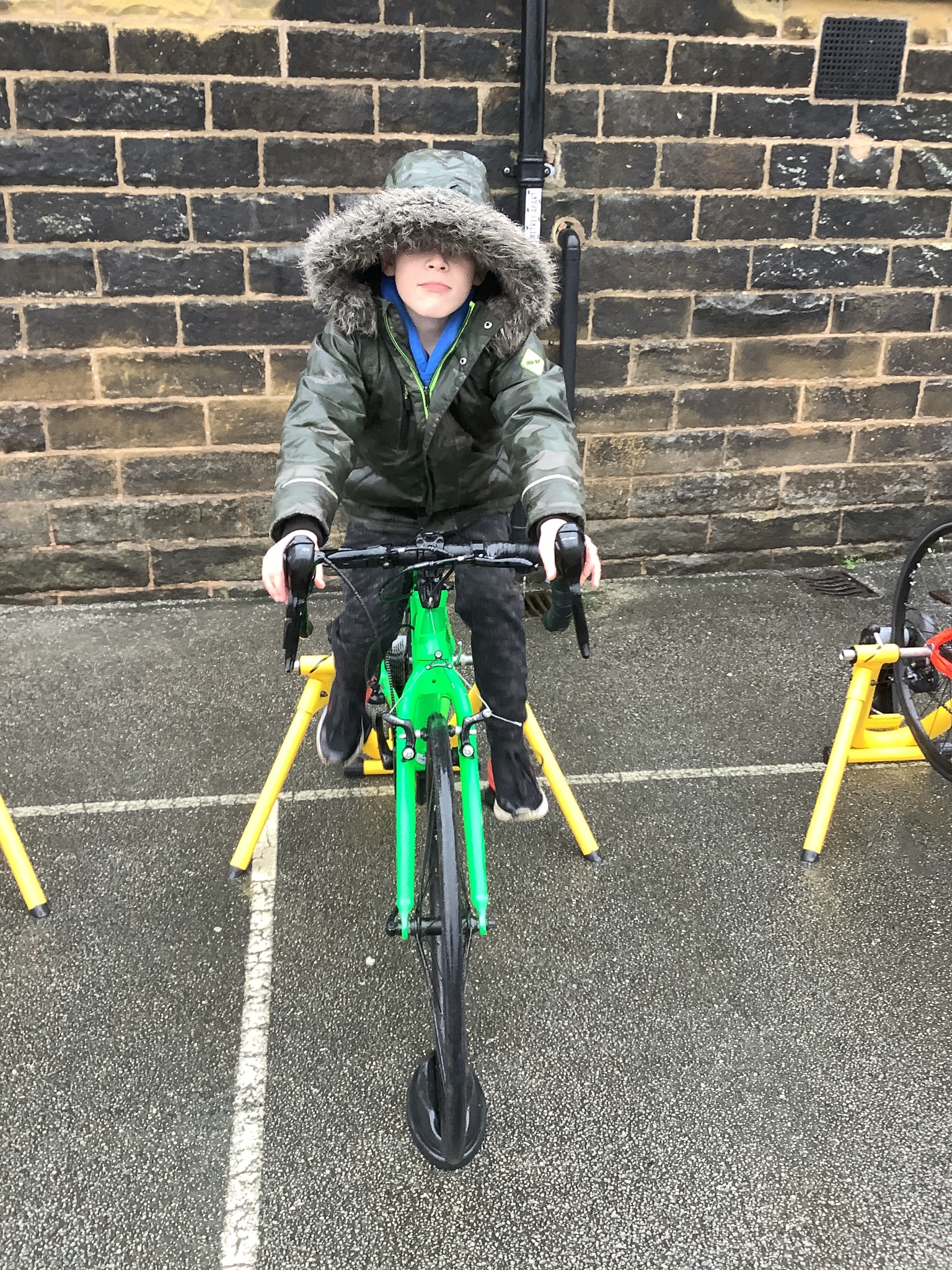 We were lucky enough to have @Trikidz triathlon training in school today for some swim, bike, run and FUN! The children all took part in an outdoor triathlon circuit which involved them running around a circuit, cycling on stationary bikes and performing swimming actions with ropes. Even though the weather was a bit miserable, everyone had a wonderful time and together we covered a huge distance – 178km! Everyone should sleep well tonight!
