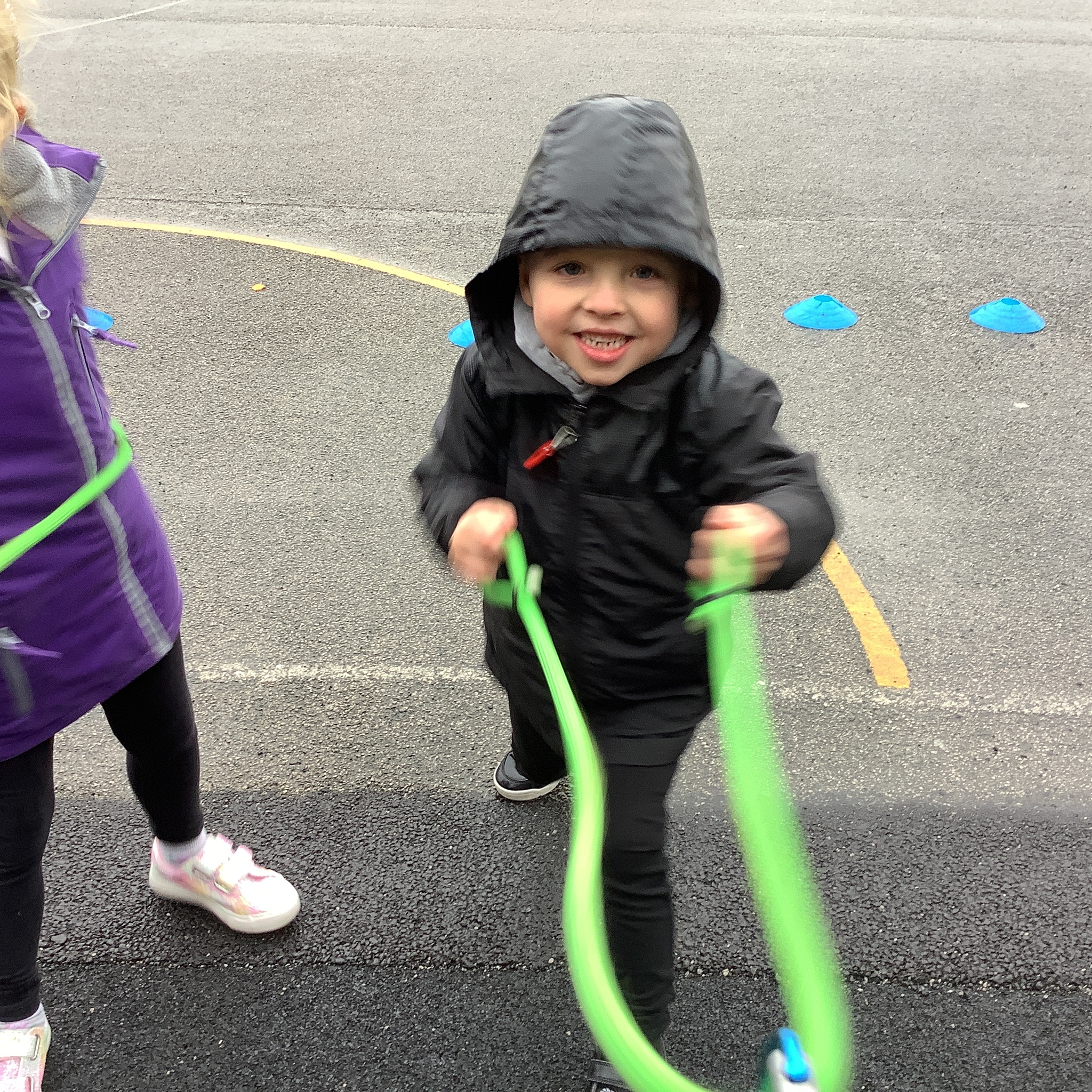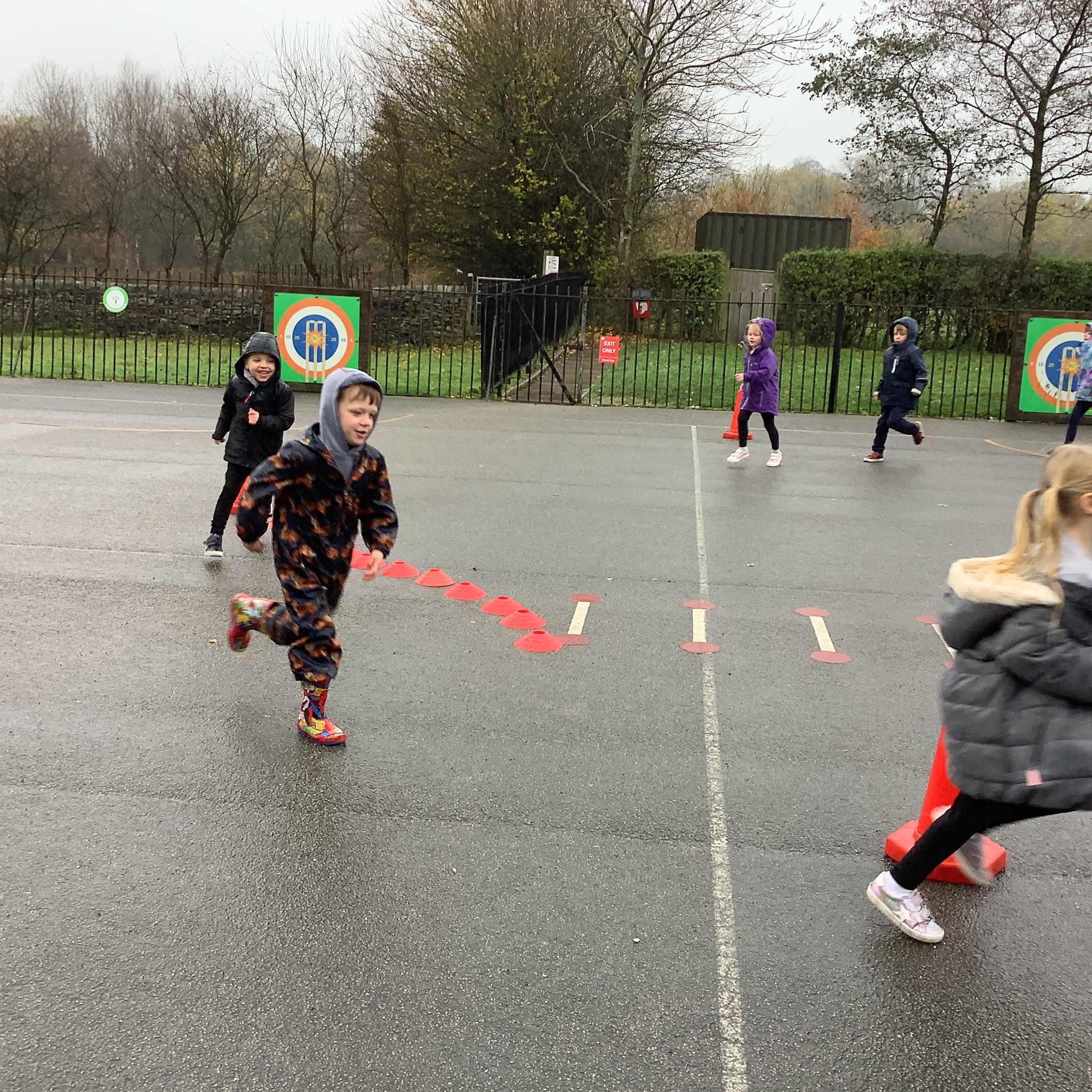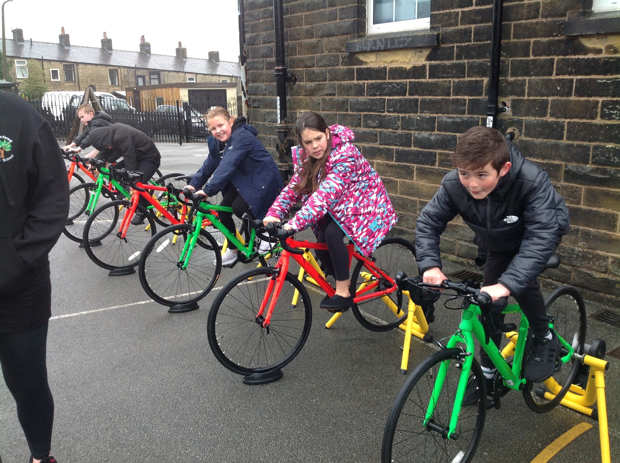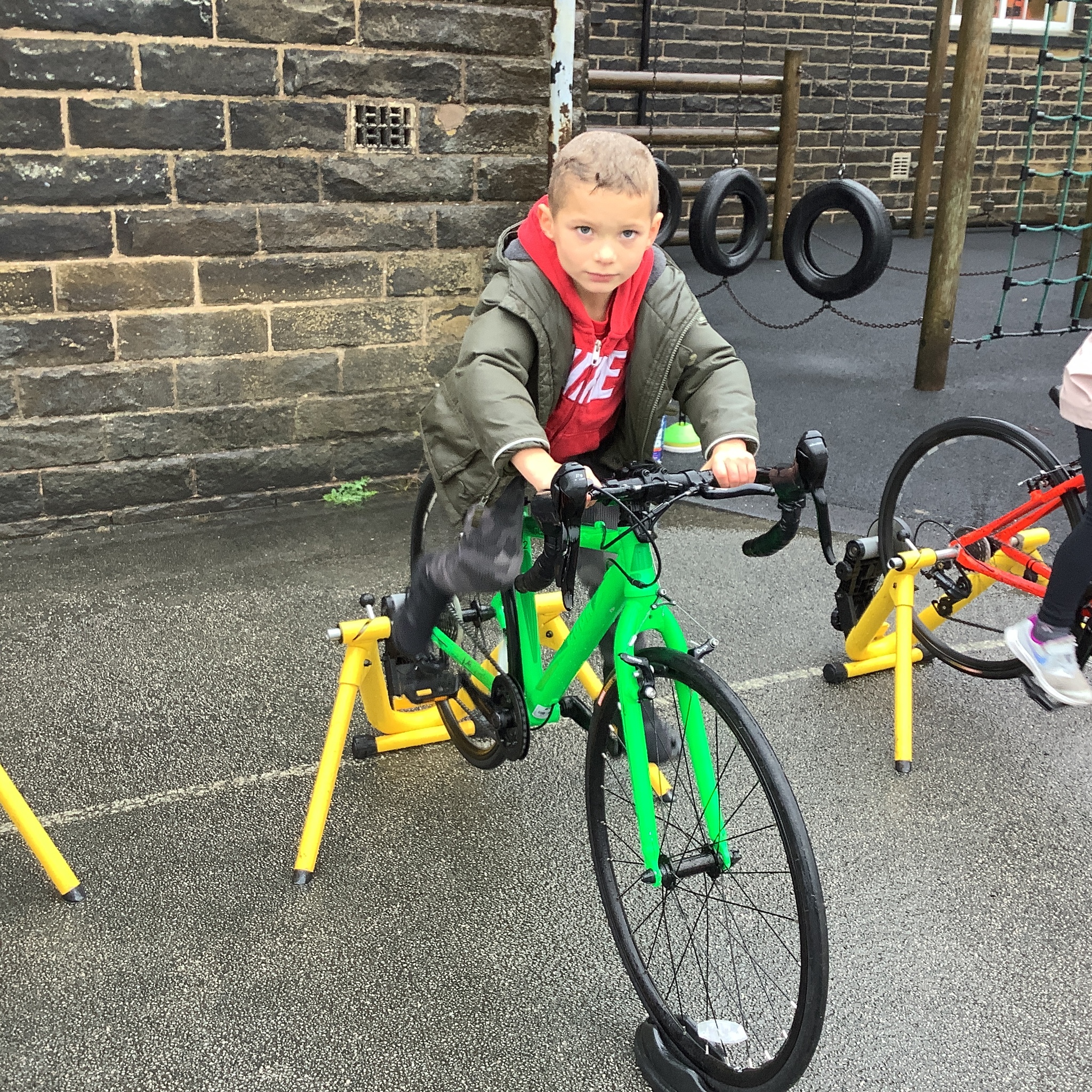 We were lucky enough to have @Trikidz triathlon training in school today for some swim, bike, run and FUN! The children all took part in an outdoor triathlon circuit which involved them running around a circuit, cycling on stationary bikes and performing swimming actions with ropes. Even though the weather was a bit miserable, everyone had a wonderful time and together we covered a huge distance – 178km! Everyone should sleep well tonight!