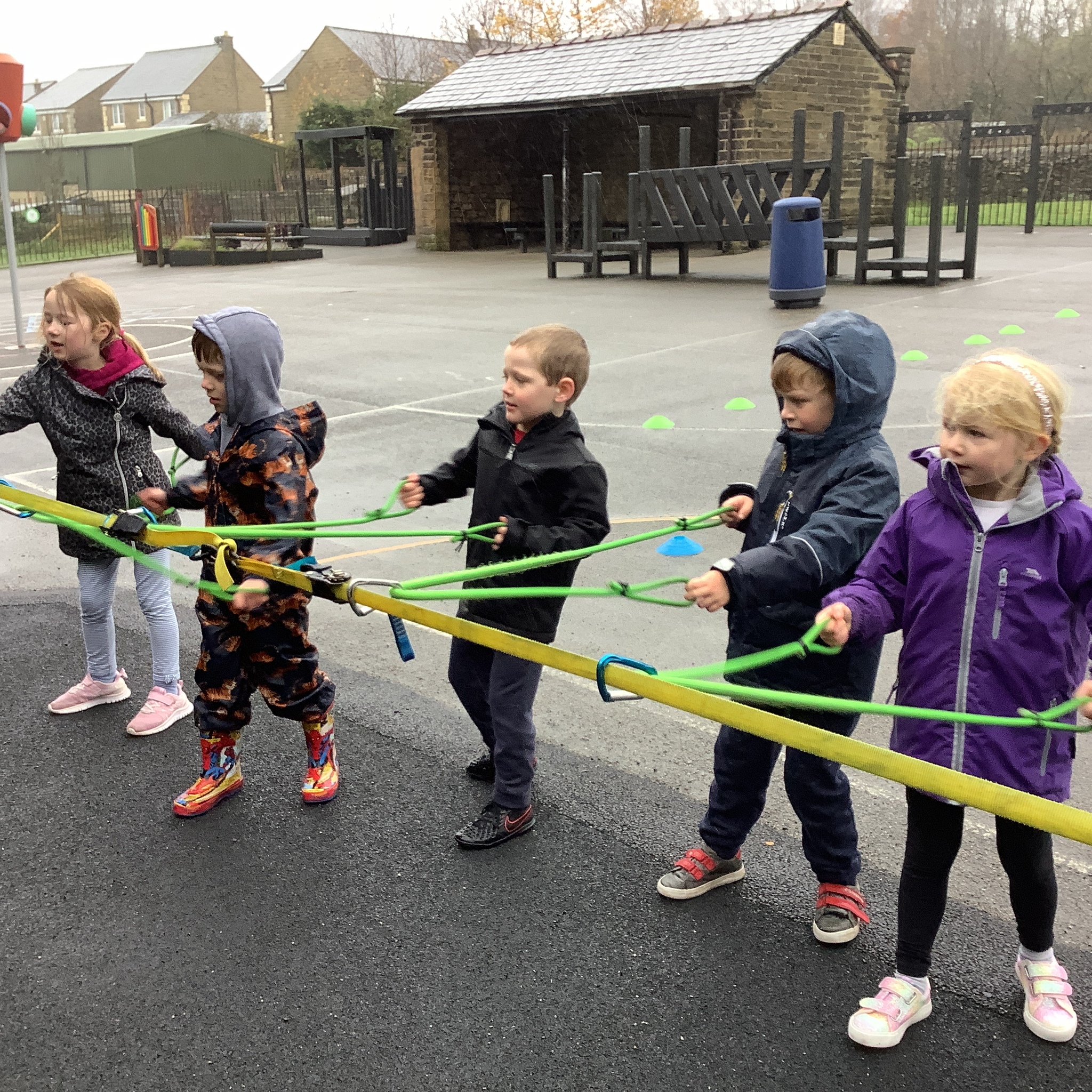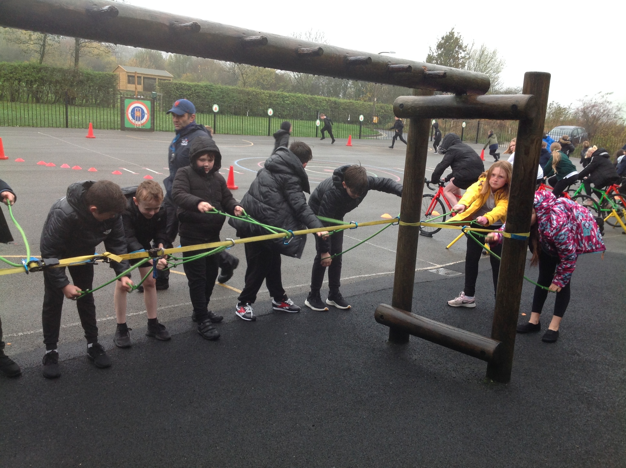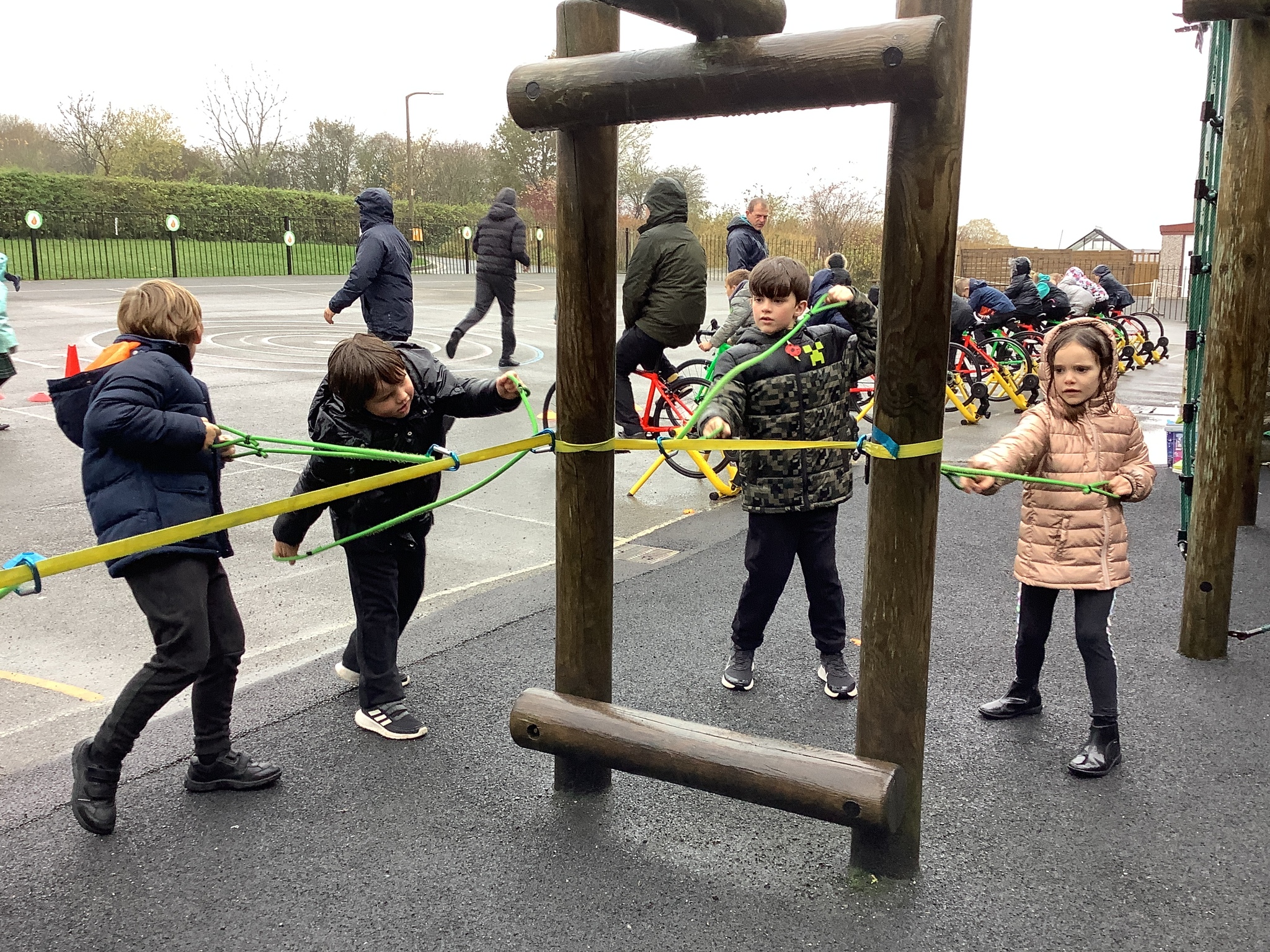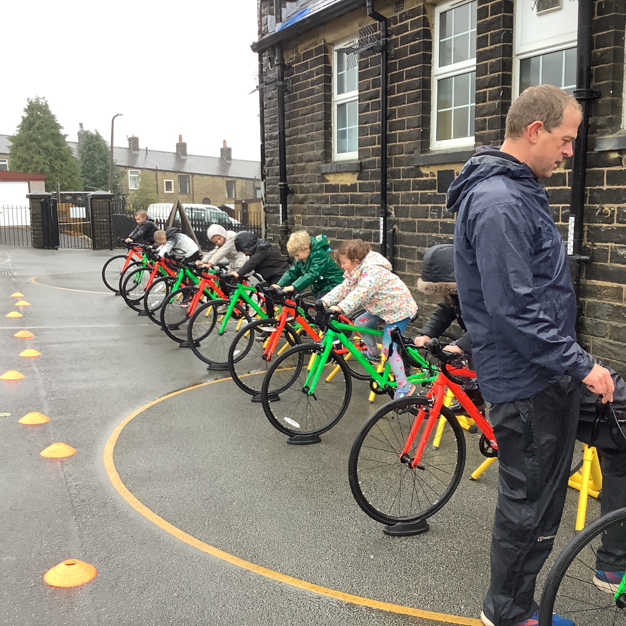 We were lucky enough to have @Trikidz triathlon training in school today for some swim, bike, run and FUN! The children all took part in an outdoor triathlon circuit which involved them running around a circuit, cycling on stationary bikes and performing swimming actions with ropes. Even though the weather was a bit miserable, everyone had a wonderful time and together we covered a huge distance – 178km! Everyone should sleep well tonight!