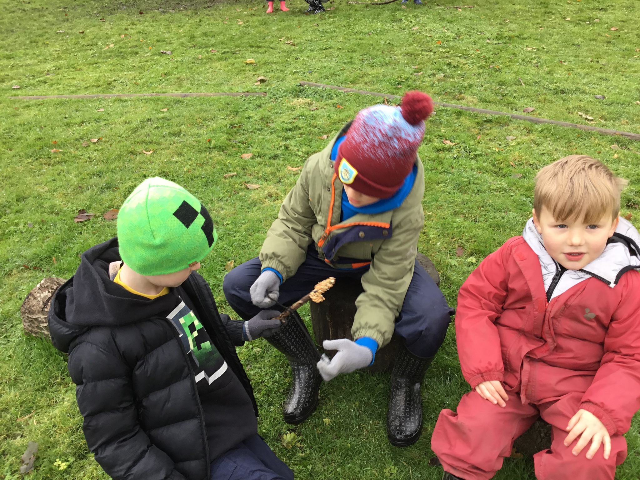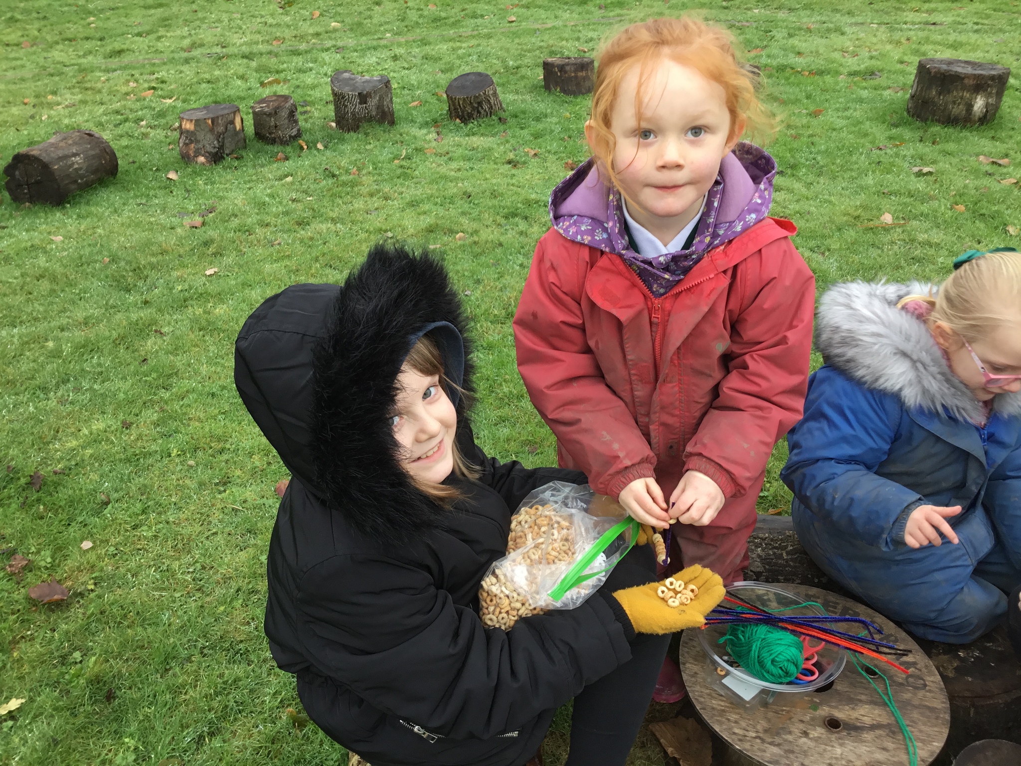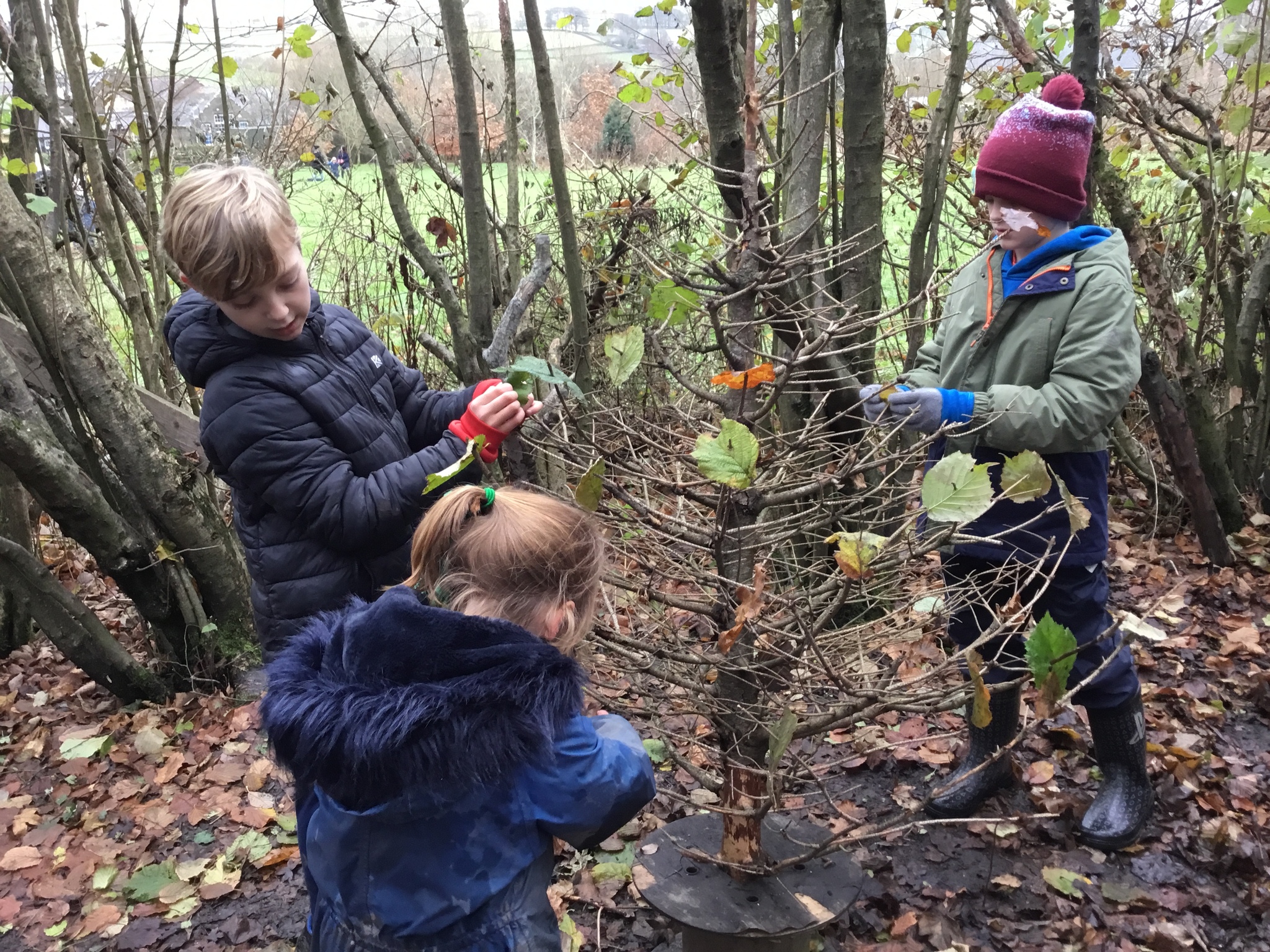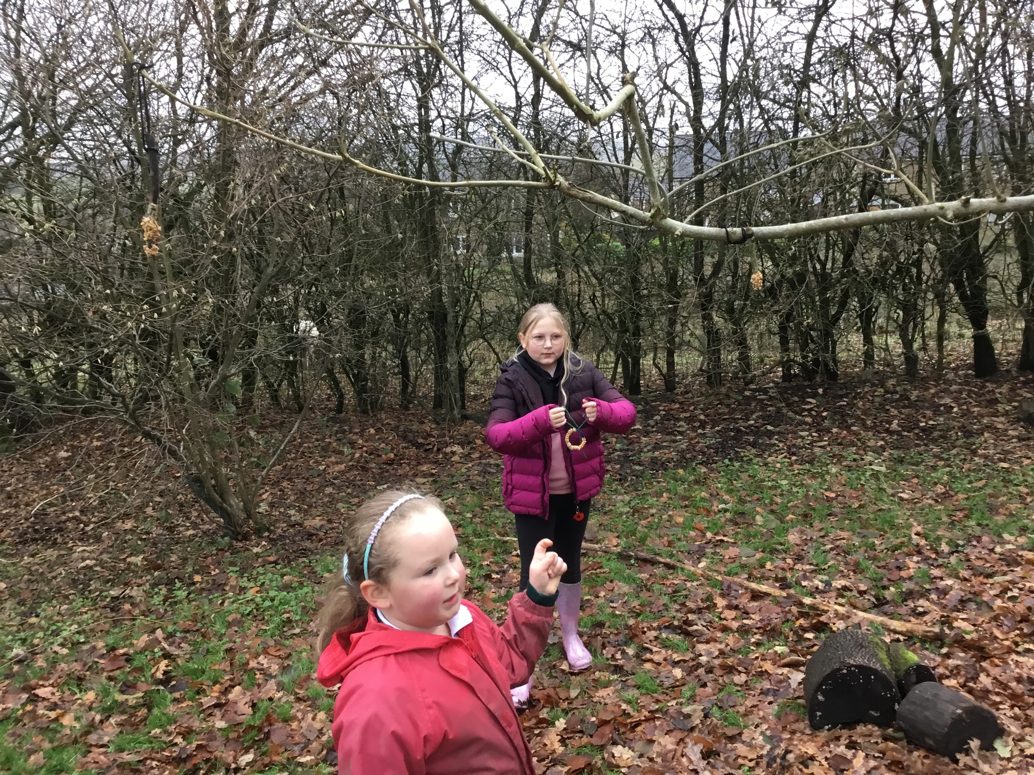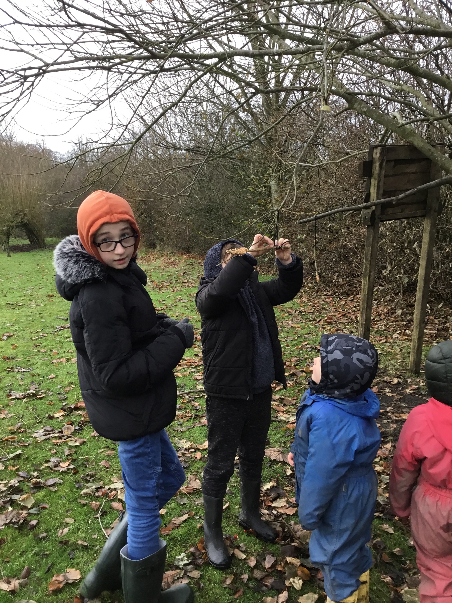 We collected sticks to make seedy bird feeders and hung them in the trees.