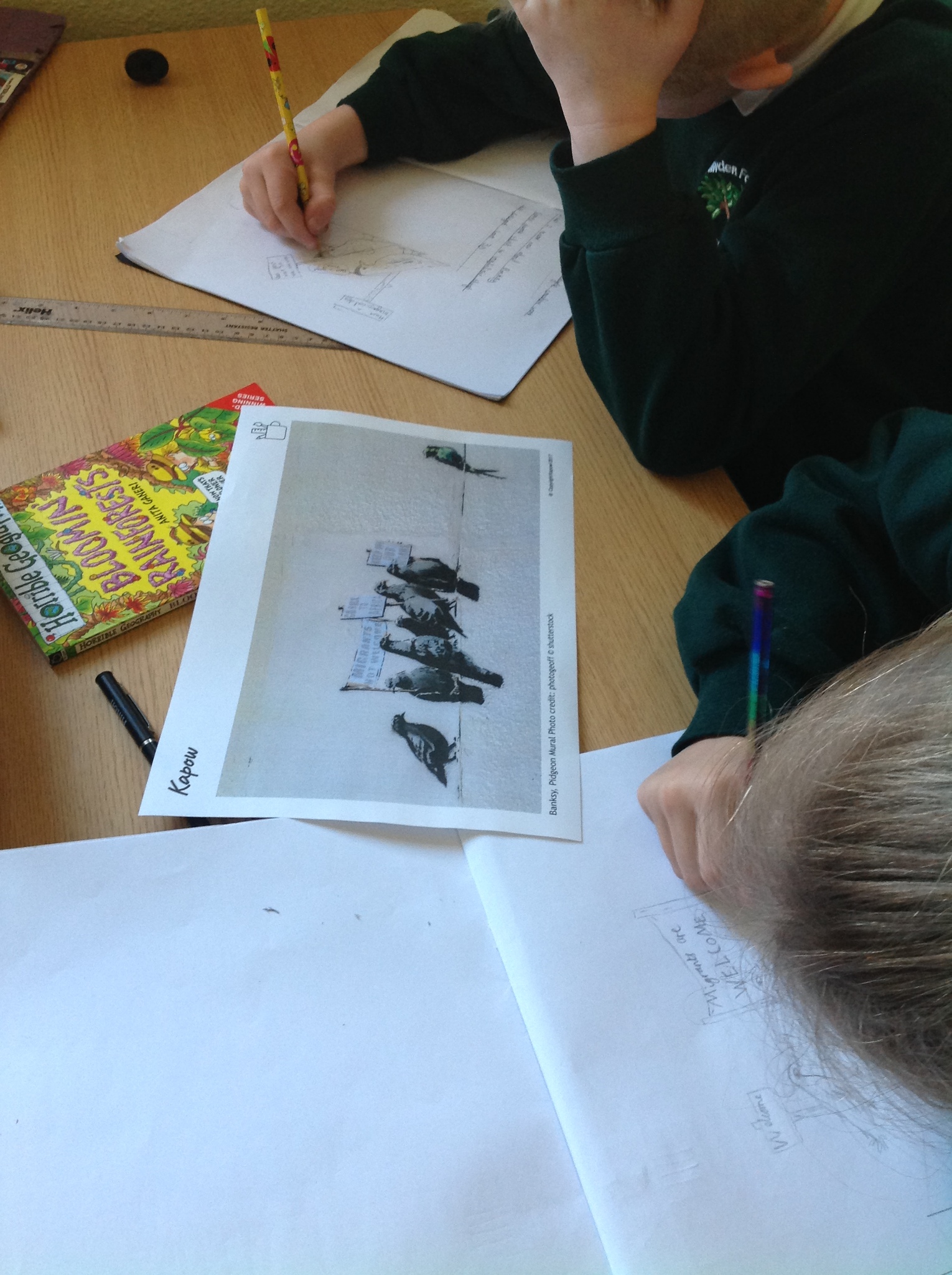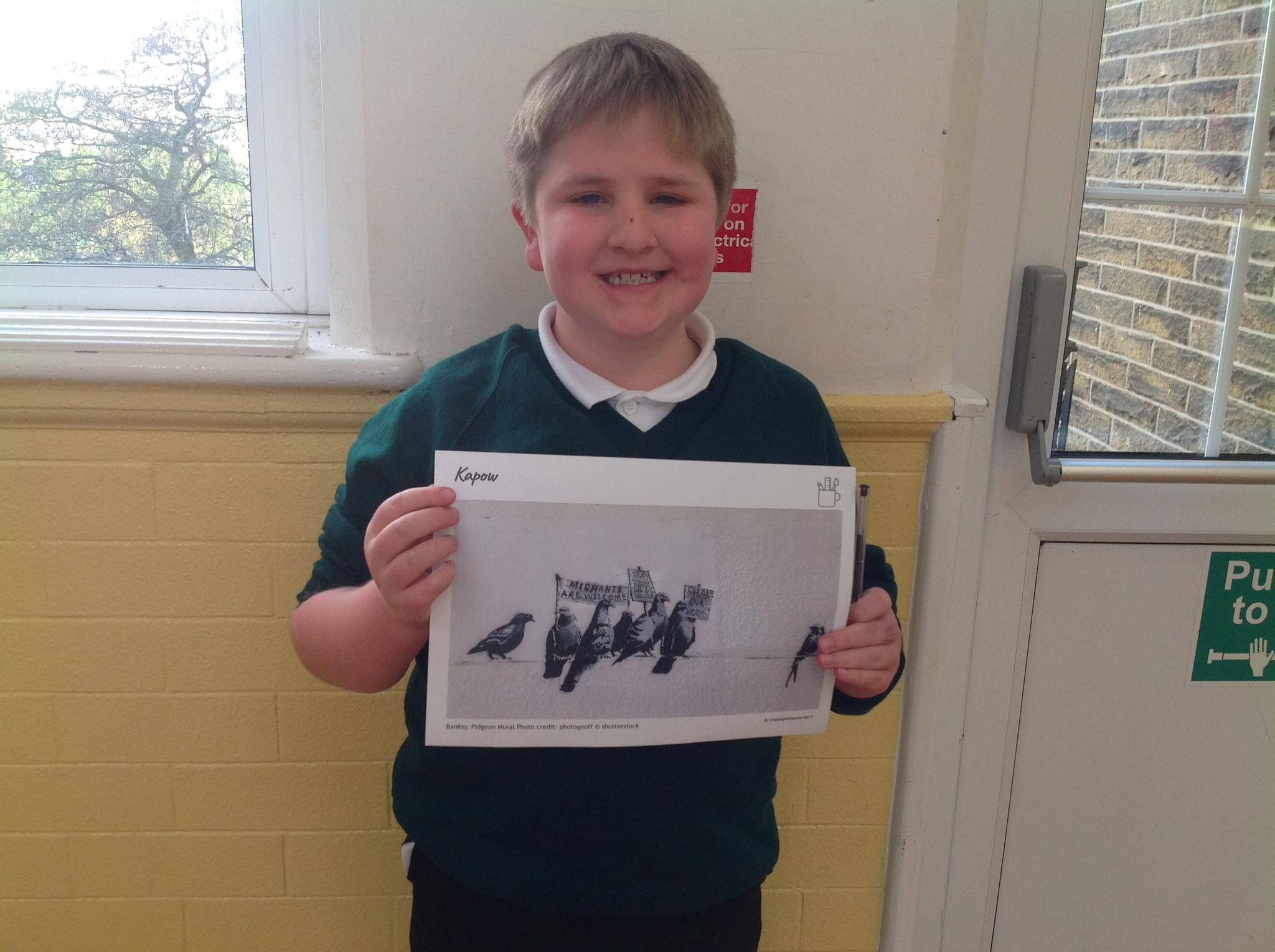 The Year Five children created some wonderful ideas, both individually and collaboratively, during today's art lesson. We studied Banksy's Clacton Pigeon Mural piece and had an amazing discussion about our views and values. We considered how to treat people and showing mutual respect for everybody. The children then individually came up with ideas as to how they would edit Banksy's work to include more positive and welcoming messages. They then collaborated with their partner to edit an actual image with their ideas. Ideas included changing the placard messages, altering the type and colours of the birds and even different animals! They had a mature, respectful conversation which resulted in some amazing art work. Well done Year 5!