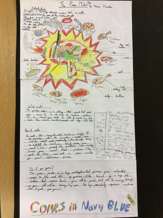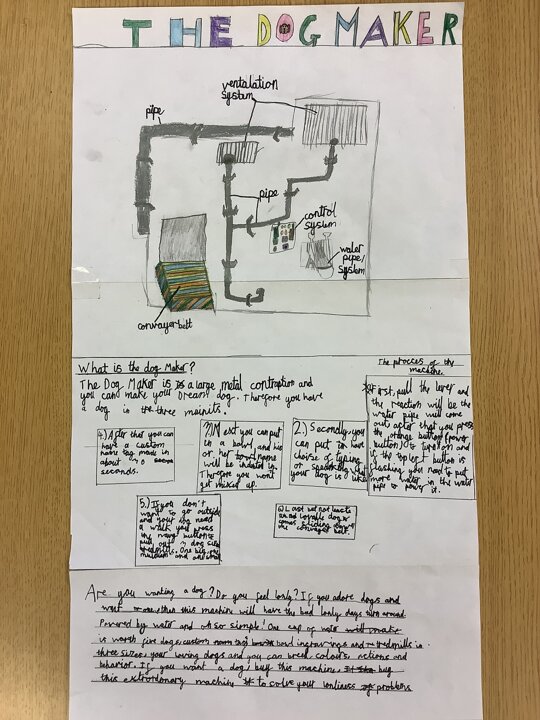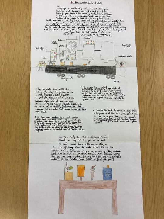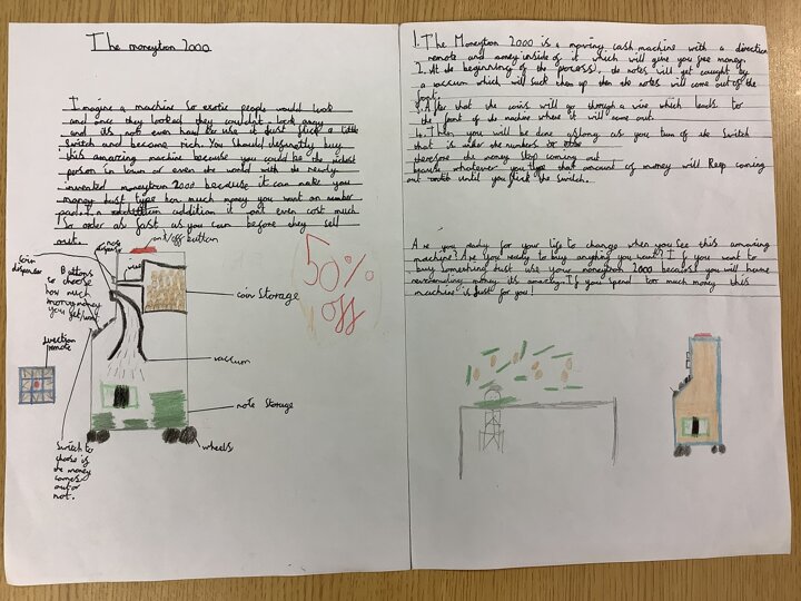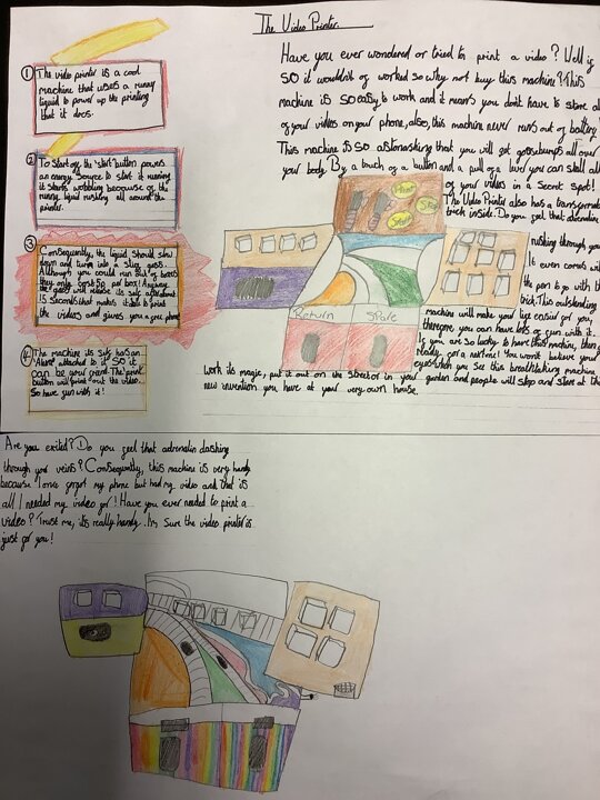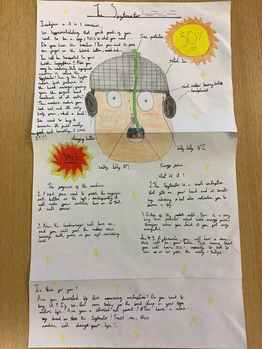 In our English work, we looked at Wallace and Gromit inventions before exploring different causal conjunctions and the features of explanation texts. We then invented and designed our own machines prior to explaining how they worked. Here are just a few of them but we are proud of all of the children who worked tremendously hard on their final text. As a result, they are all going to be displayed in school. Fantastic work, Year 4!