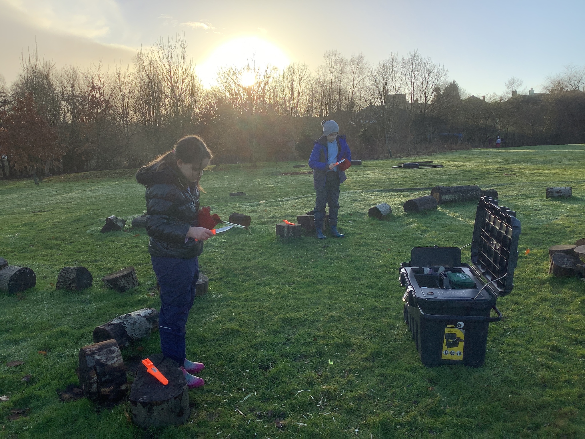 Year Five had a great time during our First Forest School session of 2022. We created local area sketches, discussed human and physical geographical features all around us, discussed the dew on the grass and the fact that we can see 'The Wreck' from our school field. Lots of us didn't realise that. Later on, we spotted paragliders, birds chirping and the moon made an appearance! In addition to this, we worked in small group to practise and refine our whittling skills, using appropriate safety and handling techniques.