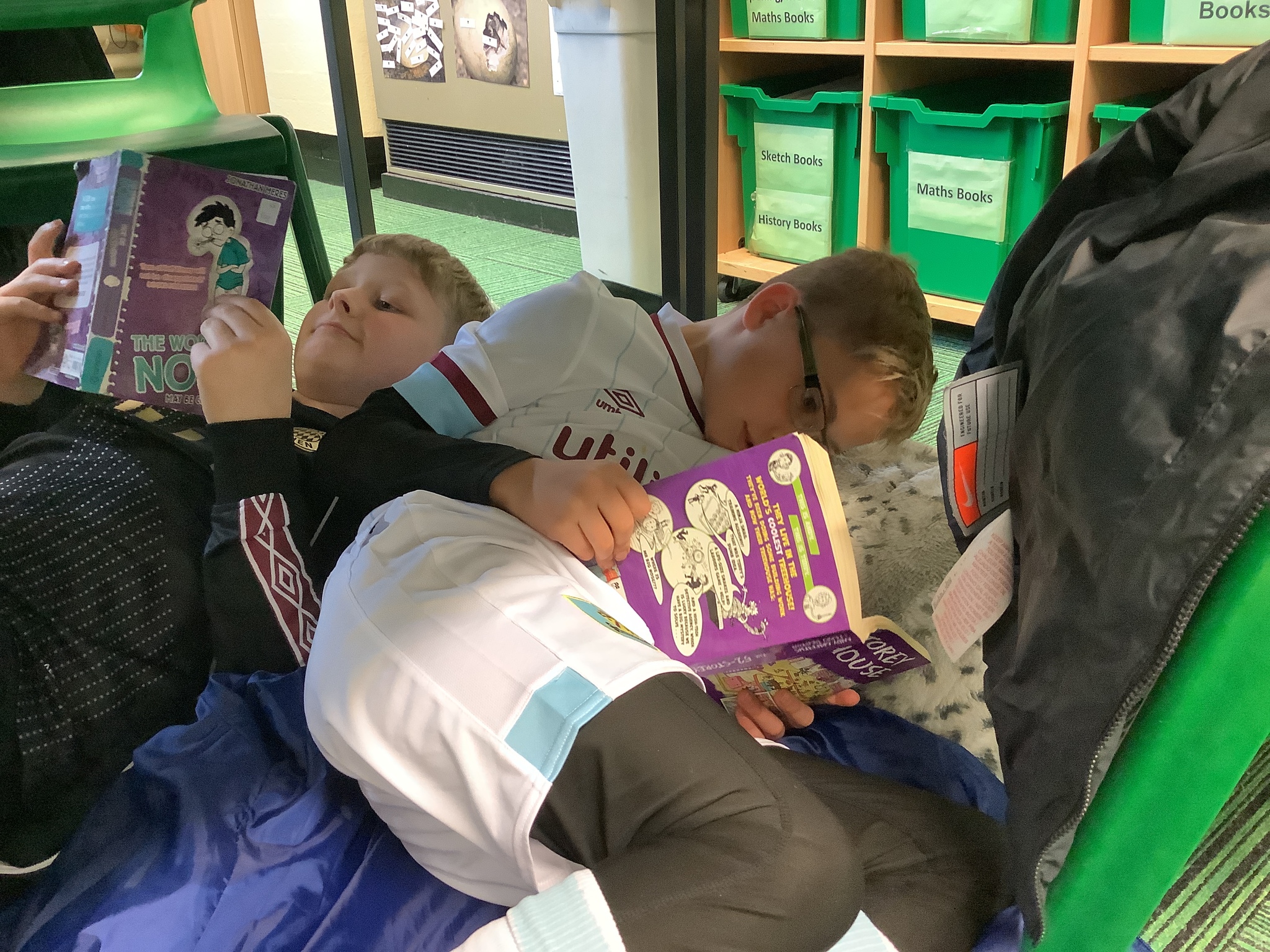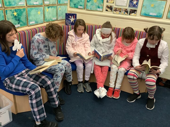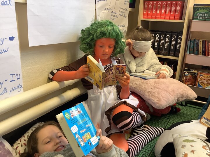 We've had a terrific World Book Day, which was kicked off by a special assembly where the librarians shared their favourite books and the reasons why they liked them. They were all so brave to speak in front of the whole school. Within our classes we have completed a plethora of exciting activities all linked to books and this year's theme 'You Are a Reader'. The library has been open every break and lunch time for children to read and share books, and we even had a food and book character quiz in the dinner hall! Here's a flavour of some of the things we got up to today.