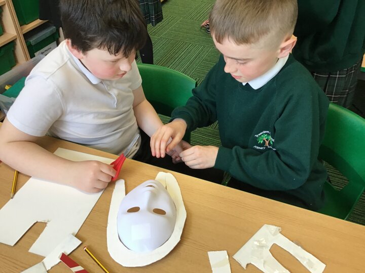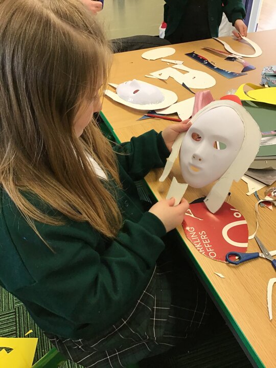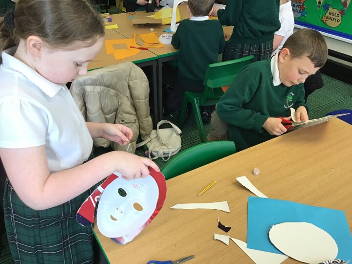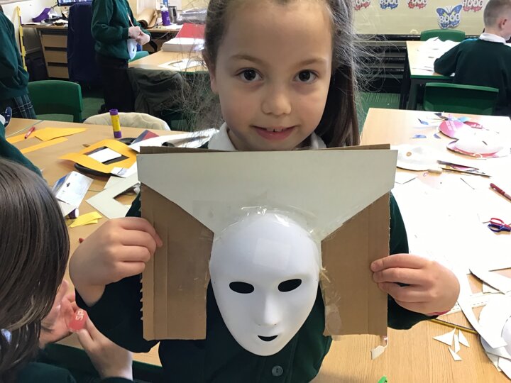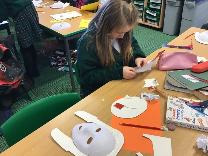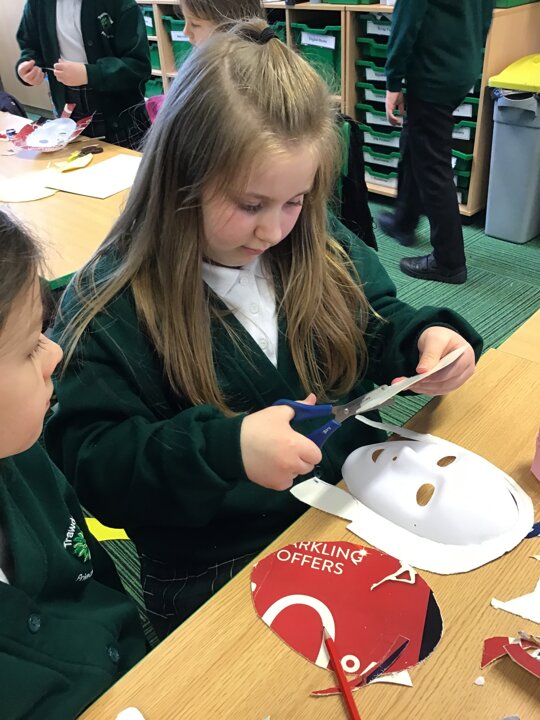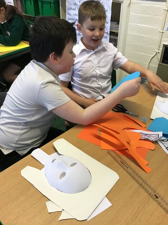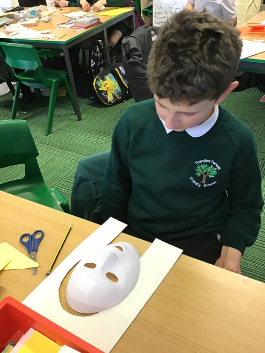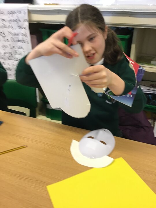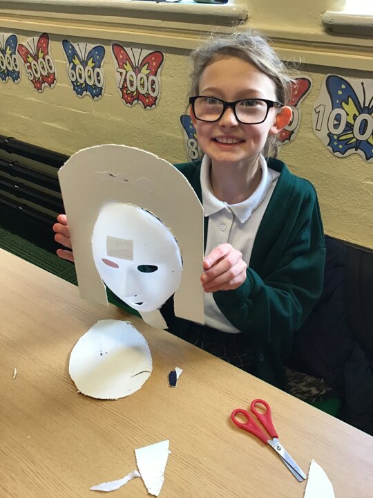 At the beginning of the year, Year 4 wanted to make an Egyptian mask as part of their Bucket List activities. Today, we began the base, however, our next step will be adding papier mache. We persevered in cutting out the stiff card and exploring how our frame fit around the mask. The designs are our own work. Keep a look out for further photos.