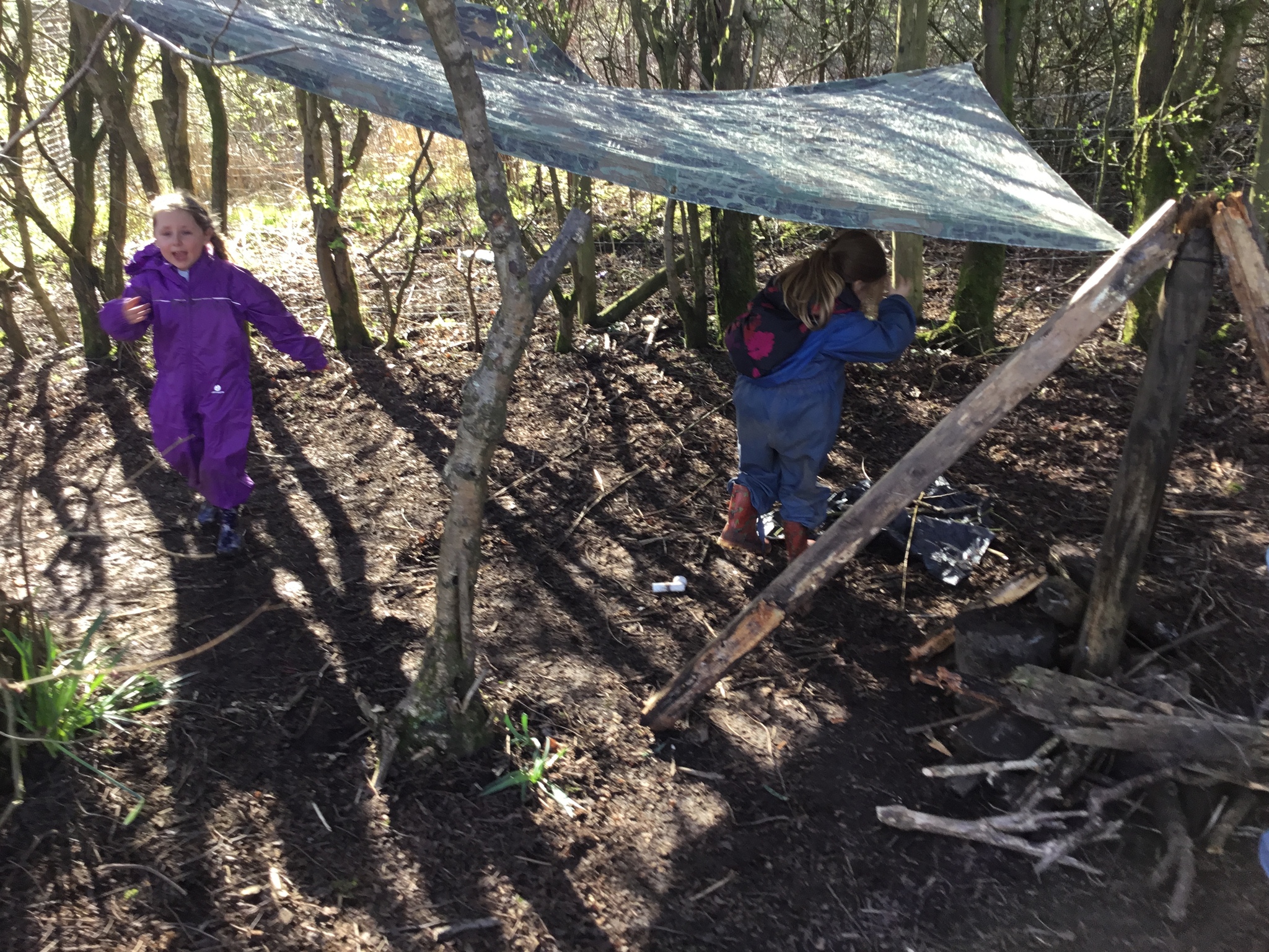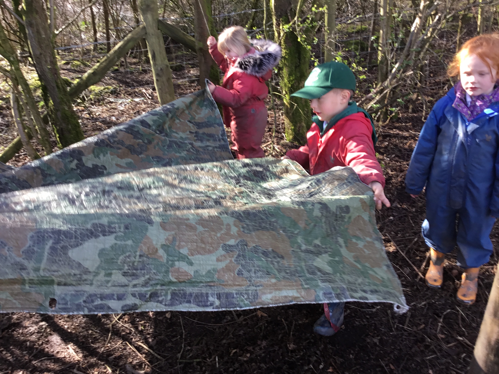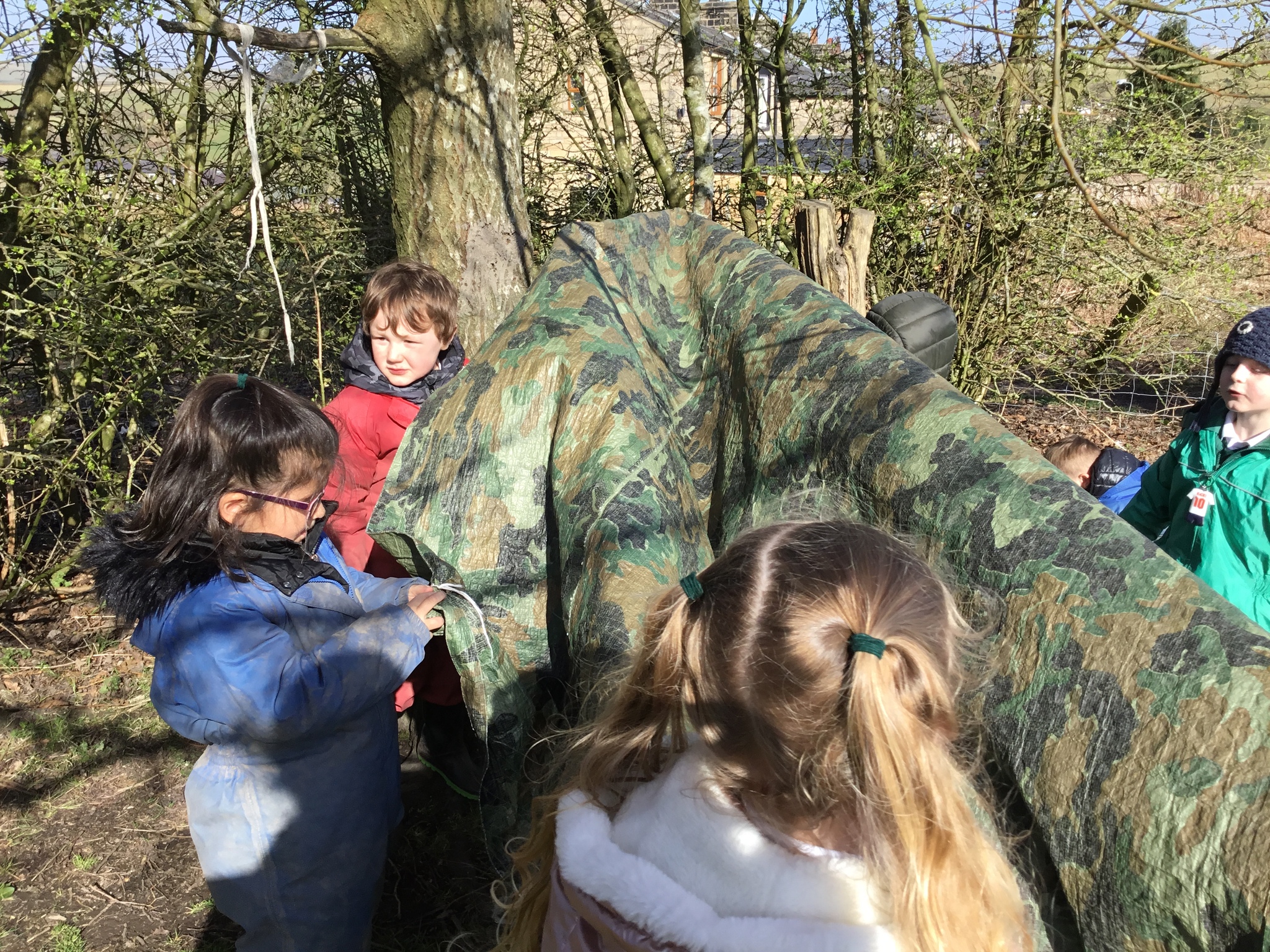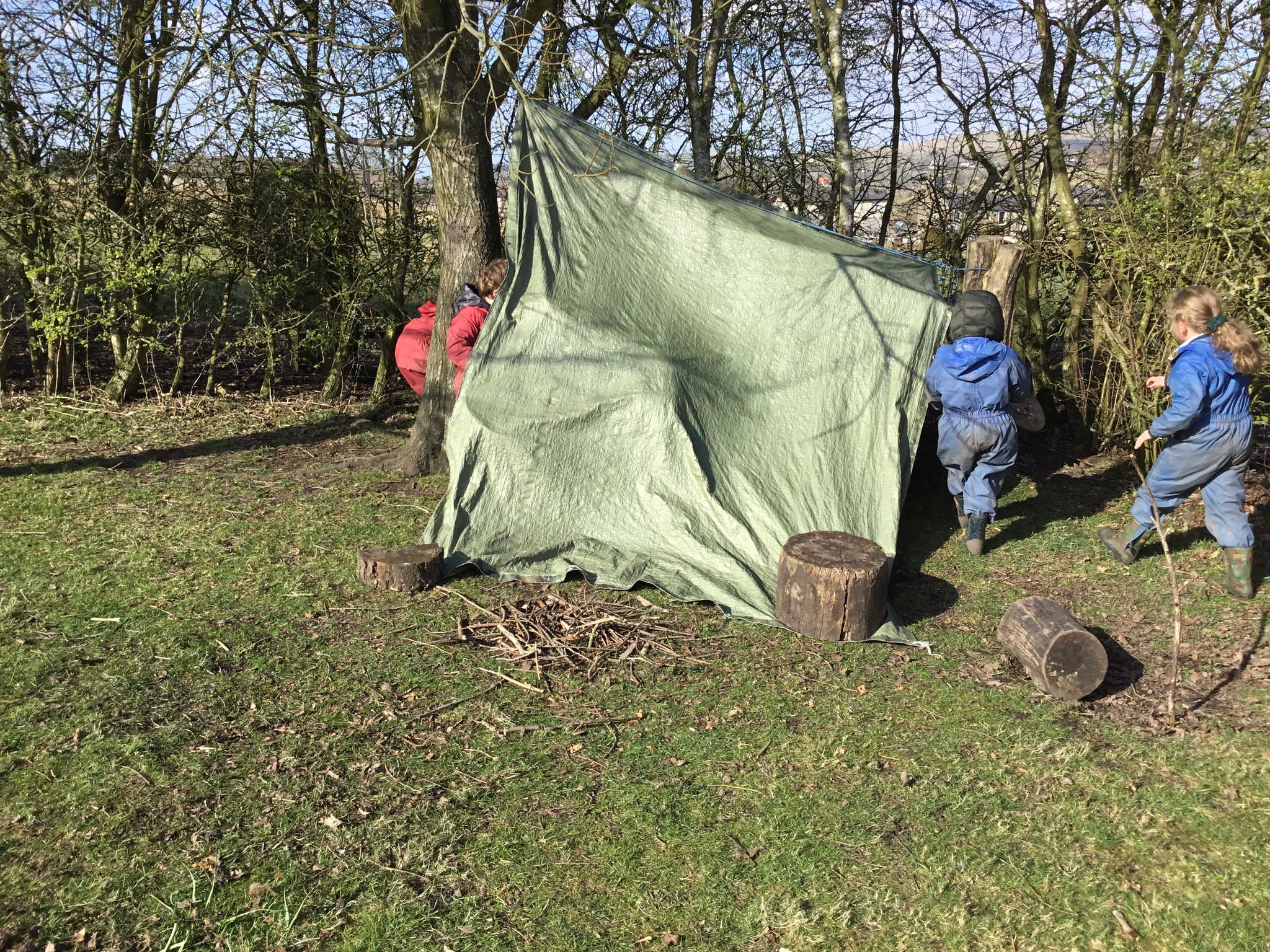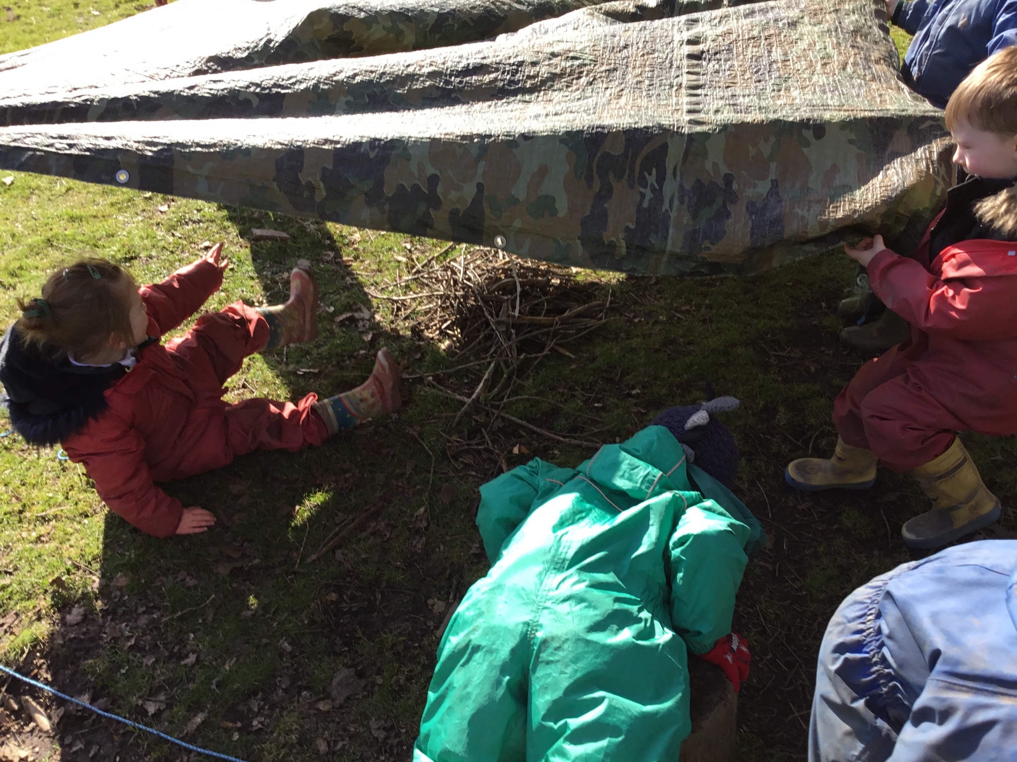 We split into 2 teams and worked together to build a shelter. Children had lots of good ideas for what we might need inside and used their imagination well to gather the necessities.