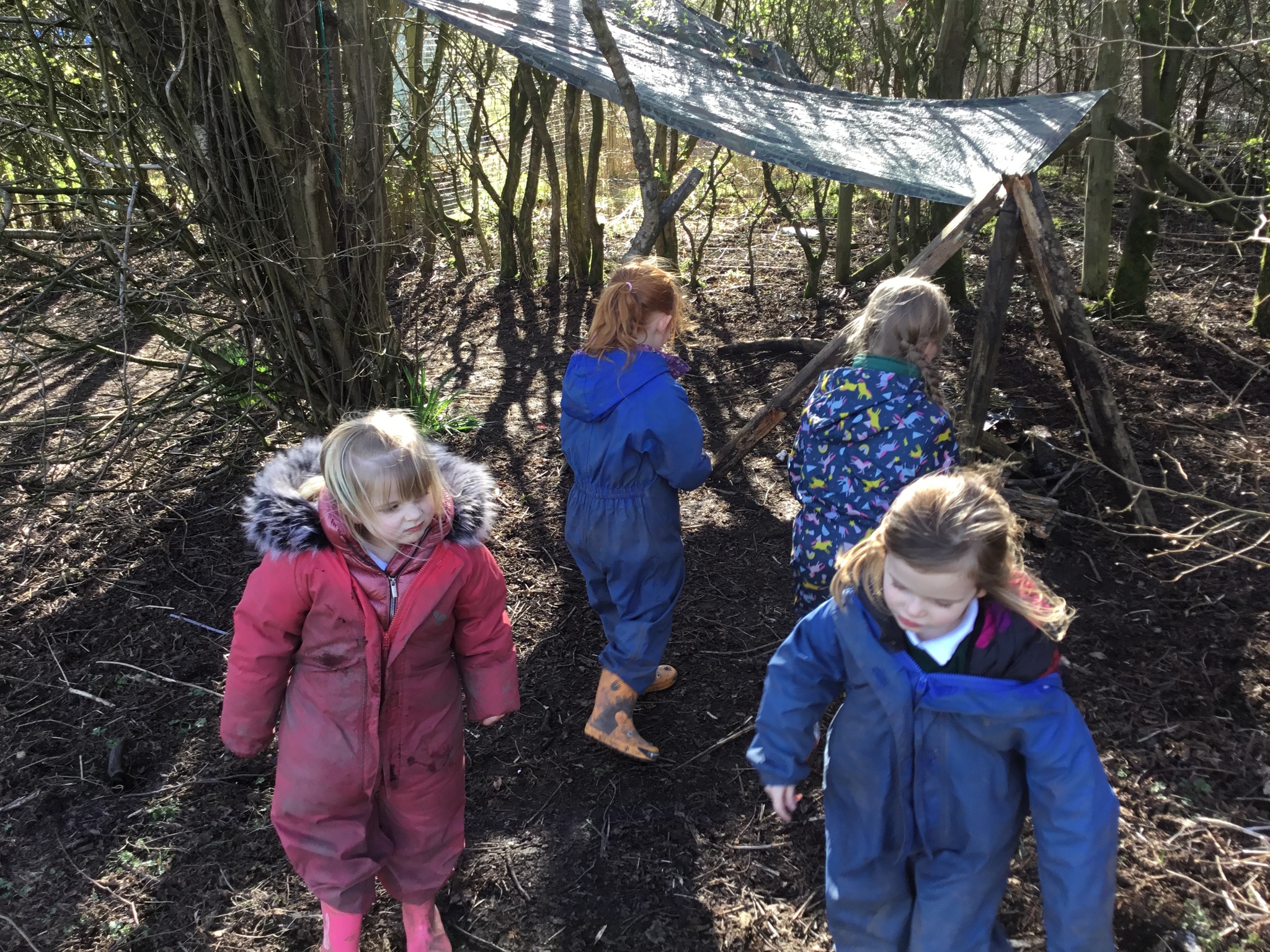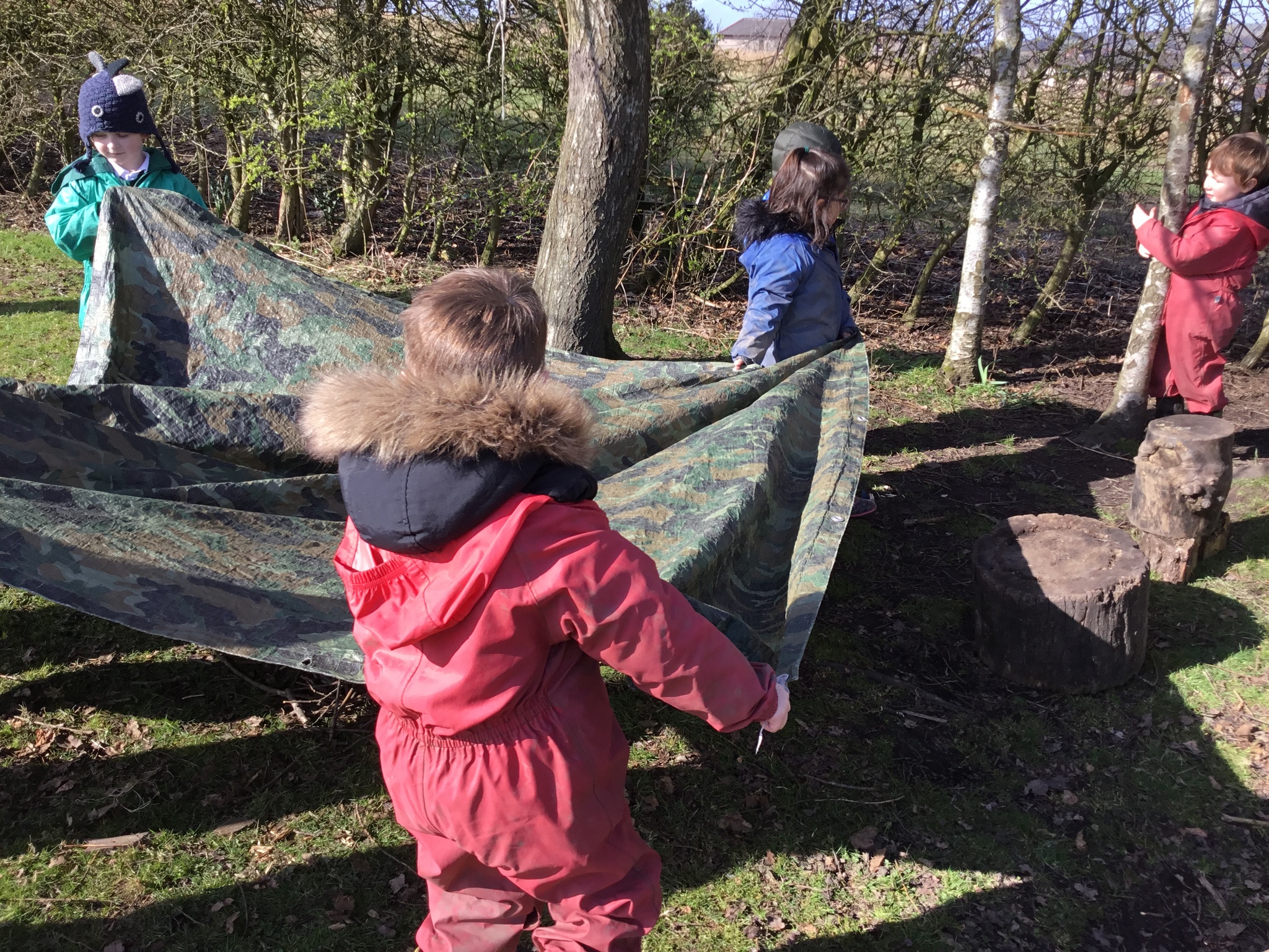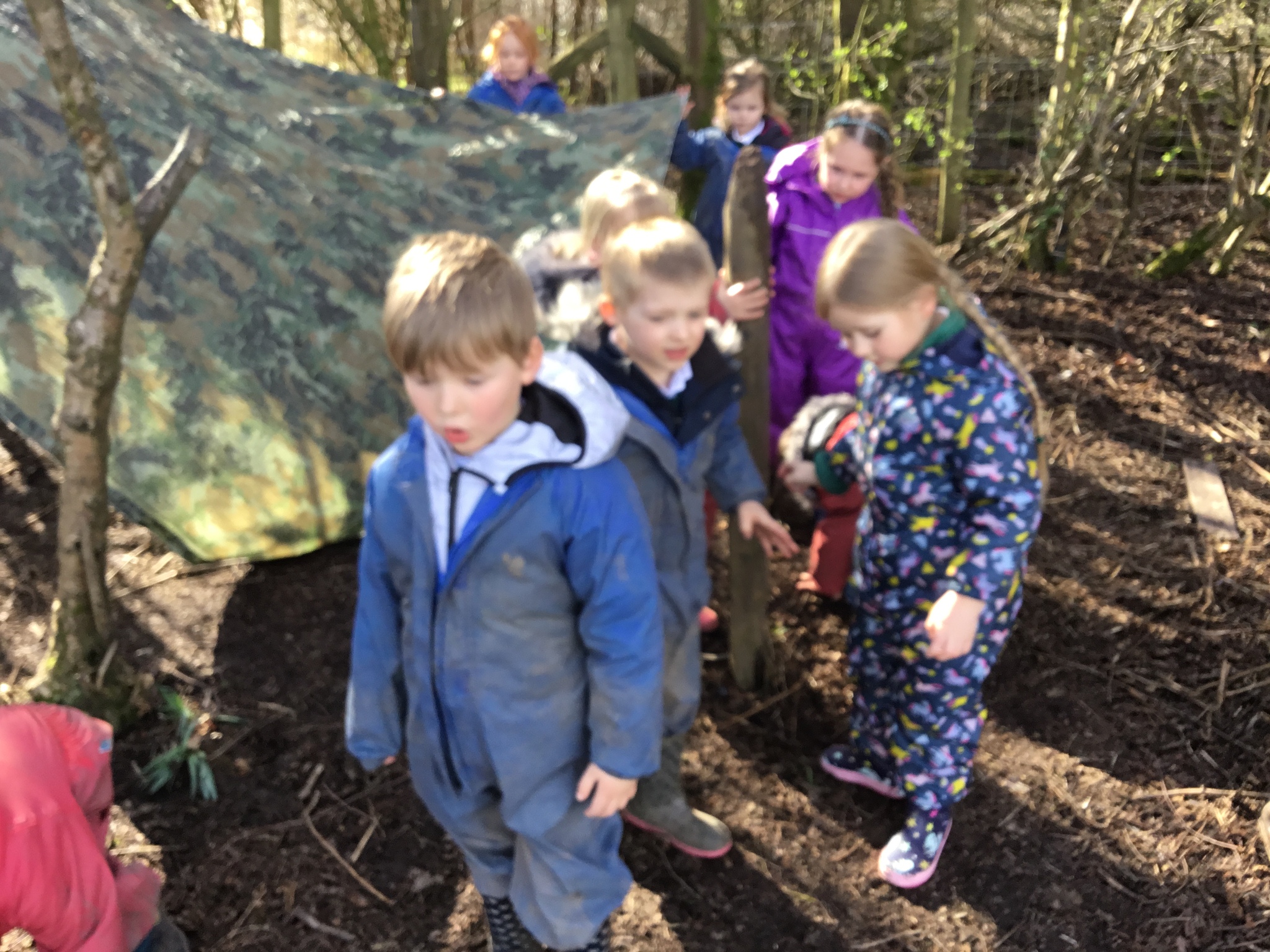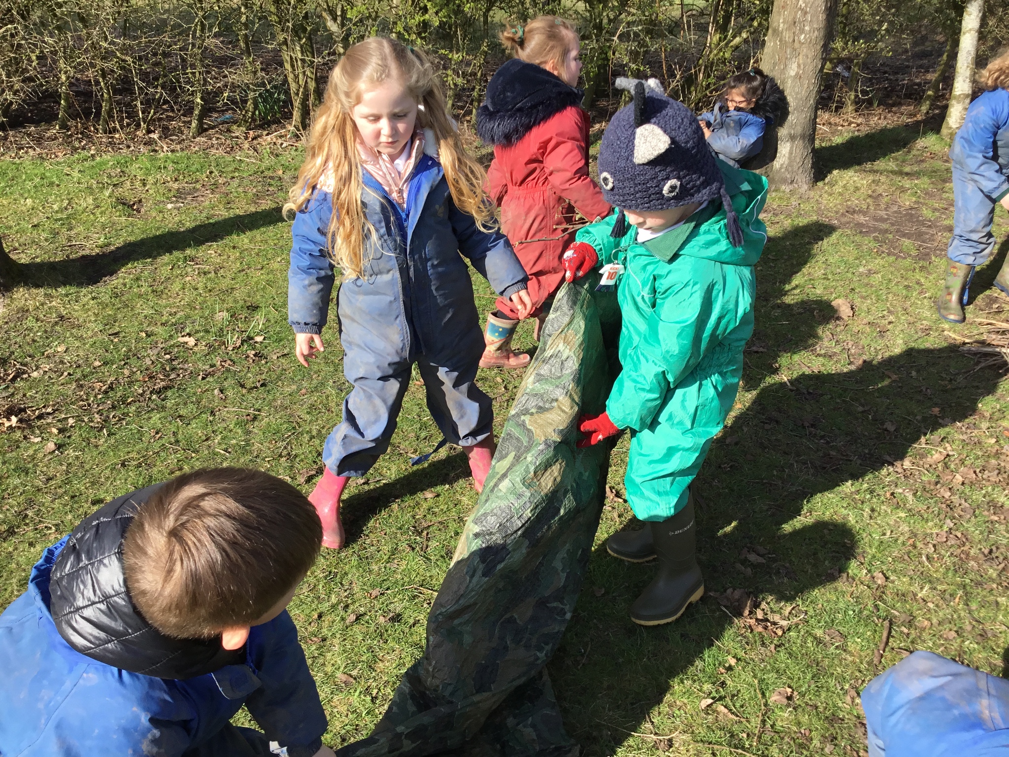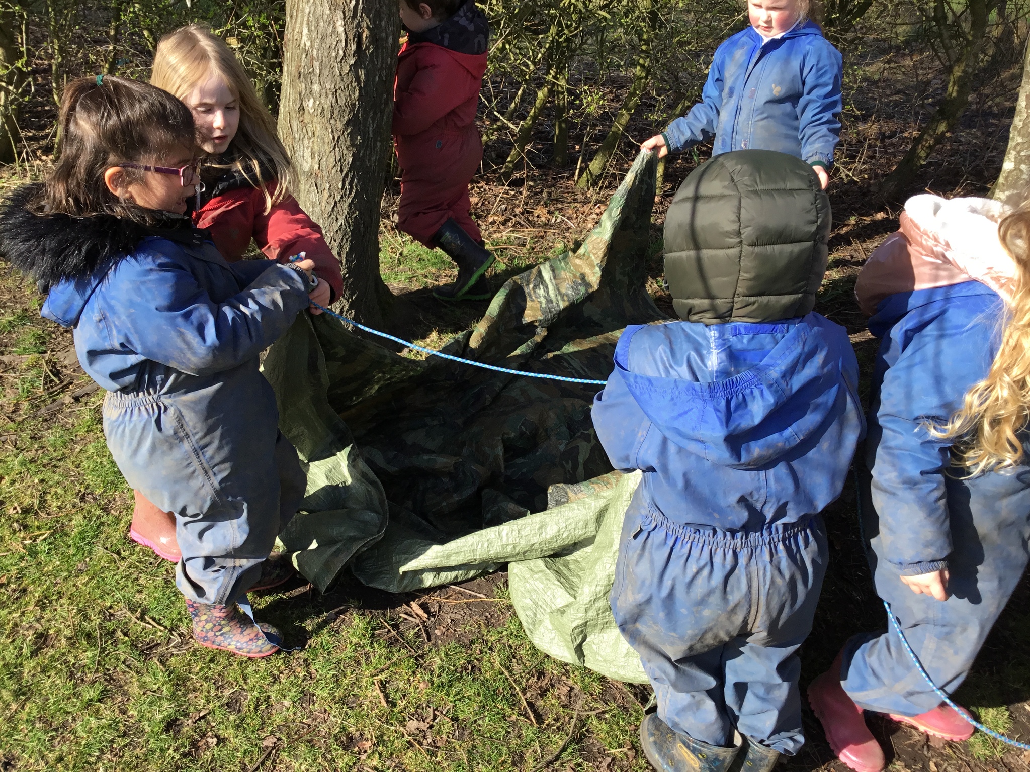 We split into 2 teams and worked together to build a shelter. Children had lots of good ideas for what we might need inside and used their imagination well to gather the necessities.