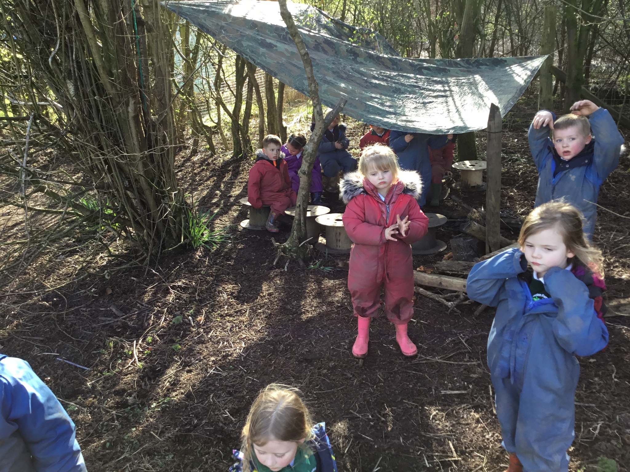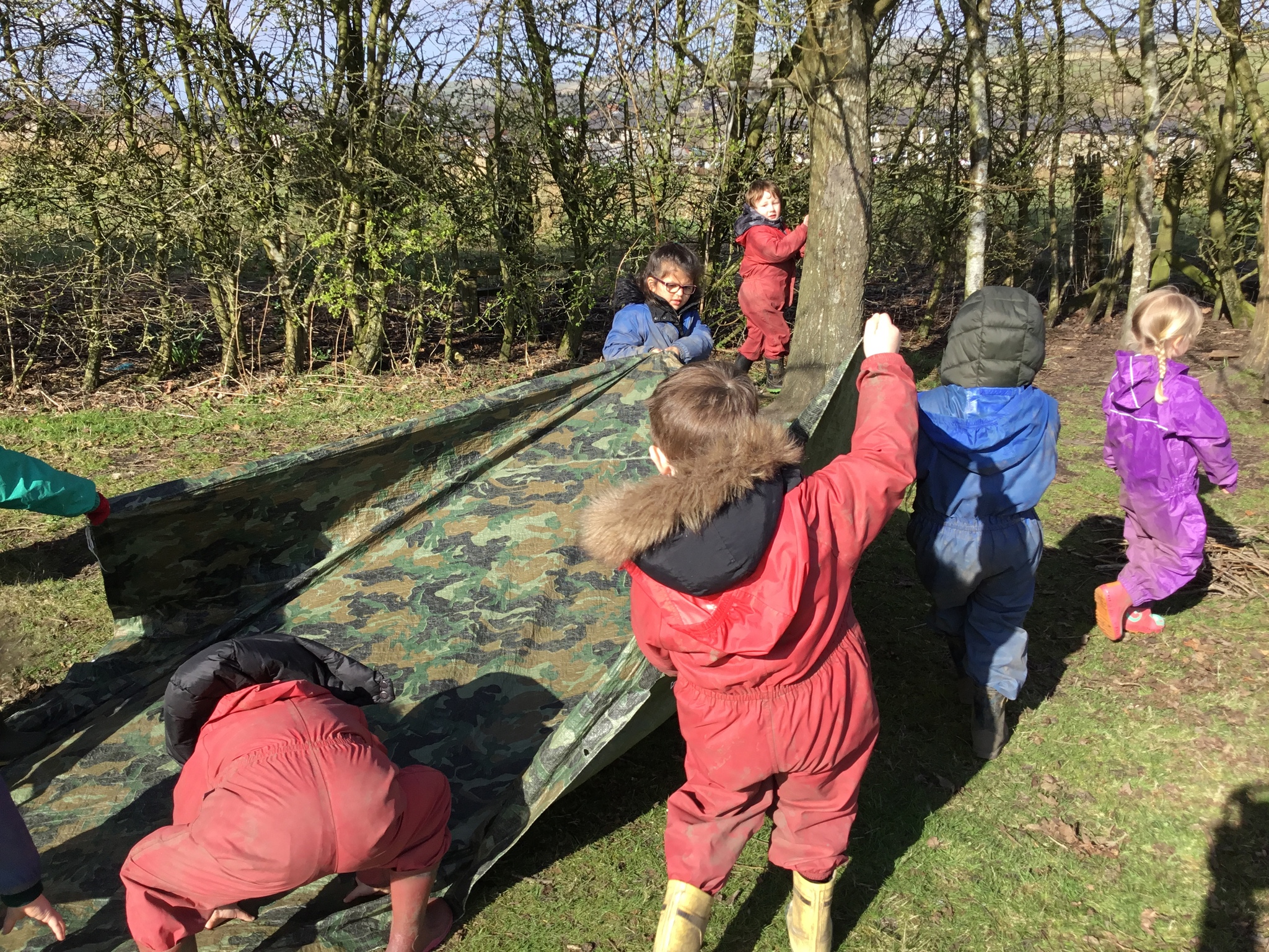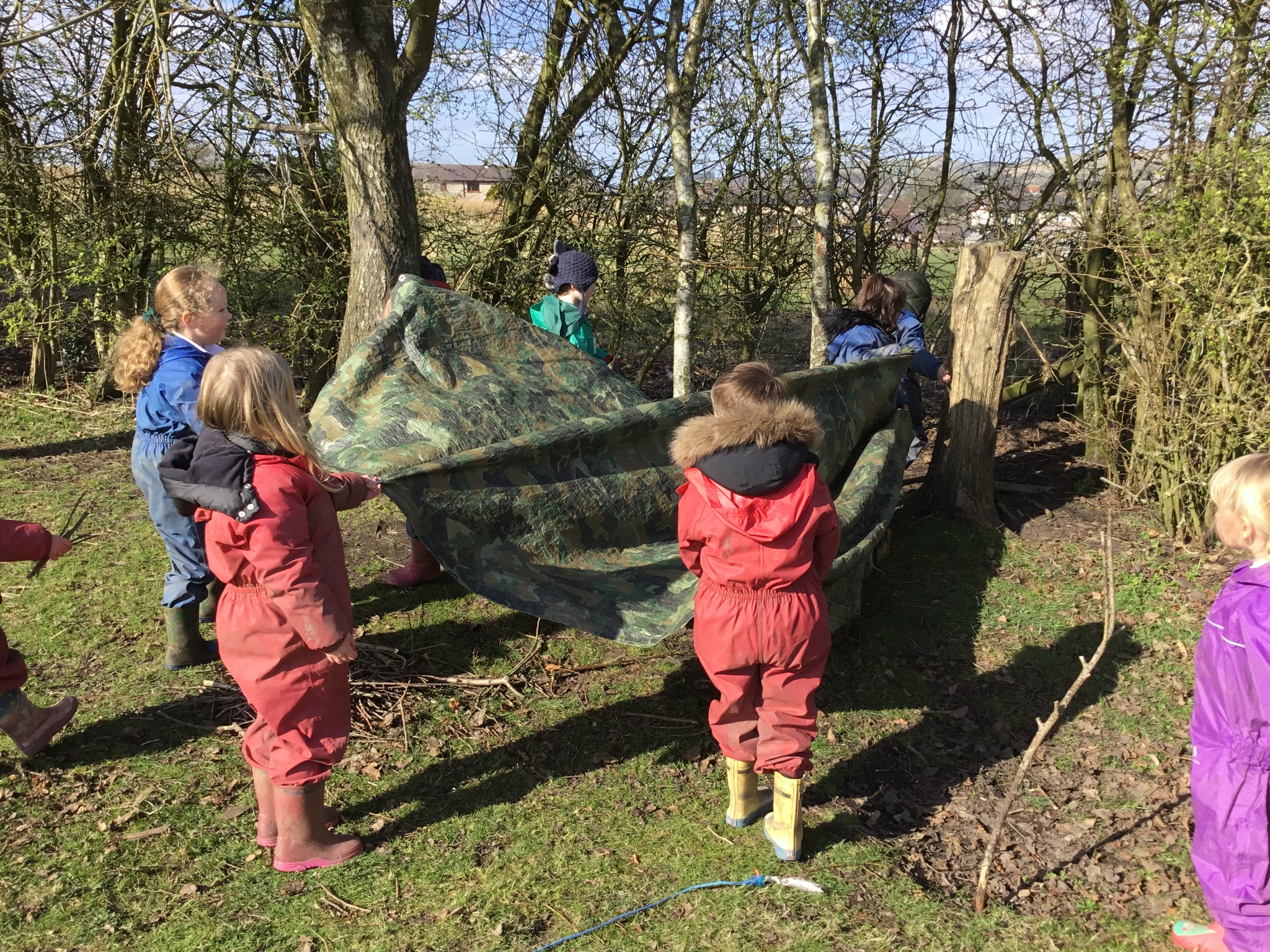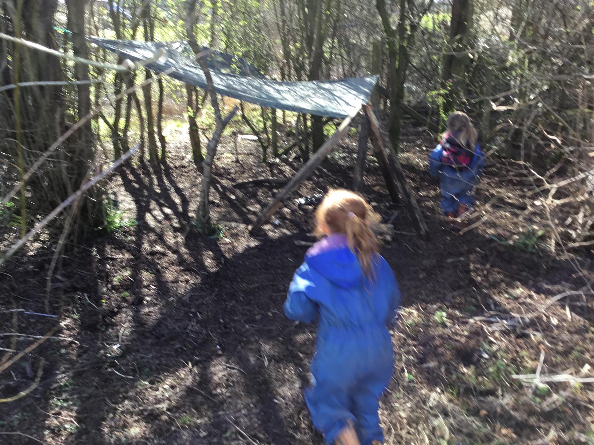 We split into 2 teams and worked together to build a shelter. Children had lots of good ideas for what we might need inside and used their imagination well to gather the necessities.
