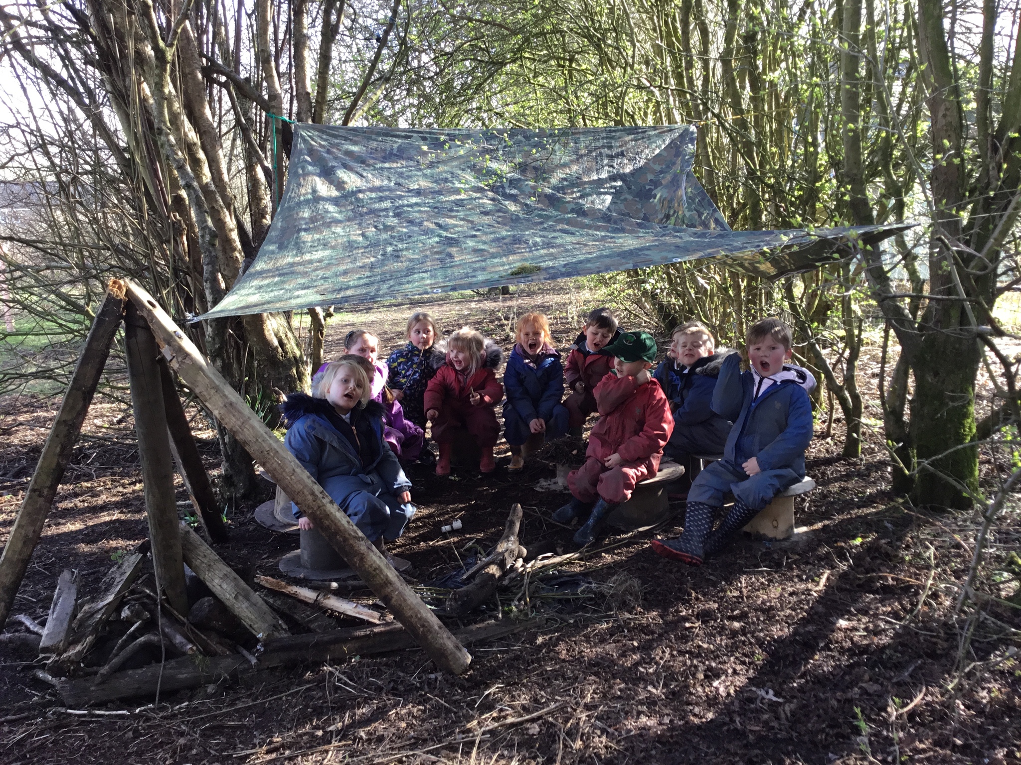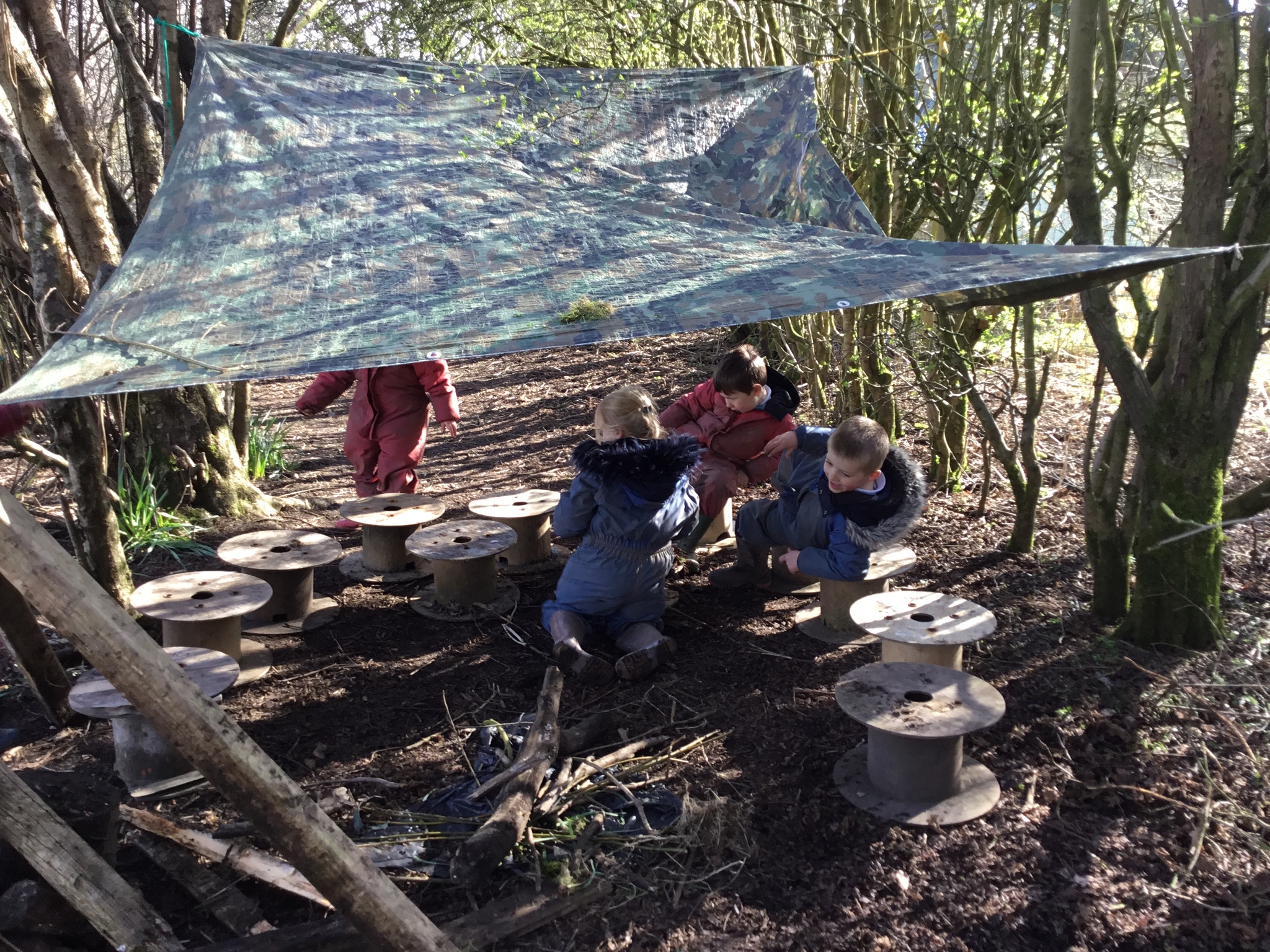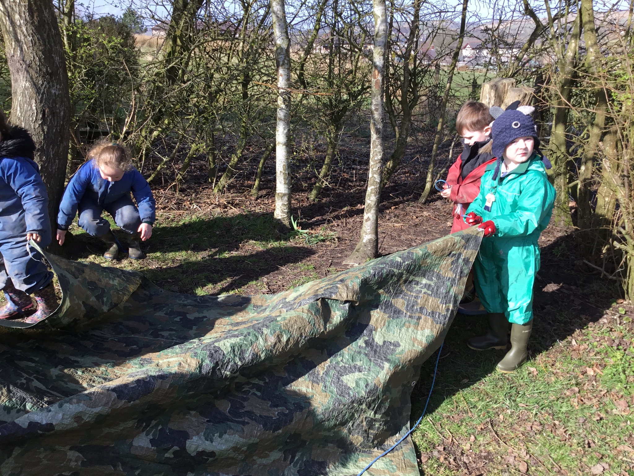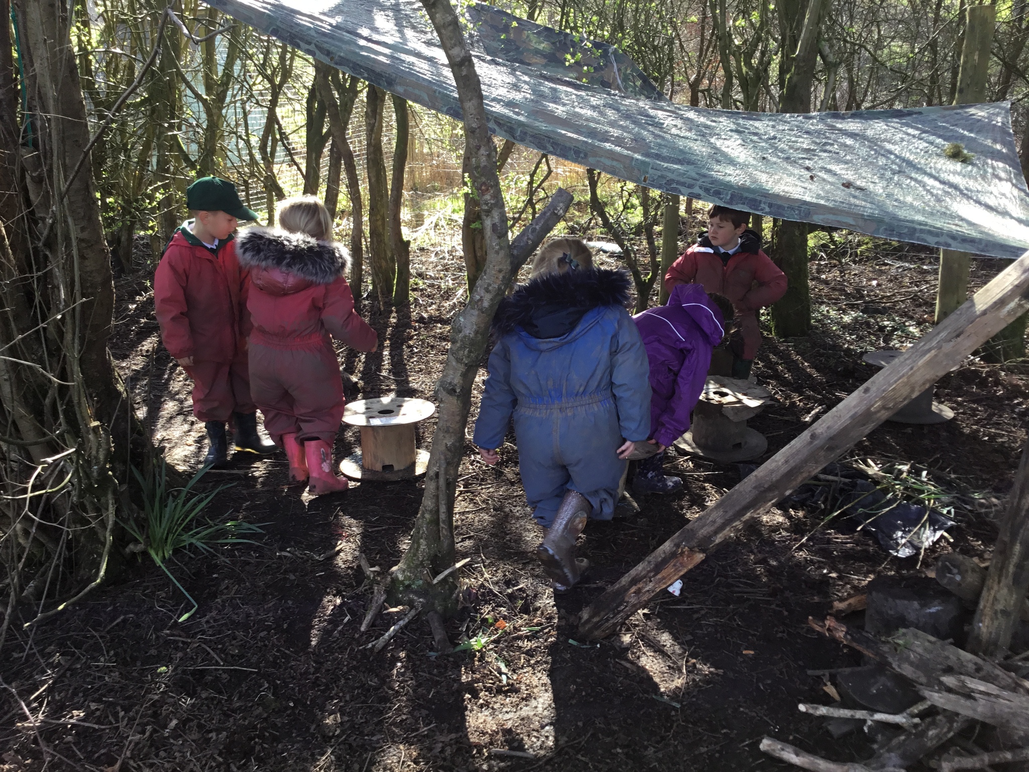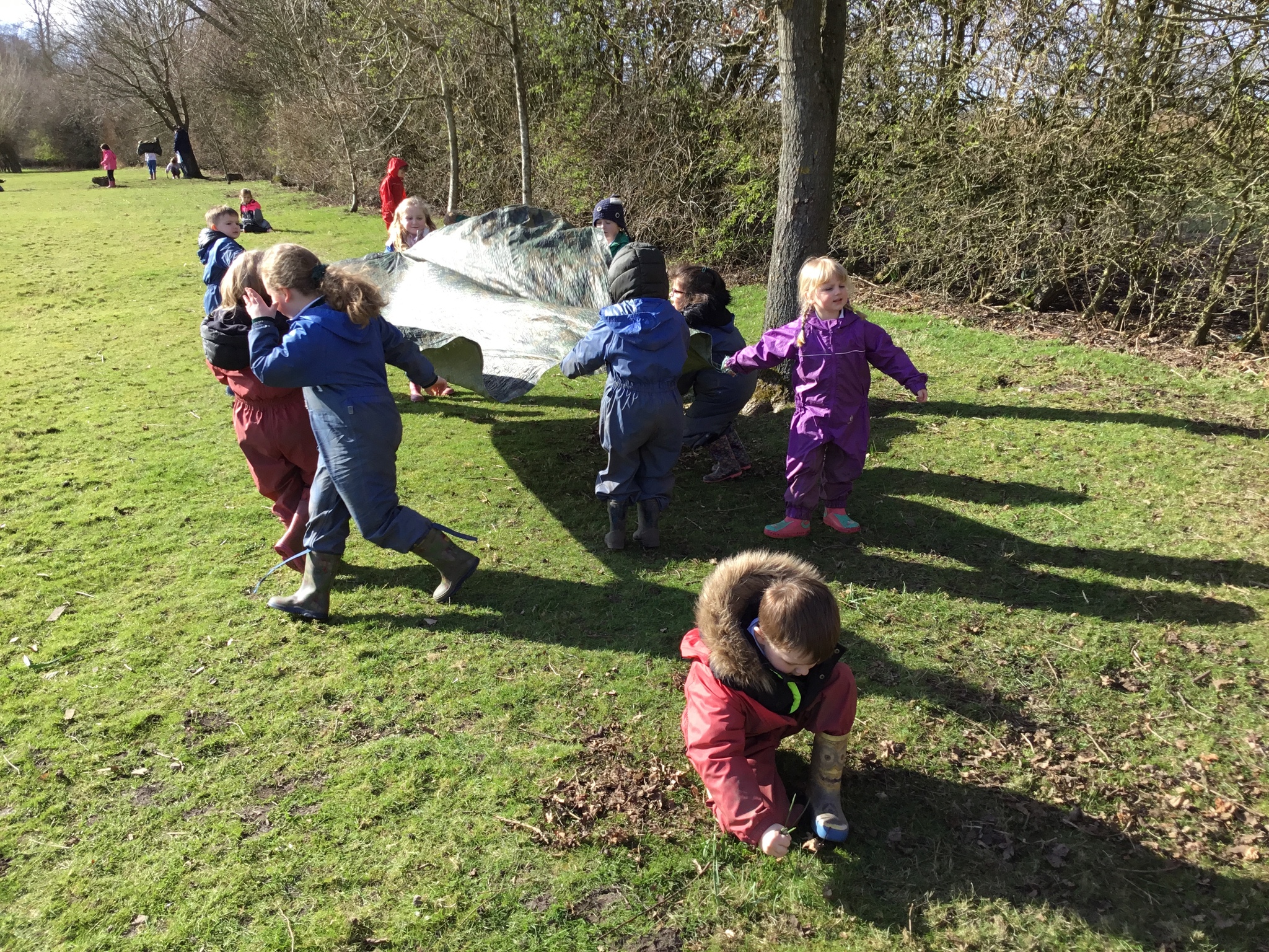 We split into 2 teams and worked together to build a shelter. Children had lots of good ideas for what we might need inside and used their imagination well to gather the necessities.