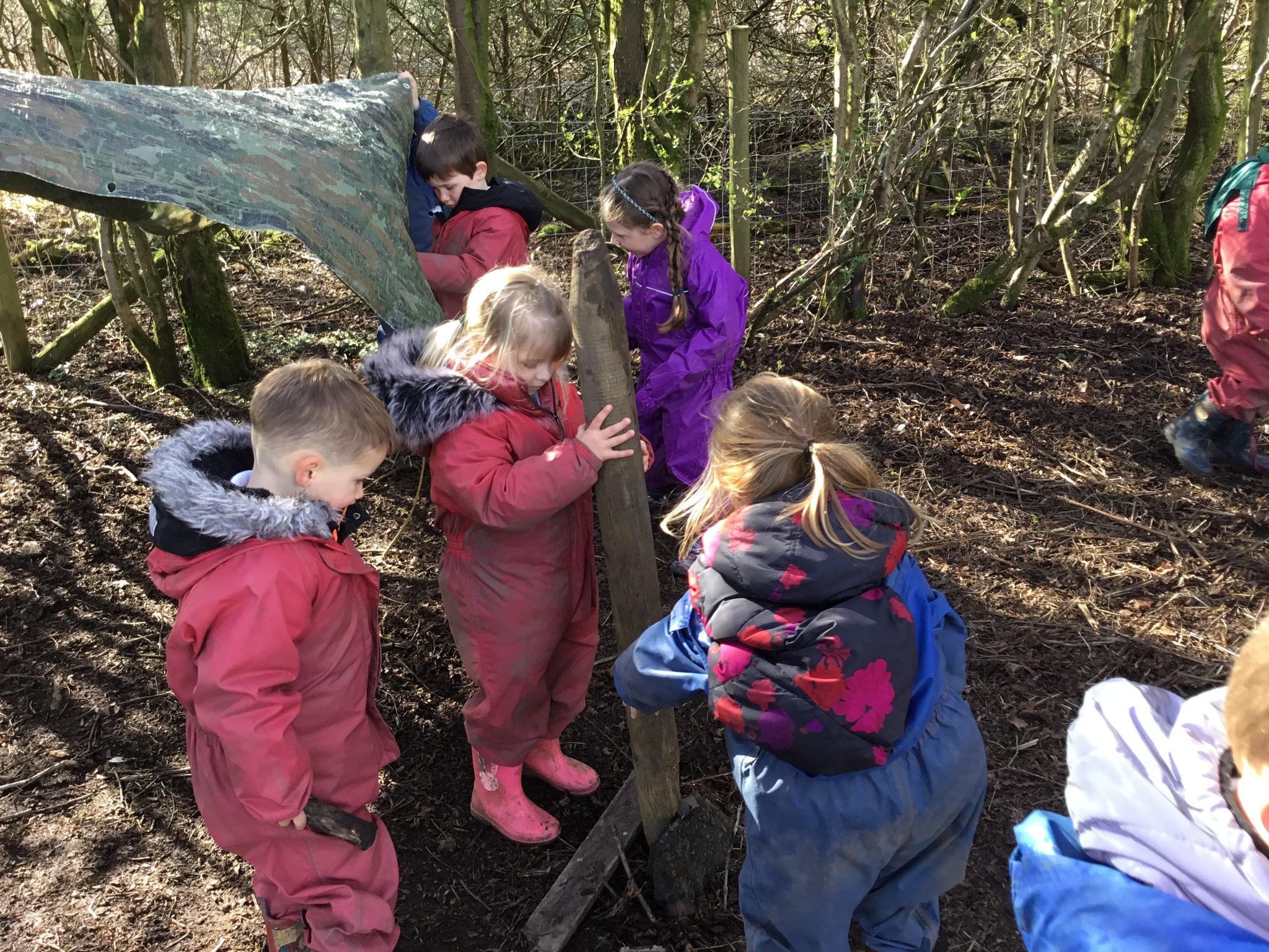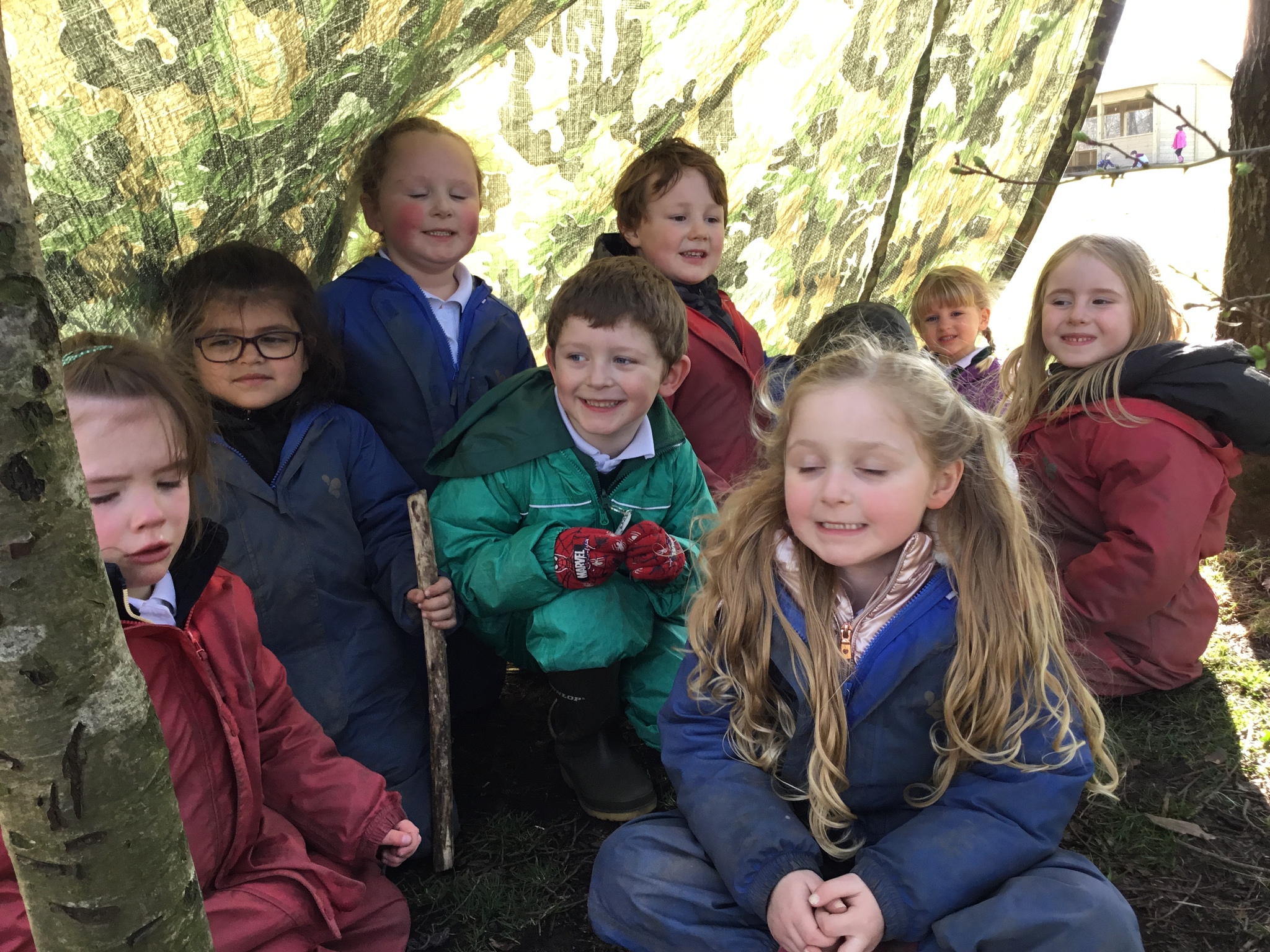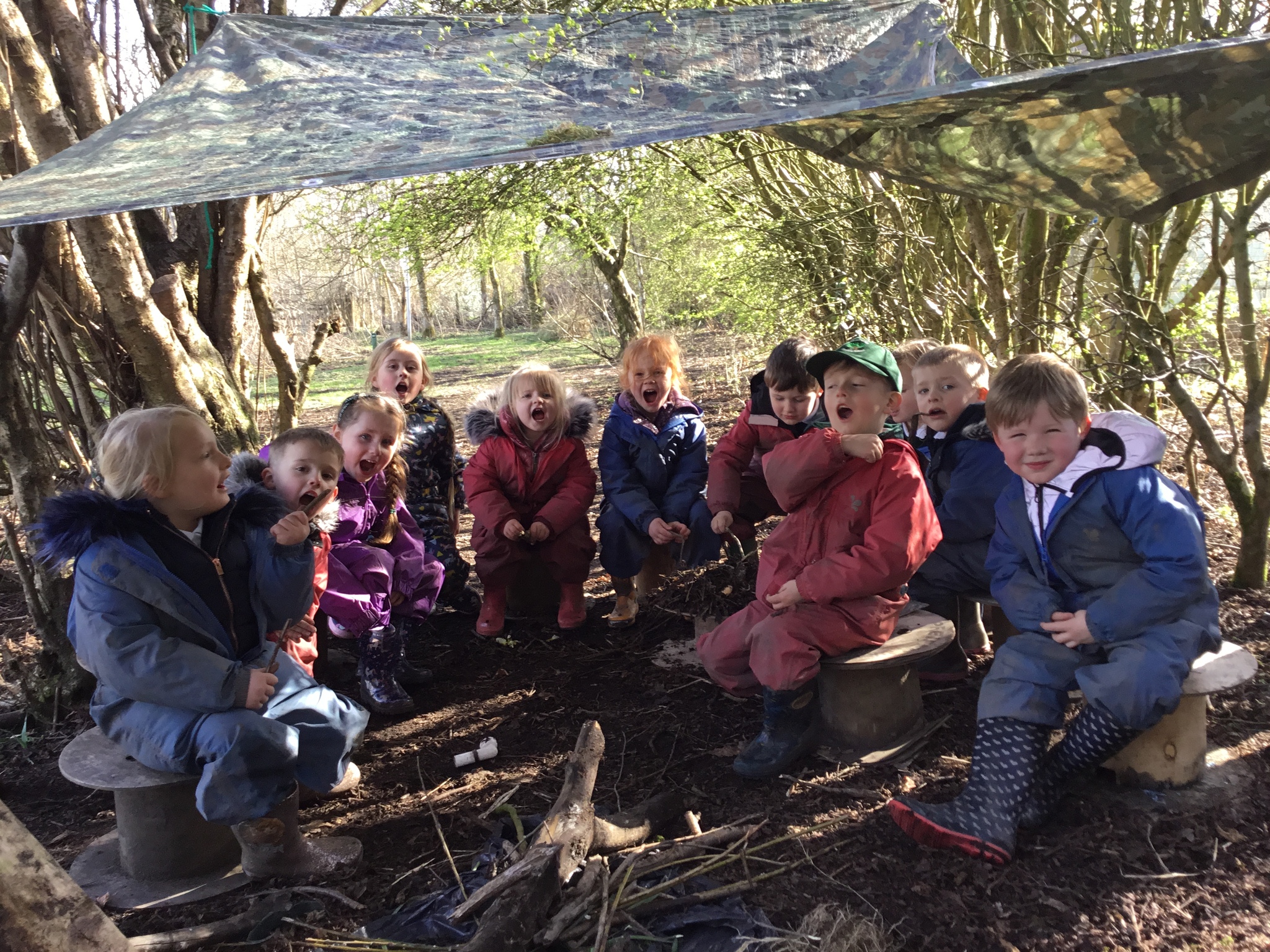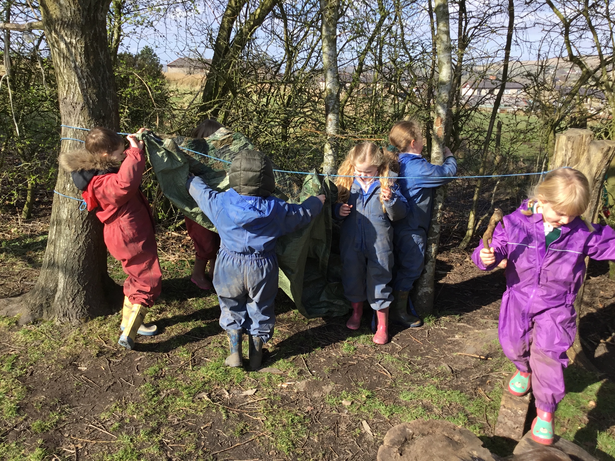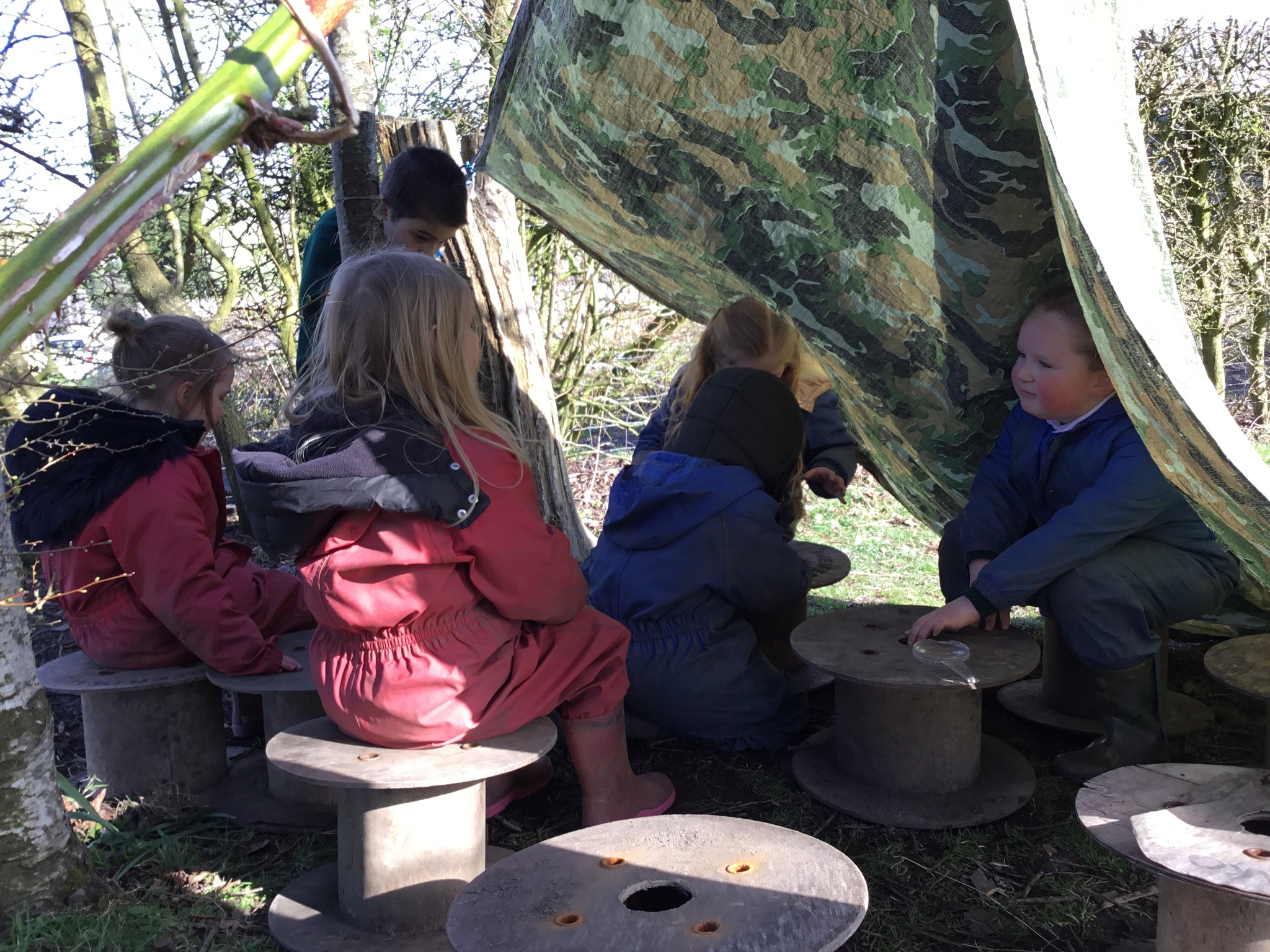 We split into 2 teams and worked together to build a shelter. Children had lots of good ideas for what we might need inside and used their imagination well to gather the necessities.