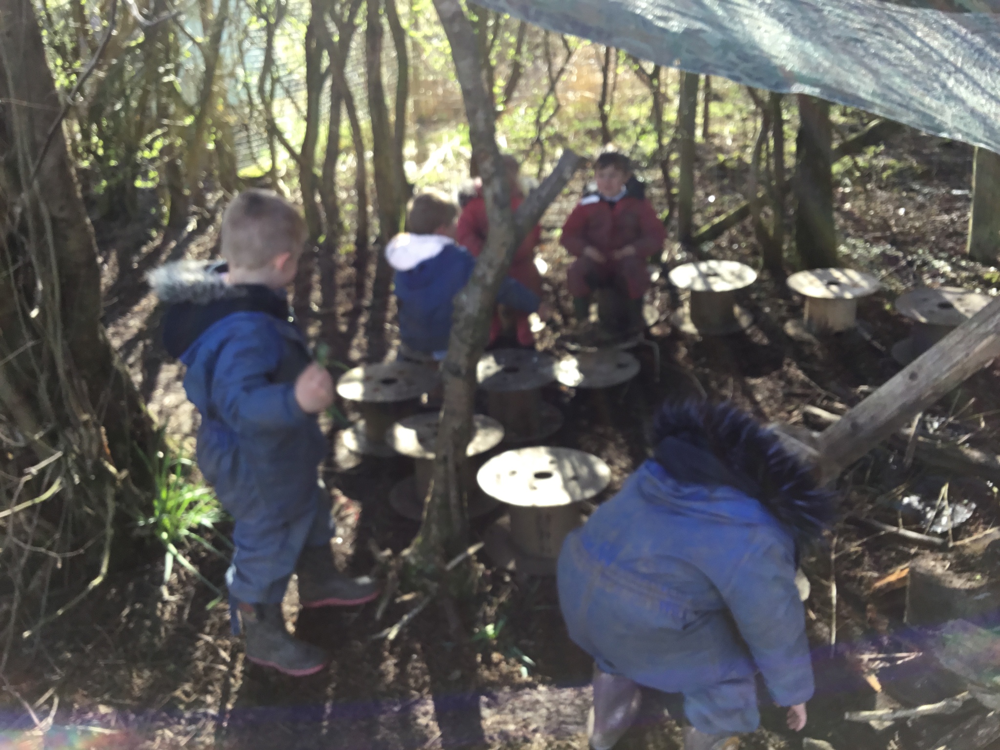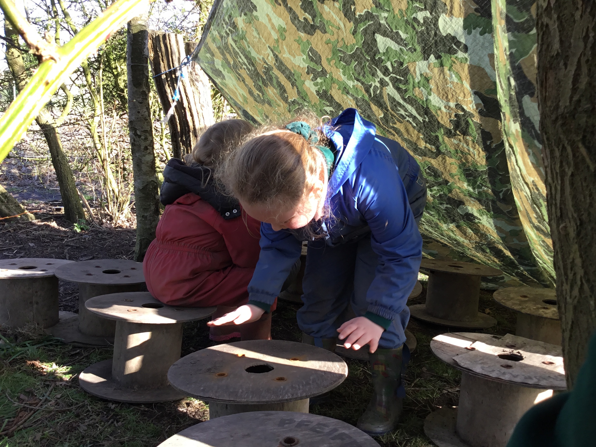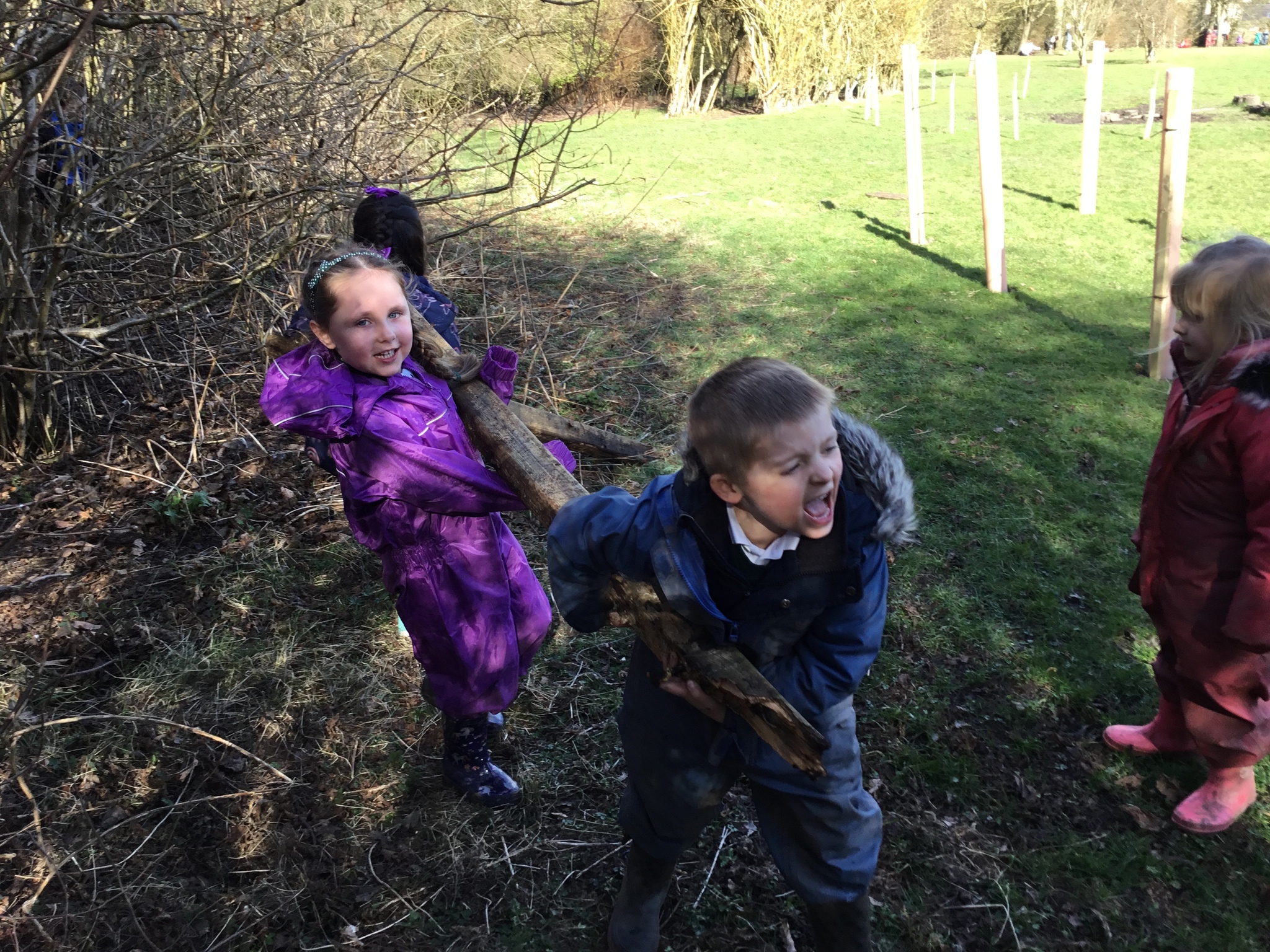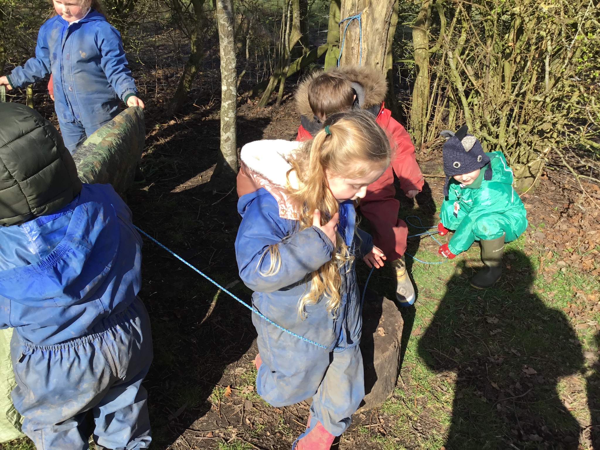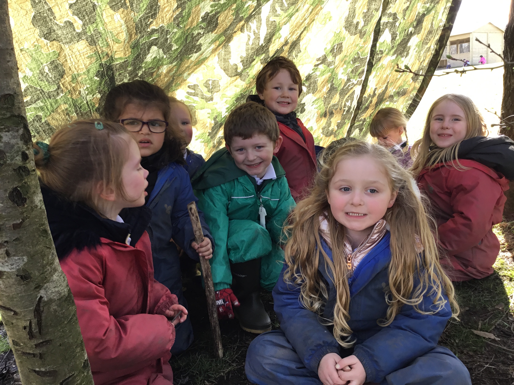 We split into 2 teams and worked together to build a shelter. Children had lots of good ideas for what we might need inside and used their imagination well to gather the necessities.