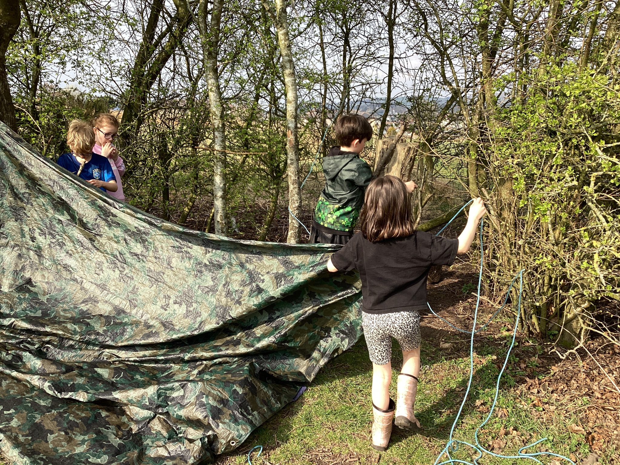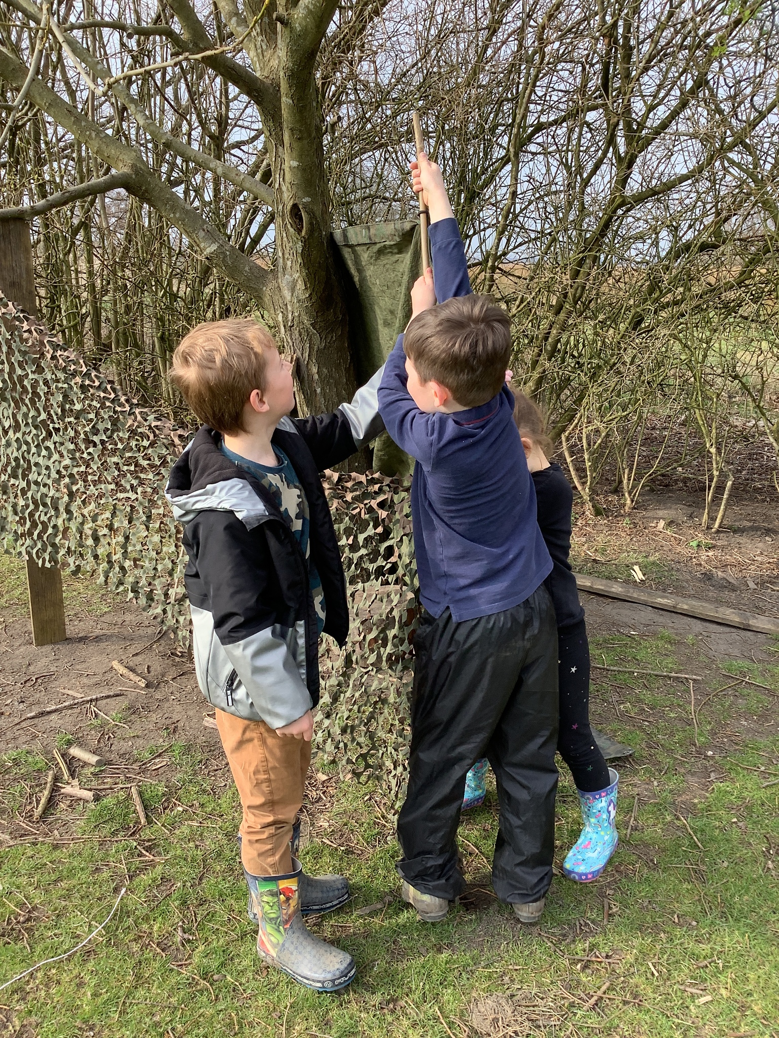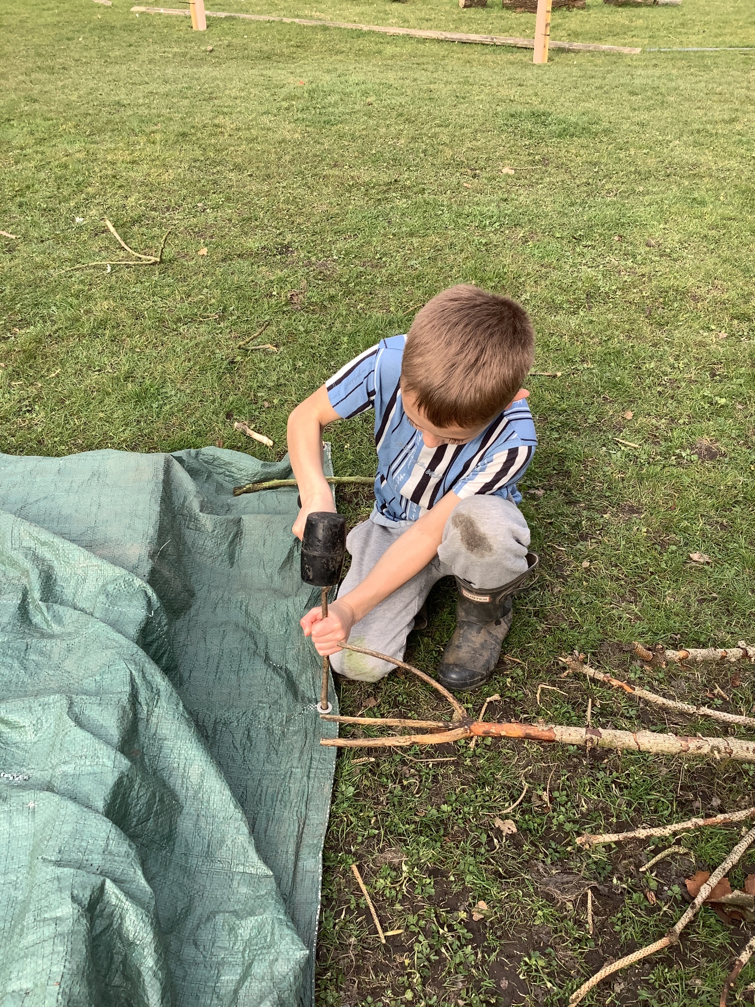 Today, Year 4 and Year 2 joined together on the field to create their own dens. They had a great time learning what worked (and what didn't) when erecting their structures and they thought how they could make improvements to their designs. We had some very interesting discussion about bark on trees as well as signs of spring and what a mallet is. In our discussions, we talked about what a mallet was useful for. Both year groups worked brilliantly together especially when tidying up at the end.