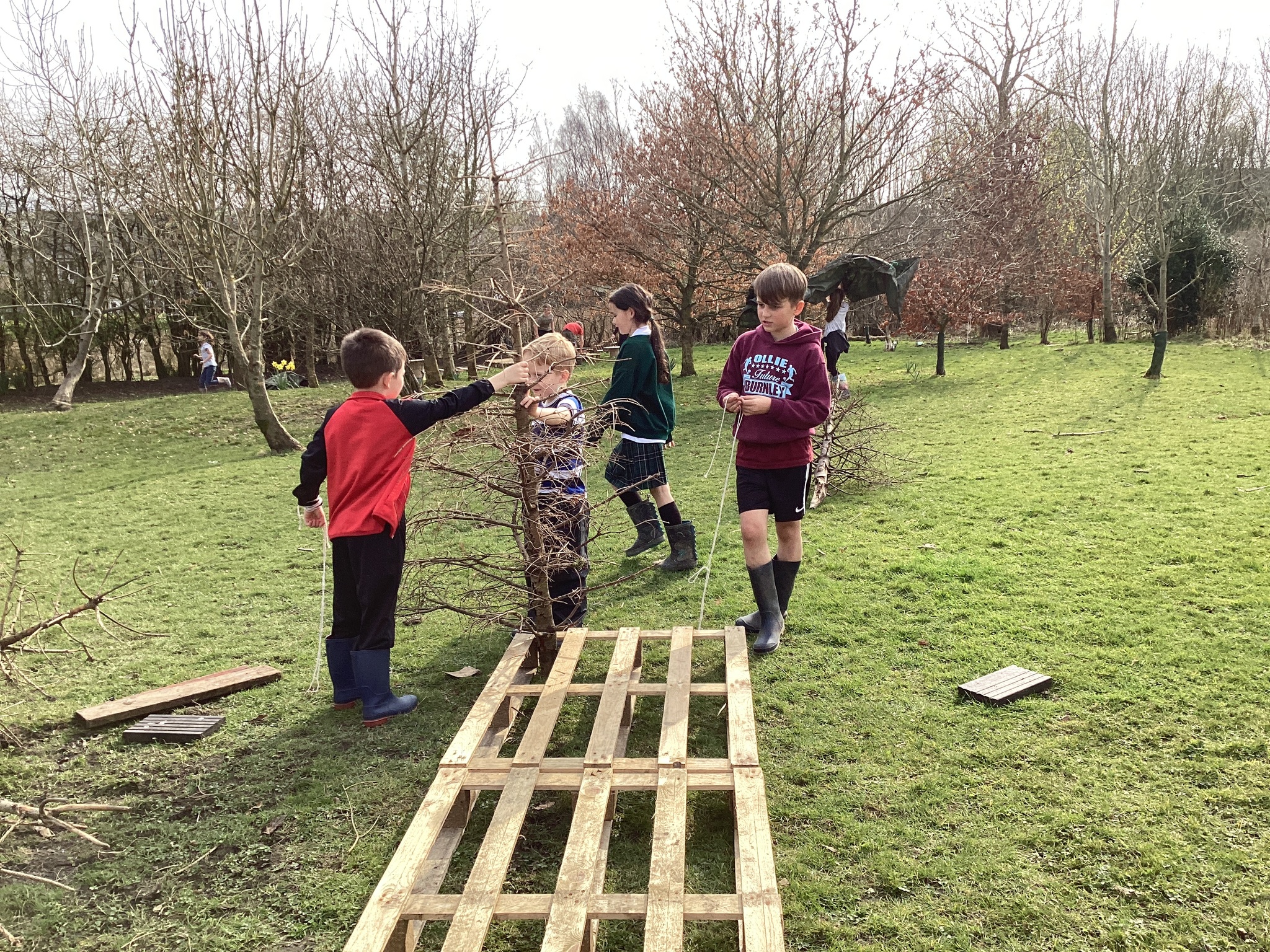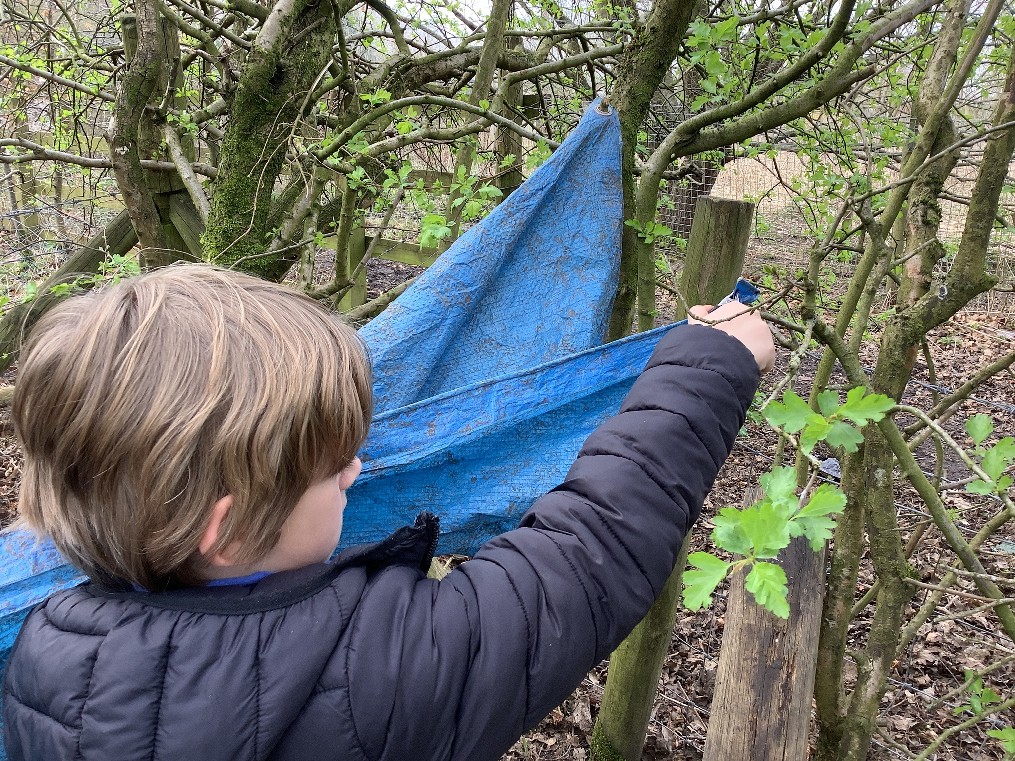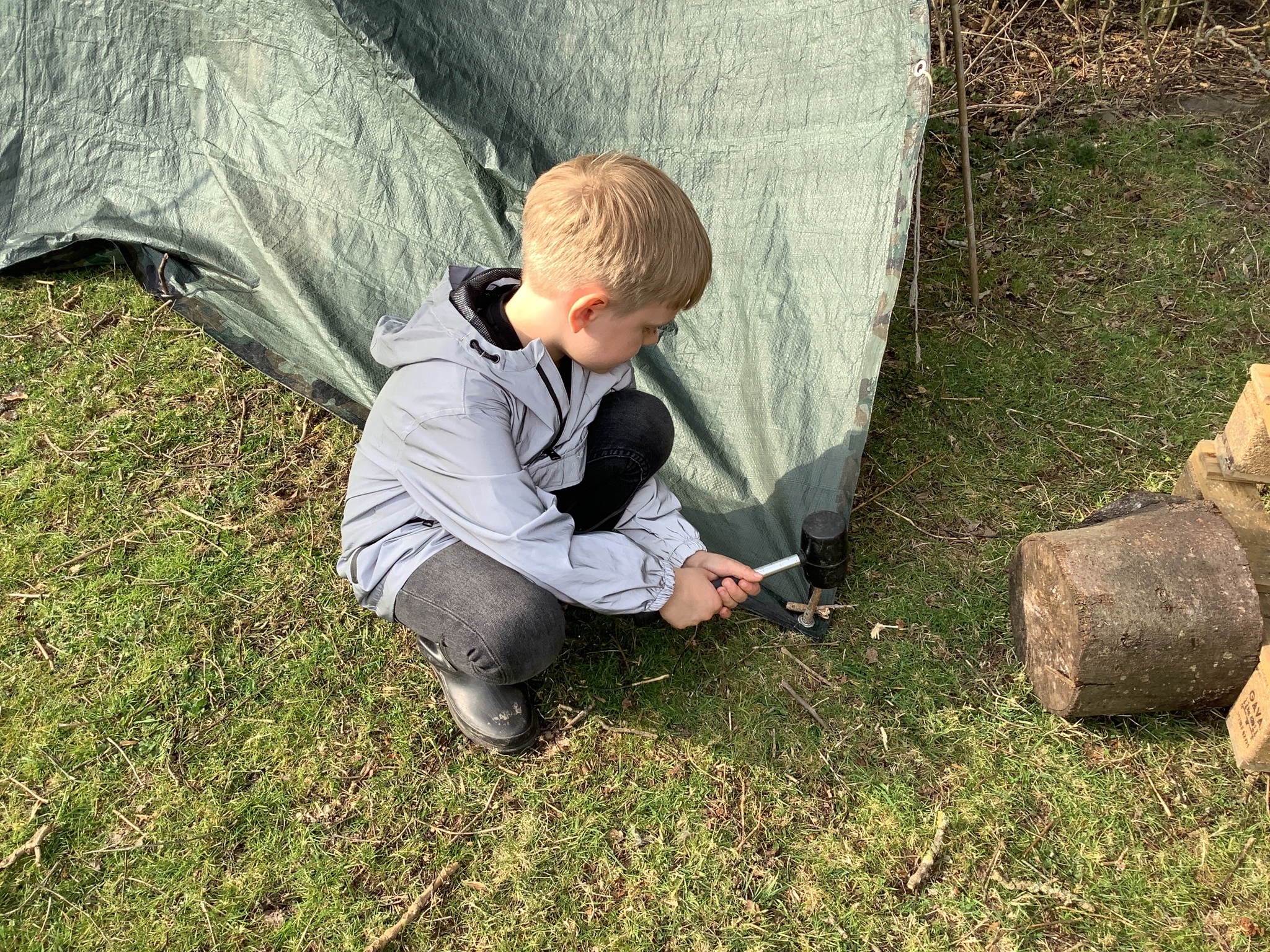 Today, Year 4 and Year 2 joined together on the field to create their own dens. They had a great time learning what worked (and what didn't) when erecting their structures and they thought how they could make improvements to their designs. We had some very interesting discussion about bark on trees as well as signs of spring and what a mallet is. In our discussions, we talked about what a mallet was useful for. Both year groups worked brilliantly together especially when tidying up at the end.