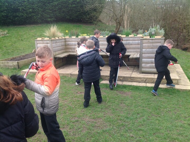 Year Three, along with the eco-warriors have today taken part in the Great British Spring Clean. We made our way from school armed with litter picks and rubbish bags and walked round the community centre, up by the tram tracks and back round to school. We filled six huge rubbish bags in just over an hour! We had some fantastic conversations about the importance of looking after the environment and the children have all vowed to be responsible with their litter in the future.
