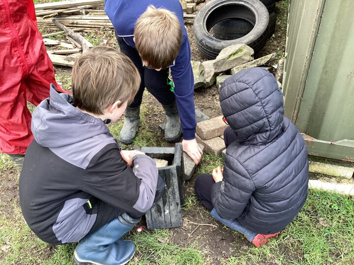 In our final Forest School of the half-term, Year 4 had a choice within the brief set. They had to create something within half an hour that was linked to one of our topics. In the end, many of the children decided to create volcanoes but some chose pyramids from our topic which taught us many interesting facts about Ancient Egypt. There are some spectacular designs and ideas!