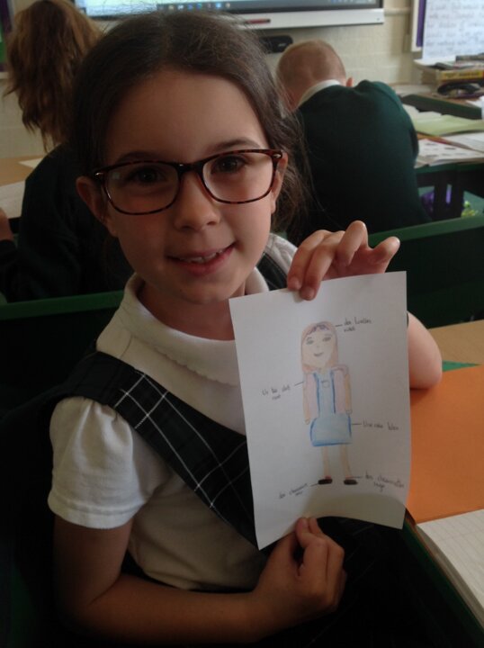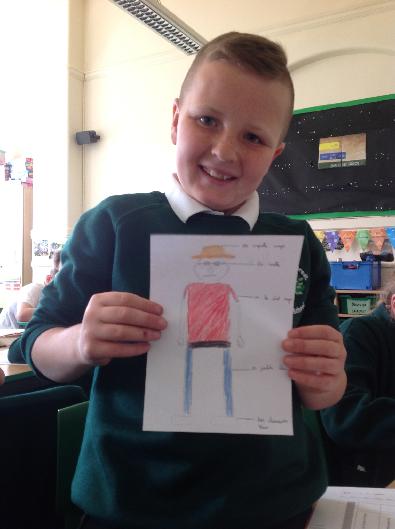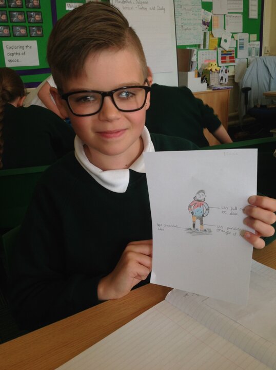 Do you know what 'une casquette orange' means? Our class do! They have been learning the names for clothing in French. They have drawn themselves and labelled their clothing in French. Below is a selection of the wonderful work they have created.