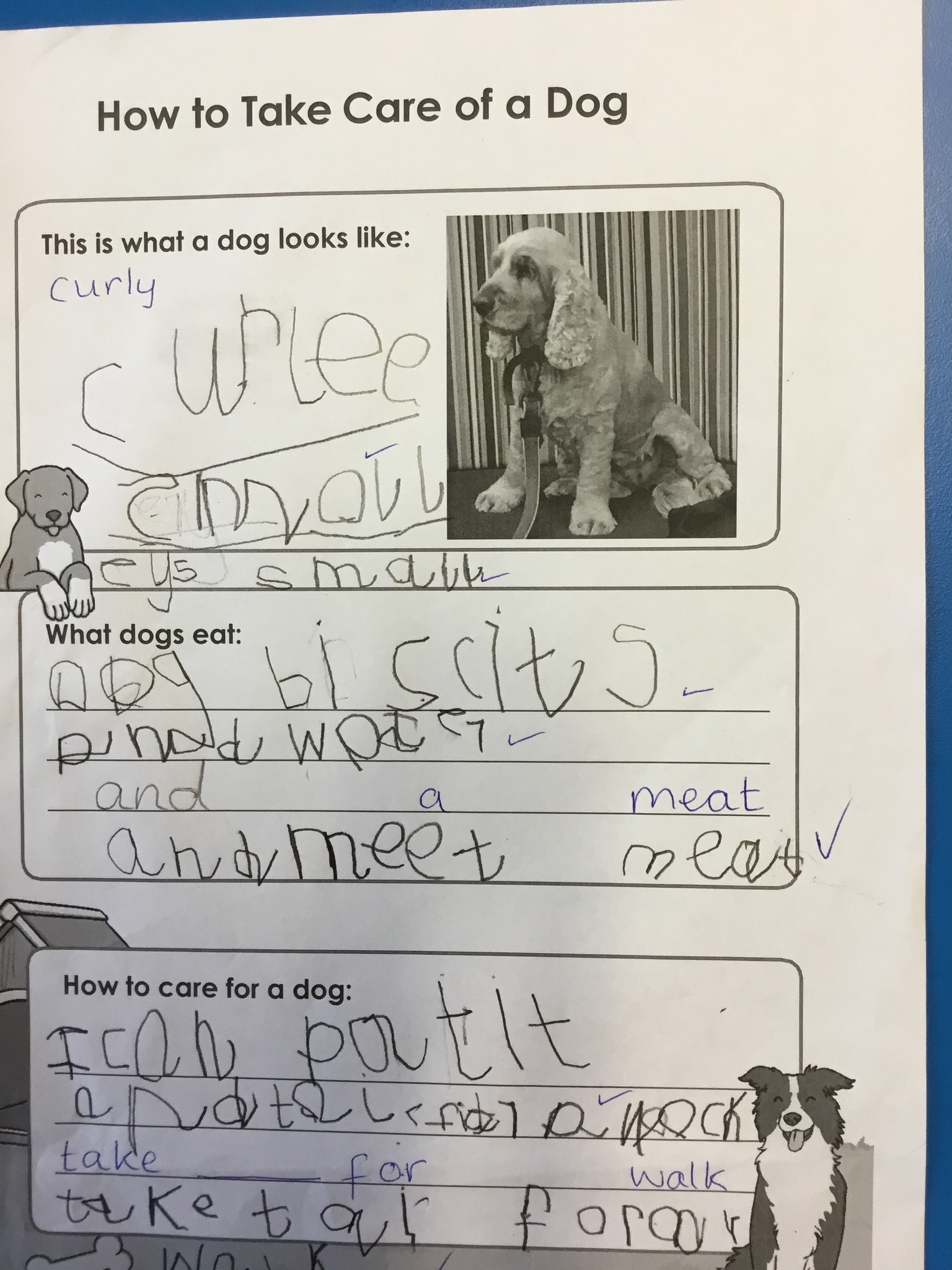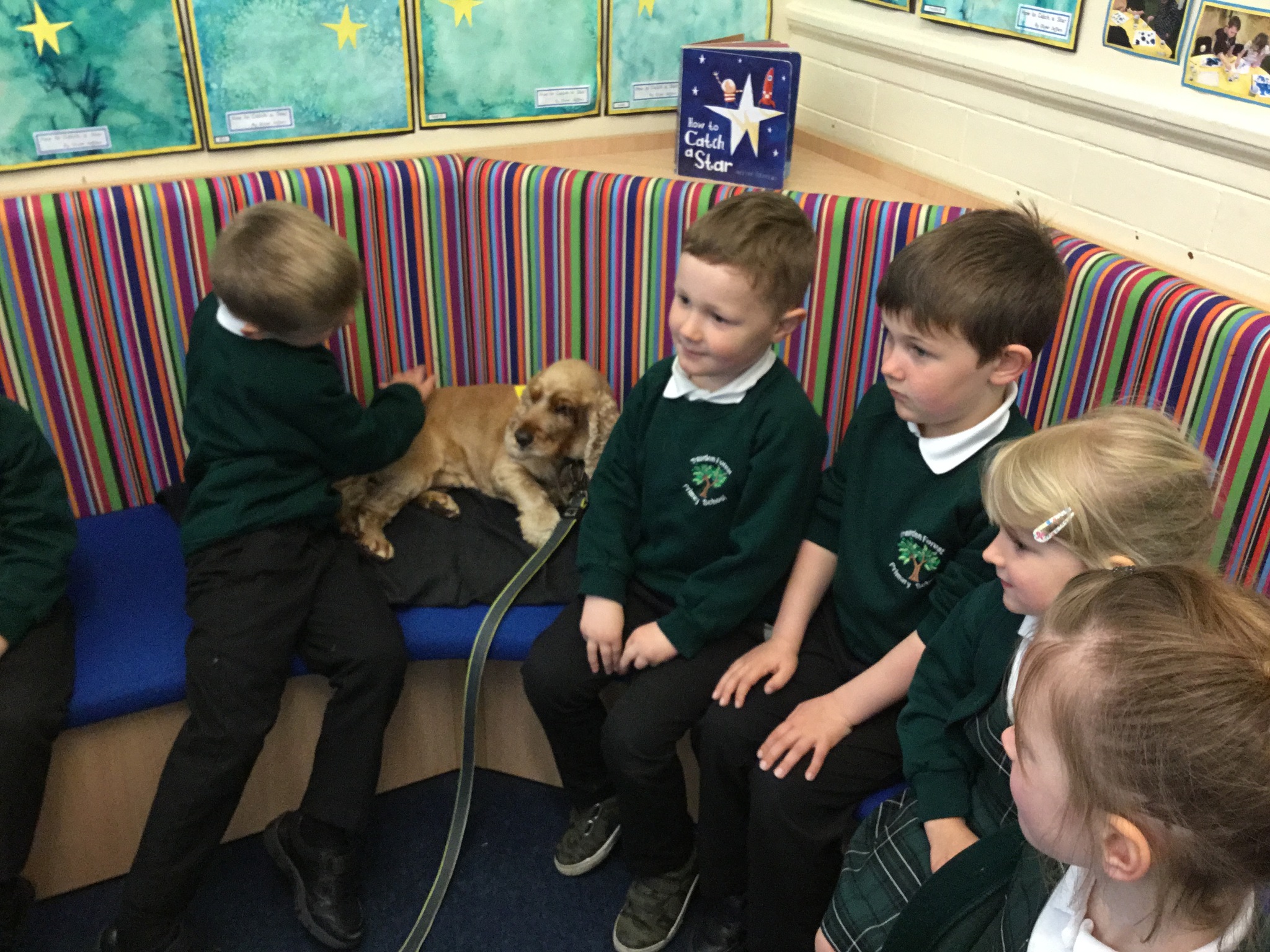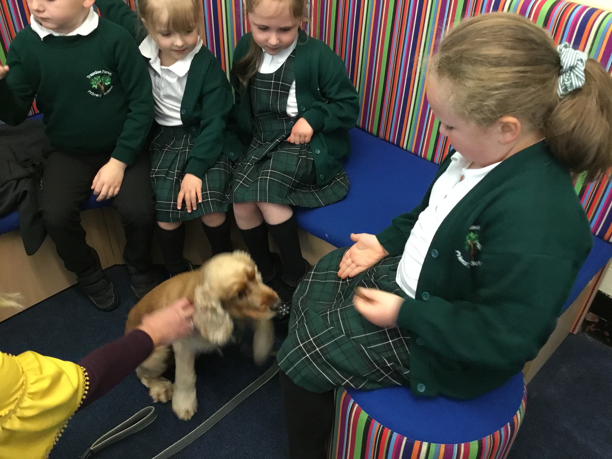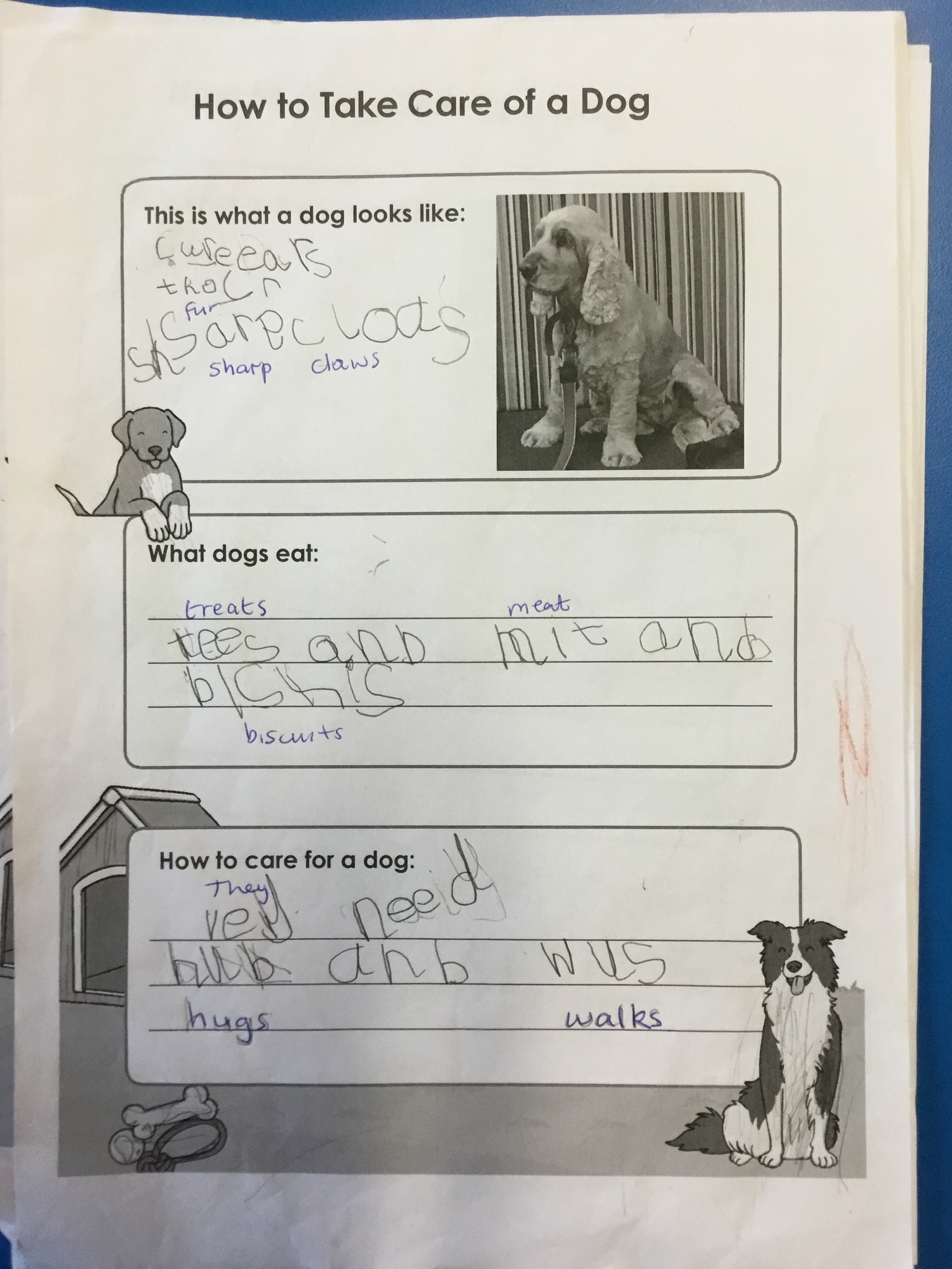 Our animal topic this week has been about pets so we asked Sophia and her owner if we could spend time finding out about her. The children all got a chance to stroke and look at Sophia and her owner told us lots of information about what she needs. We then wrote our own help sheet on how to care for a dog.