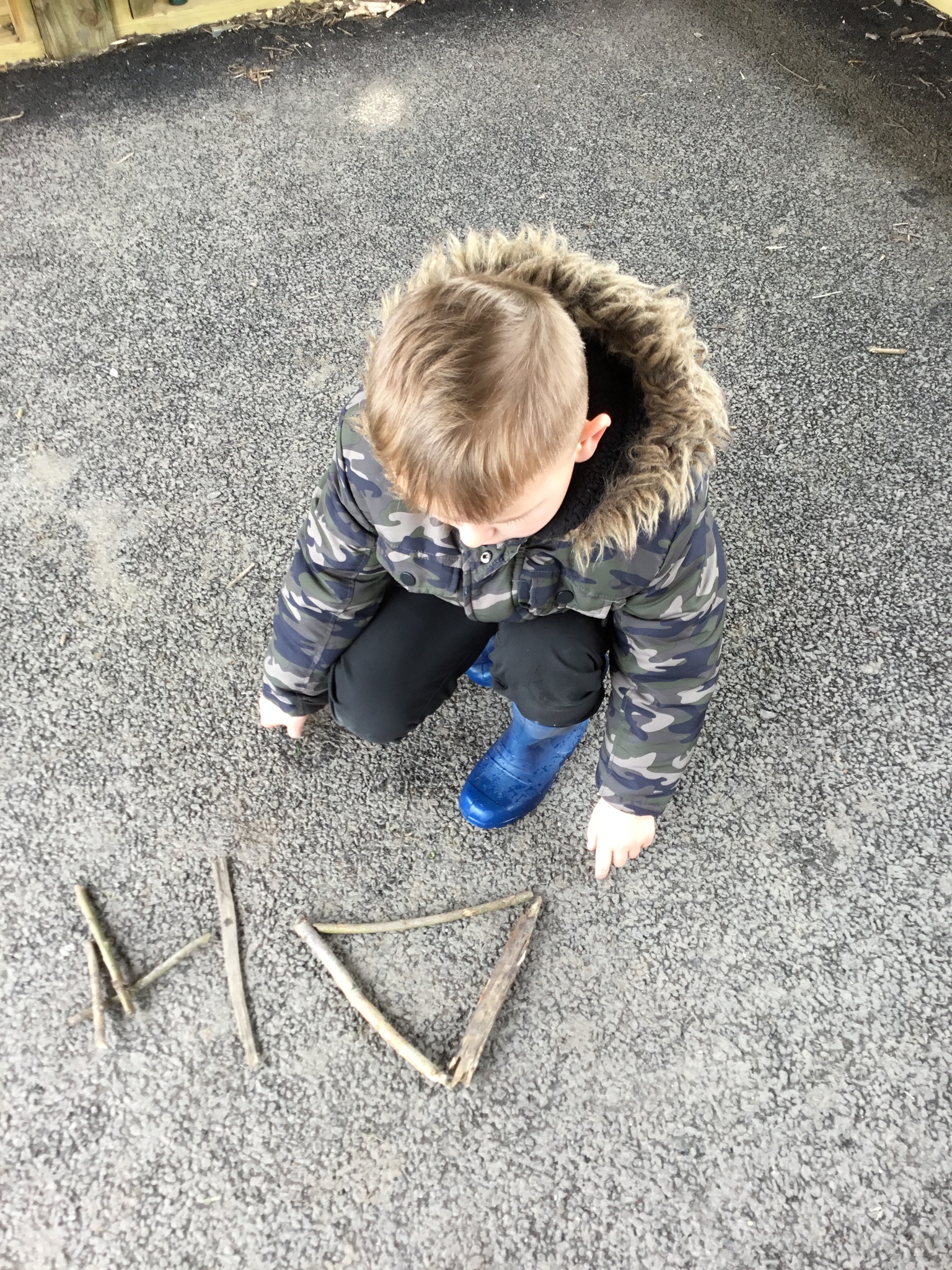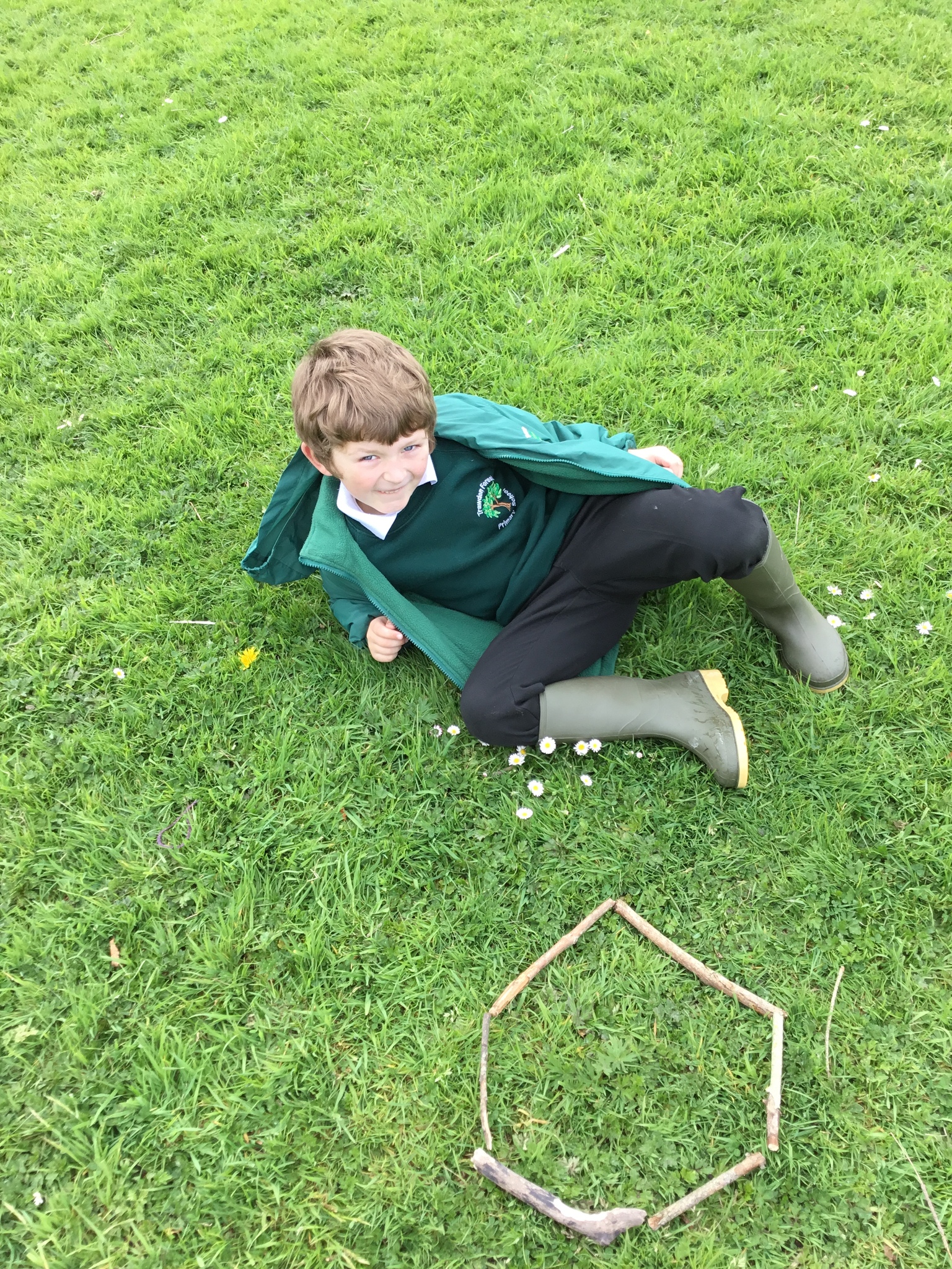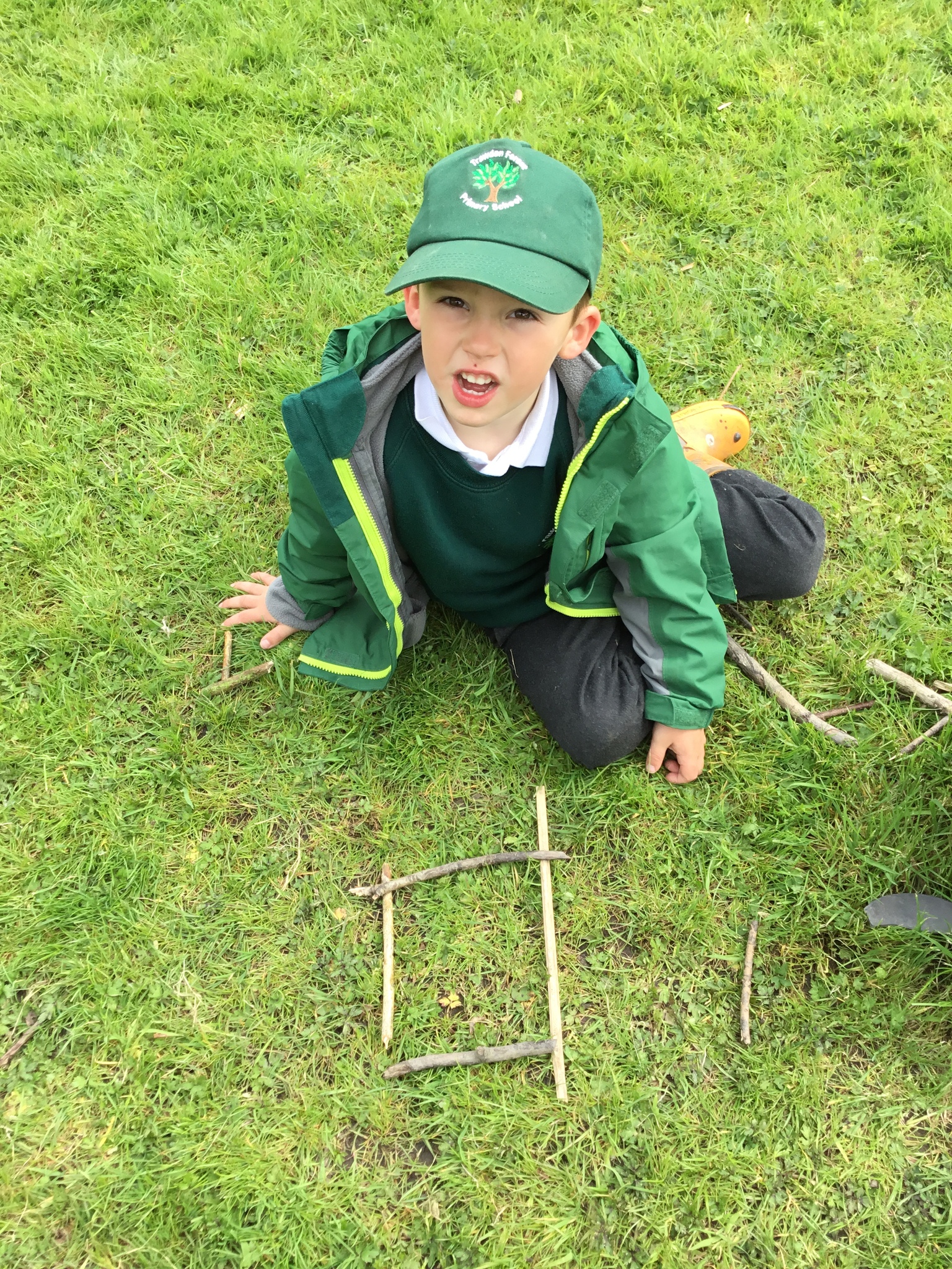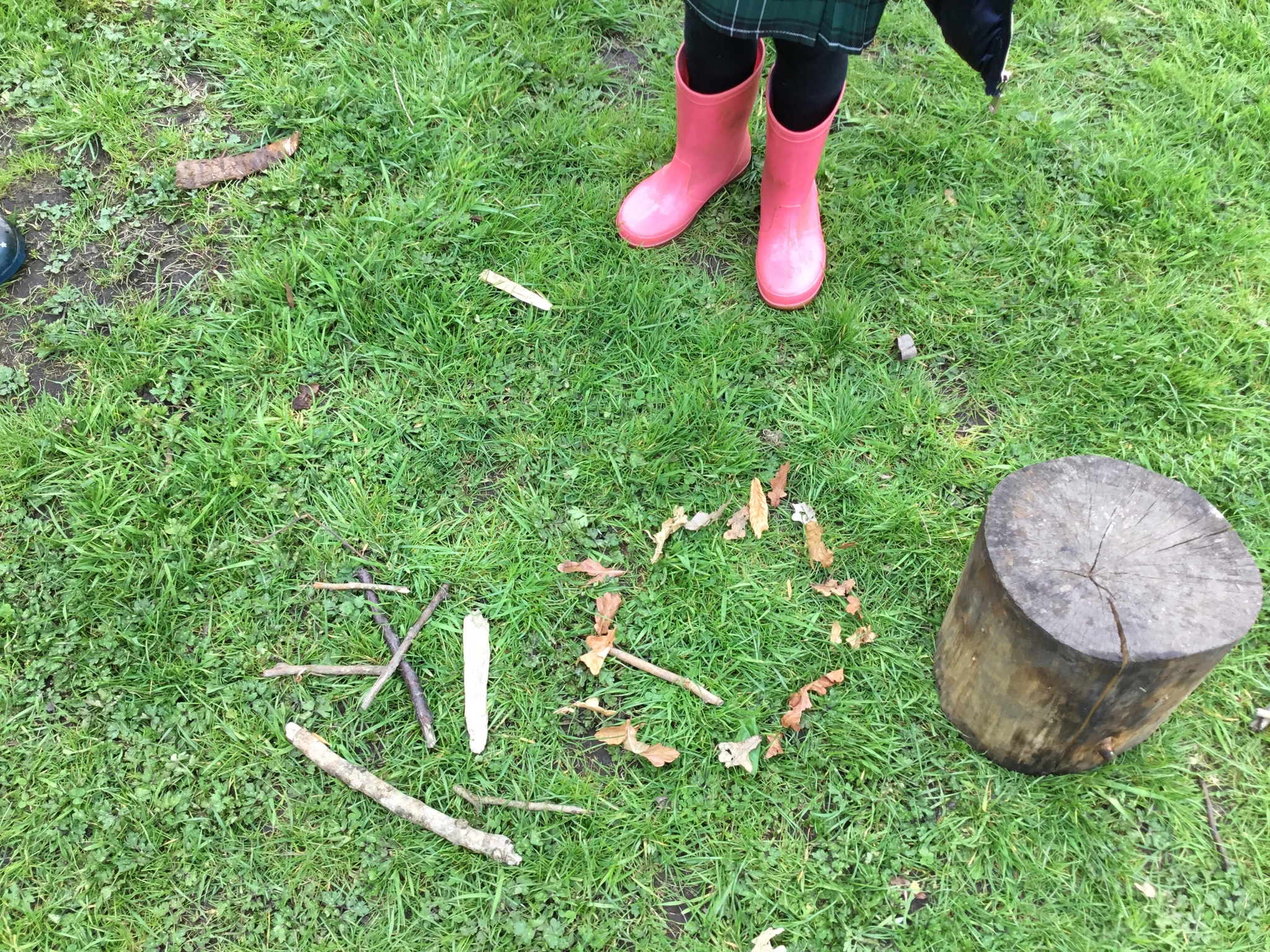 This week Reception were thinking about shapes and patterns in Forest School. We looked for natural patterns on leaves and sticks and shapes. The children then used natural materials to make their own shapes, describing how many sides their shape had.