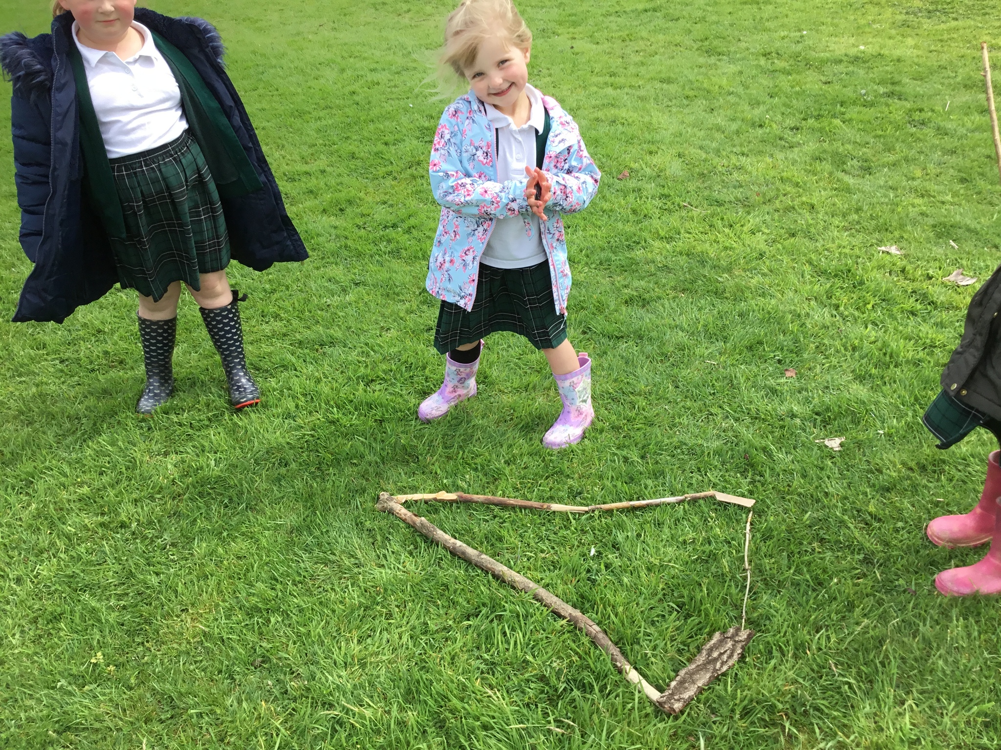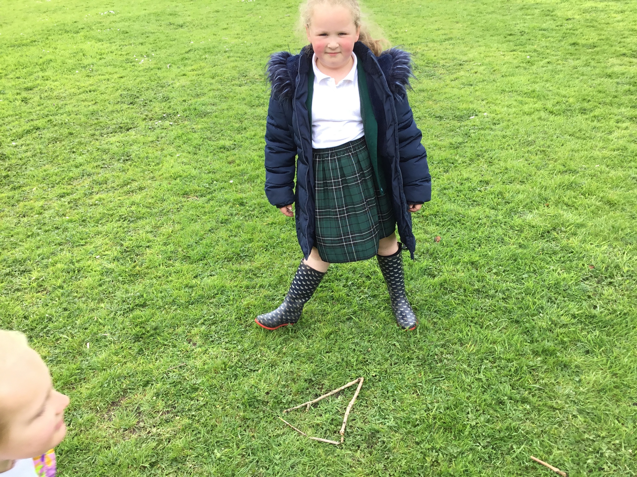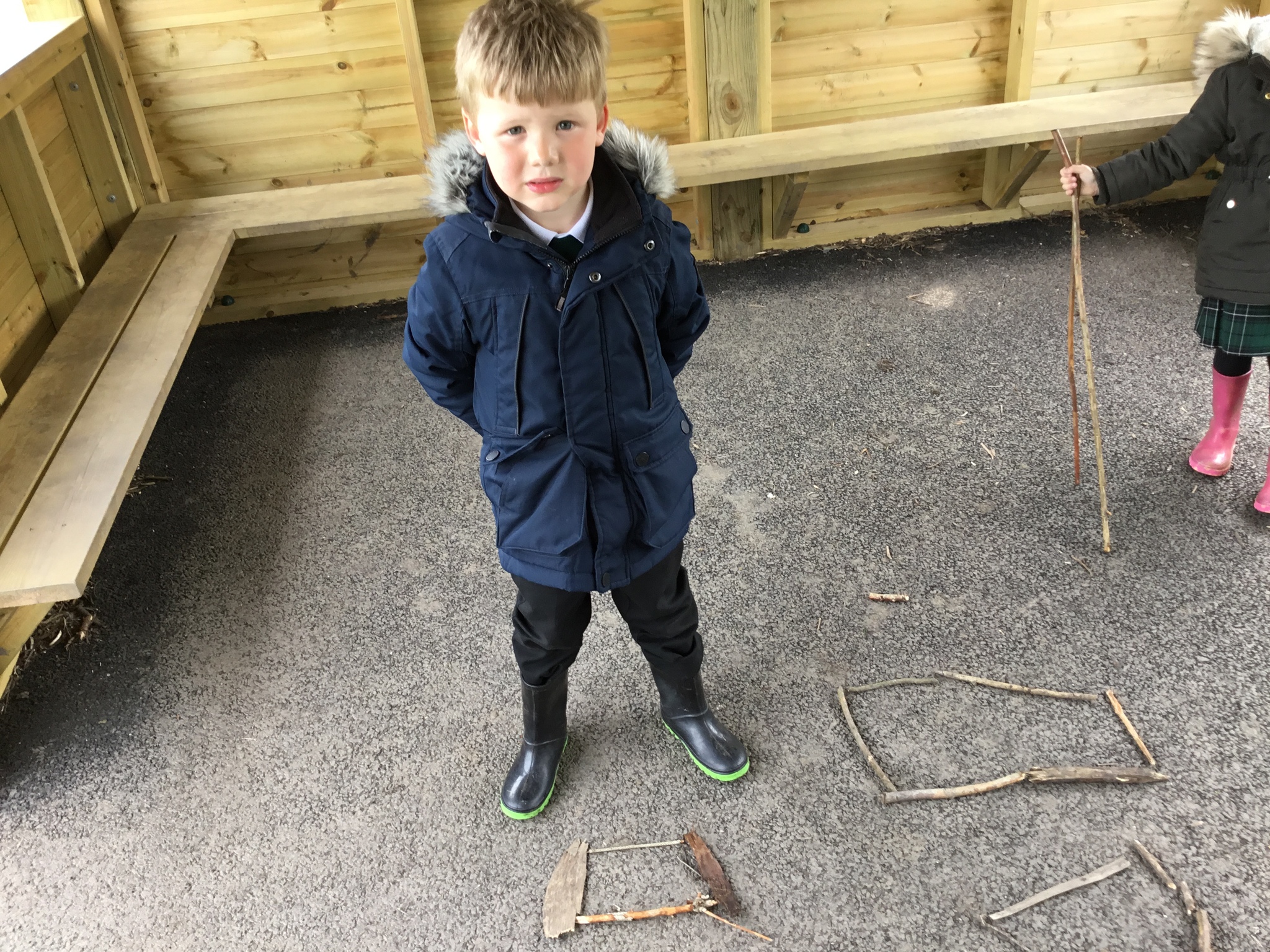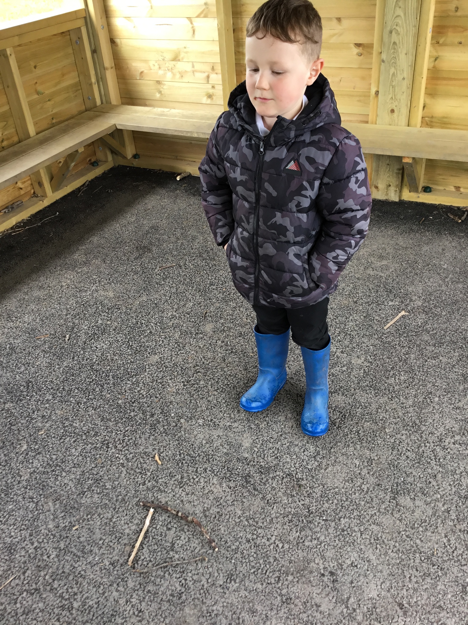 This week Reception were thinking about shapes and patterns in Forest School. We looked for natural patterns on leaves and sticks and shapes. The children then used natural materials to make their own shapes, describing how many sides their shape had.