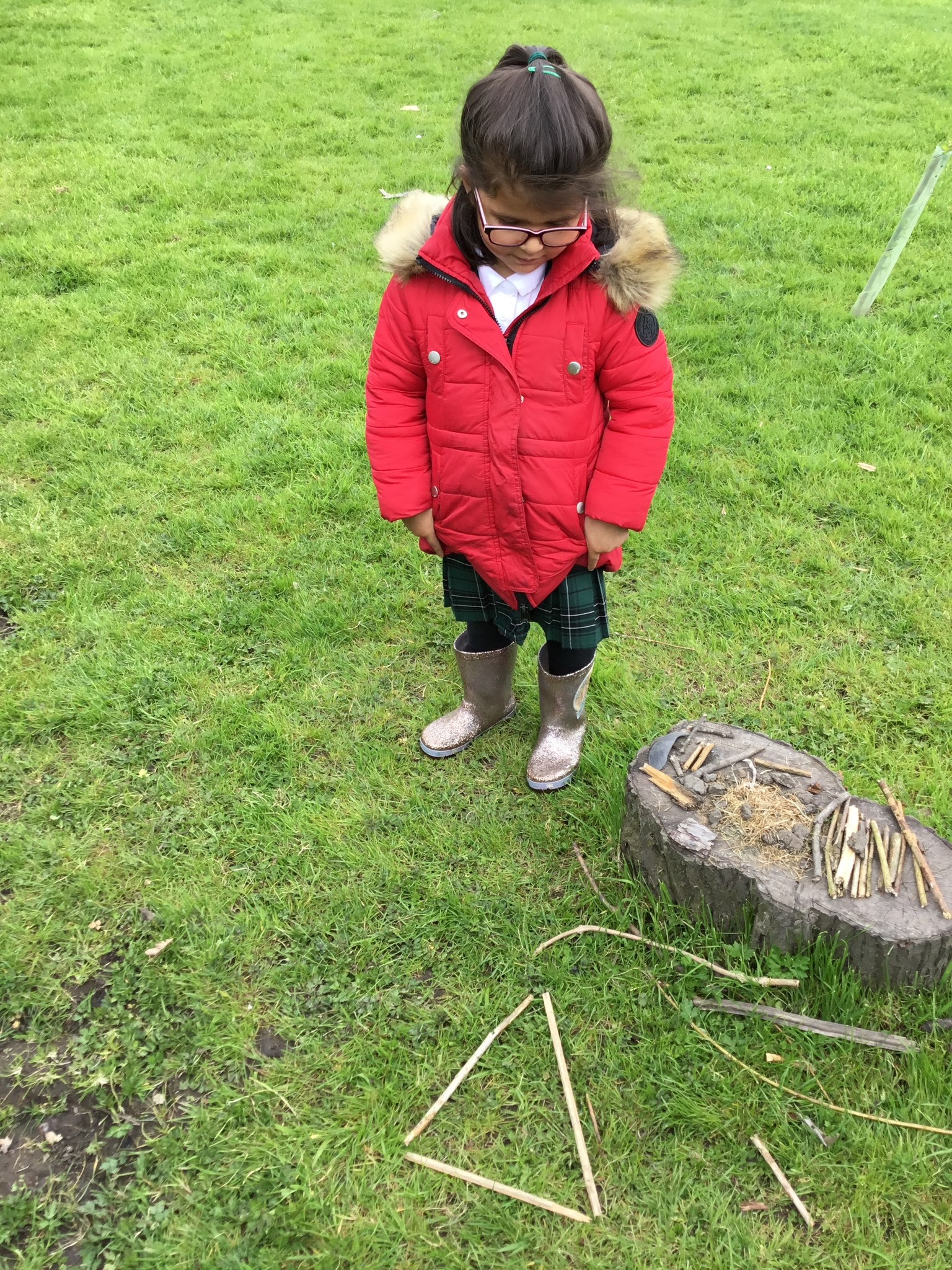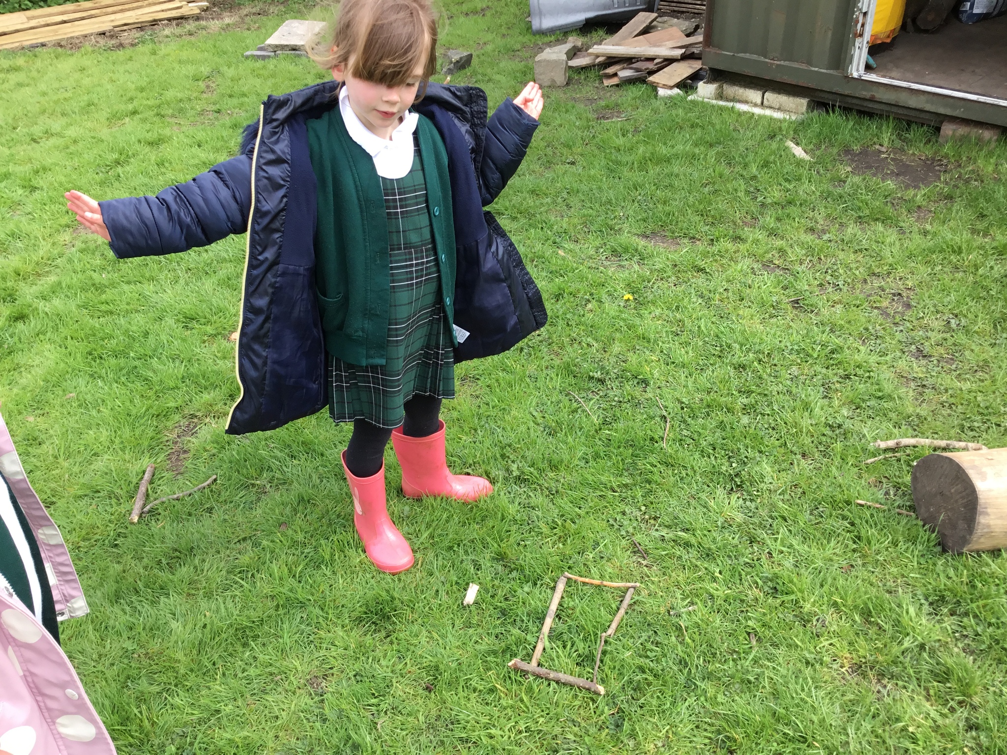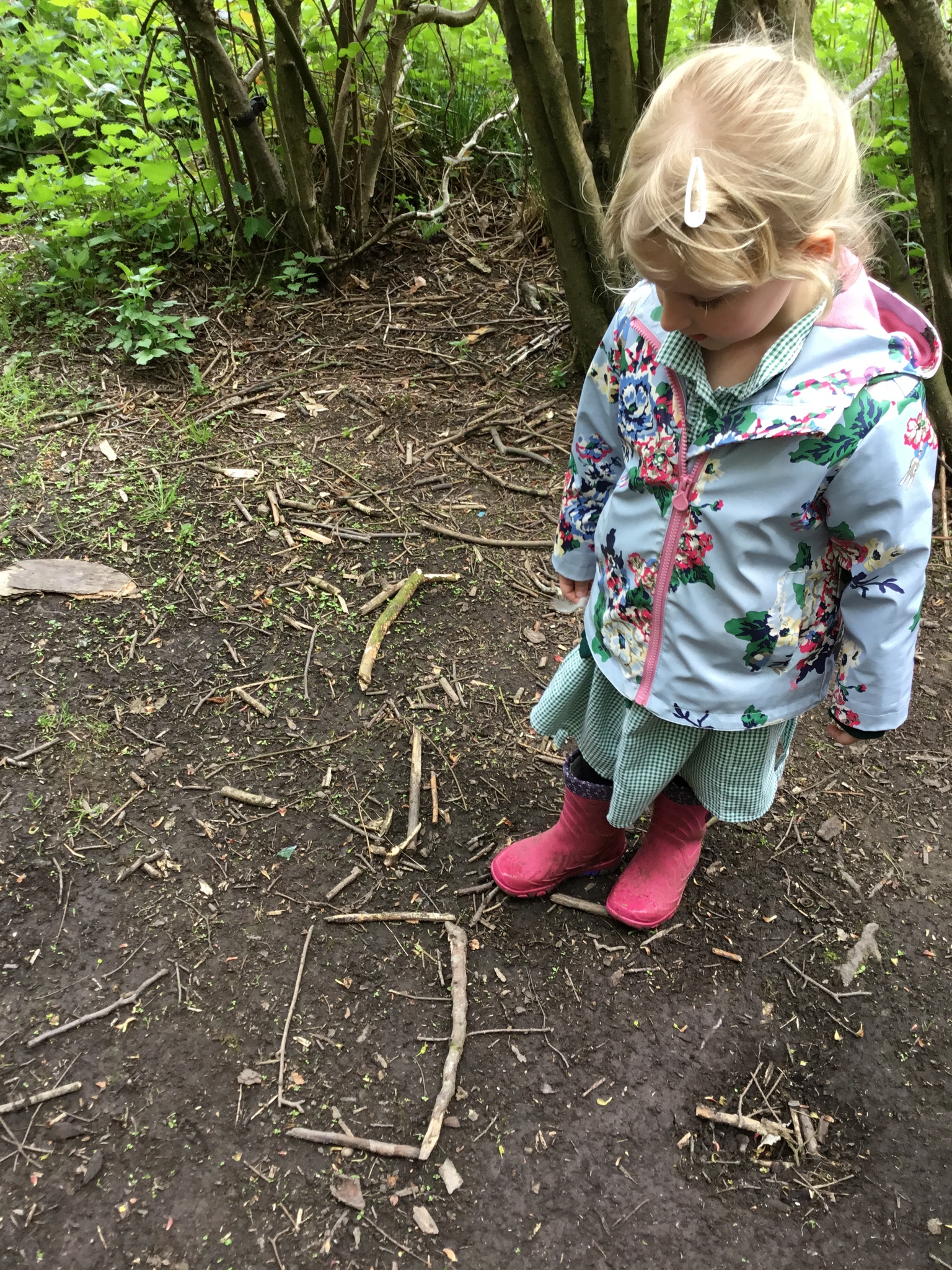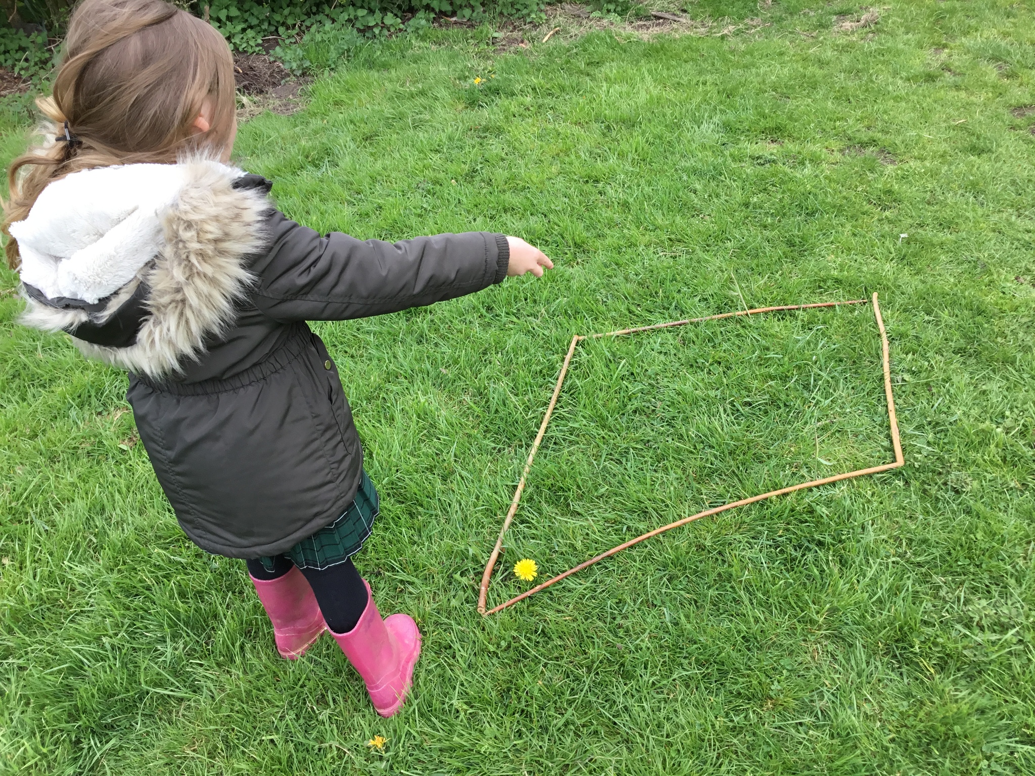 This week Reception were thinking about shapes and patterns in Forest School. We looked for natural patterns on leaves and sticks and shapes. The children then used natural materials to make their own shapes, describing how many sides their shape had.