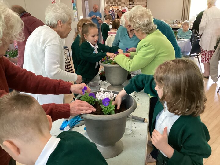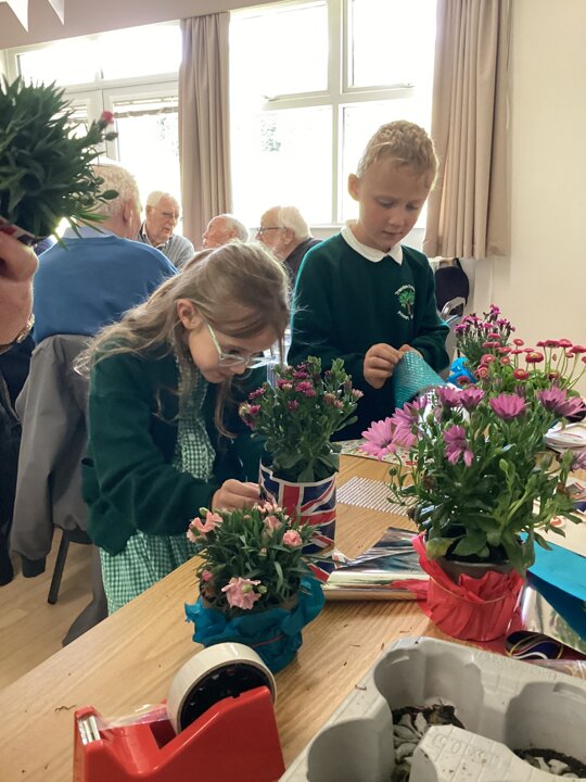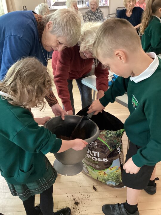 This morning, a number of the School Council representatives, with some of our Eco Warriors, attended Trawden Community Centre to create planters for outside the community centre and decorate plant pots so that they could give out the plants to members at the lunchtime club. The children had a wonderful time helping the more mature population of the village and discovered that quite a number of them attended Trawden School as children themselves. One lady began our school 89 years ago - wow! The children were polite and were excellent ambassadors for Trawden Forest Primary School. Well done!