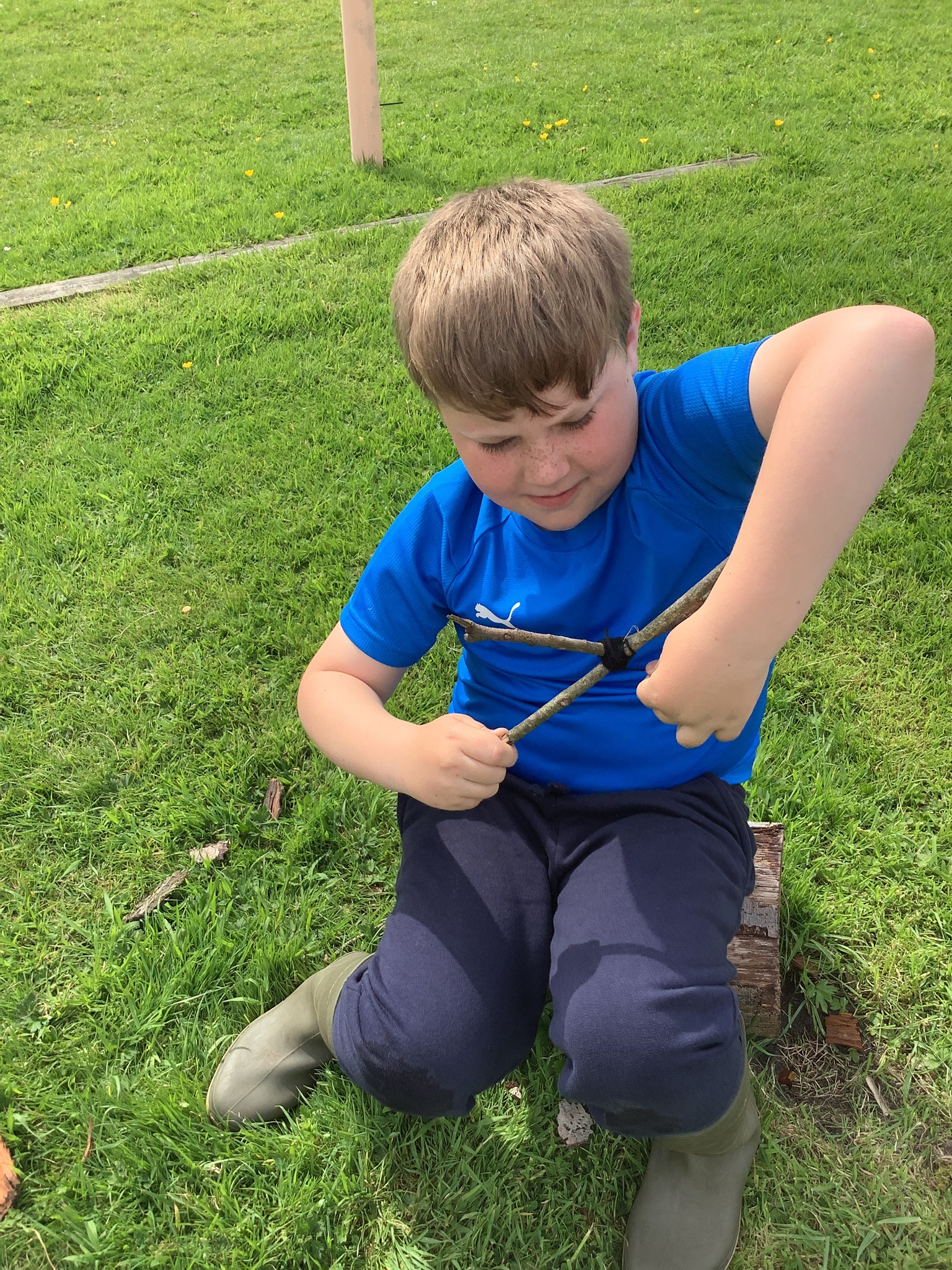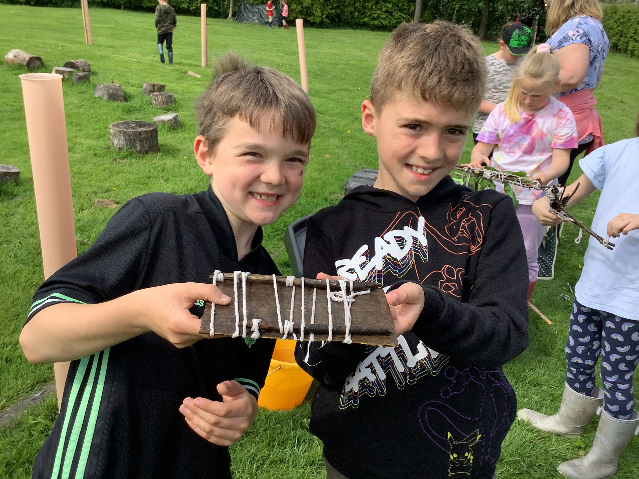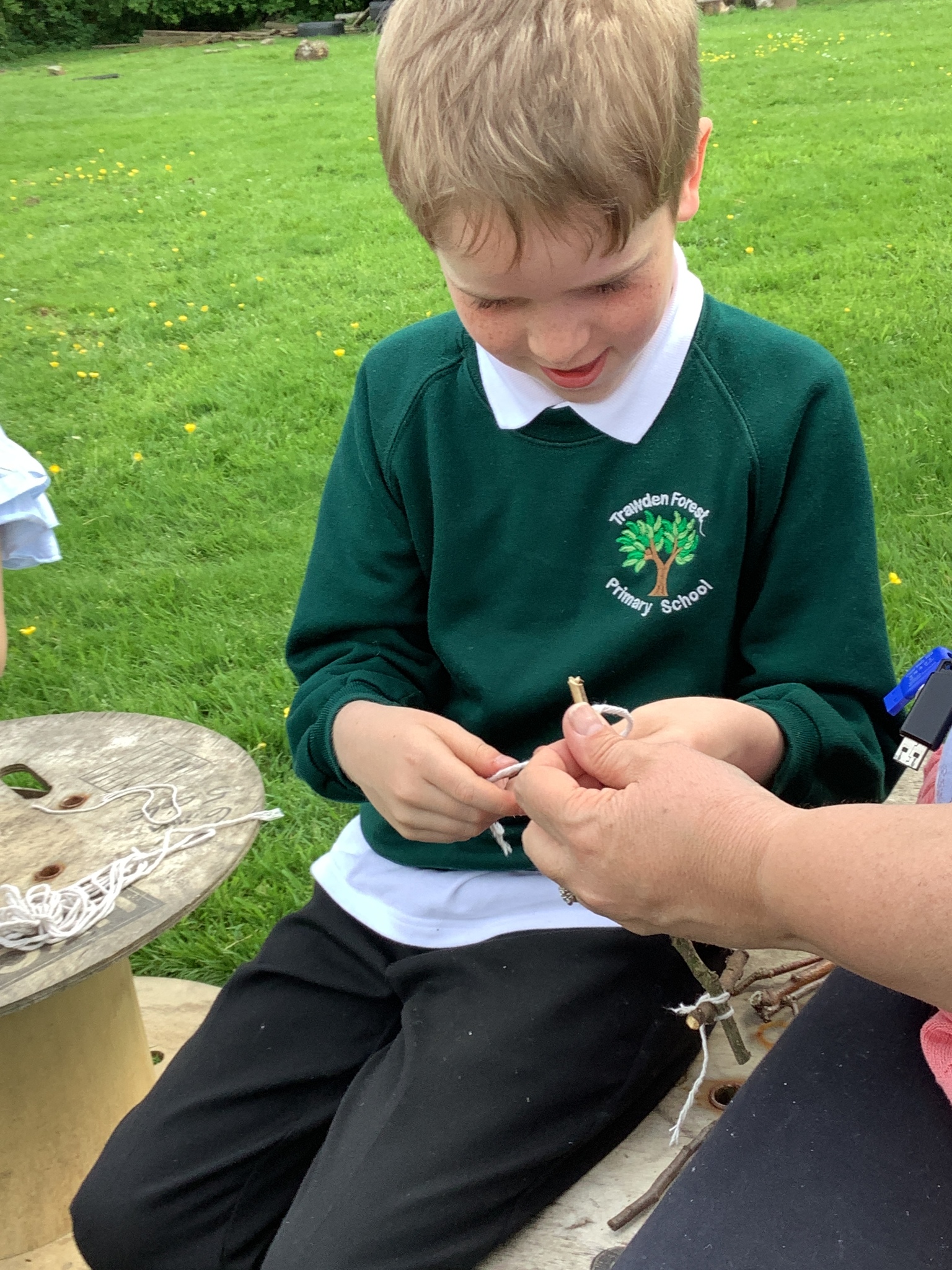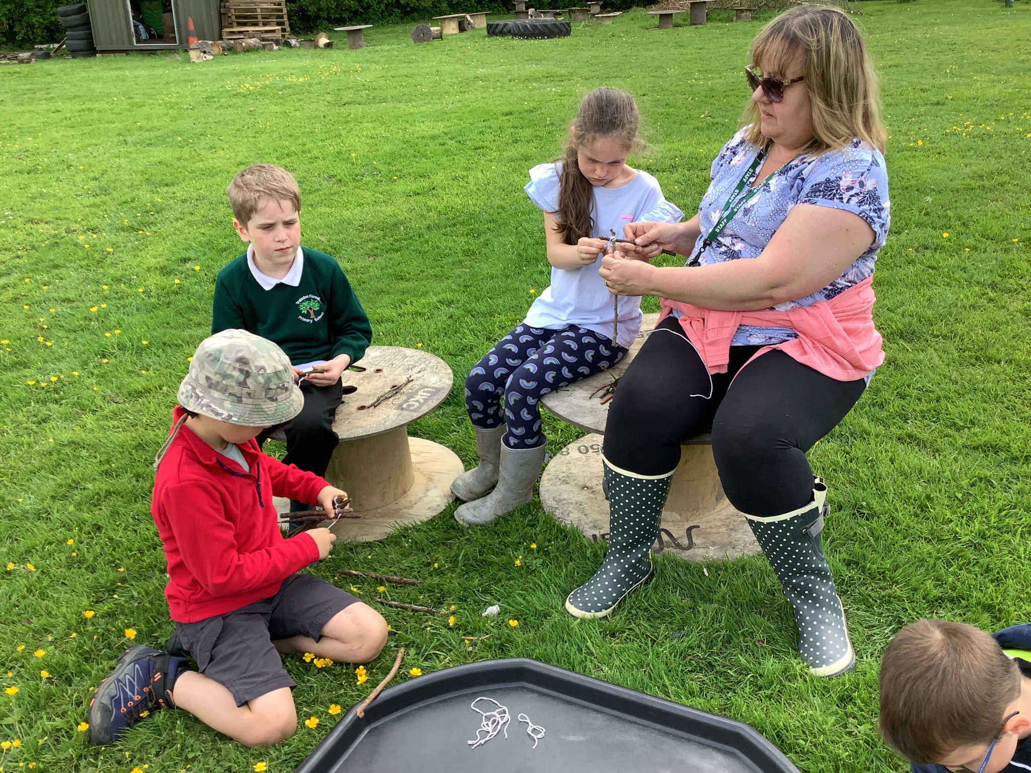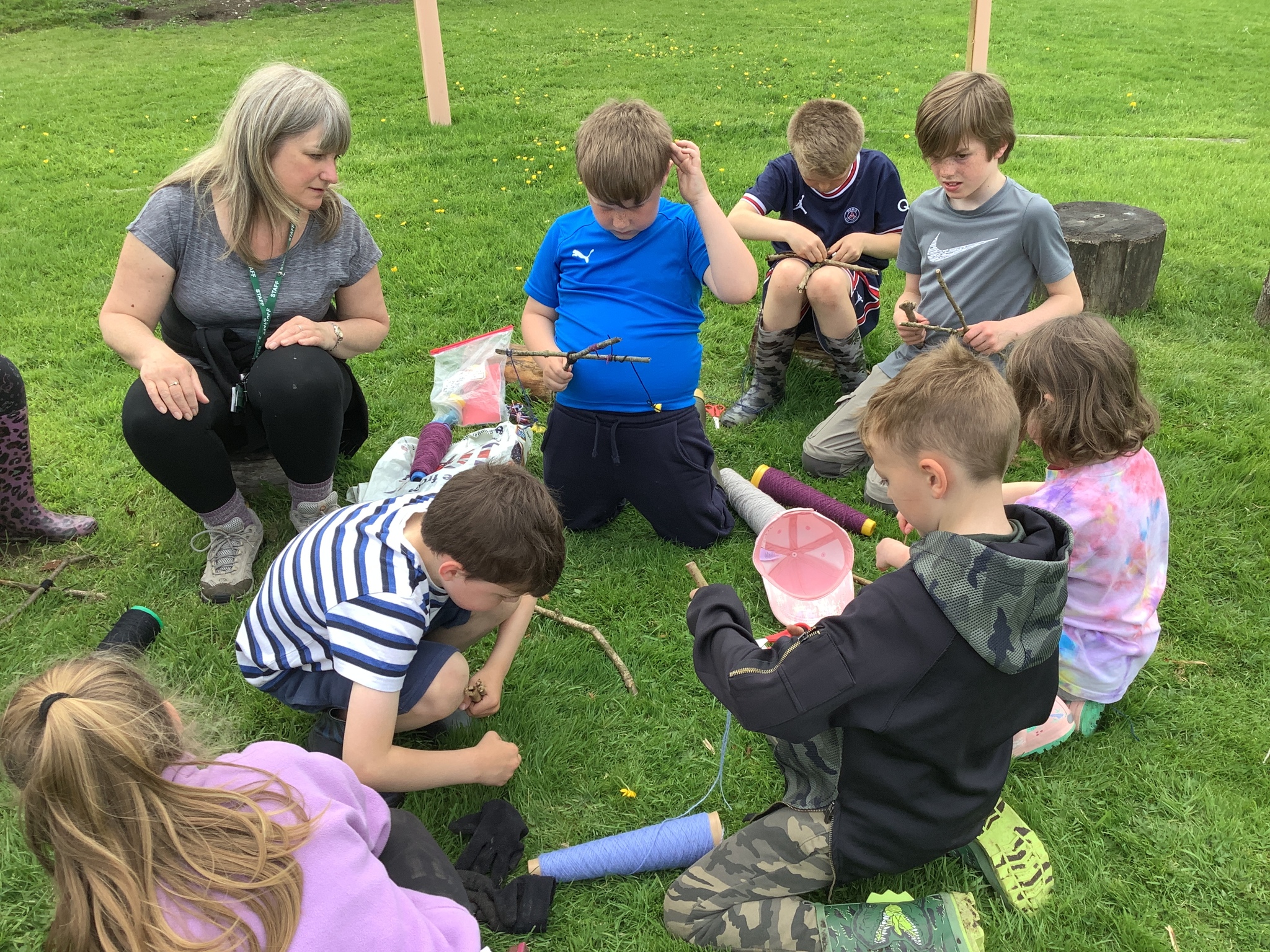 During our Forest School session, Years 3 and 4 built dens, created rafts and made natural mobiles using the knots they had been learning and cutting the string they required using a sheath knife. They had a raft competition and also found a Puss Moth - not one any of us had seen before! What a find it was!
