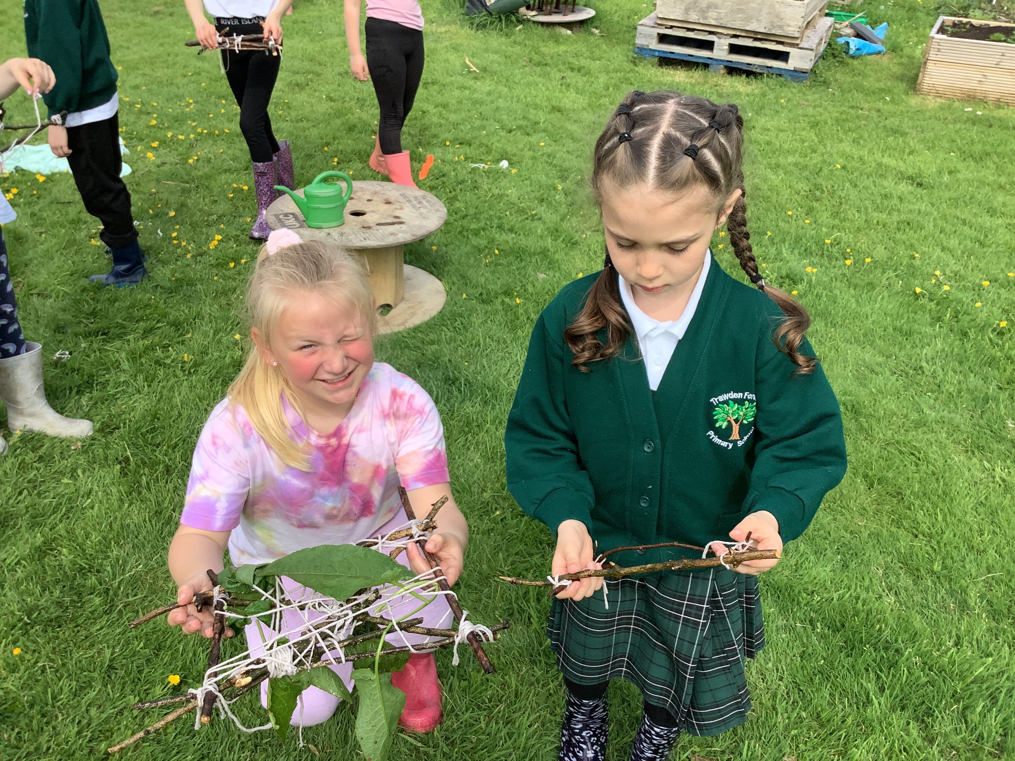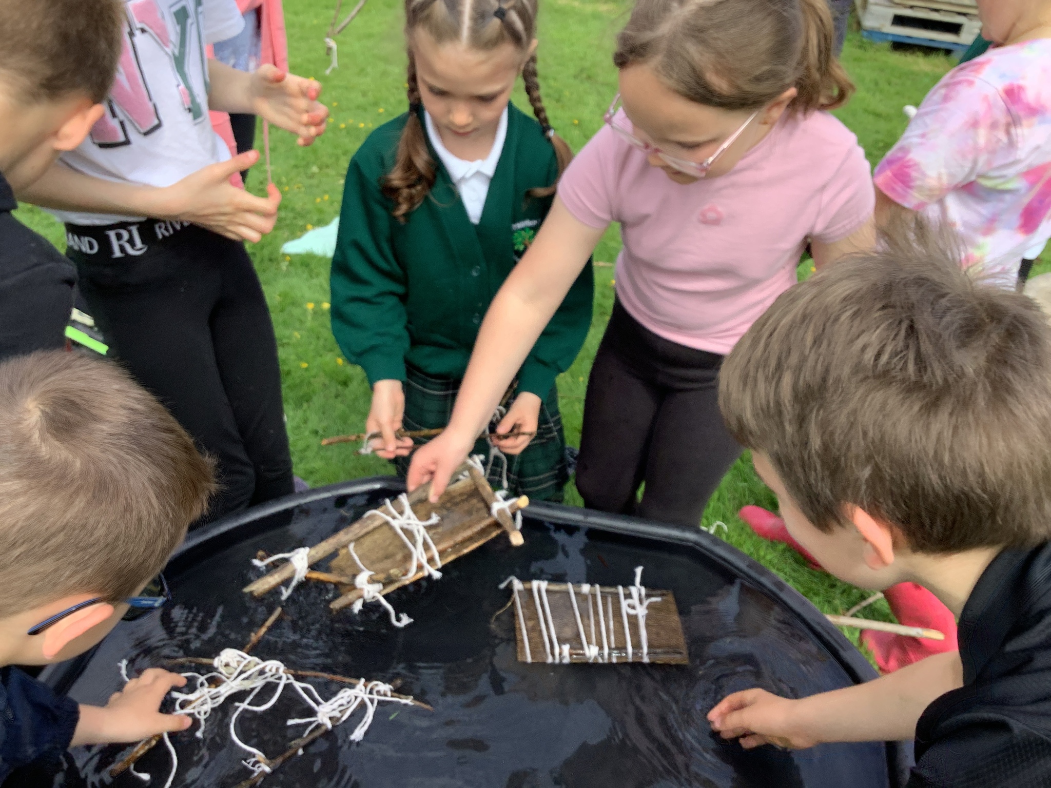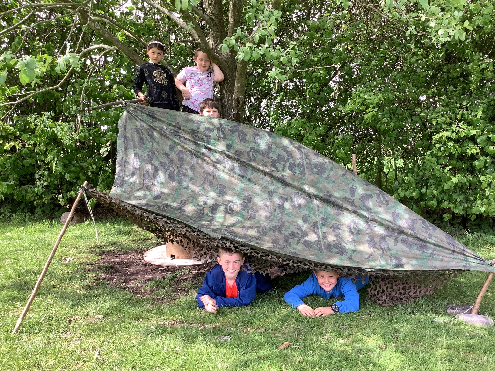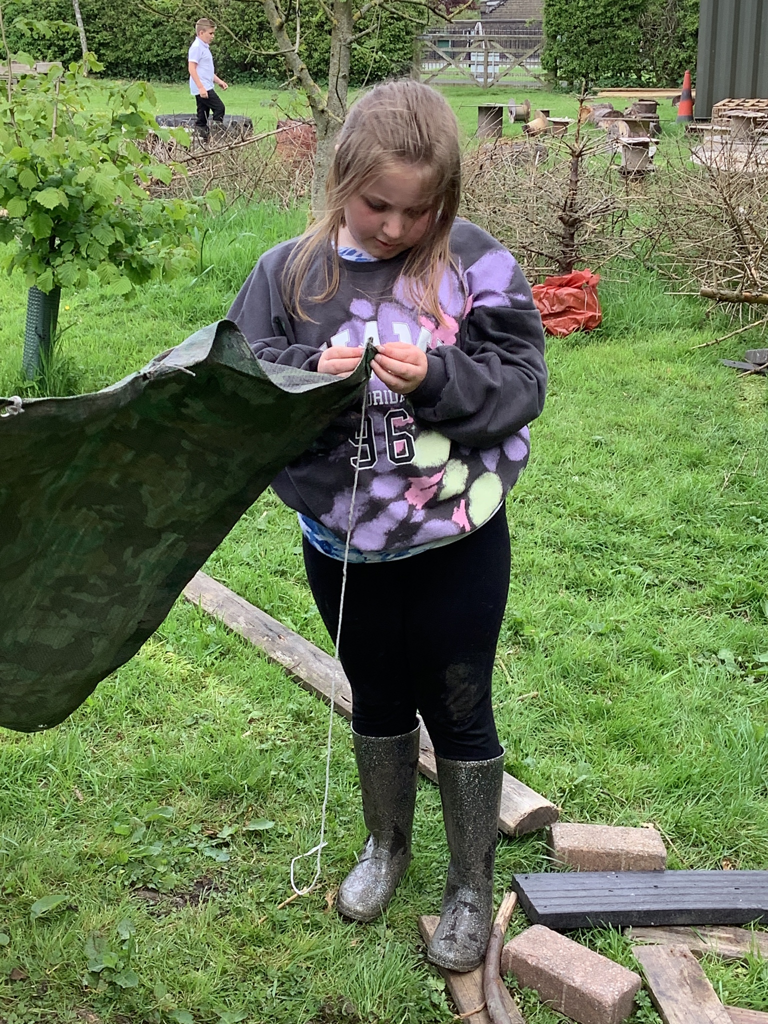 During our Forest School session, Years 3 and 4 built dens, created rafts and made natural mobiles using the knots they had been learning and cutting the string they required using a sheath knife. They had a raft competition and also found a Puss Moth - not one any of us had seen before! What a find it was!