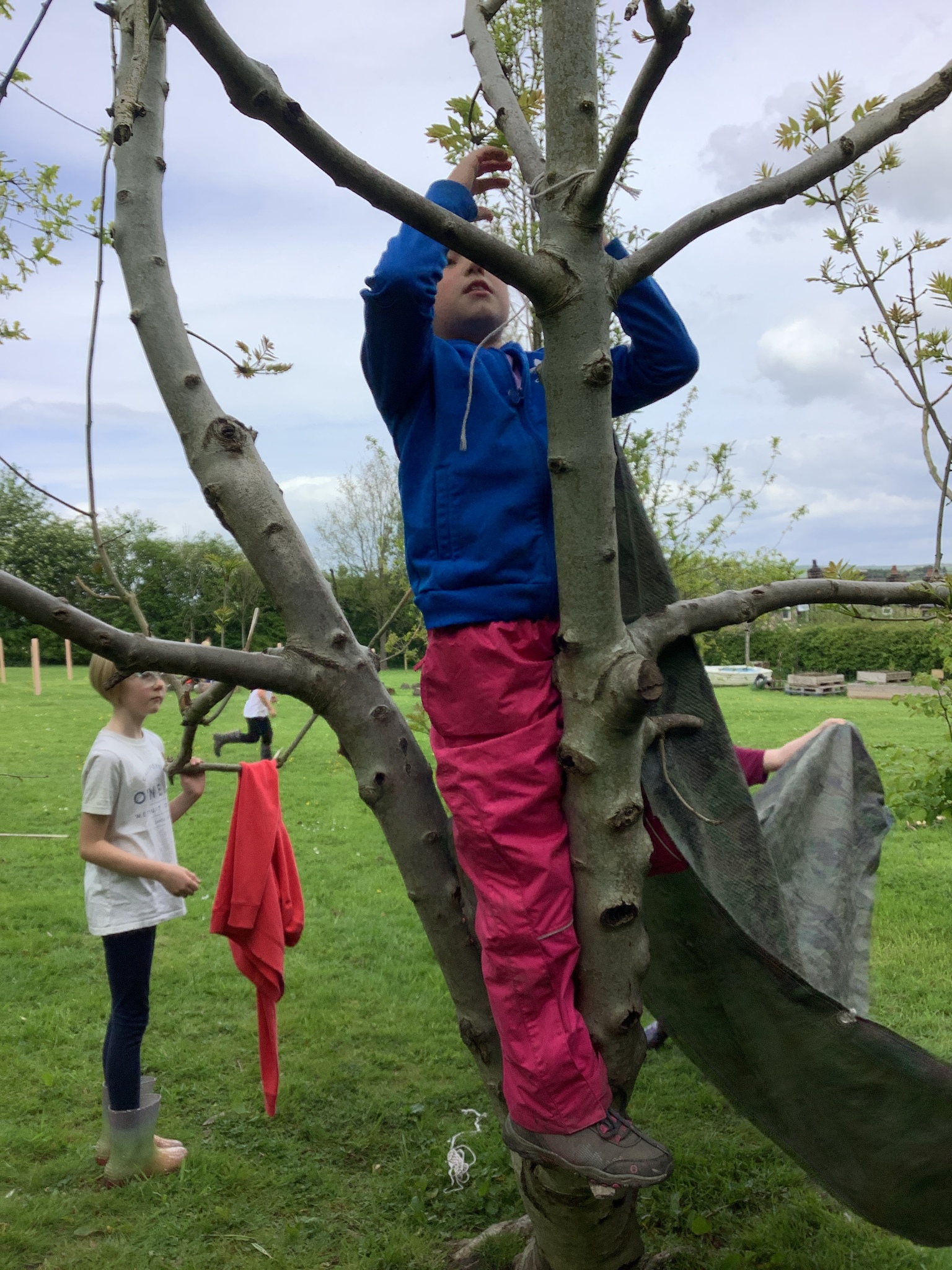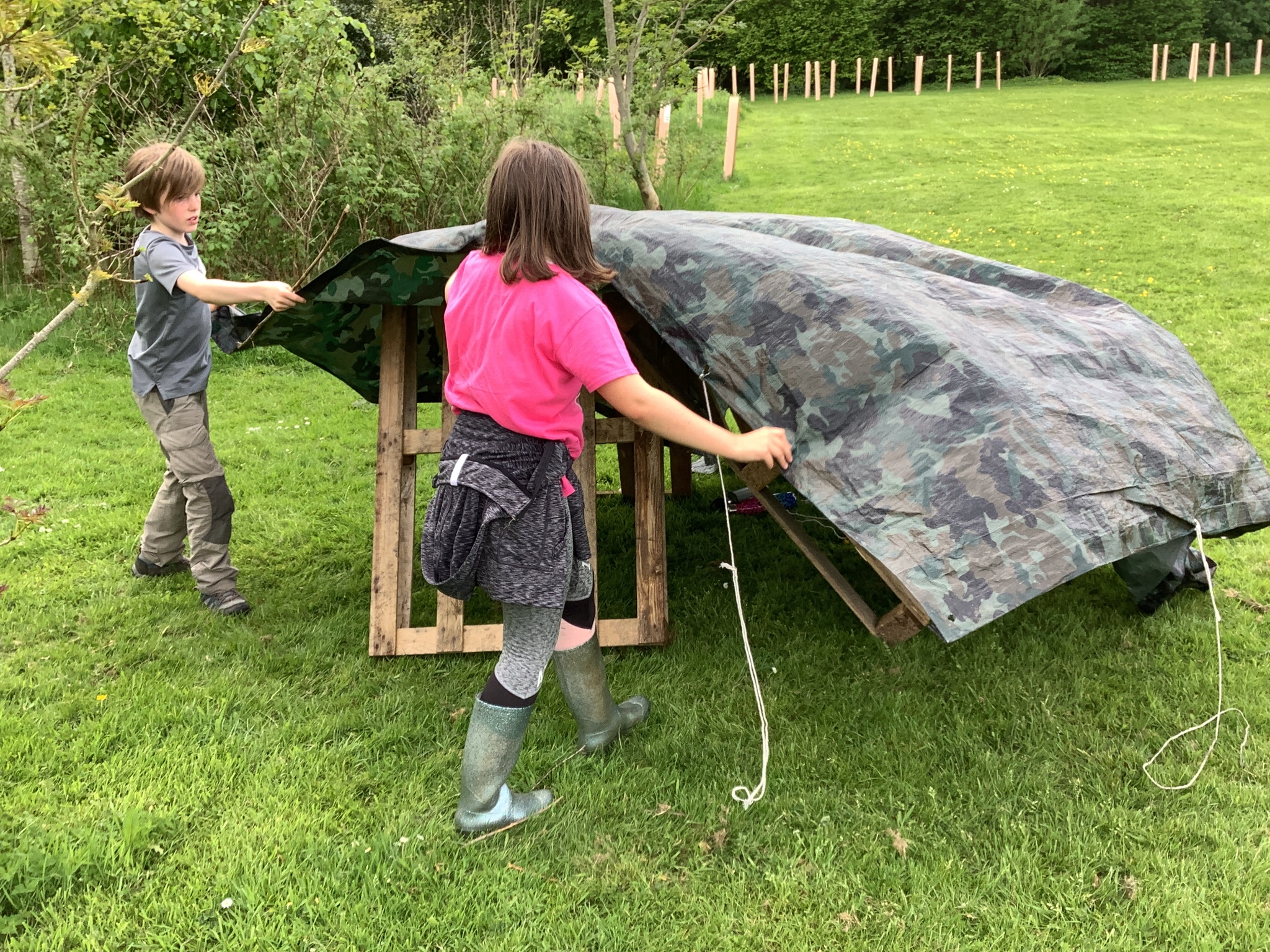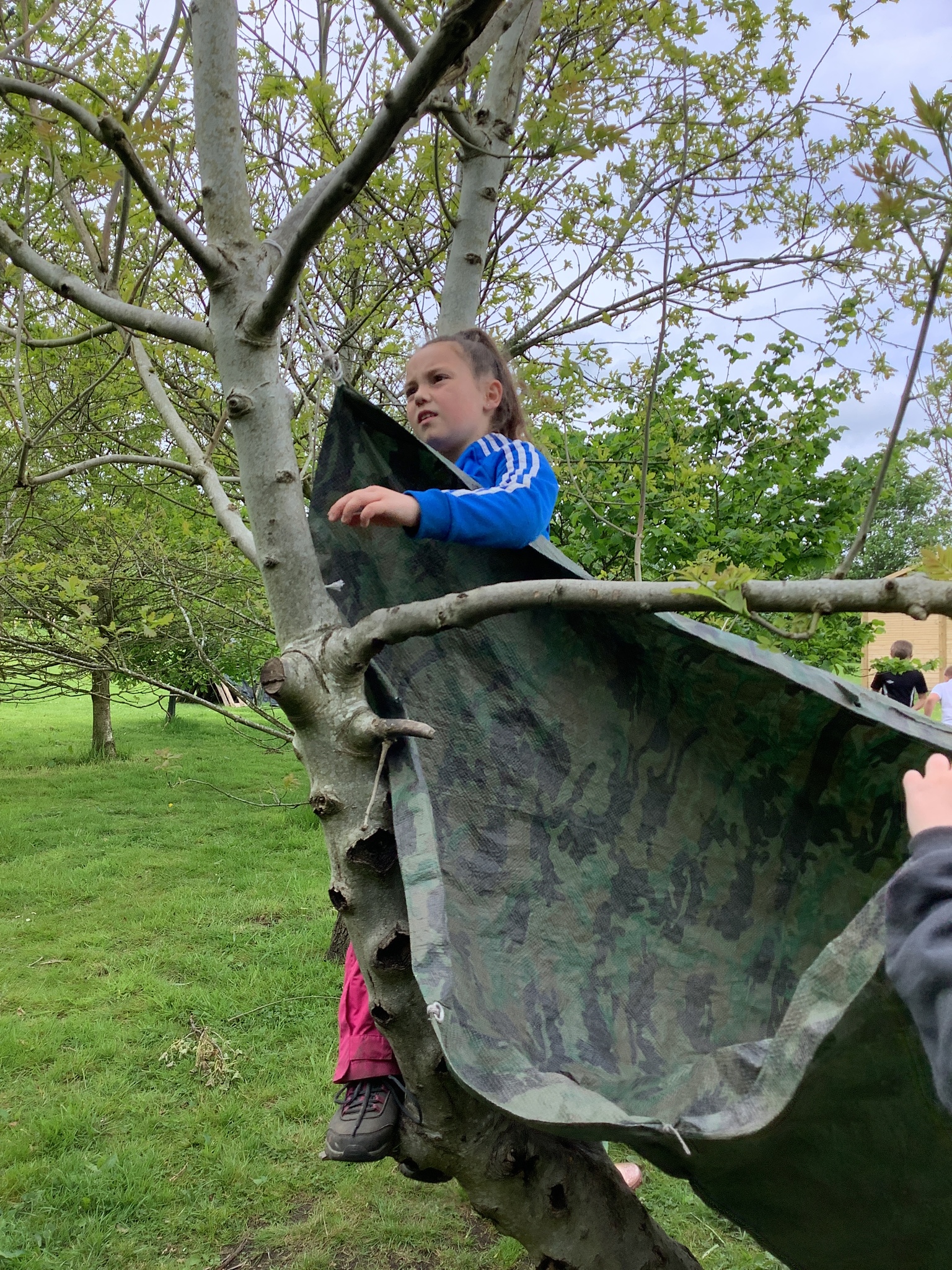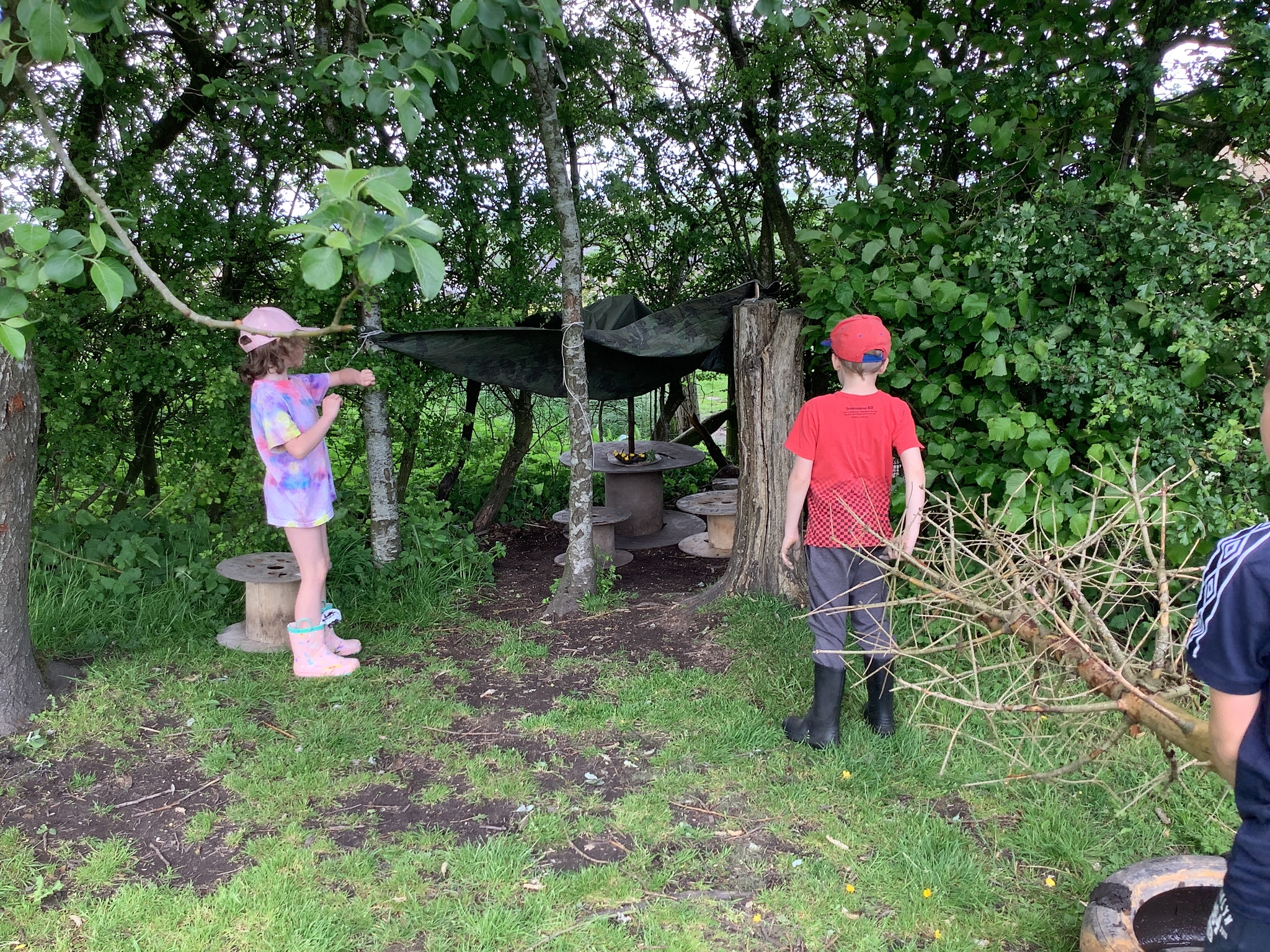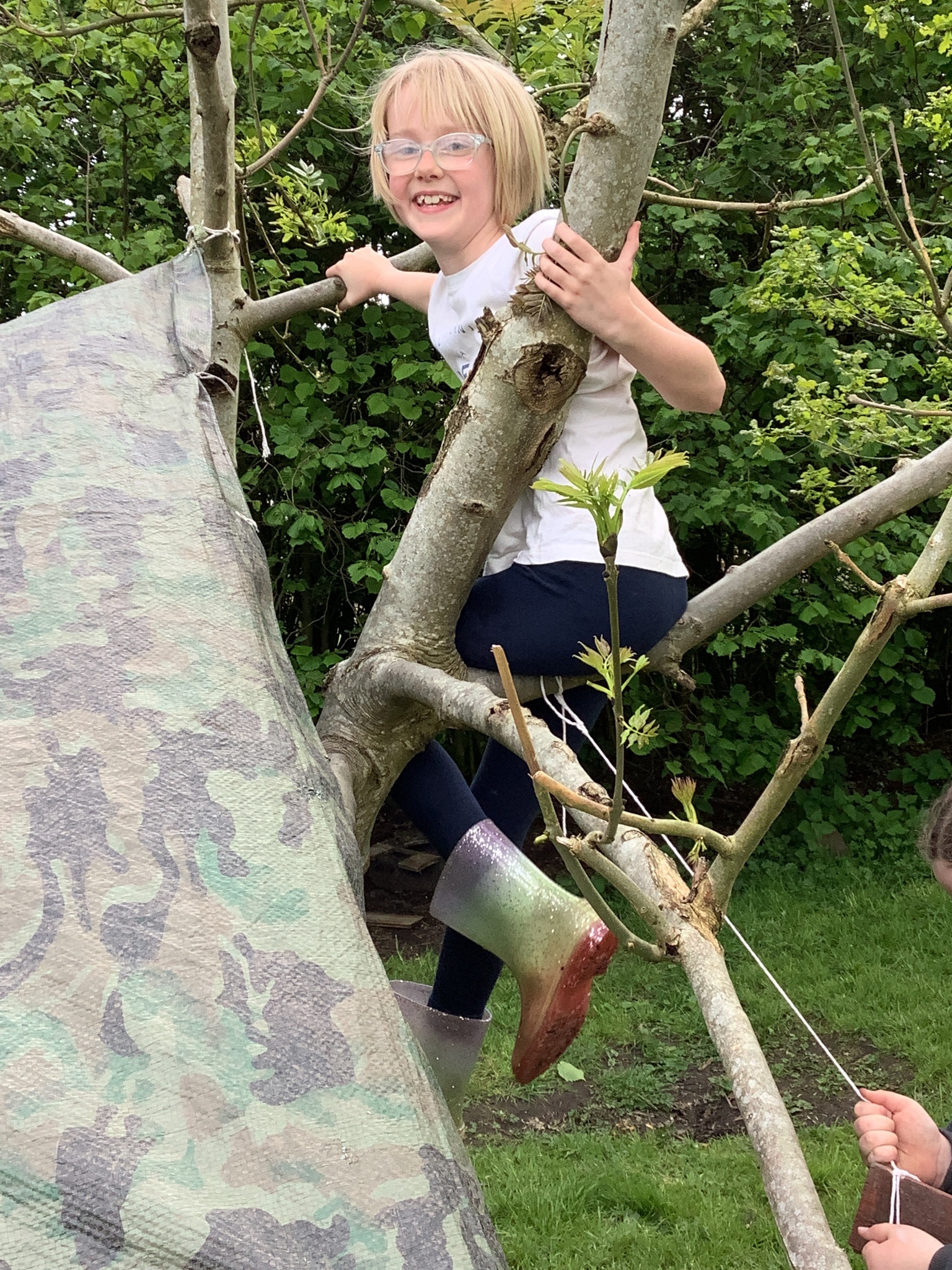 During our Forest School session, Years 3 and 4 built dens, created rafts and made natural mobiles using the knots they had been learning and cutting the string they required using a sheath knife. They had a raft competition and also found a Puss Moth - not one any of us had seen before! What a find it was!