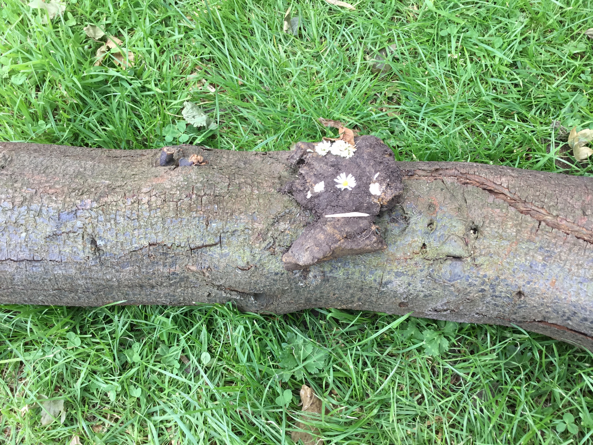 We used clay as a face and attached features using natural materials.