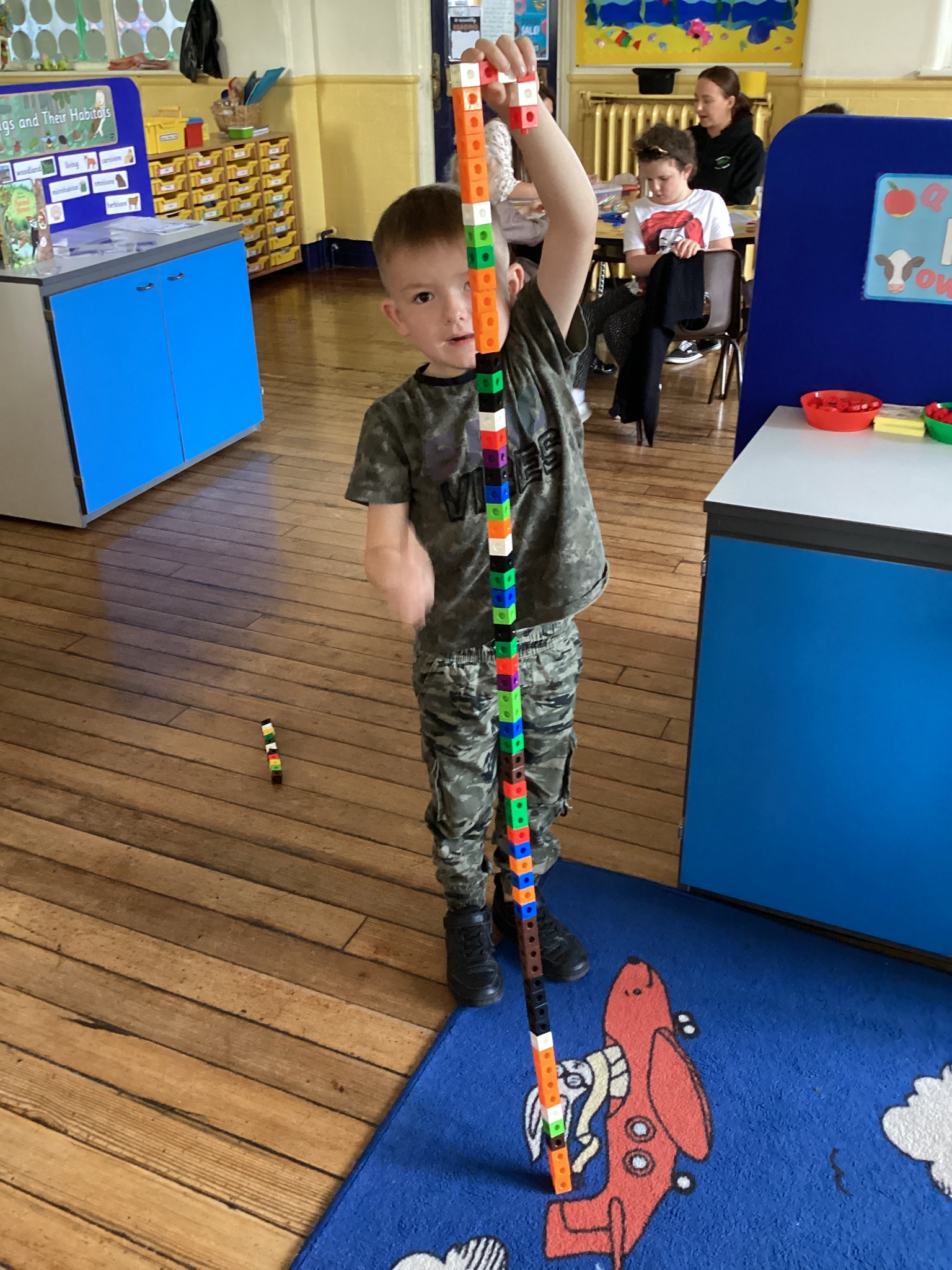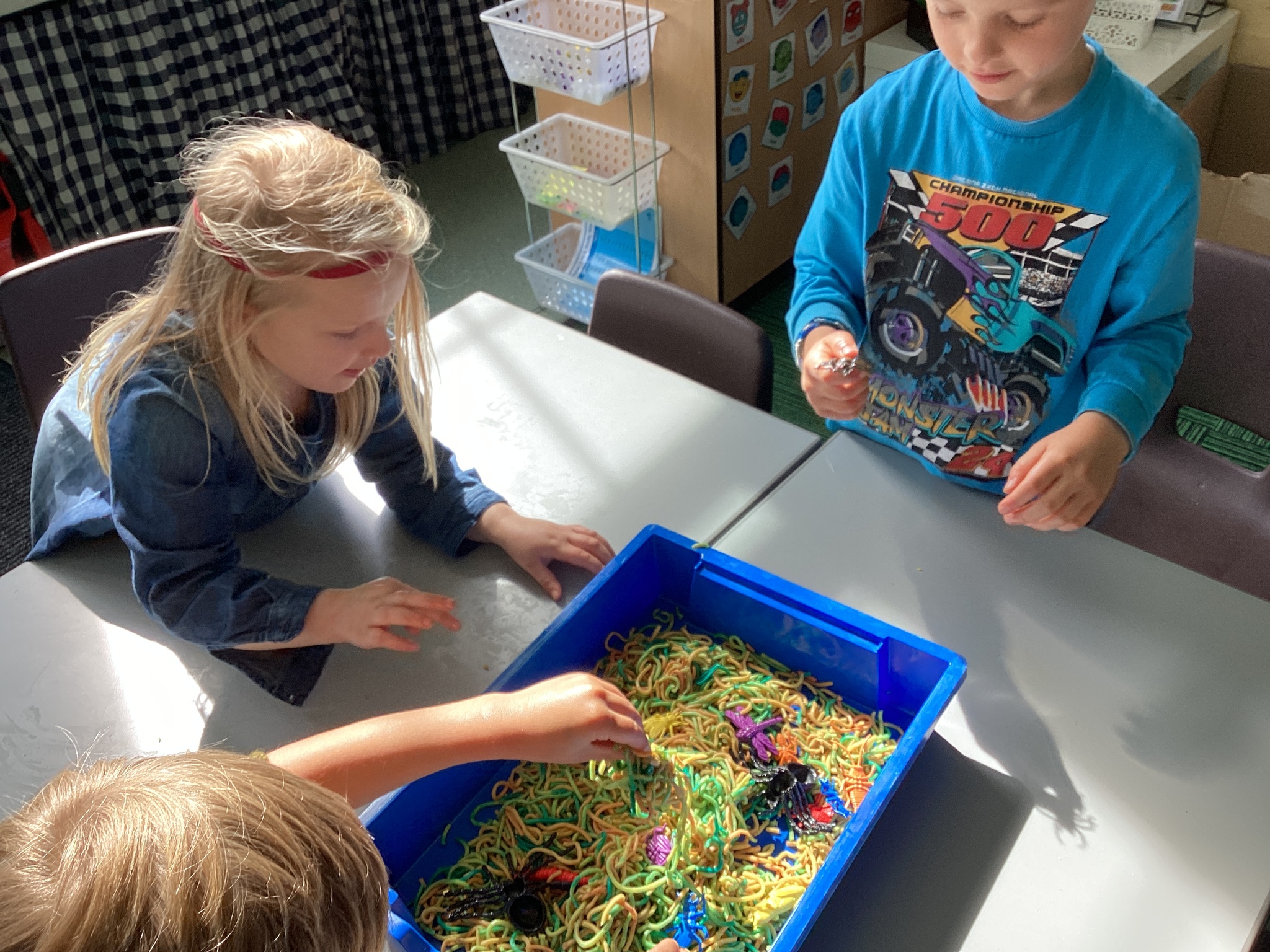 We practised counting to colour Mrs Twit's balloons, picked bugs out of wormy spaghetti and tried to make the longest walking sticks.