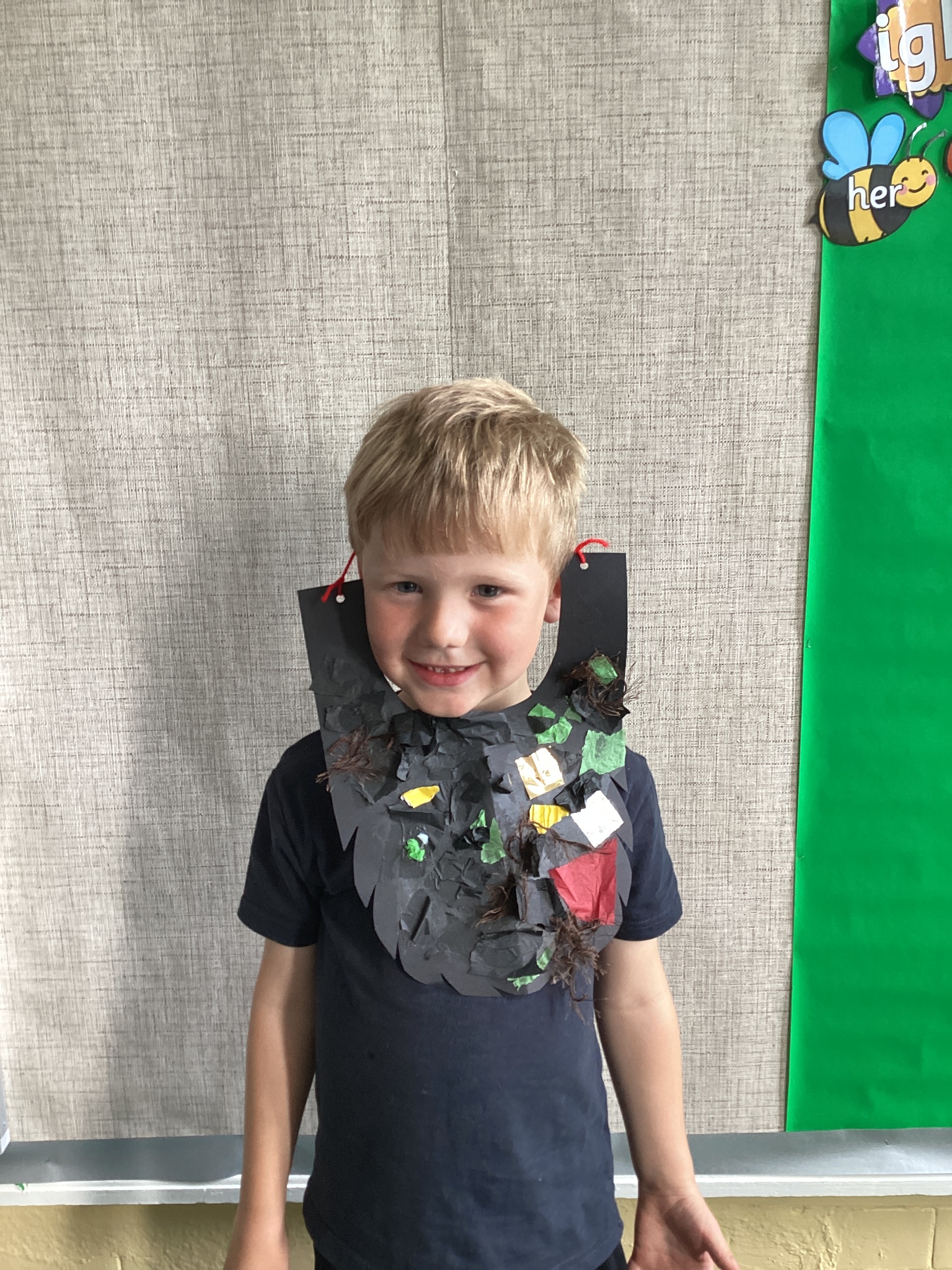 We read parts of the story and write a description of Mr Twit. Amelia wrote "He is hairy and wicked. He has a smelly beard."