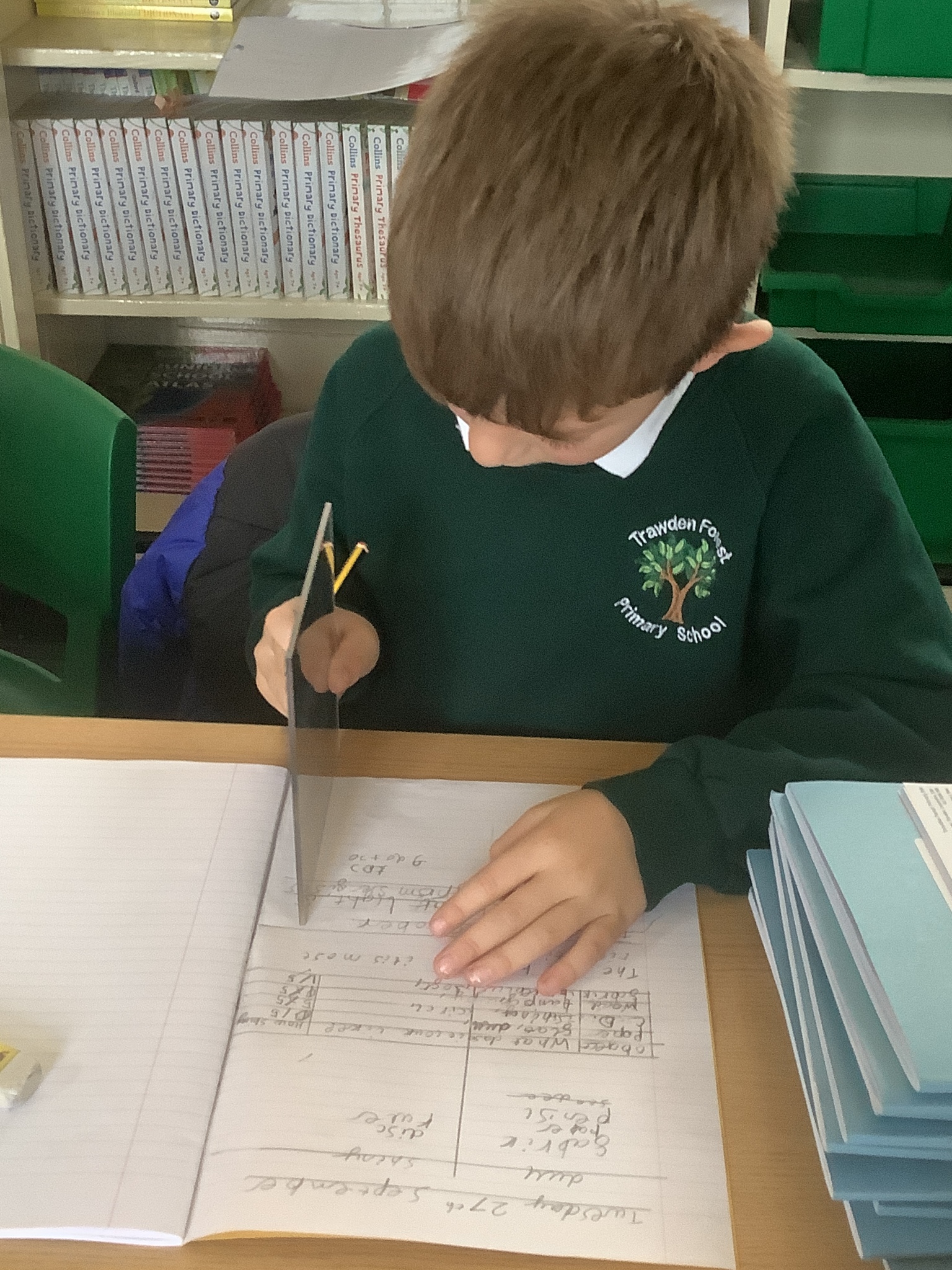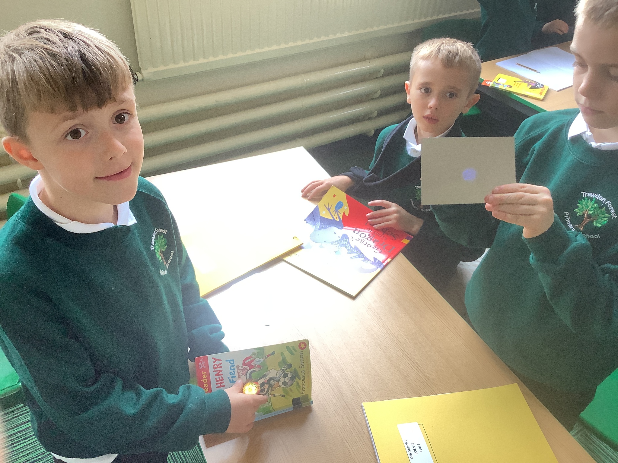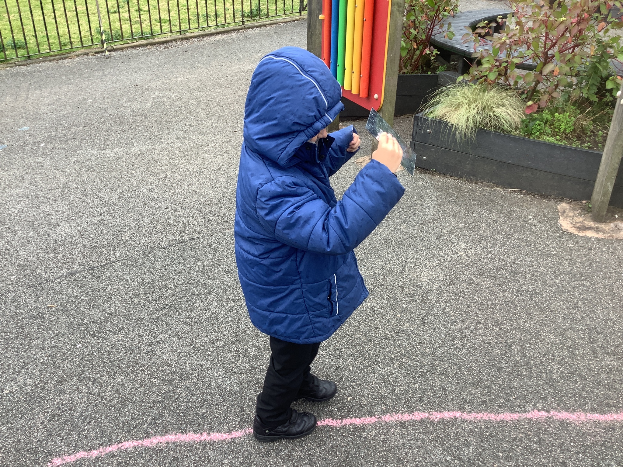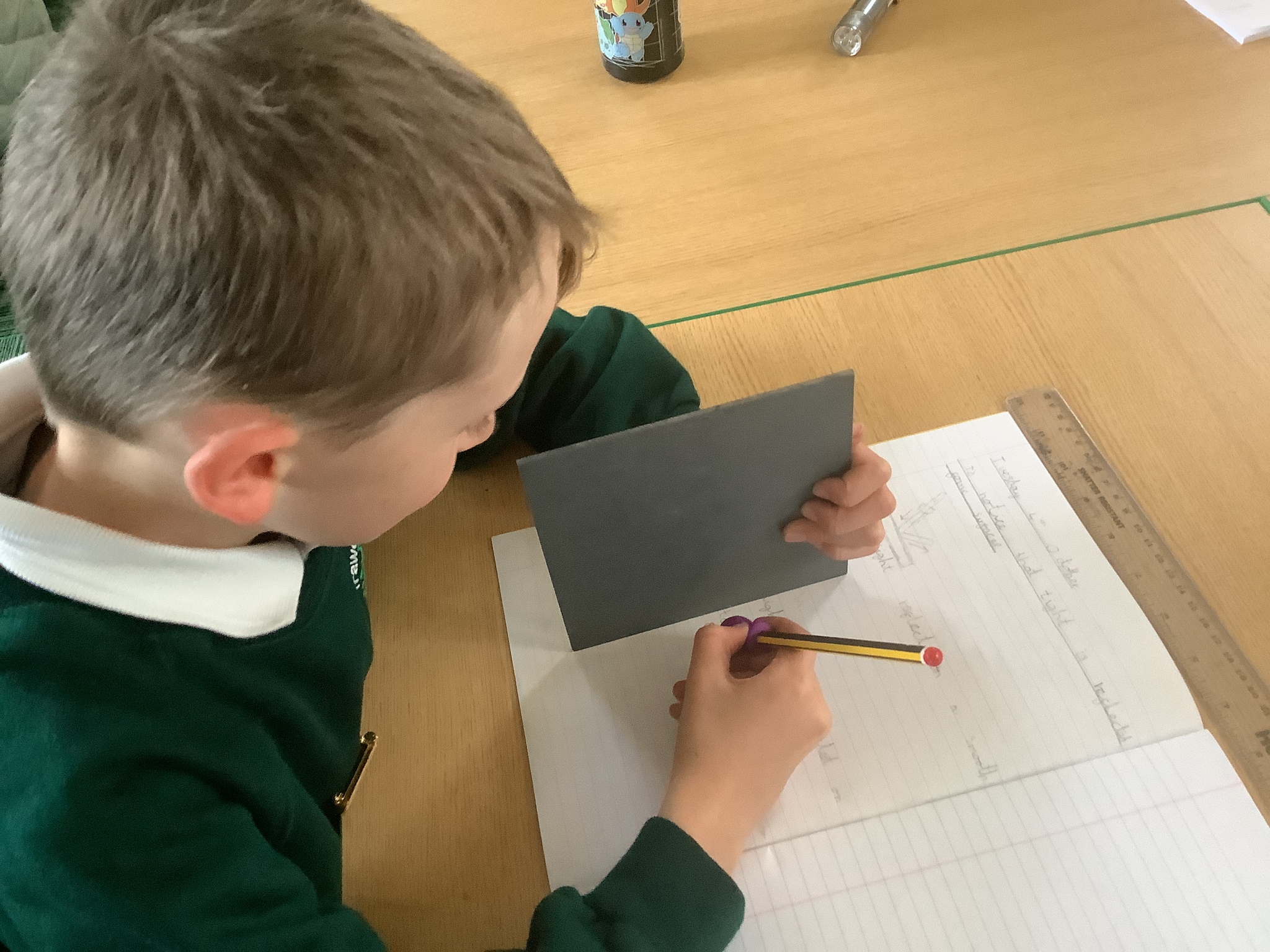 This afternoon, Year 3 had fun investigating how light is reflected from surfaces. They learnt that light is reflected better from smooth surfaces as the reflection is much clearer. On the playground, they experimented with following different lines using their mirror to reflect their line so that they could follow their lines using only the reflection in the mirror. Afterwards, they created messages which were backwards and used the mirror to reflect them the correct way.