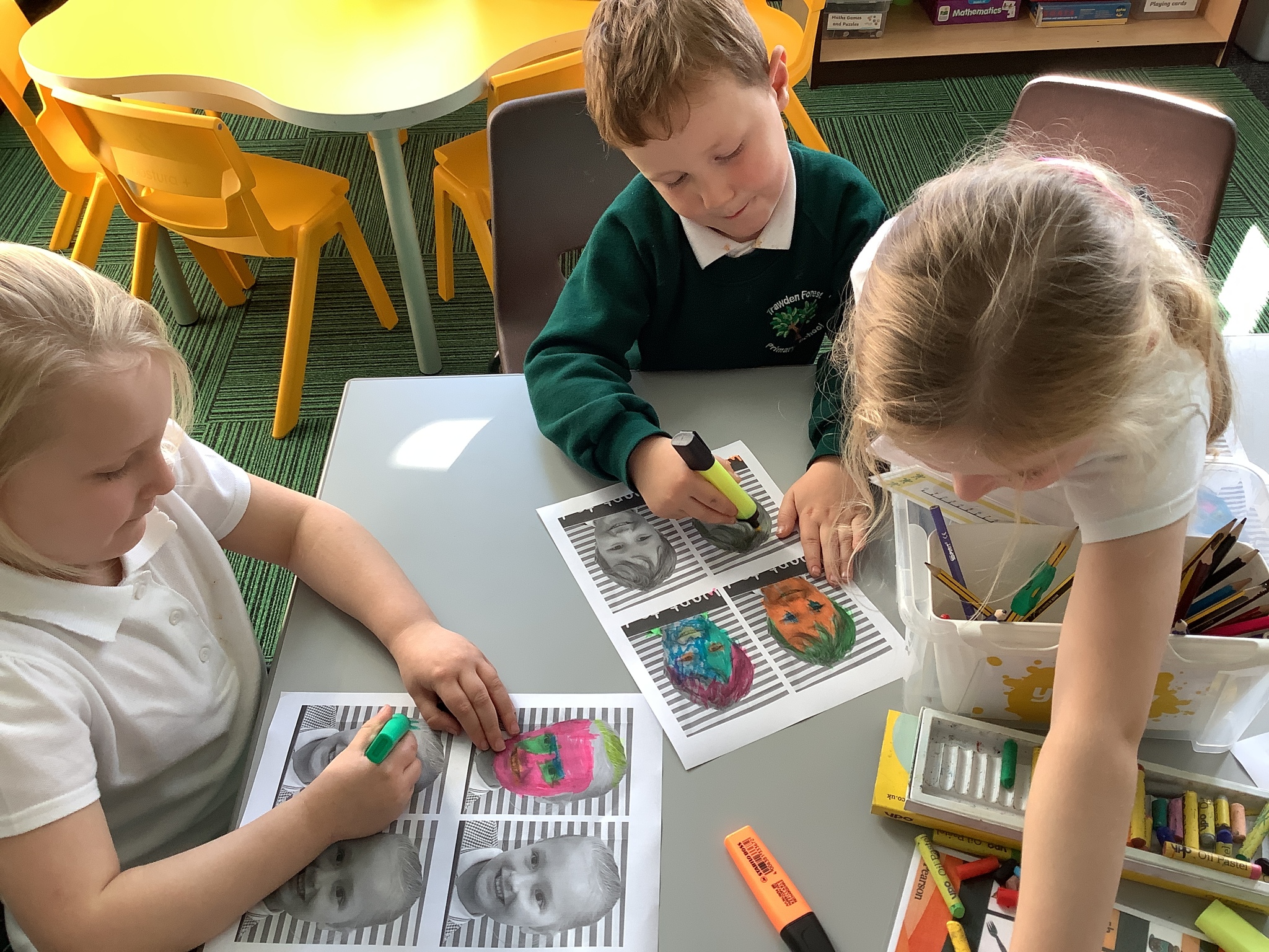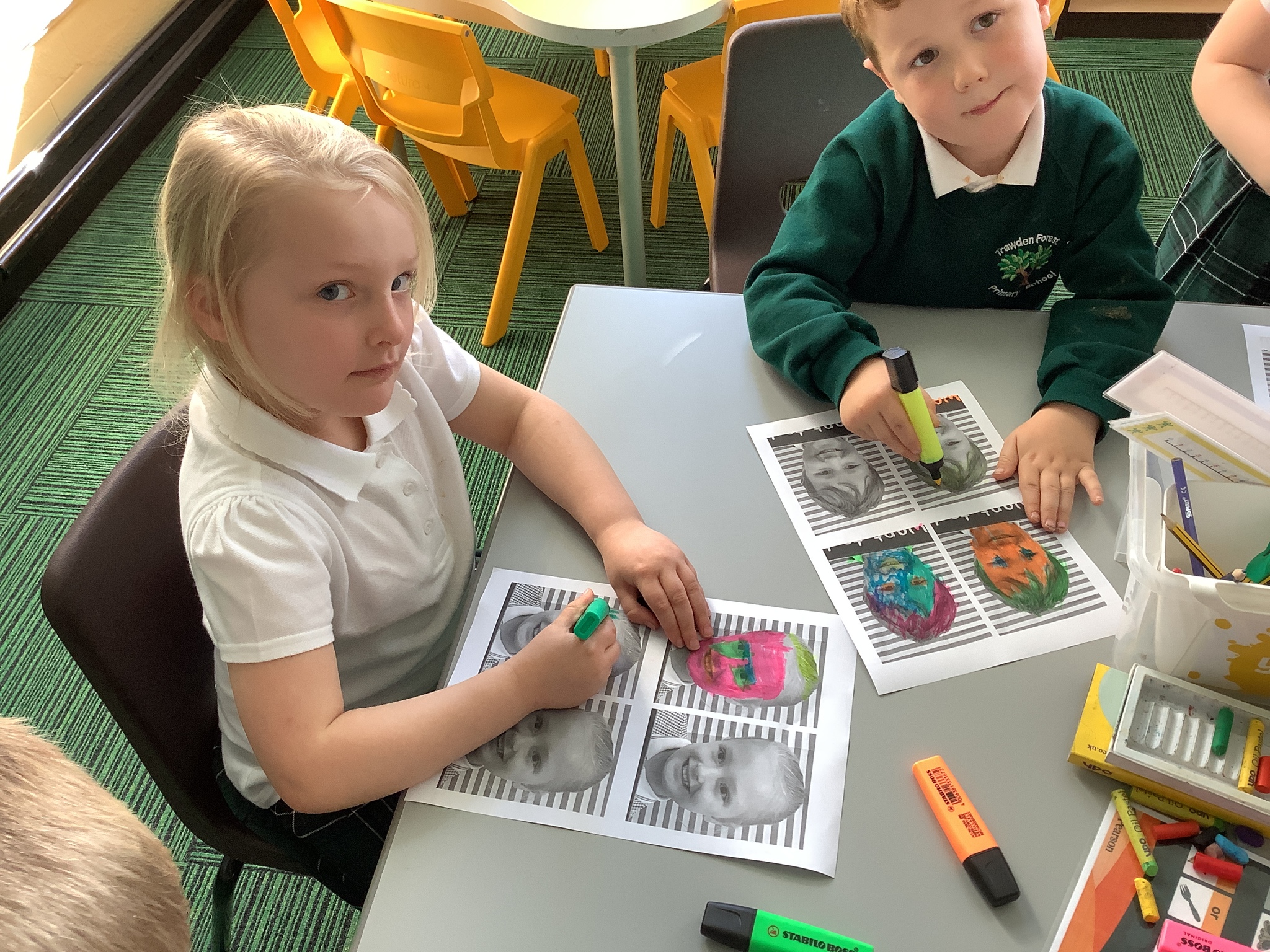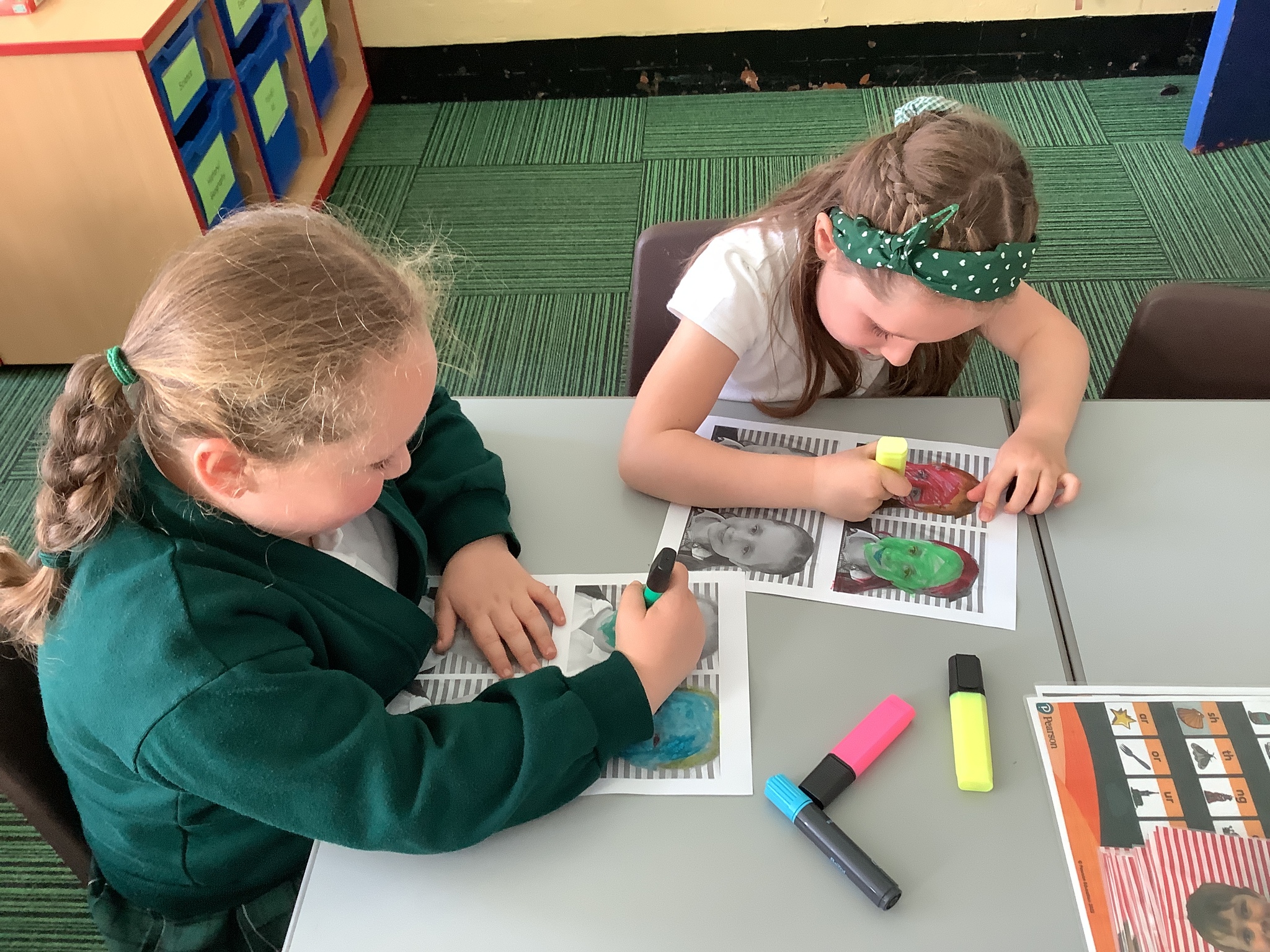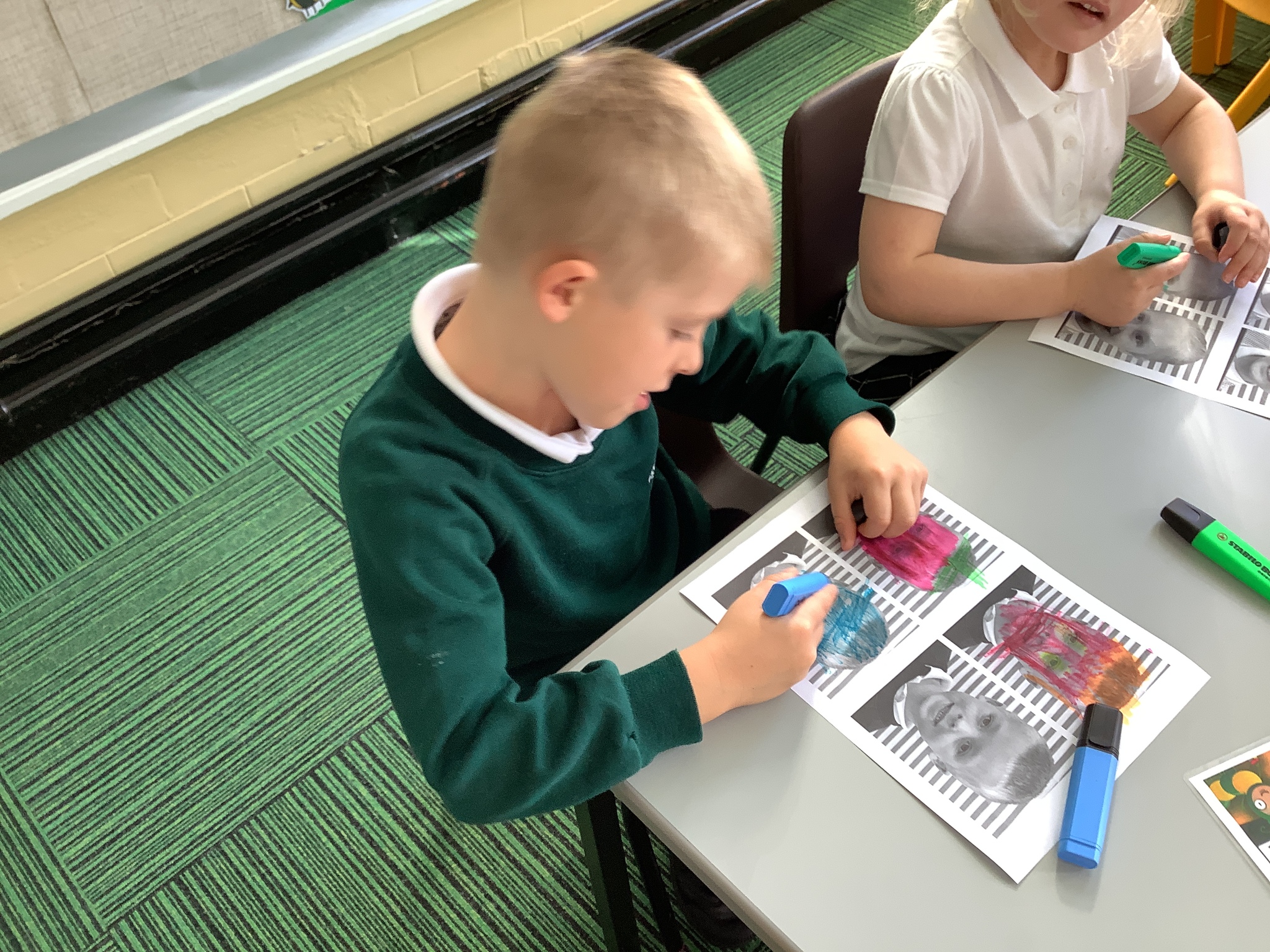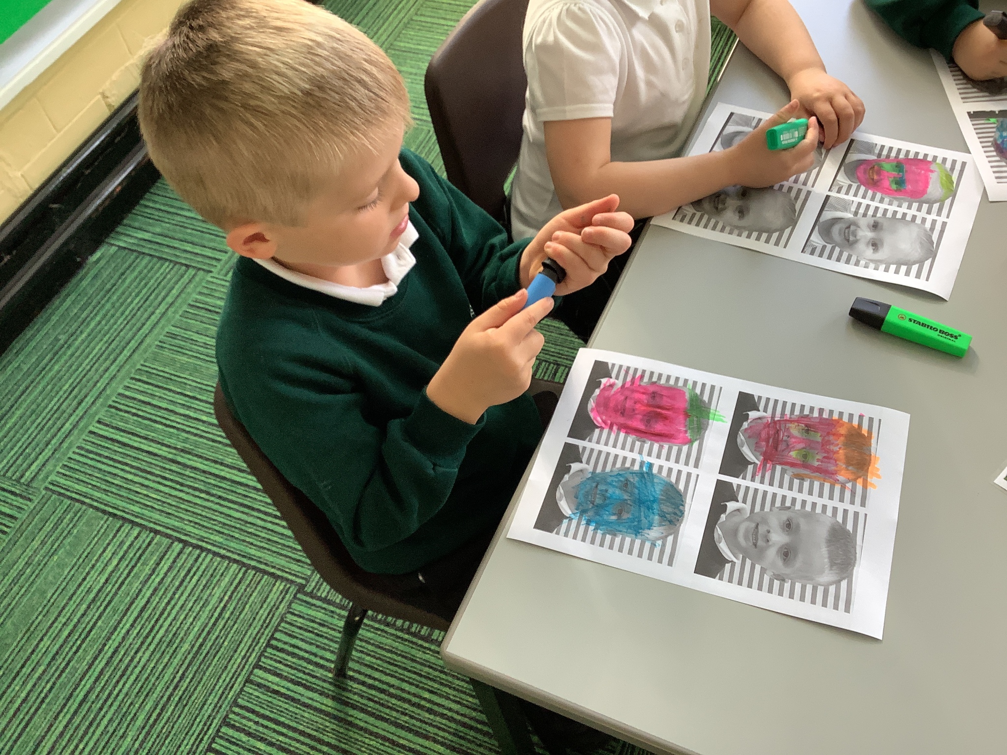 This we week looked at the work of Andy Warhol and his portrait of Marilyn Monroe. We learned about pop art techniques and used pastels and highlighters to create our own.