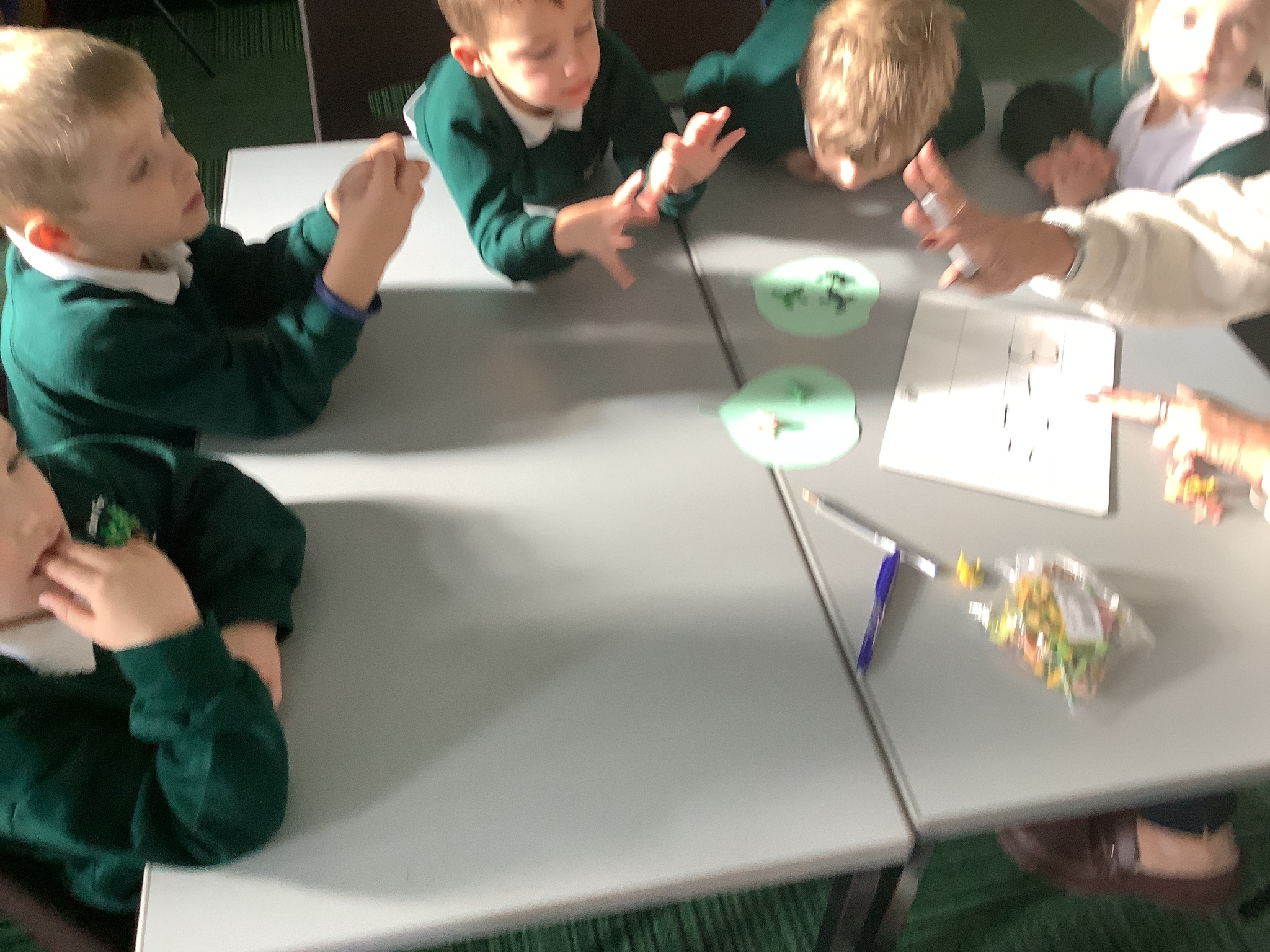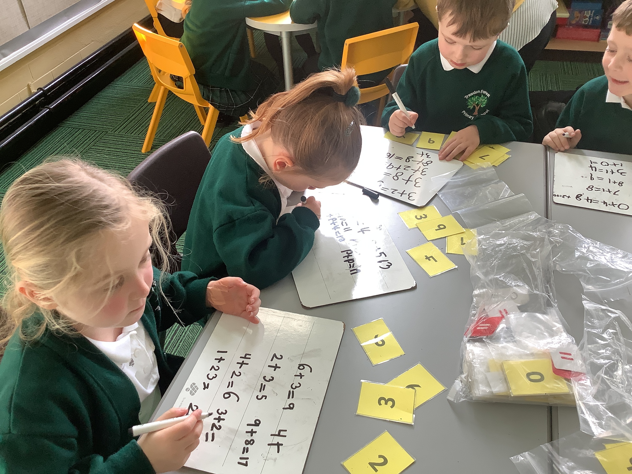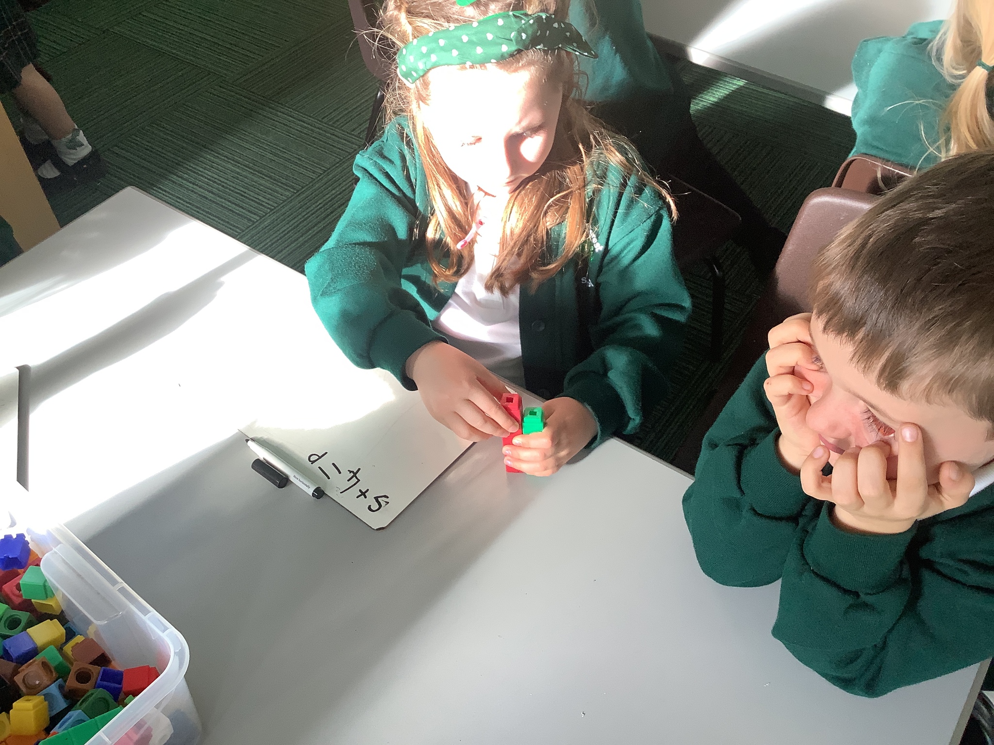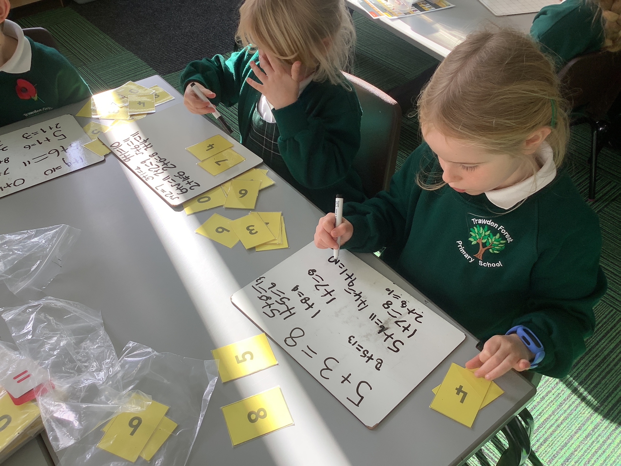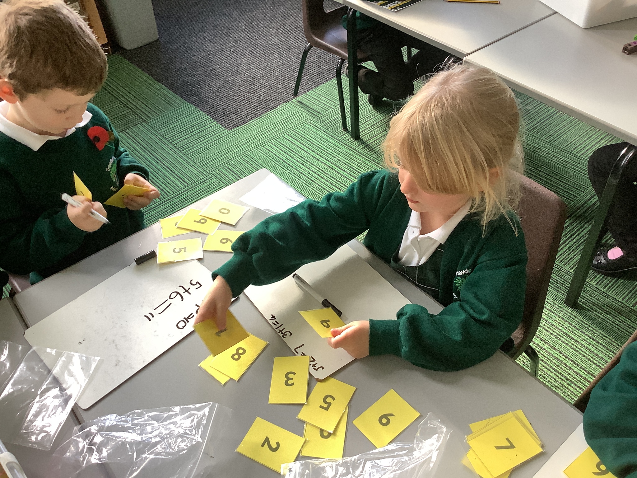 Today Year 1 have been having a go at writing number sentences. We used frogs and lily pads to make parts and whole before writing down, made stacks of cubes to add together and chose digit cards to make a number sentence then wrote them down,