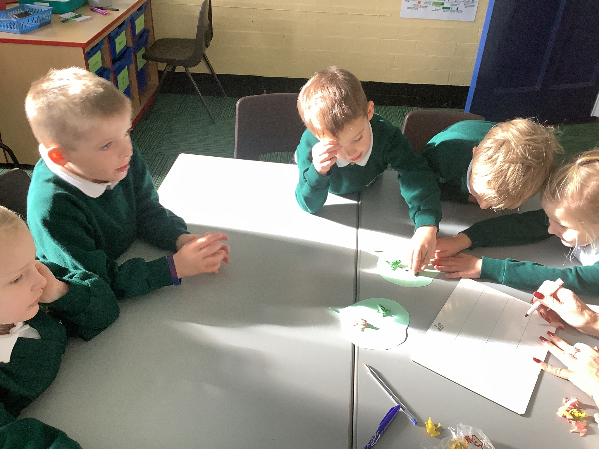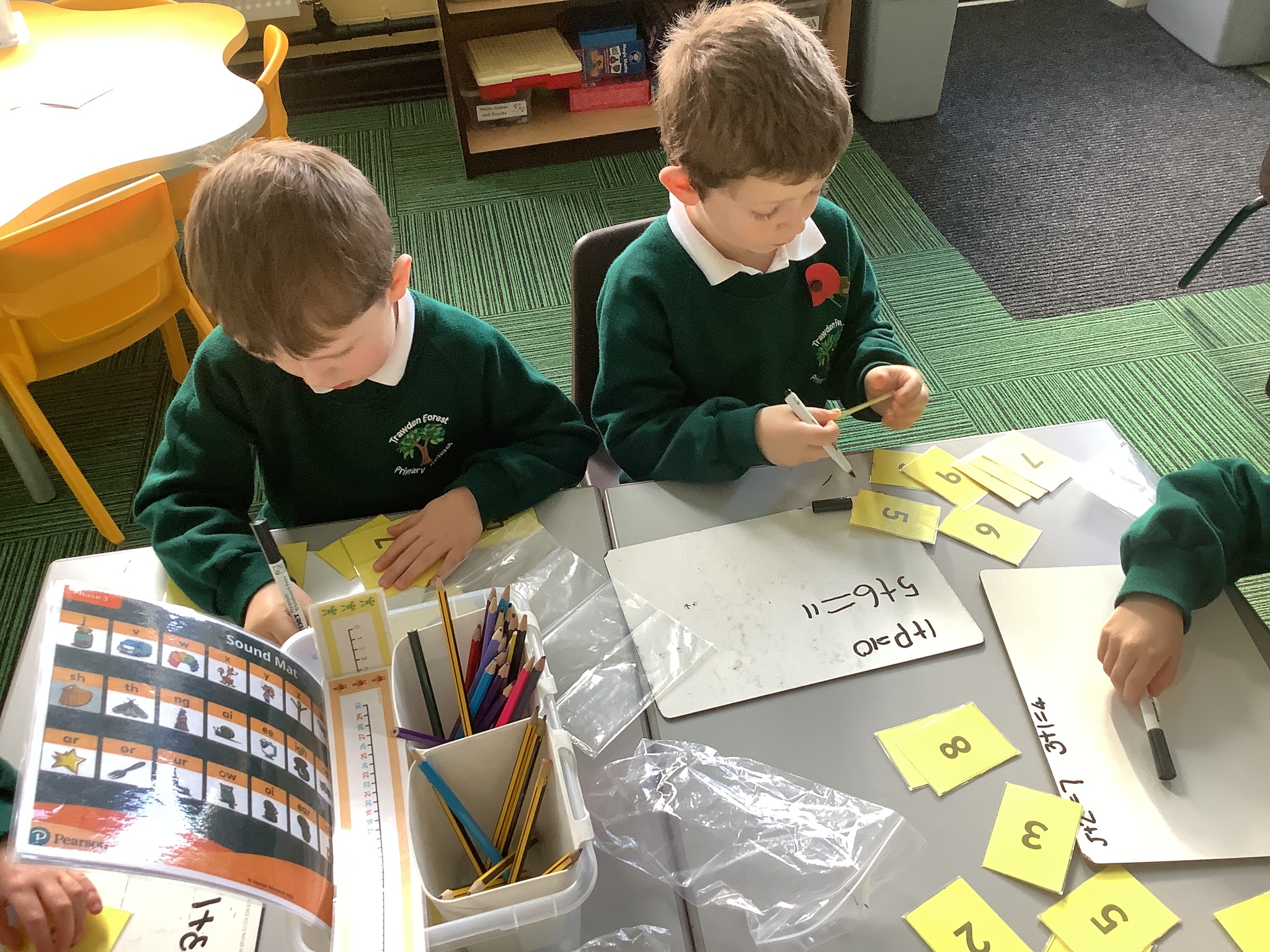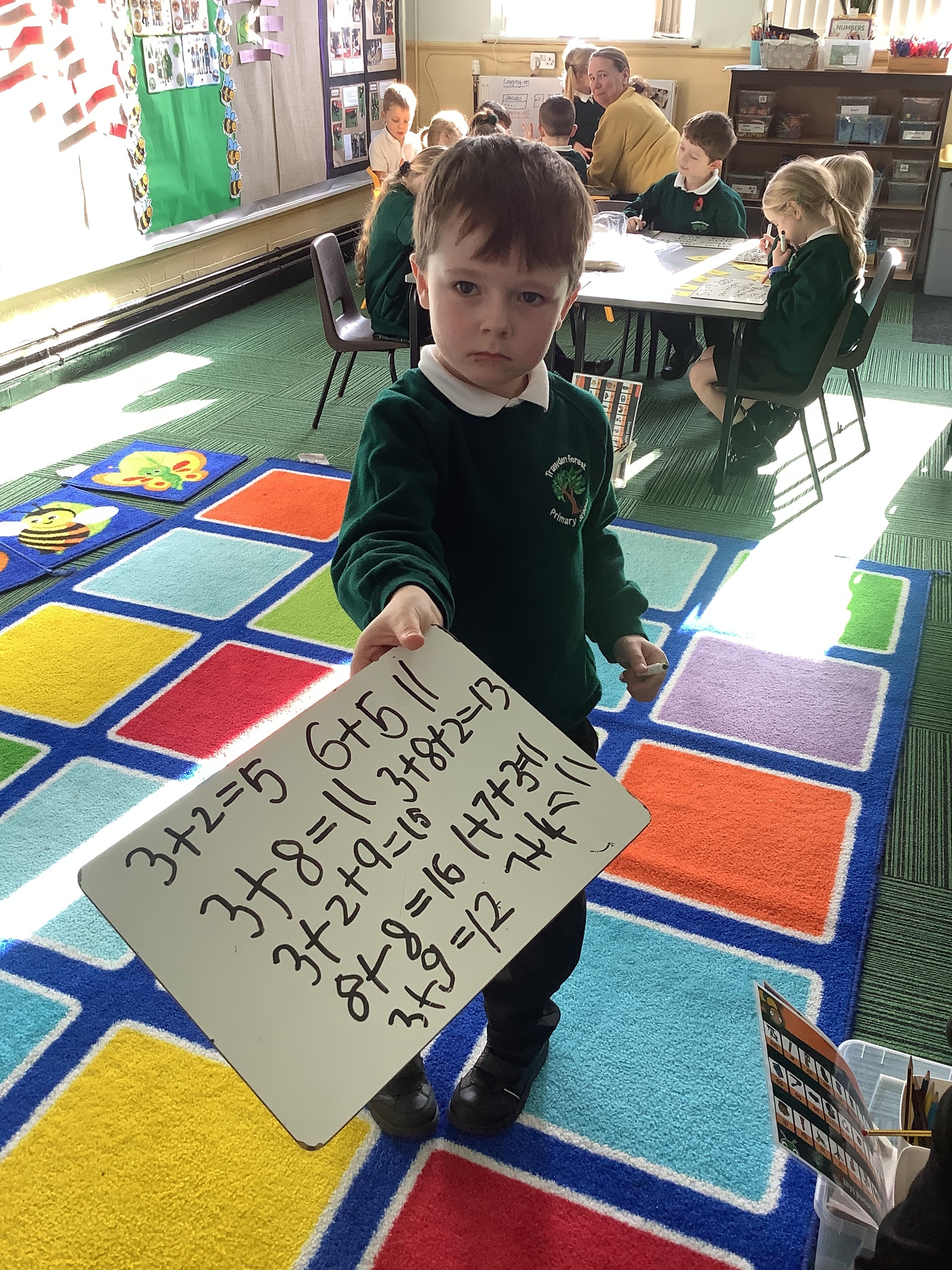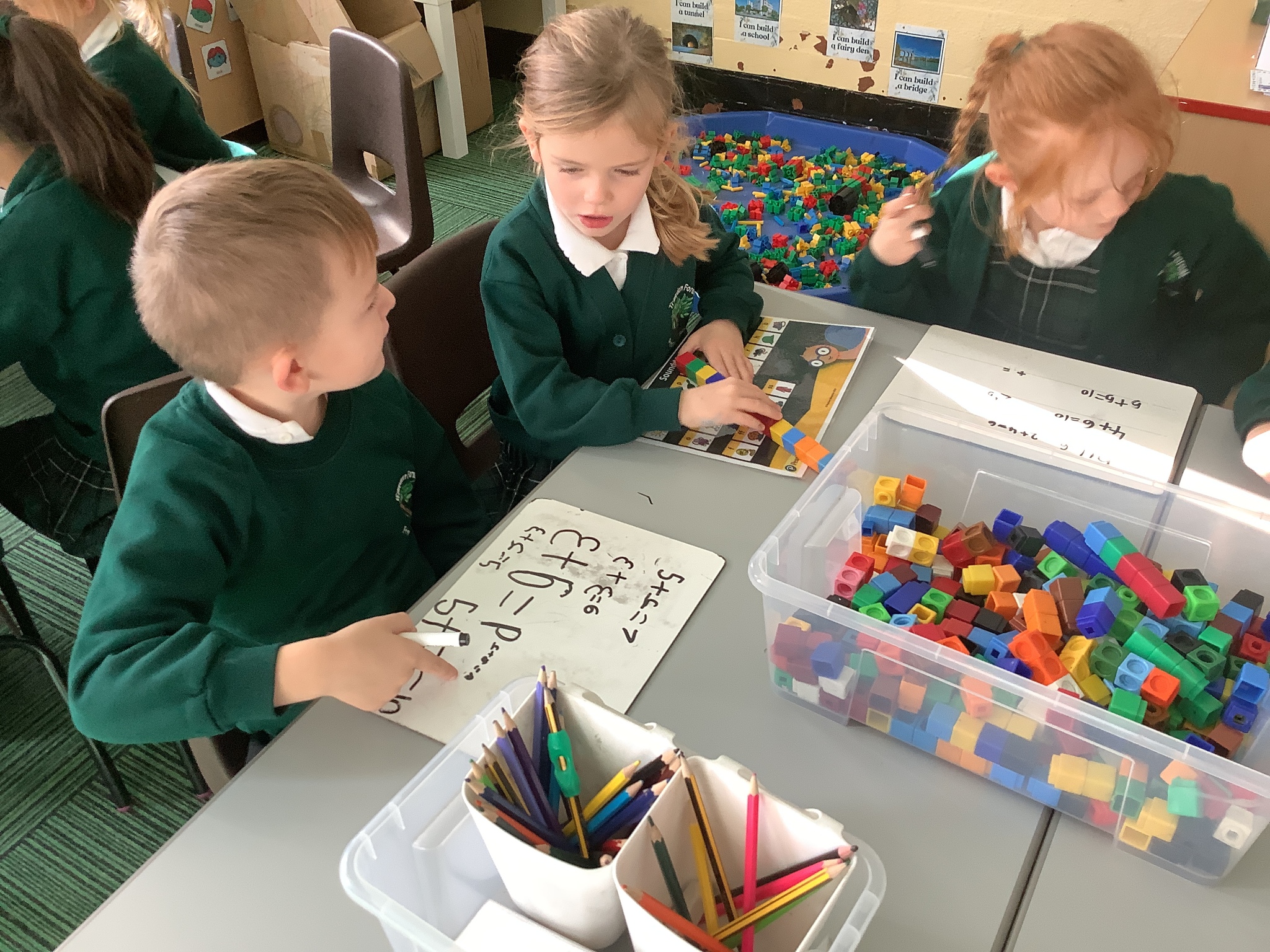 Today Year 1 have been having a go at writing number sentences. We used frogs and lily pads to make parts and whole before writing down, made stacks of cubes to add together and chose digit cards to make a number sentence then wrote them down,
