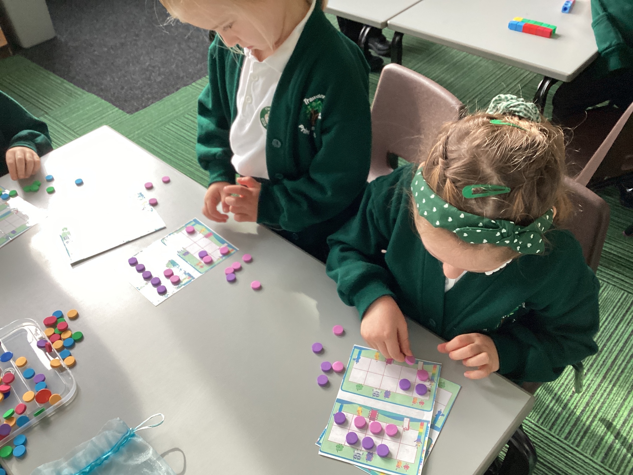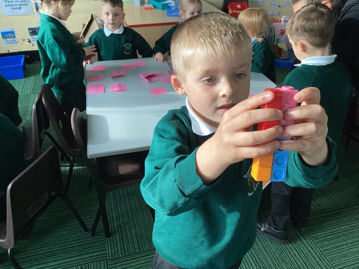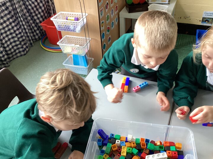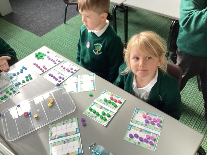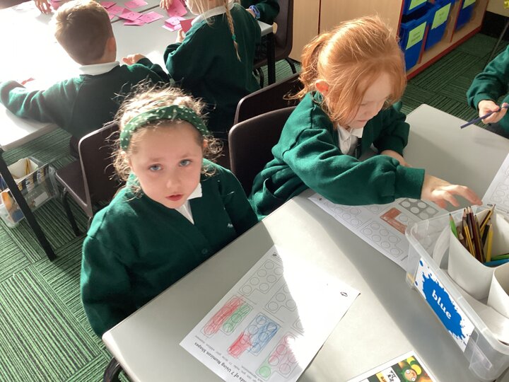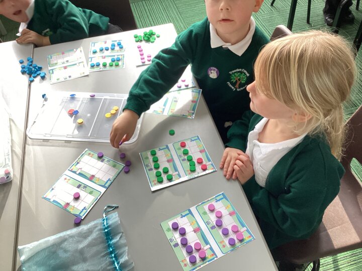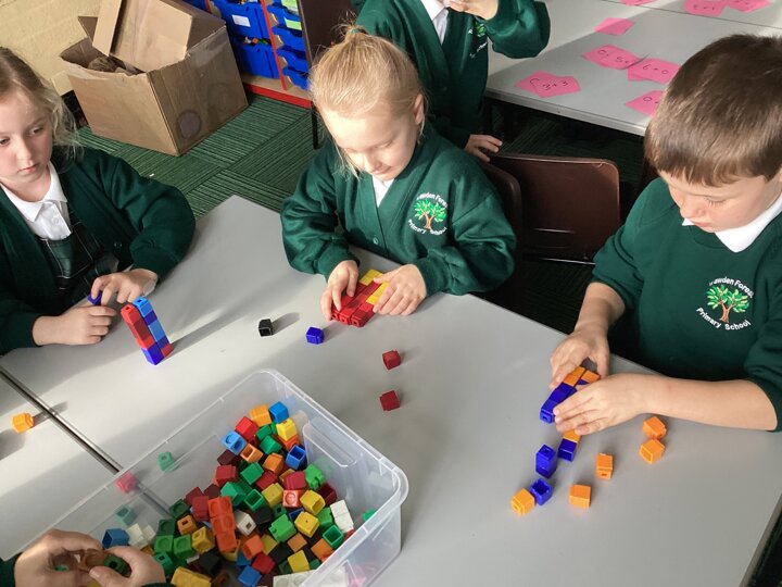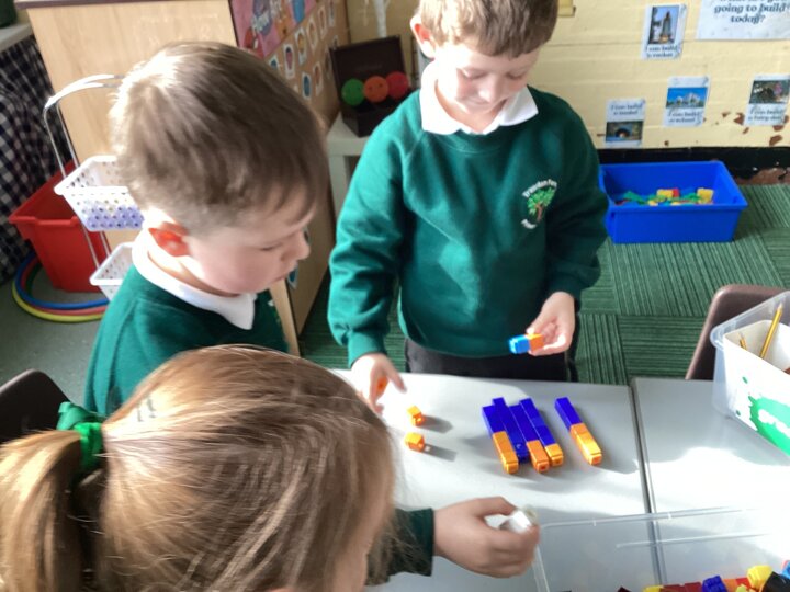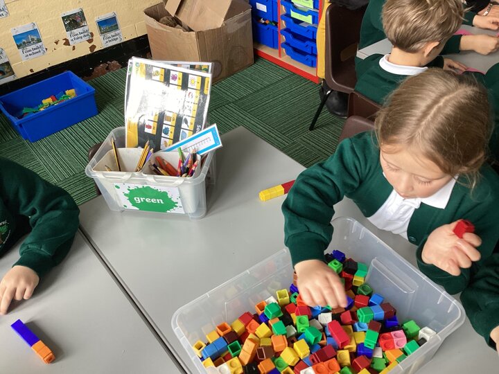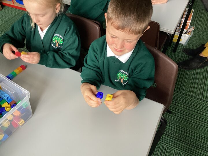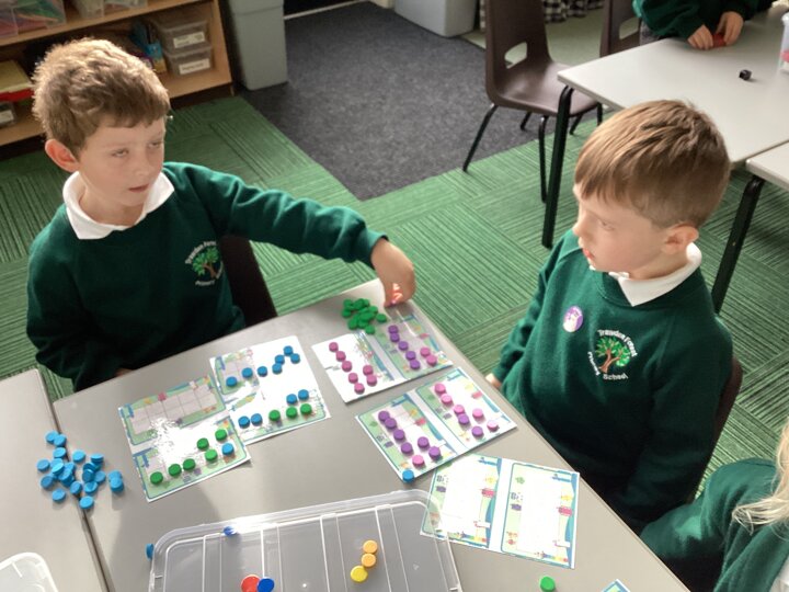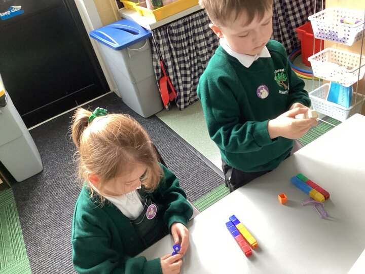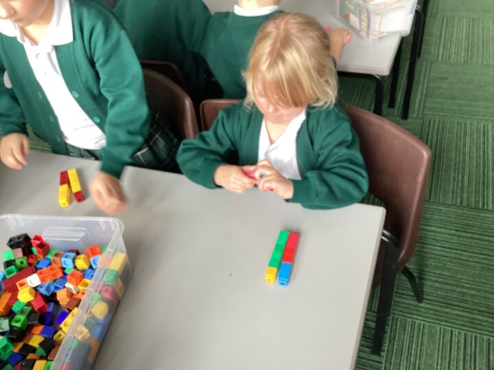 We used cubes to make sticks using 2 colours, tens frames and 2 colour dots and numicon shapes to find different ways of partitioning a number.