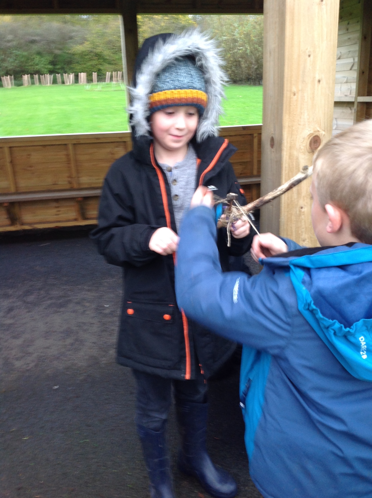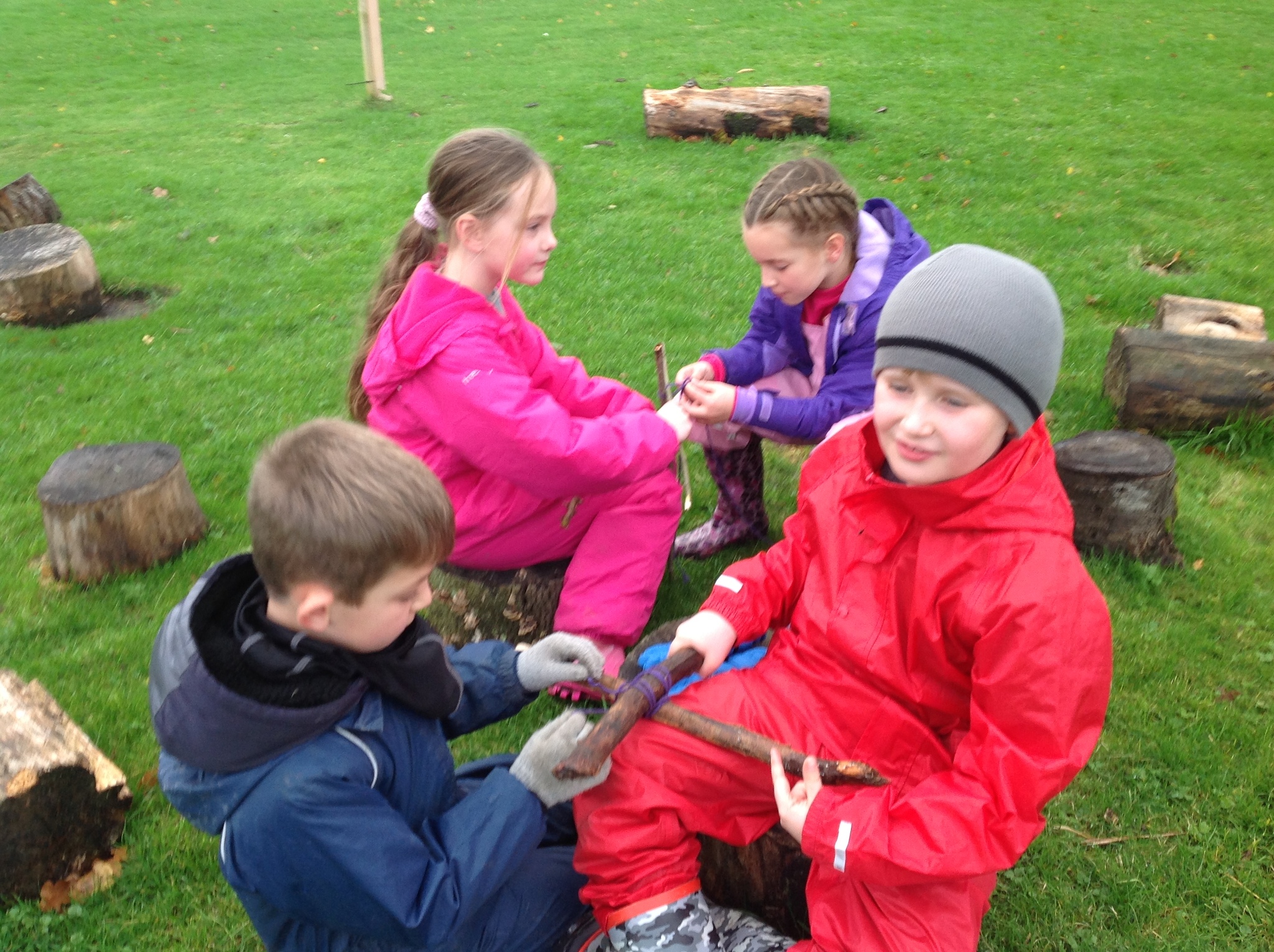 After learning how to do square lashing to fasten two stick together at right angles last week, we practised this again when we made woodland mobiles. The children have all improved on their skills last week and the lashing was definitely tighter this week. Super persevering and good thinking skills - well done, Year 3!