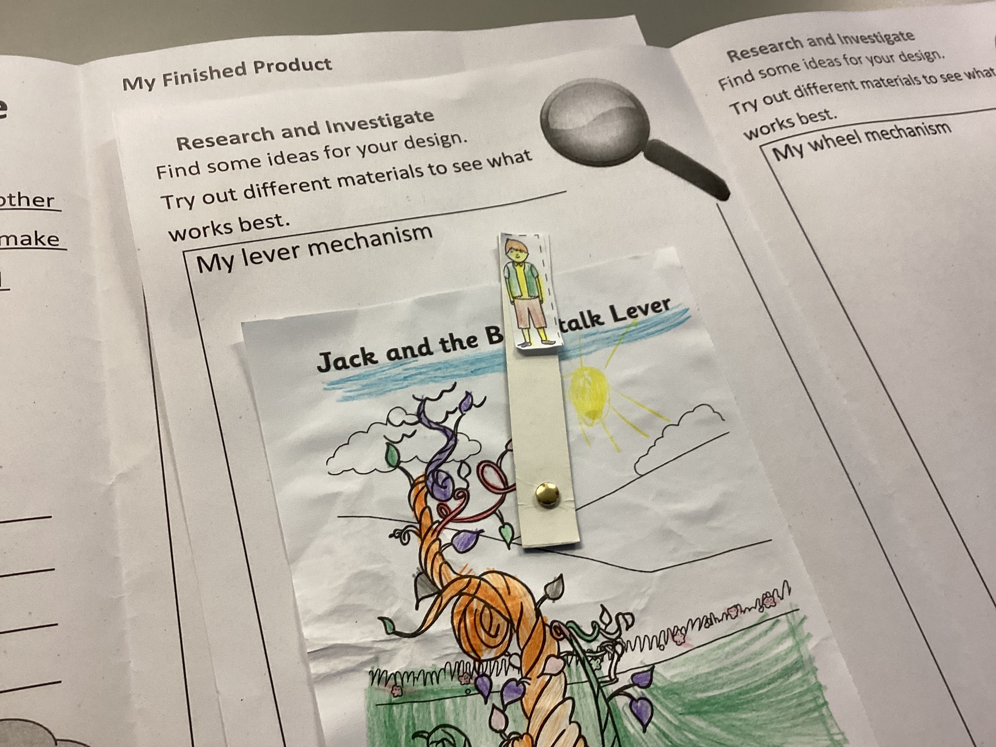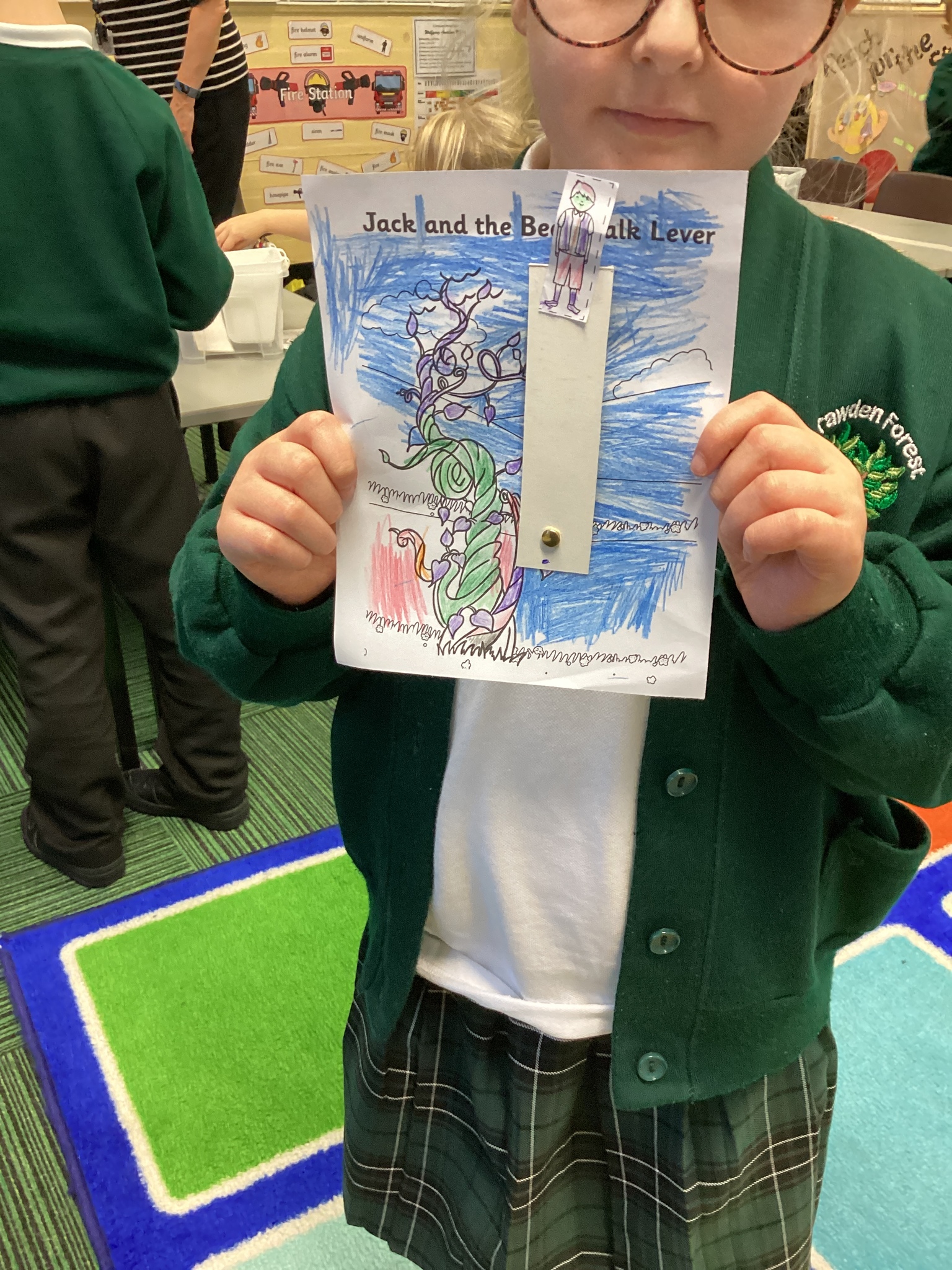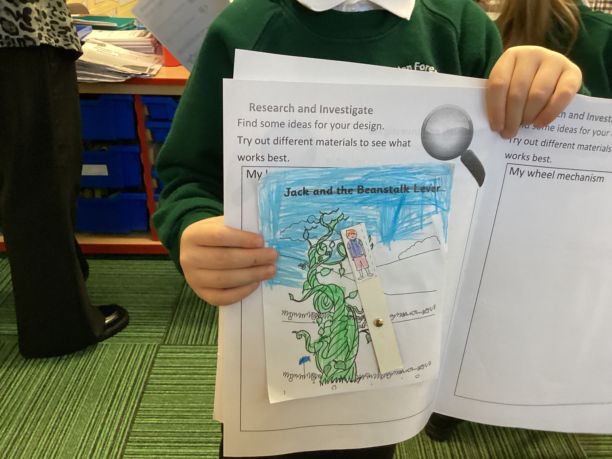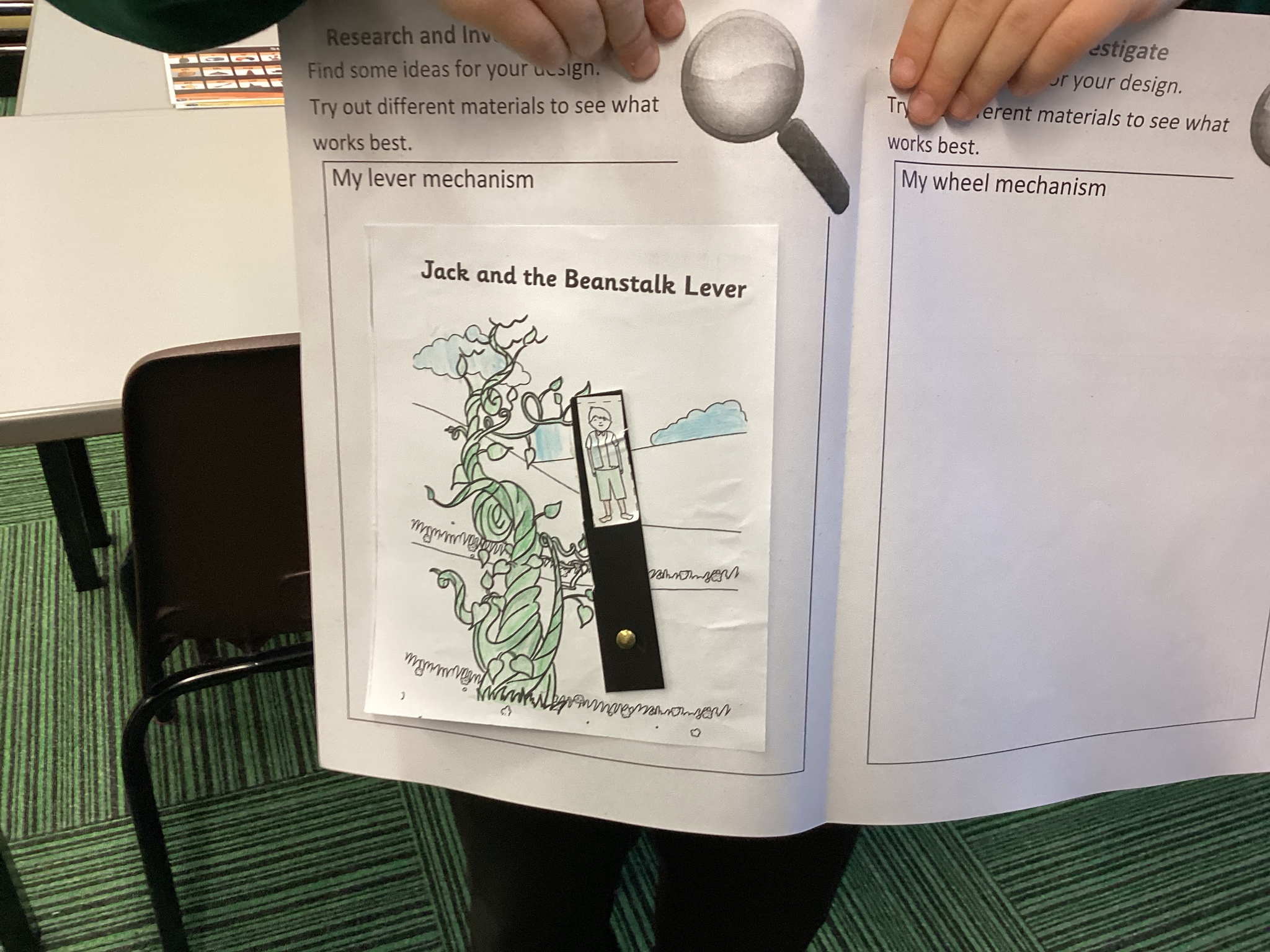 Year 1 have been learning about levers in DT this week. We found out what a pivot is and hove levers make things move. We created our own lever mechanisms to make Jack climb the beanstalk.