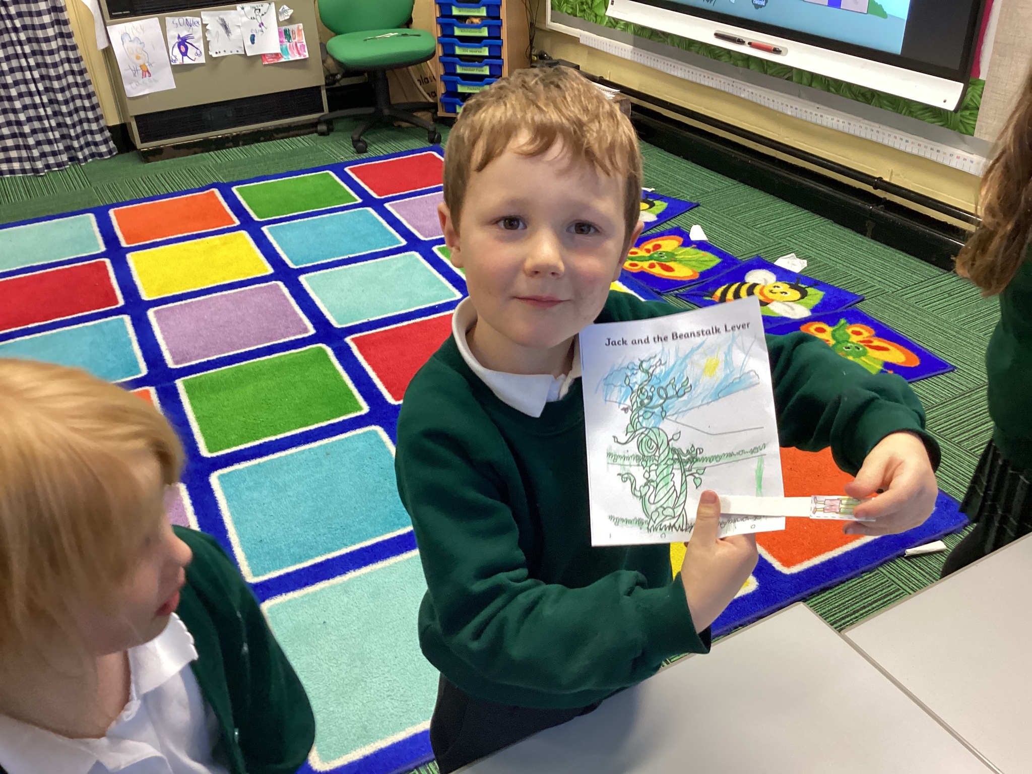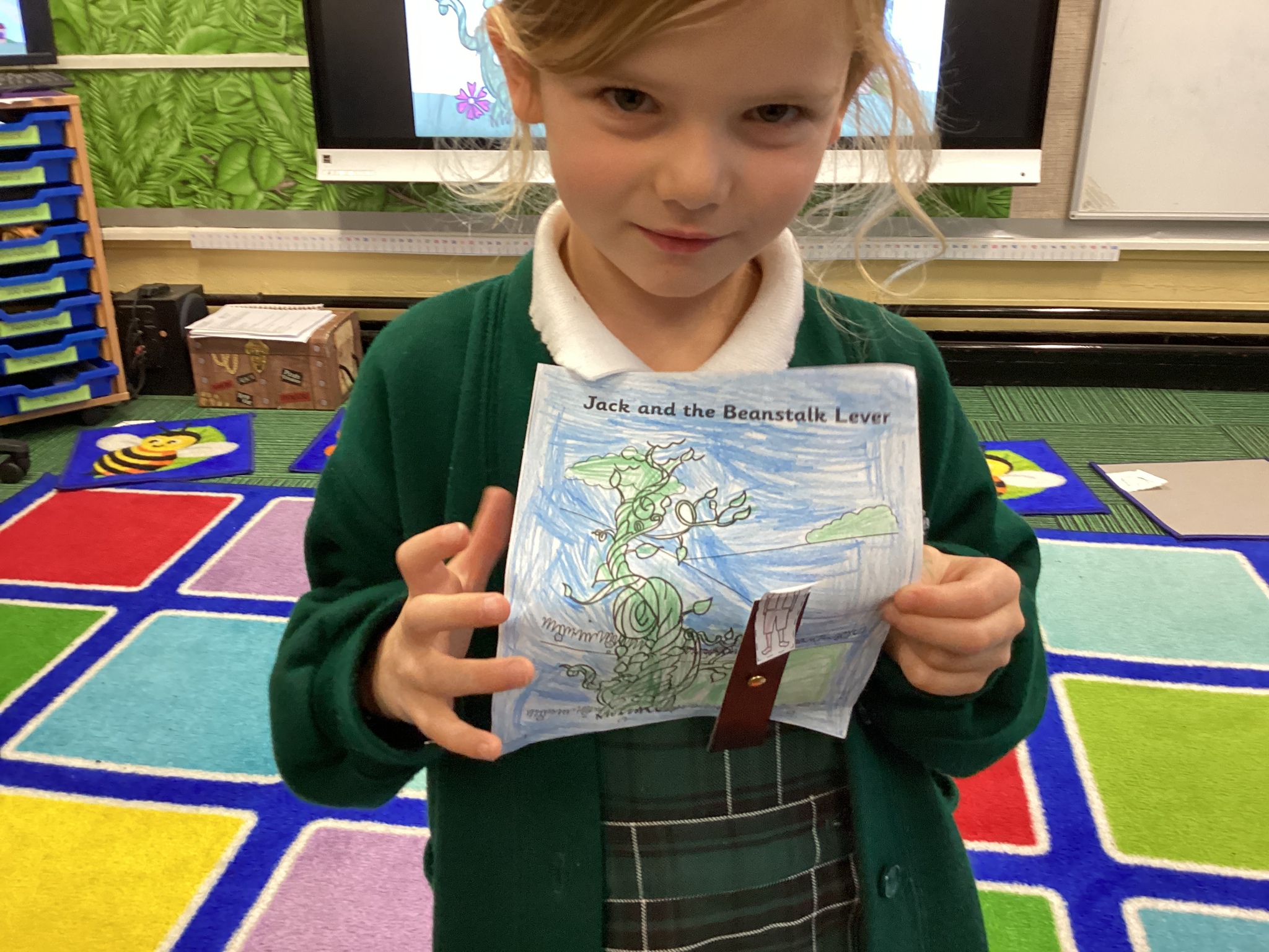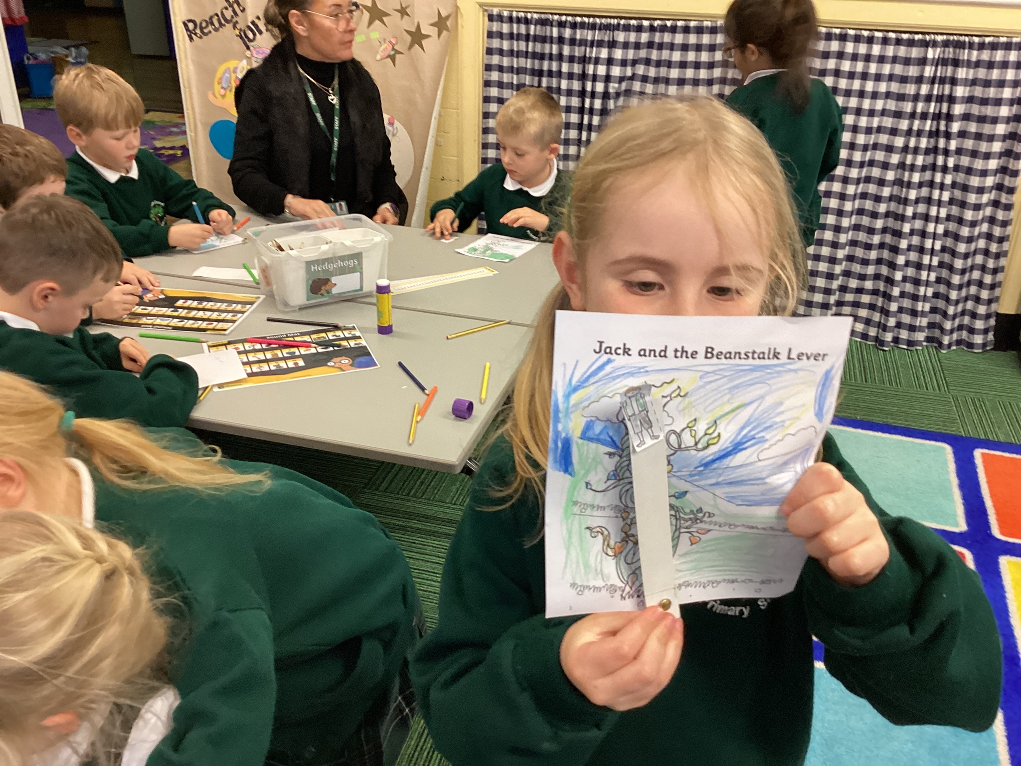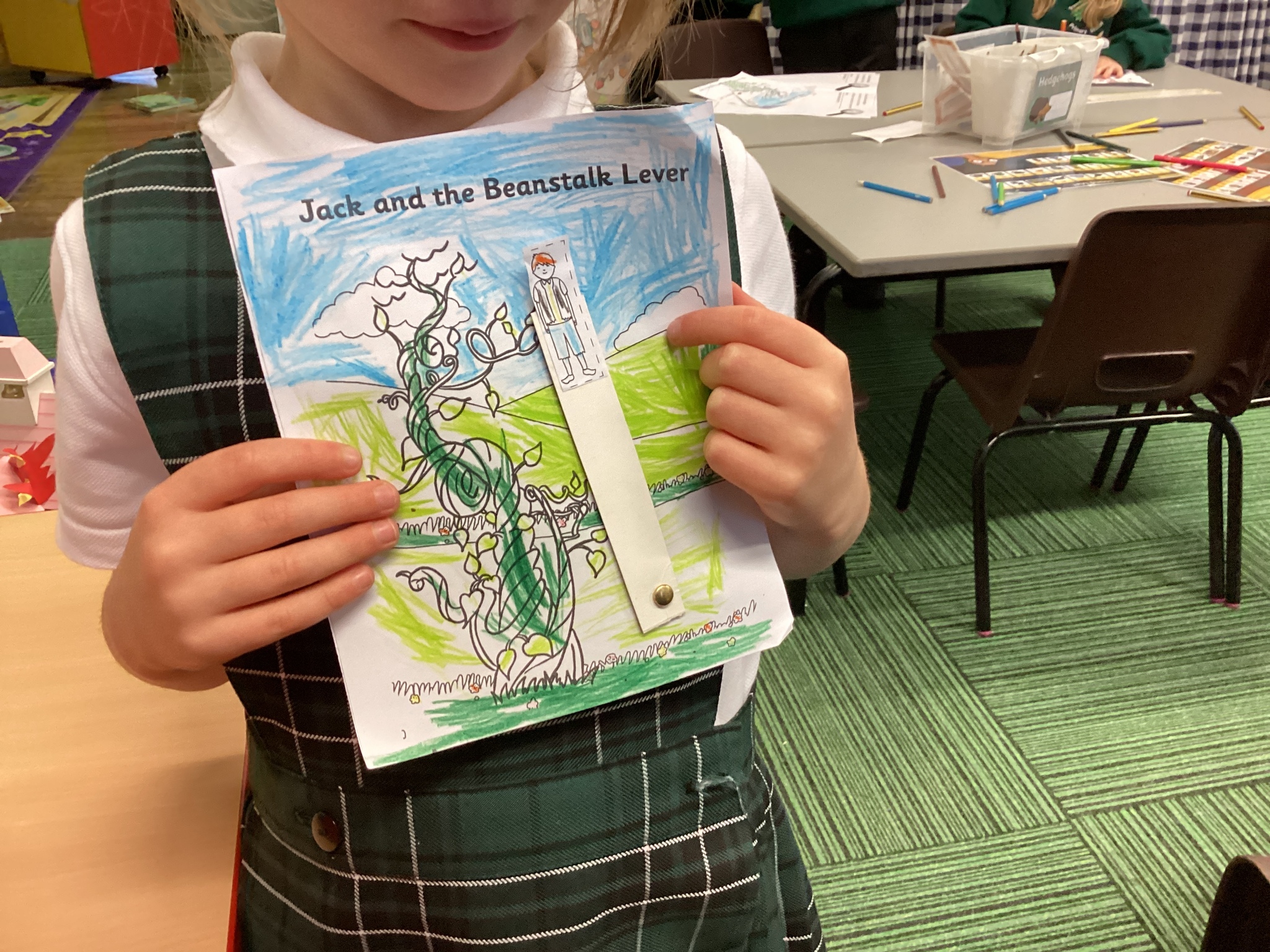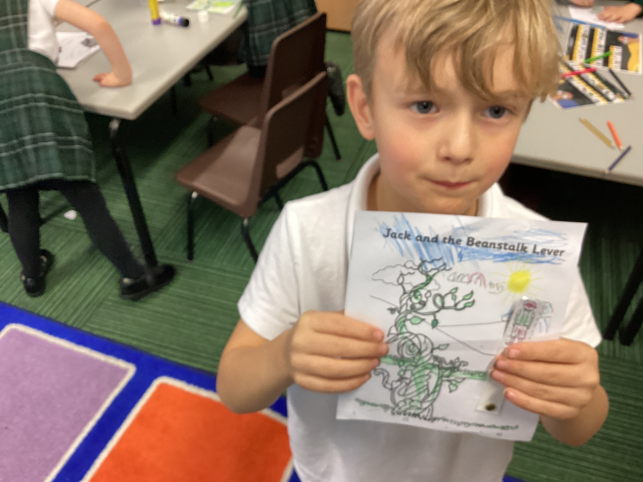 Year 1 have been learning about levers in DT this week. We found out what a pivot is and hove levers make things move. We created our own lever mechanisms to make Jack climb the beanstalk.
