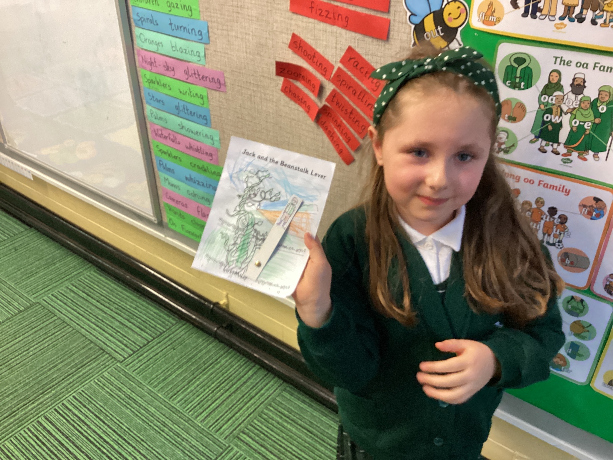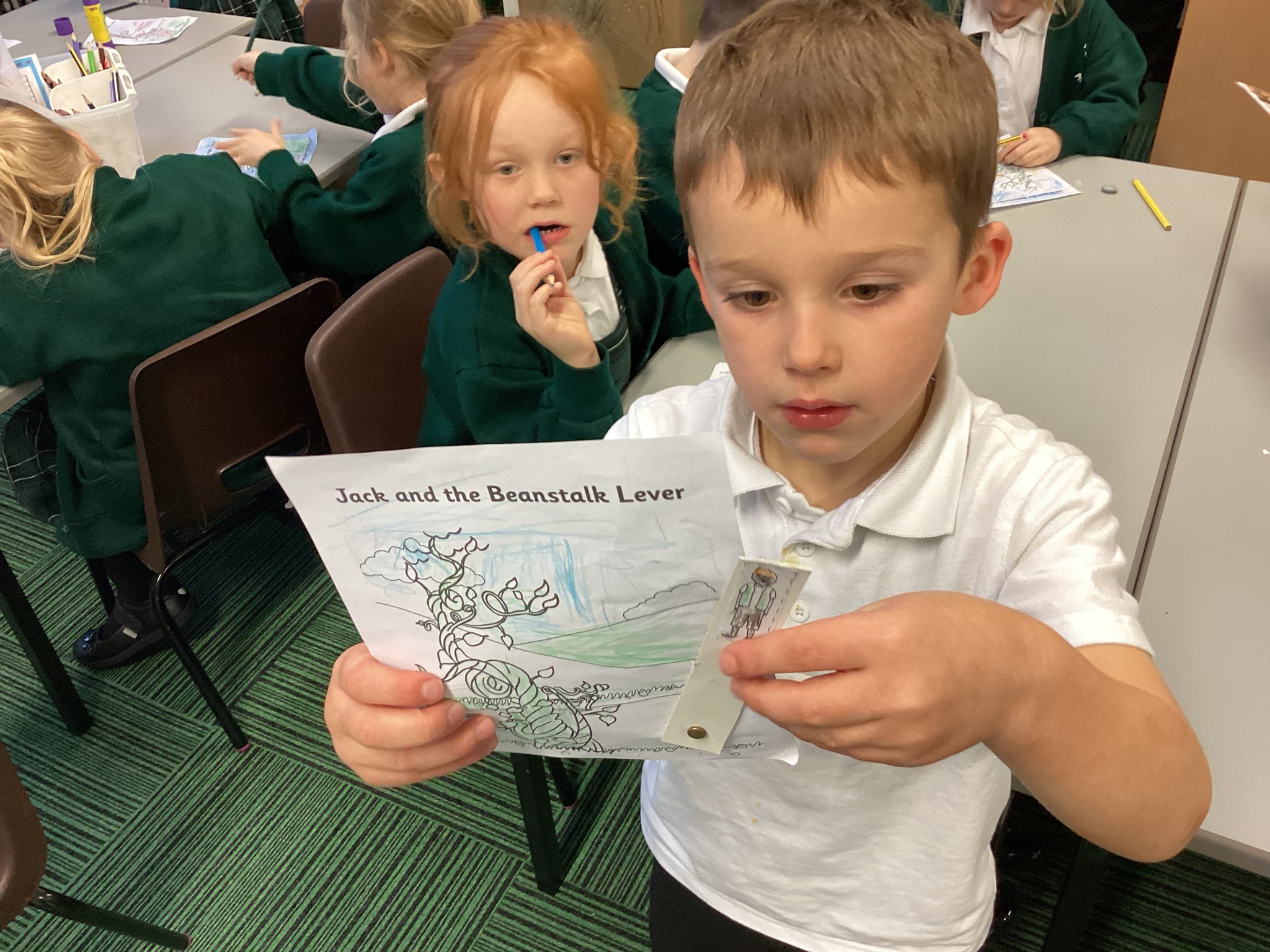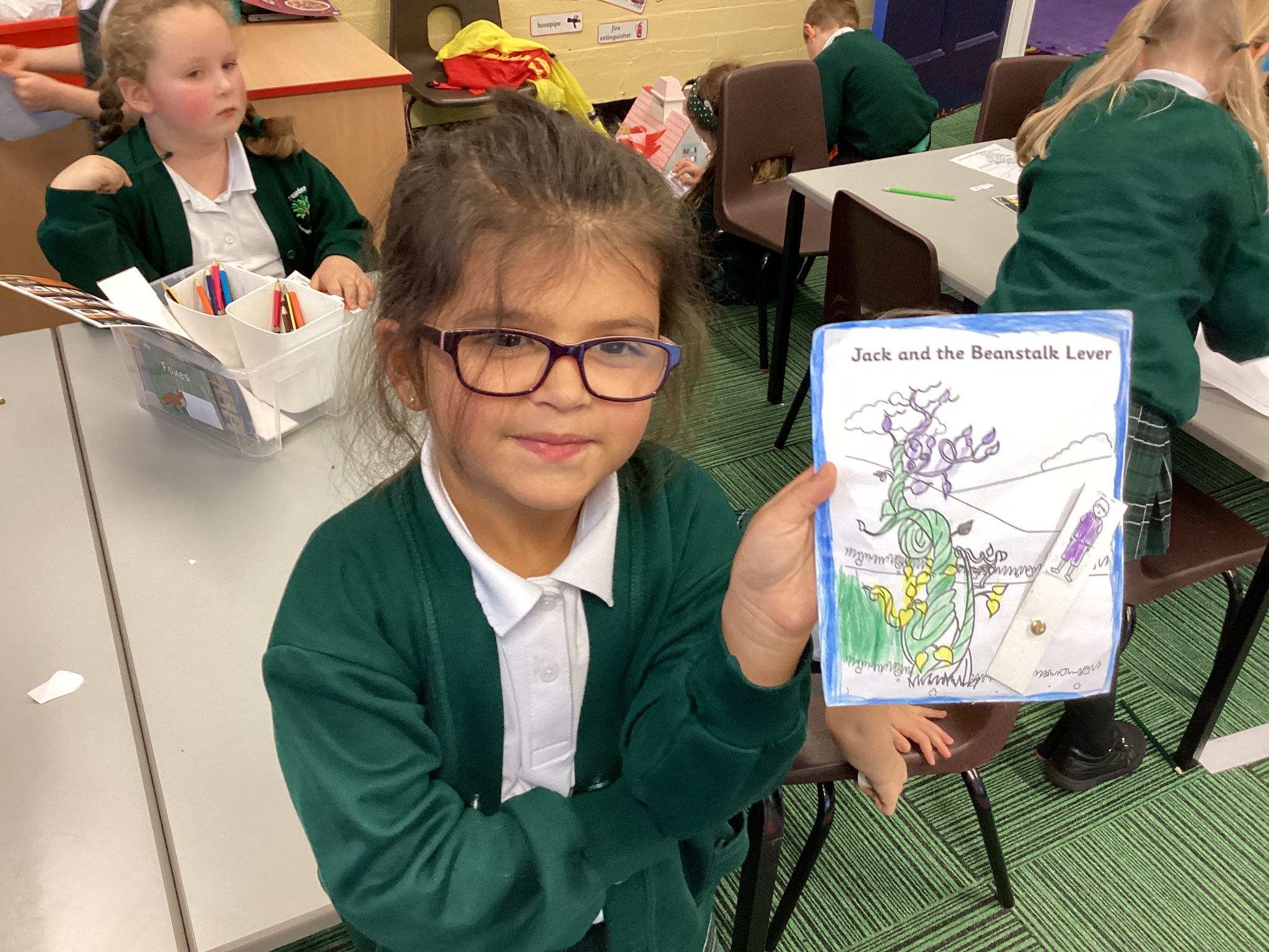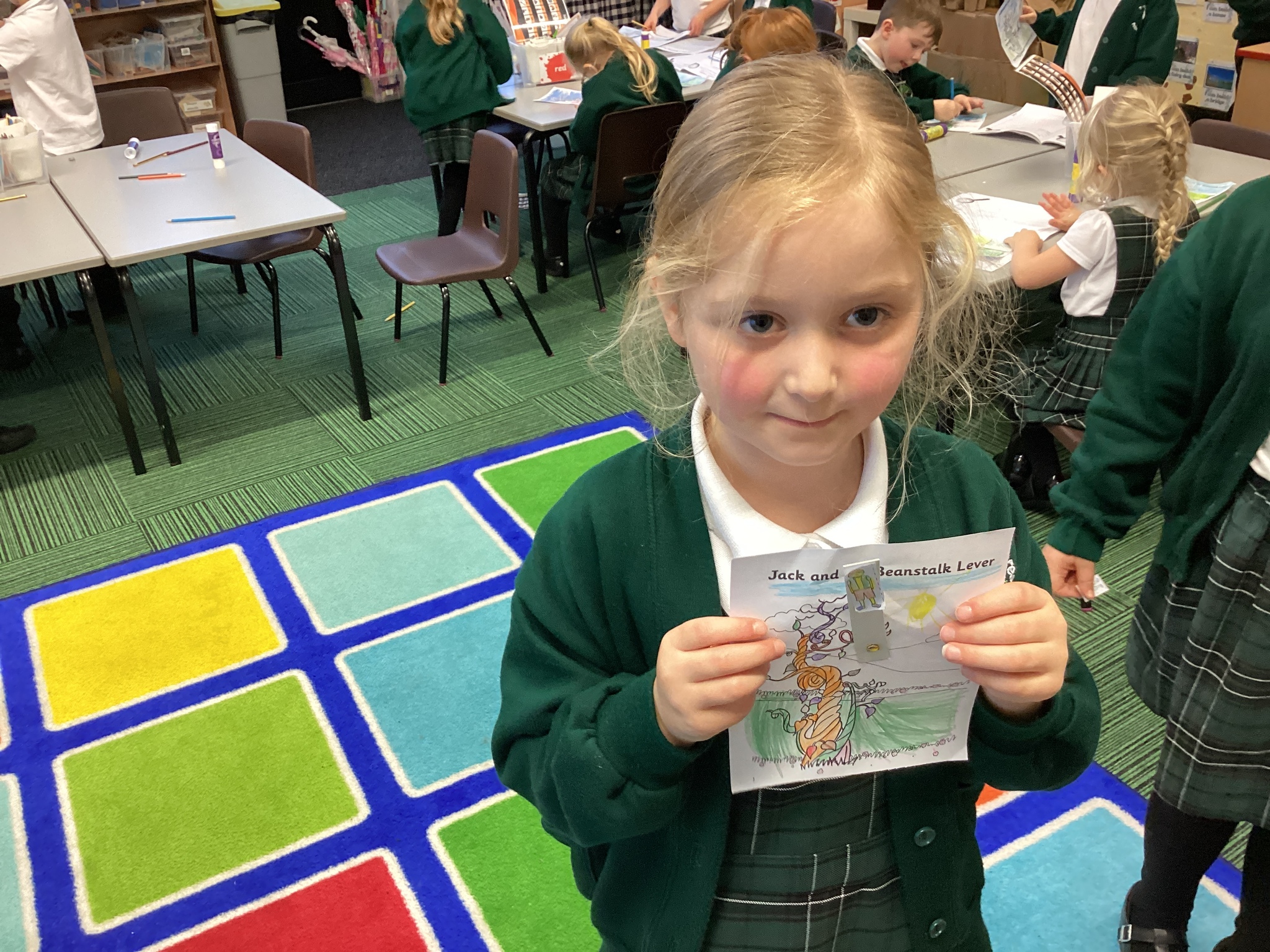Year 1 have been learning about levers in DT this week. We found out what a pivot is and hove levers make things move. We created our own lever mechanisms to make Jack climb the beanstalk.