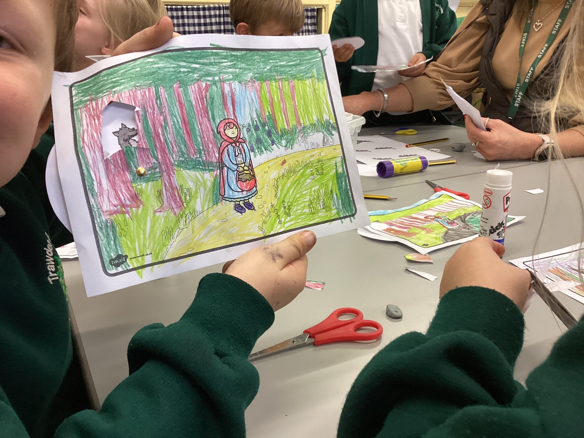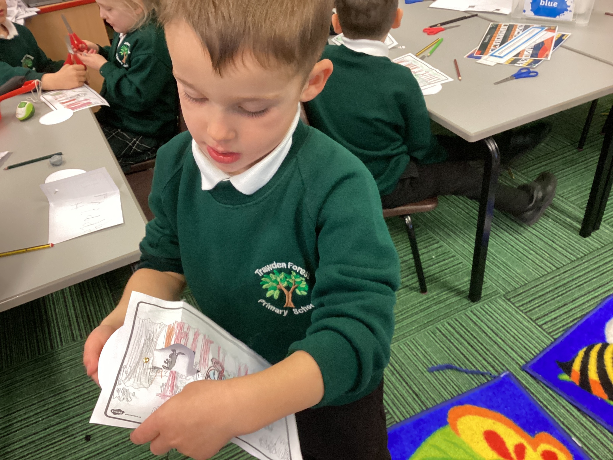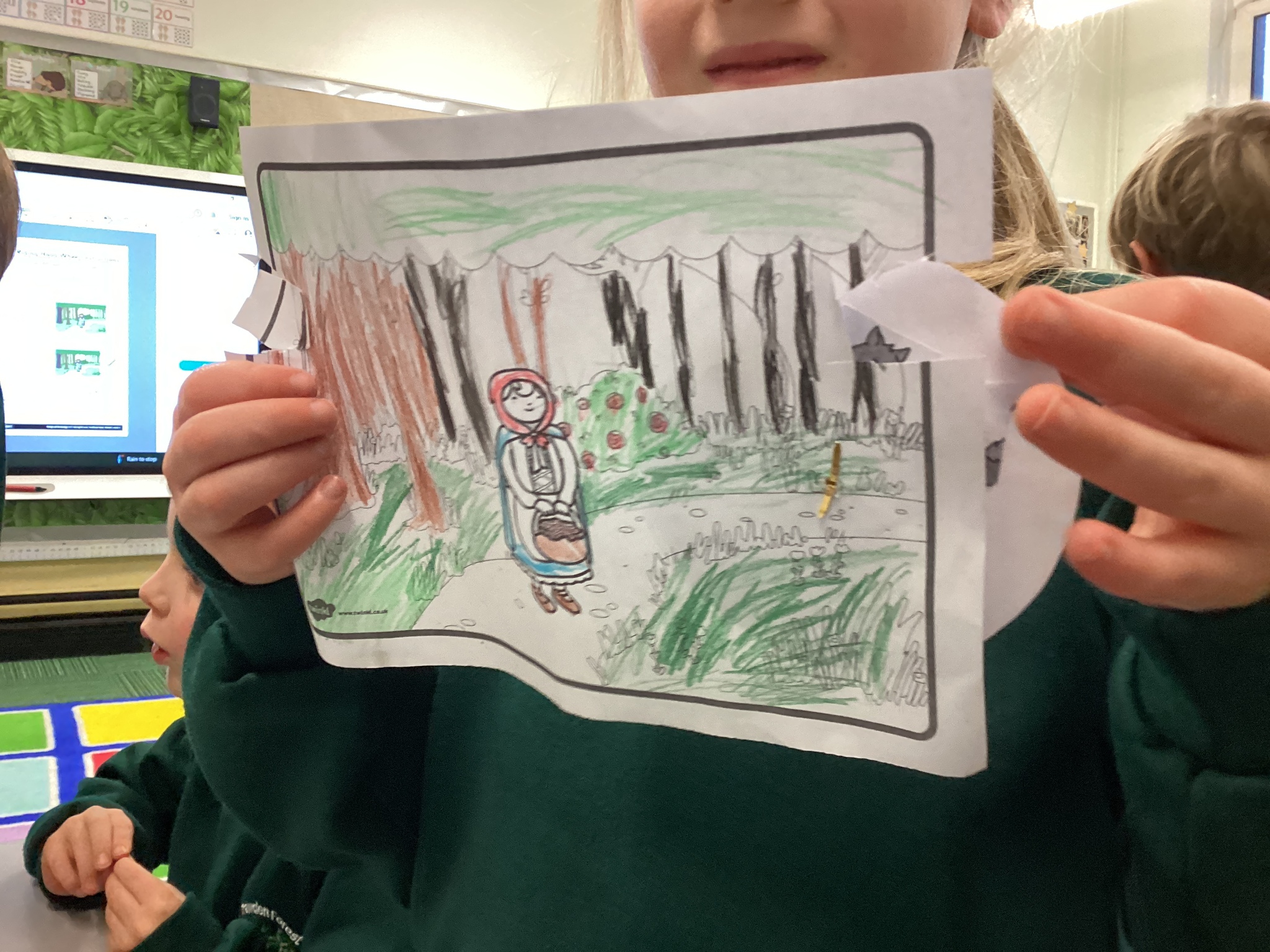 This week Y1 have been making wheel mechanisms to make the wolf creep nearer in a picture of Red Riding Hood.